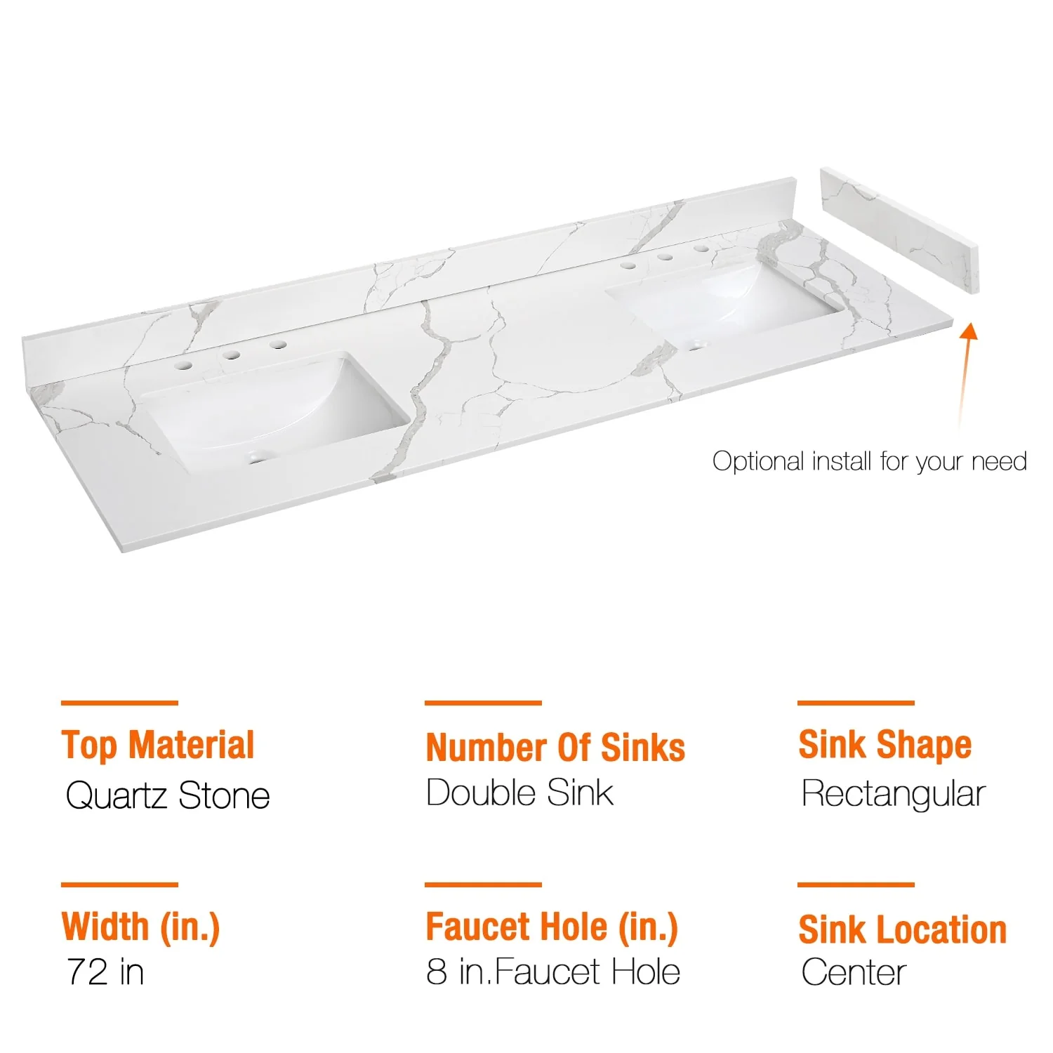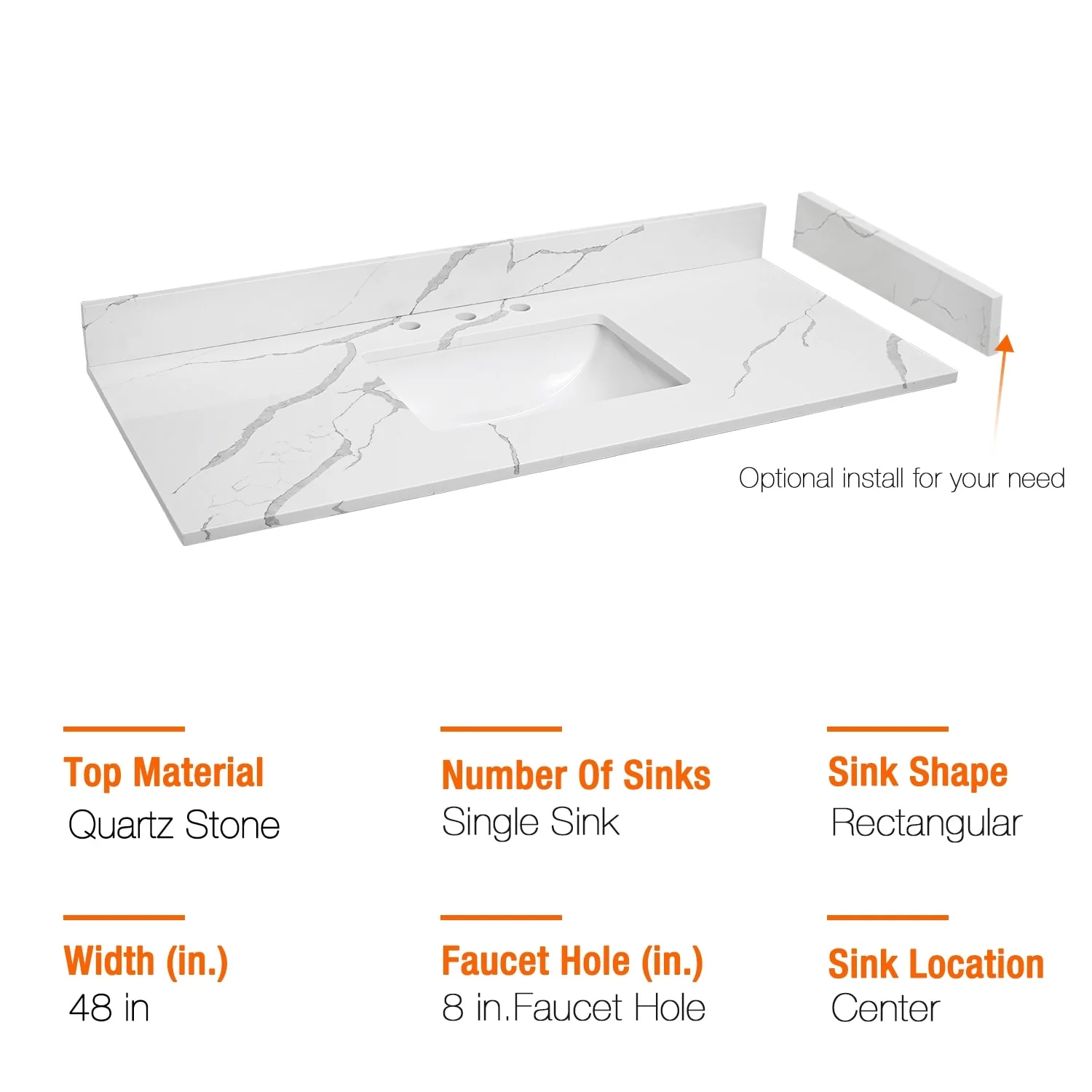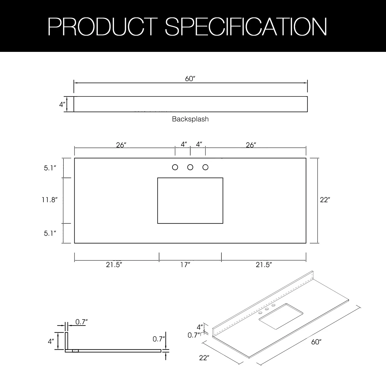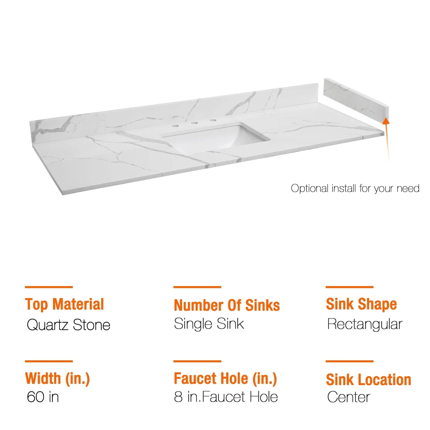 - Quartz countertop size(in): 36'/48'/60'/72' in. w x 21.5 in. D x 0.7 in. H