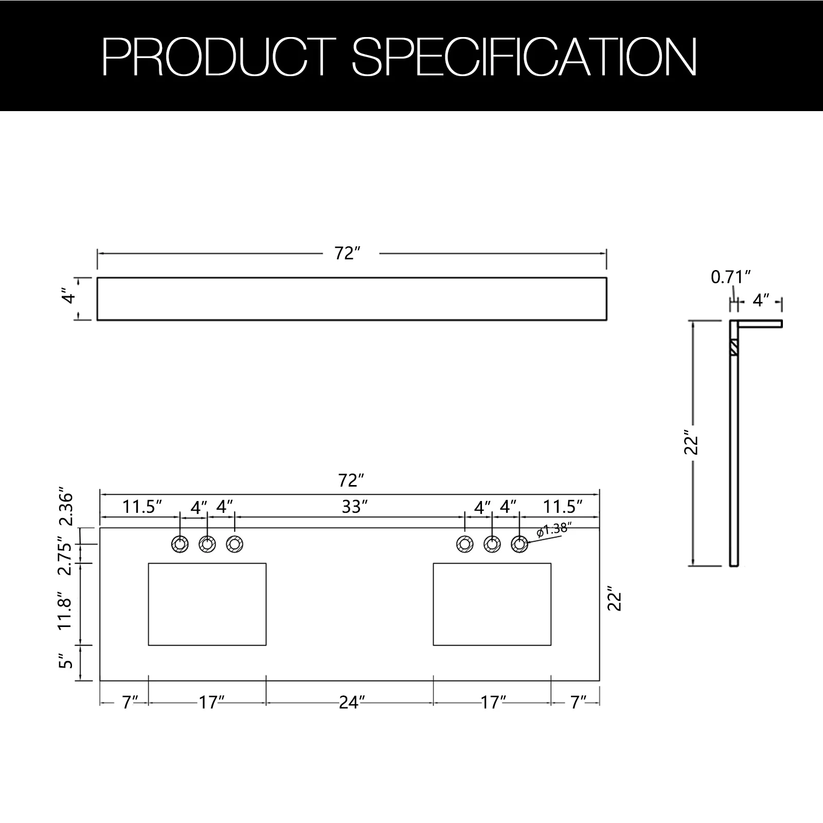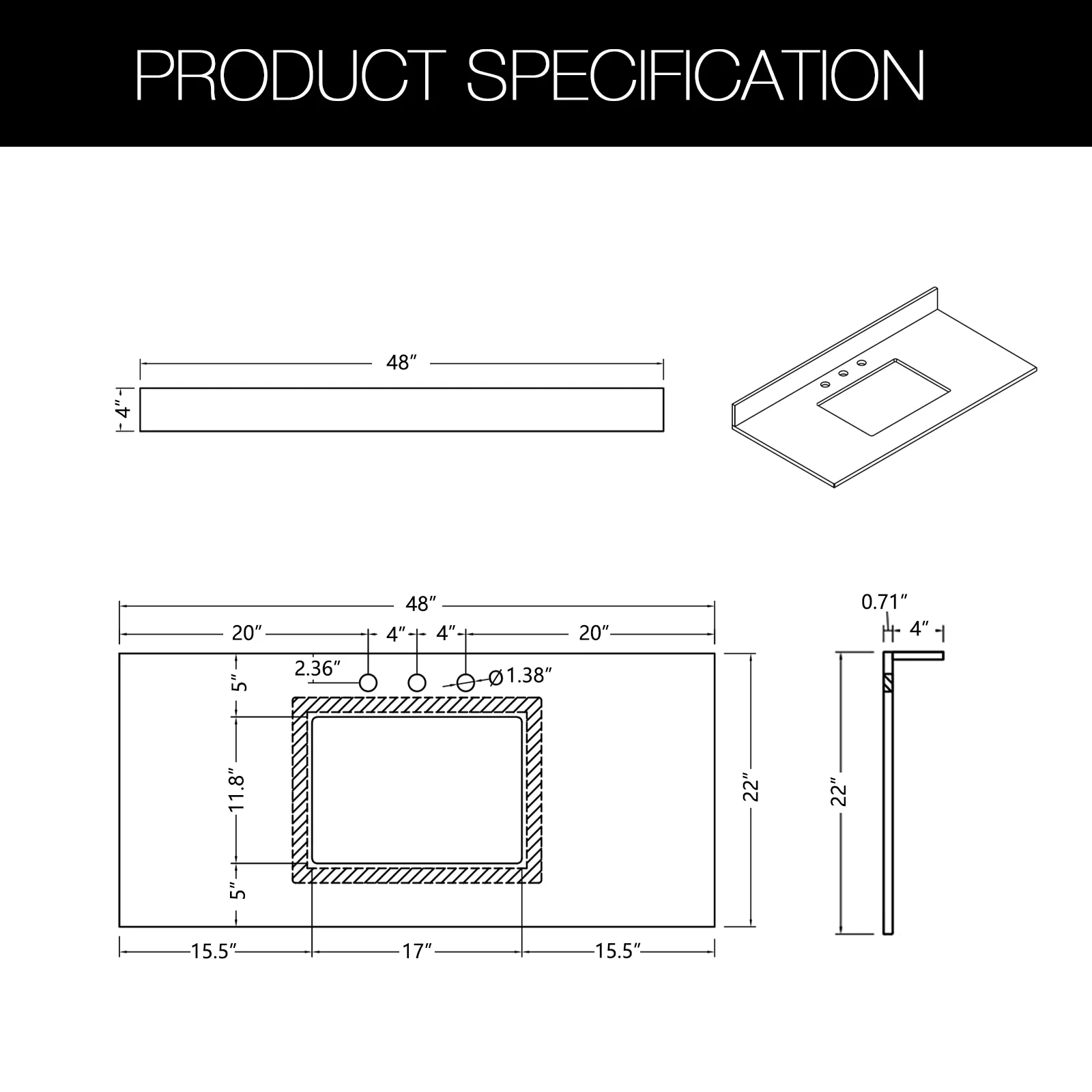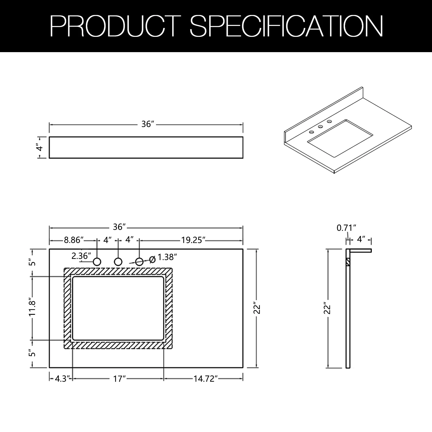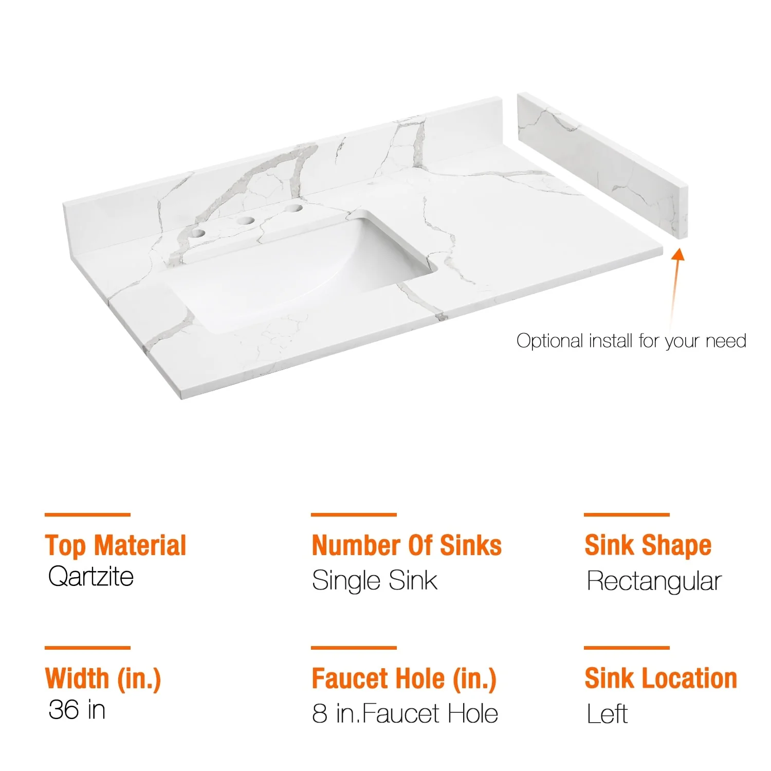 - Quartz countertop size(in): 36'/48'/60'/72' in. w x 21.5 in. D x 0.7 in. H