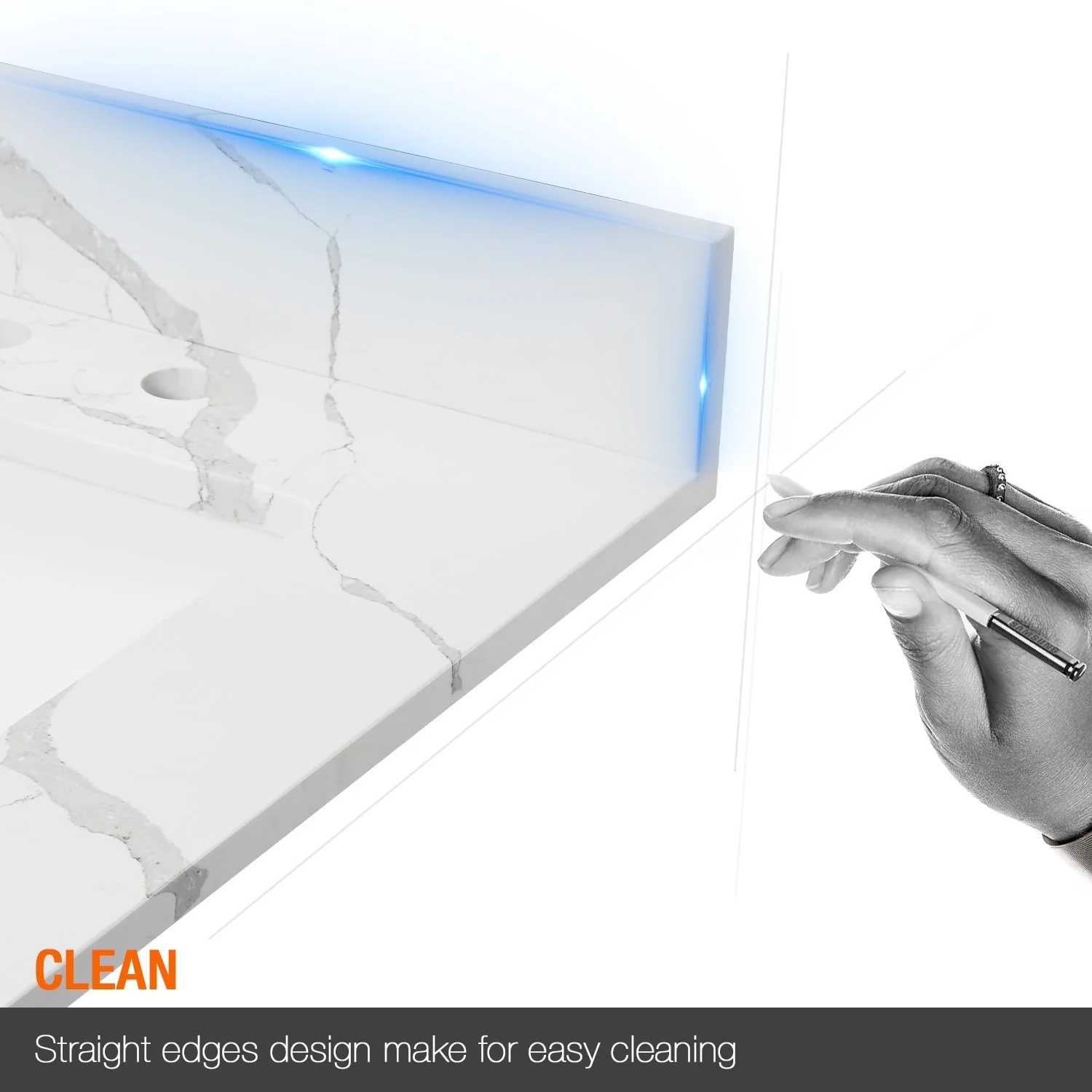 - 4 in. high backsplash included to help protect walls from water damage.