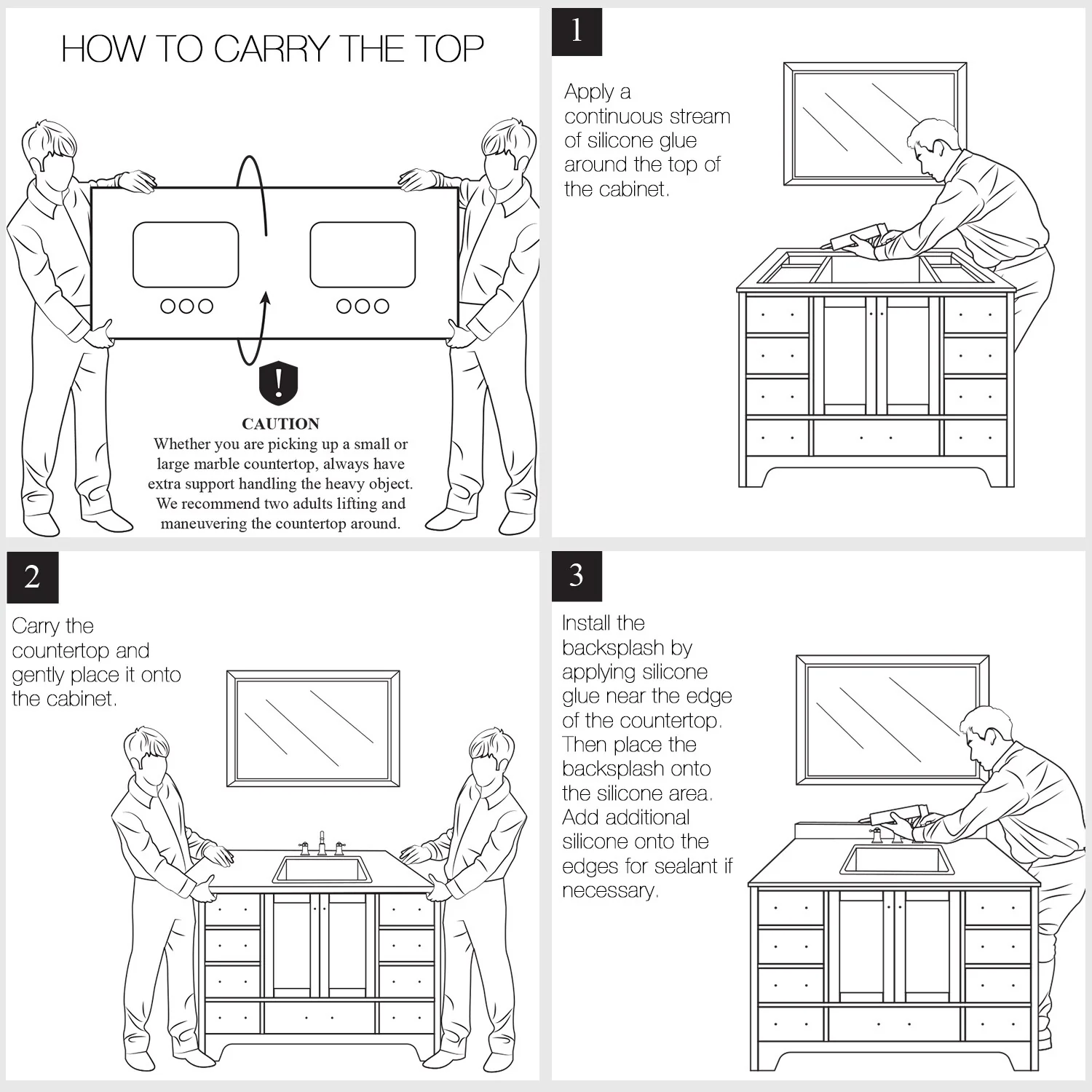 - Countertop w/ backsplash assembly size(in): 36'/48'/60'/72' in. w x 22 in. D x 4 in. H