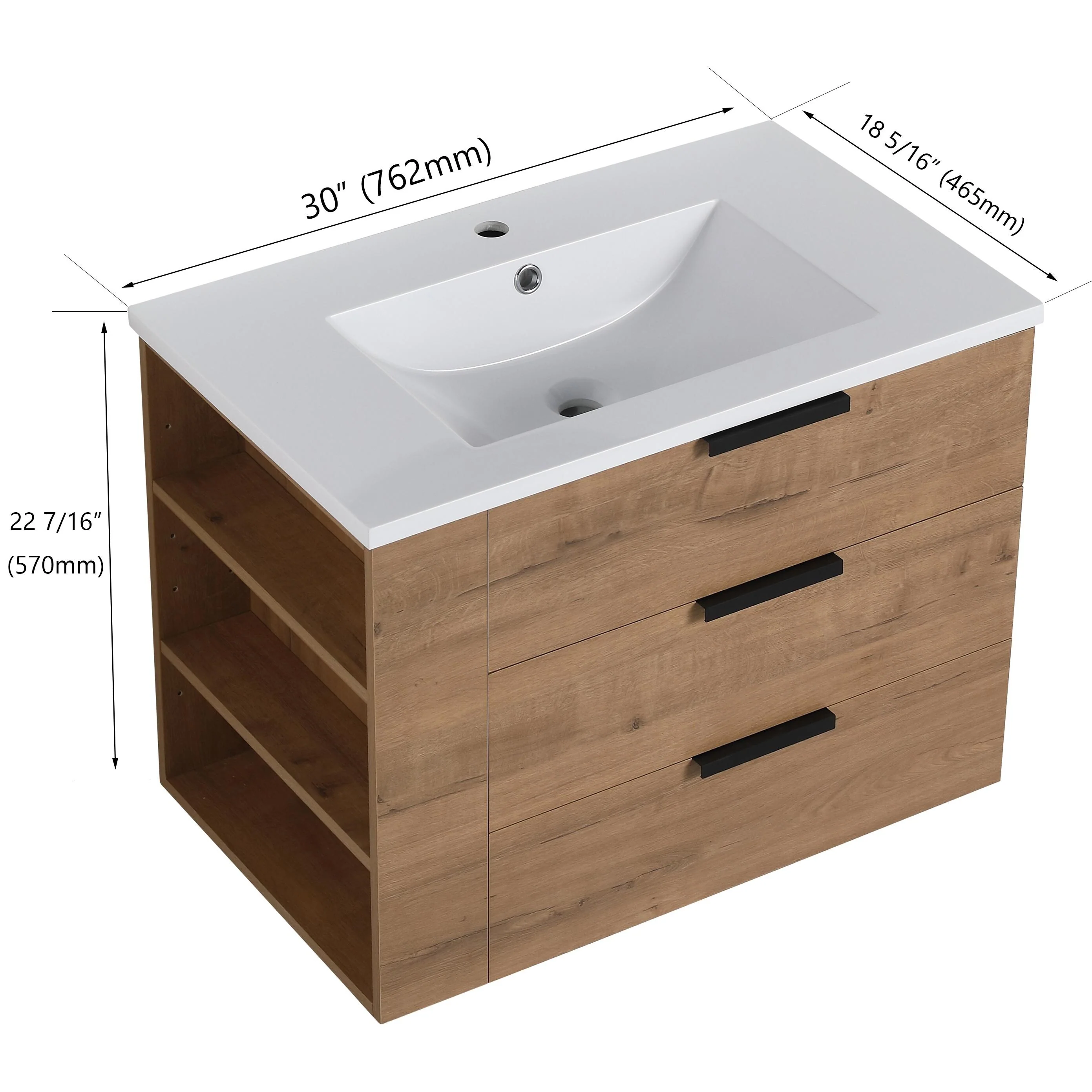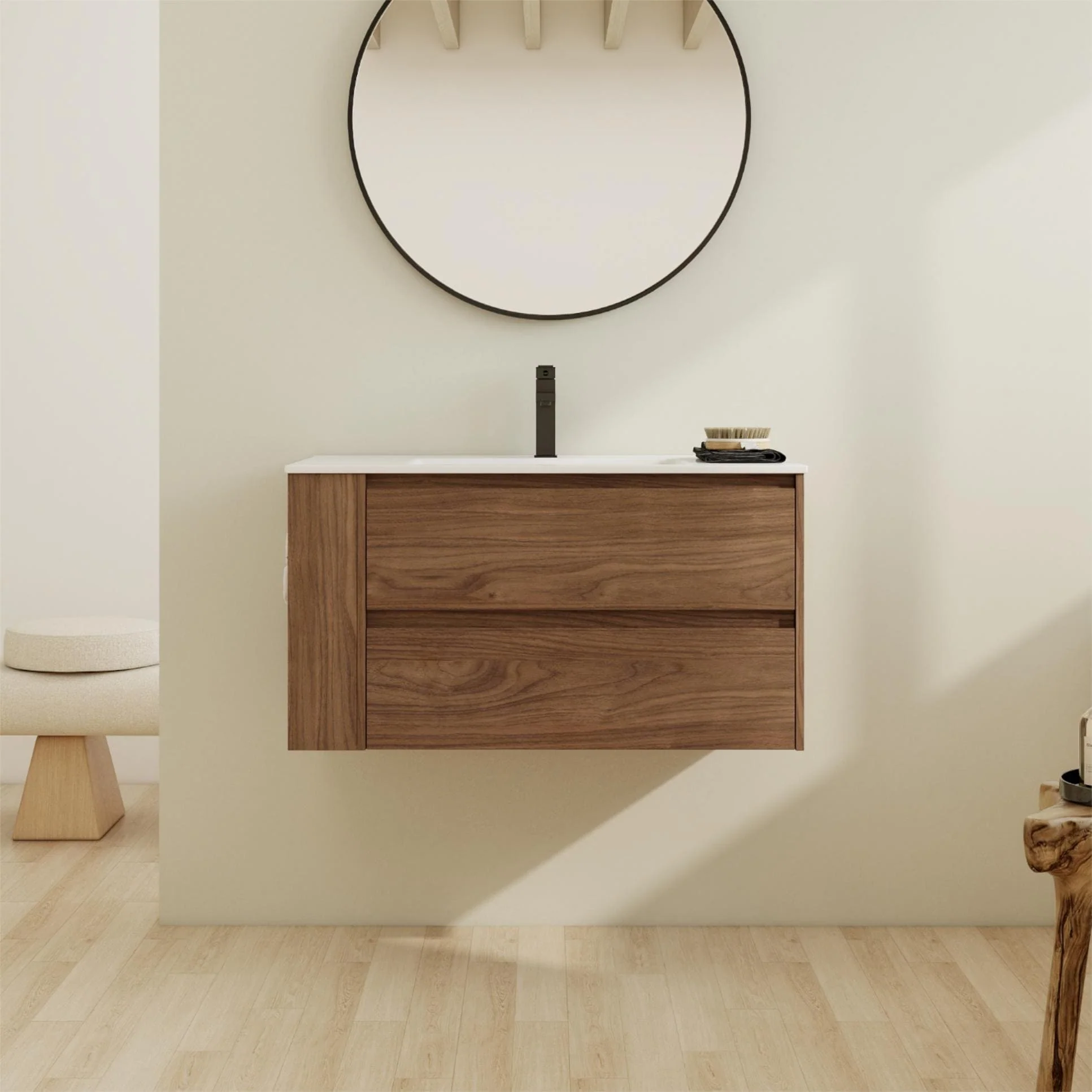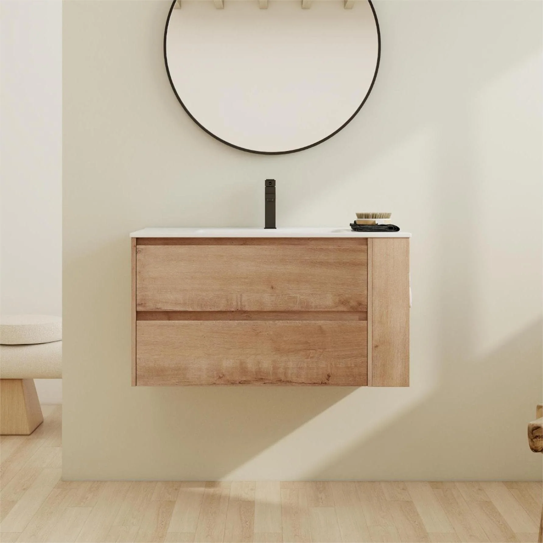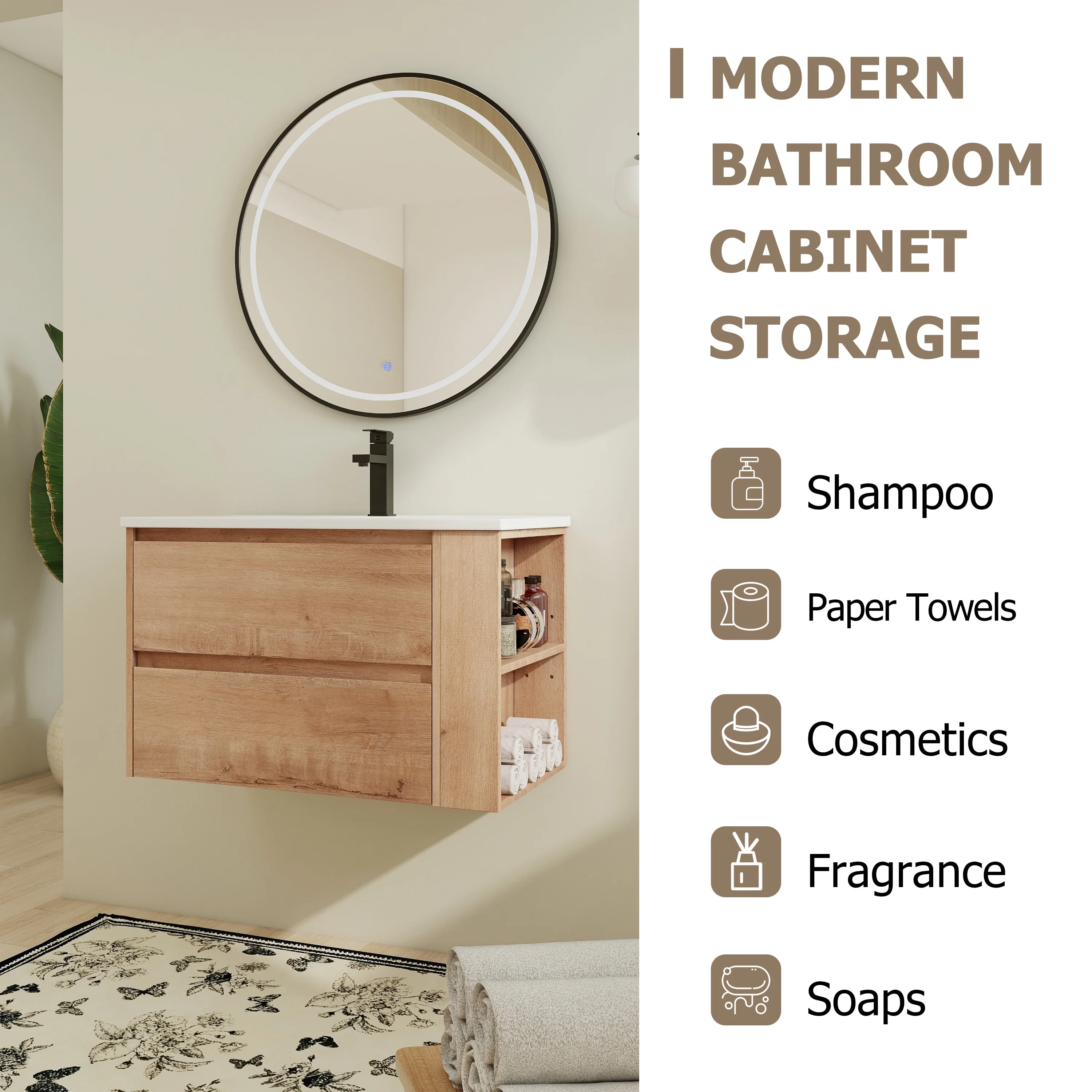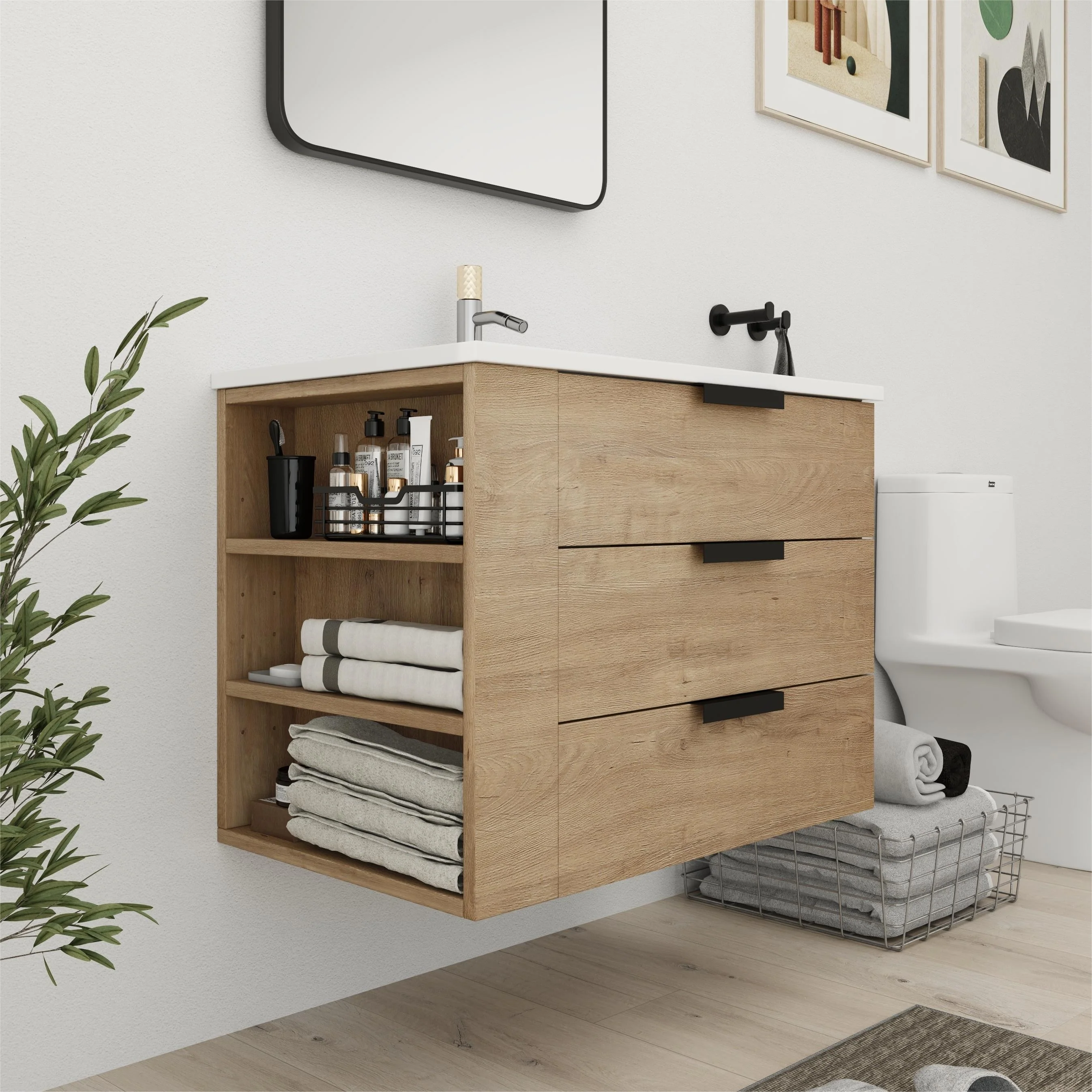 This modern and ergonomic vanity comes with soft-close drawers, providing ample storage space for all your bathroom essentials. The side adjustable shelves allow for free customization of space.