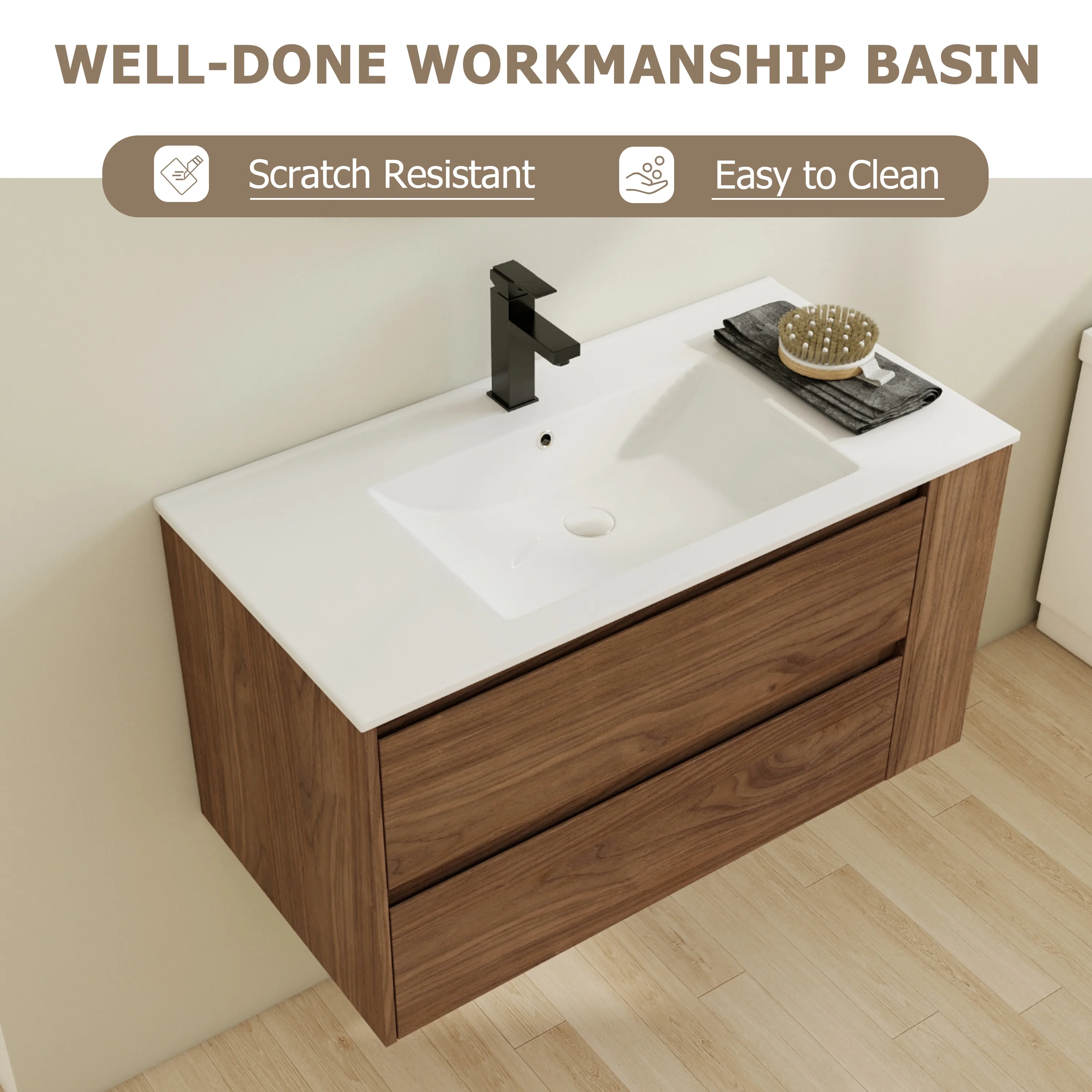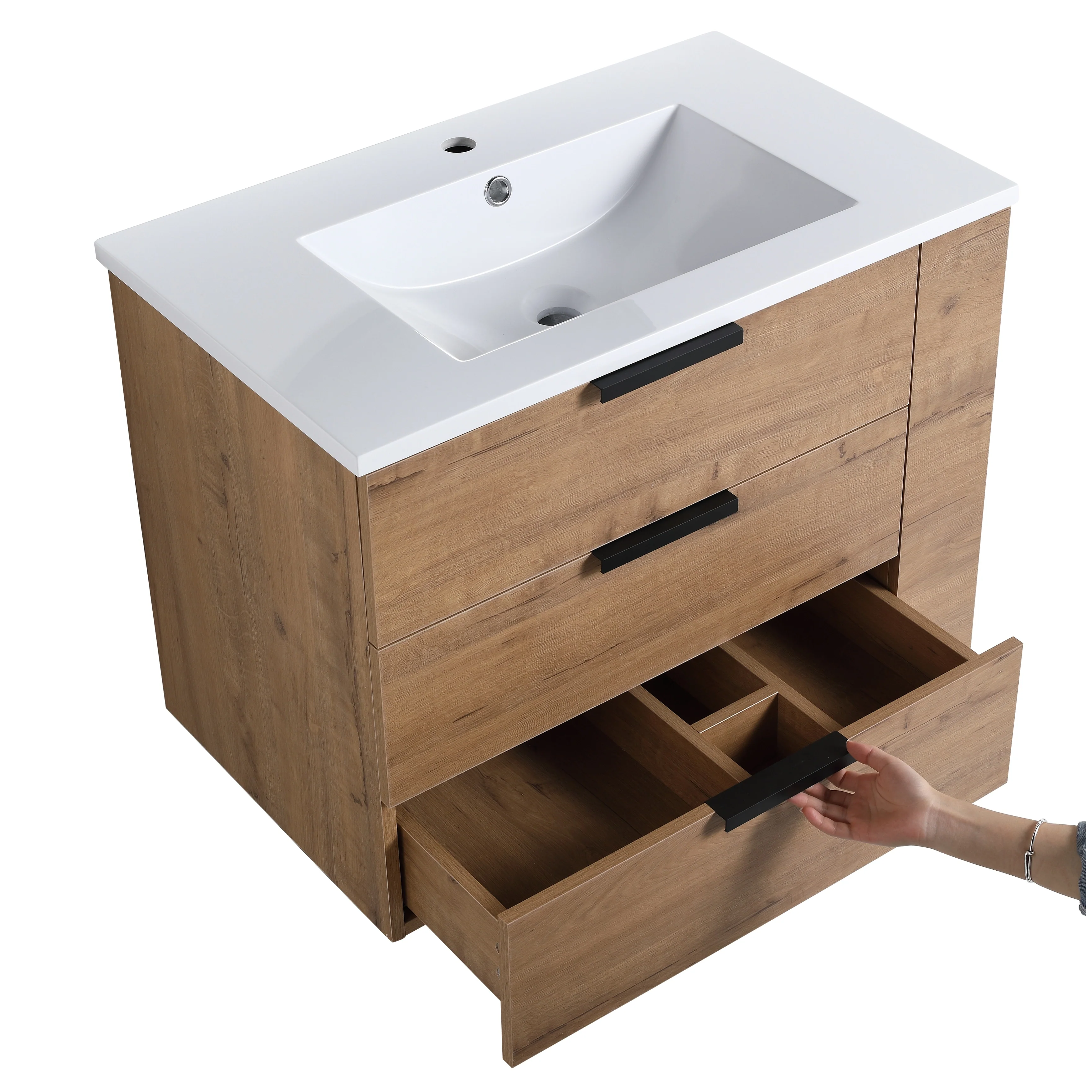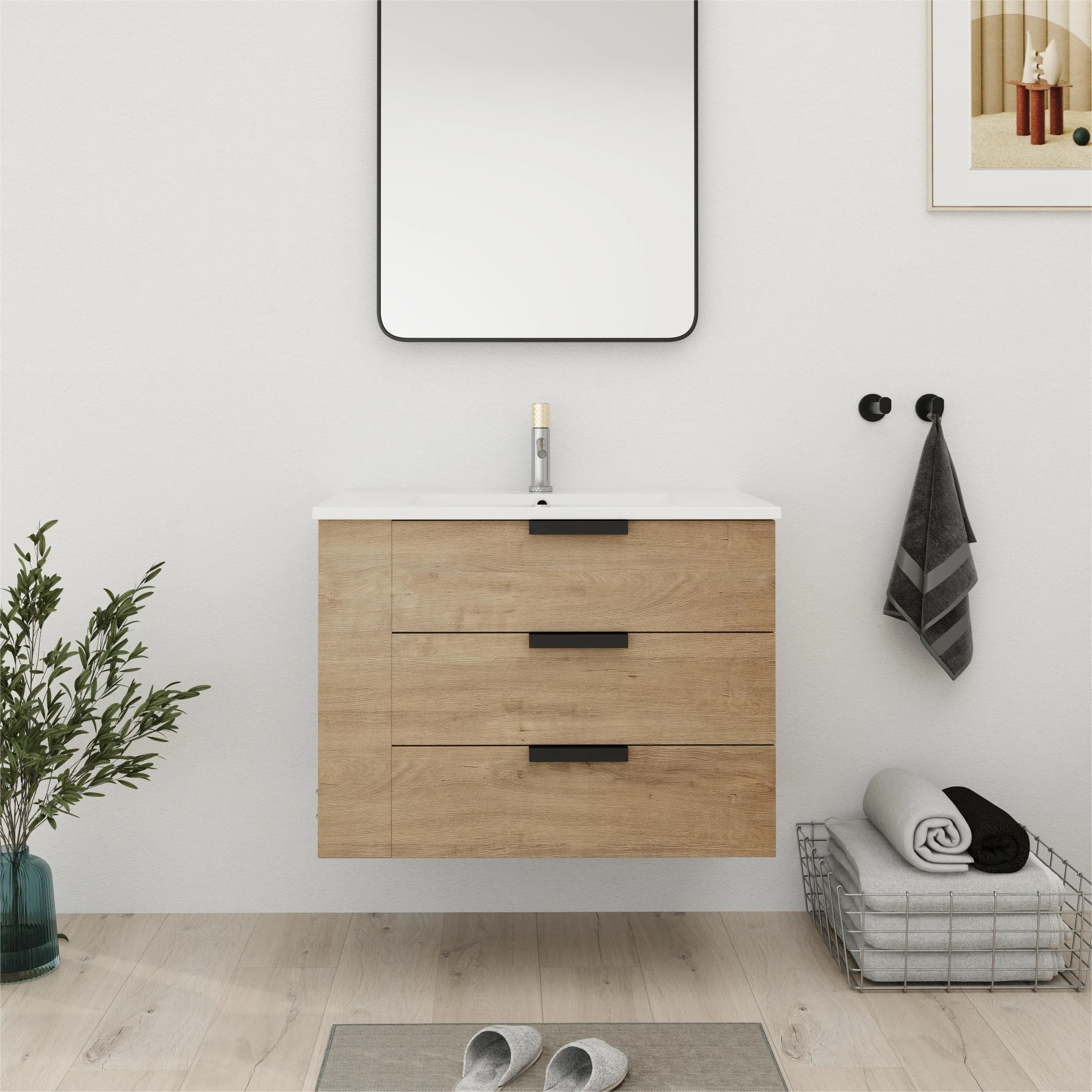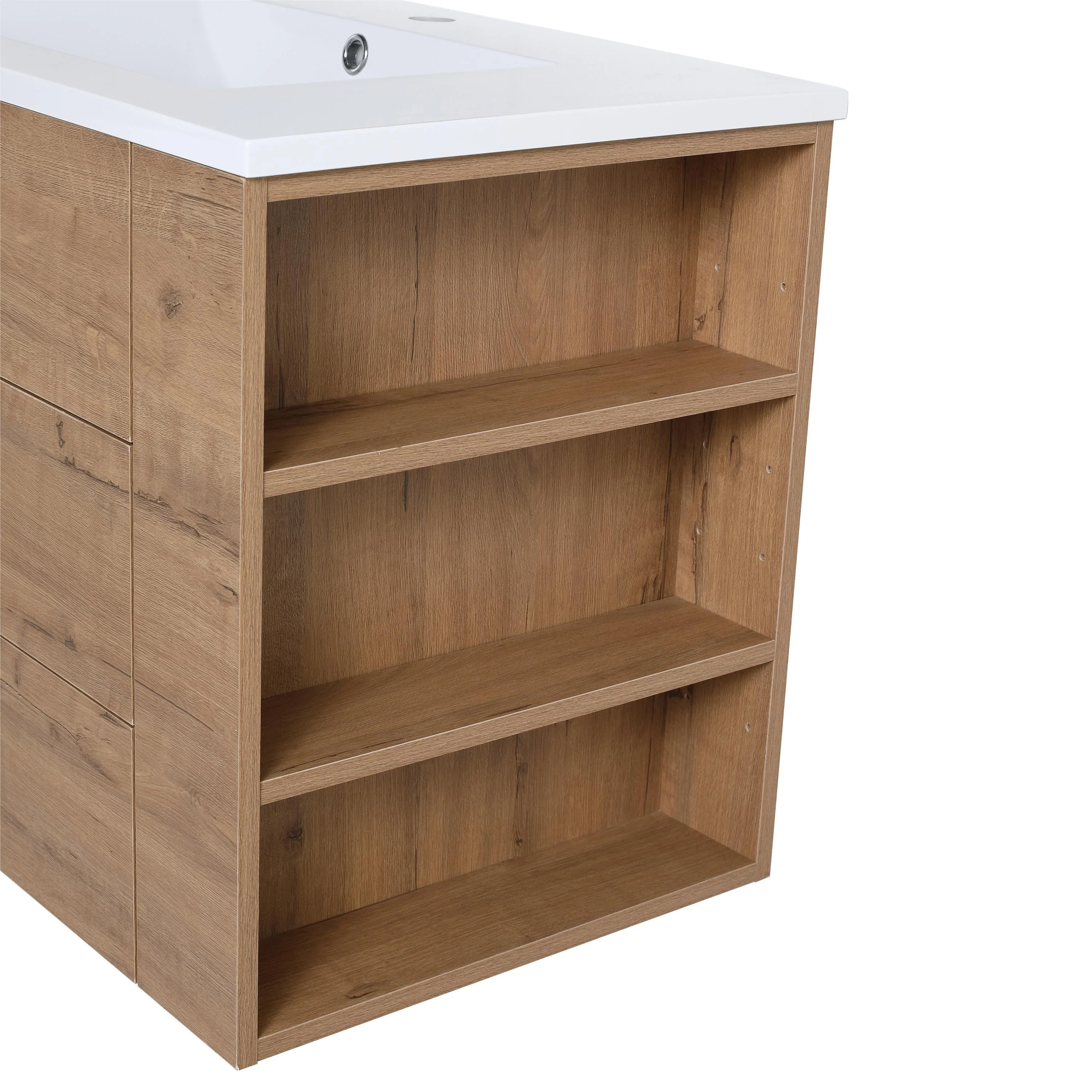 This modern and ergonomic vanity comes with soft-close drawers, providing ample storage space for all your bathroom essentials. The side adjustable shelves allow for free customization of space.