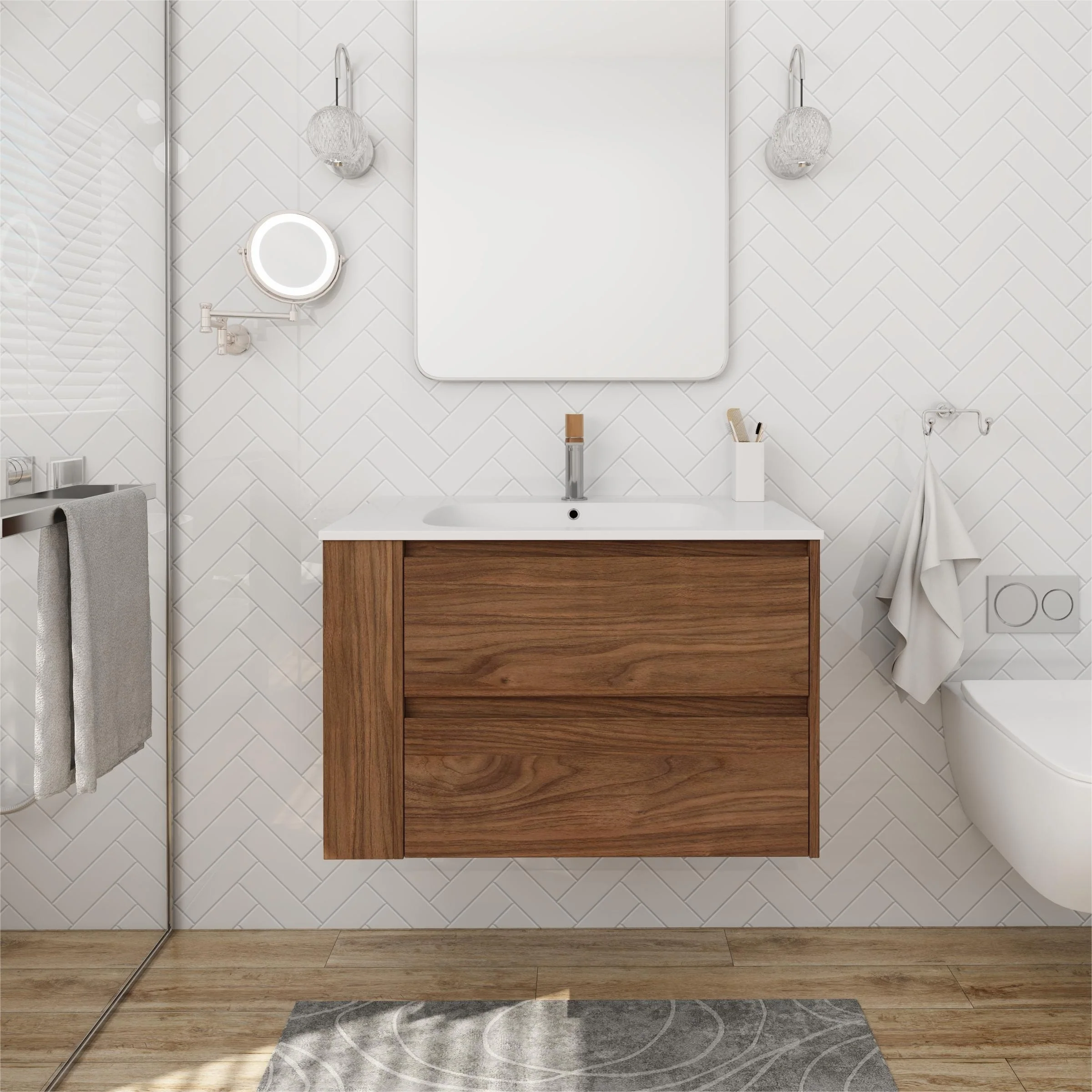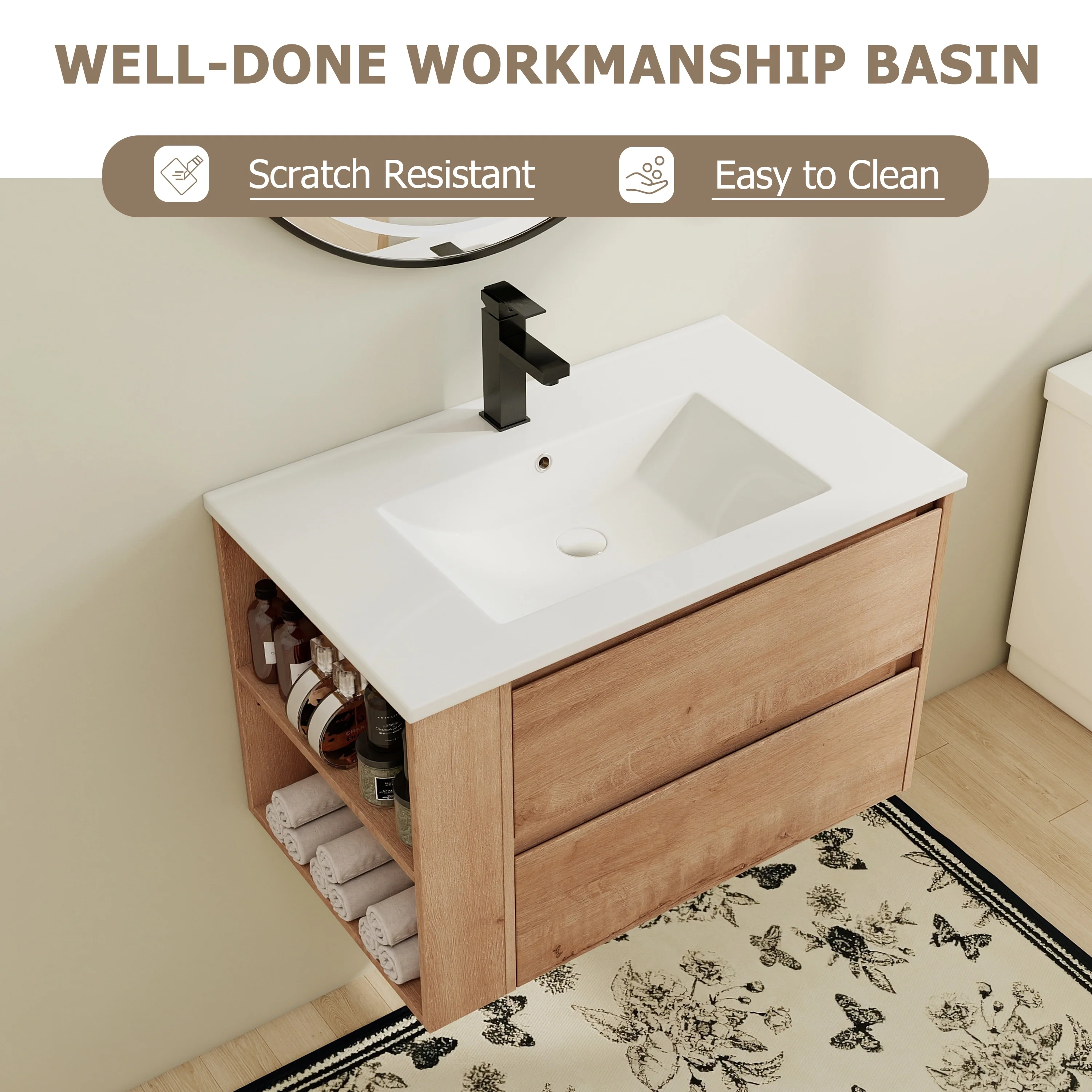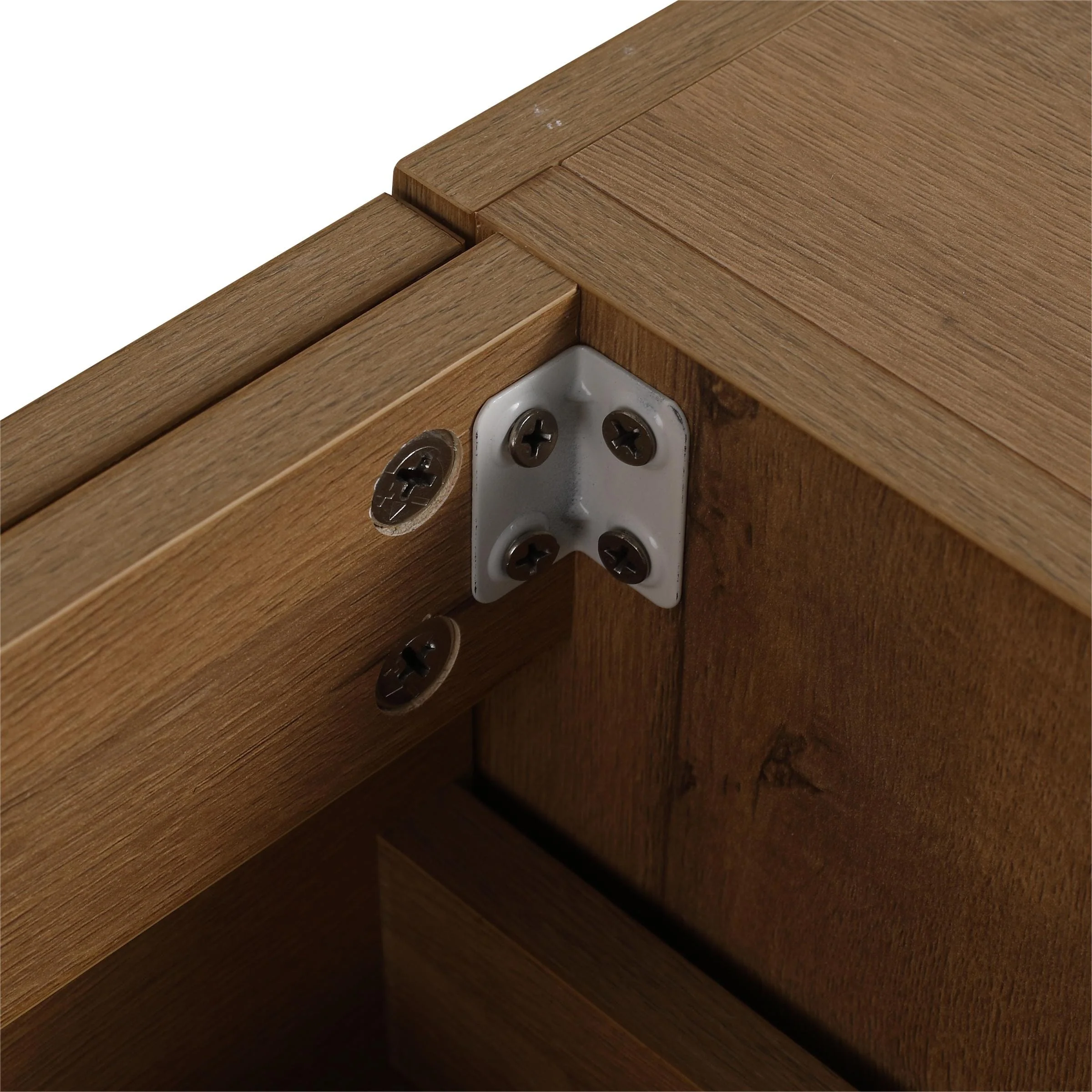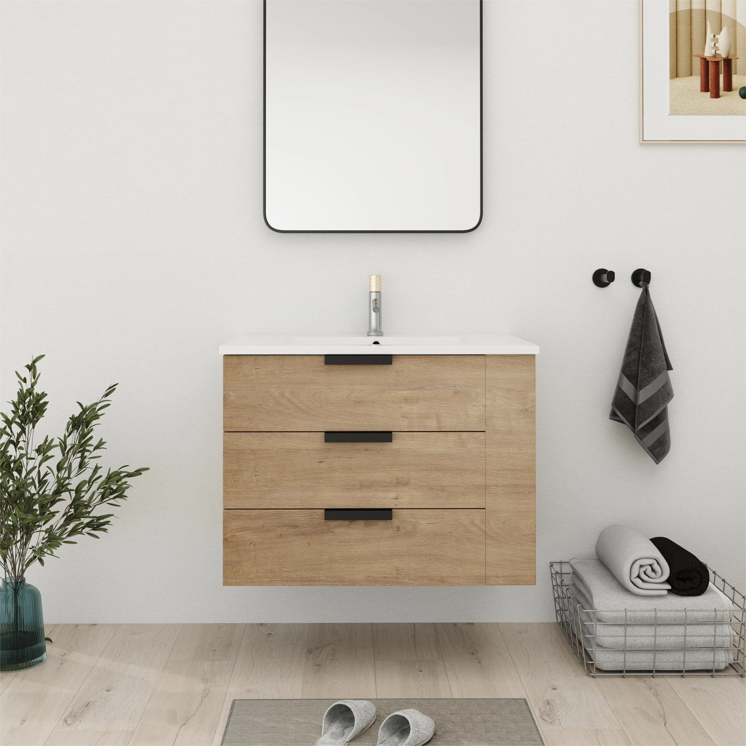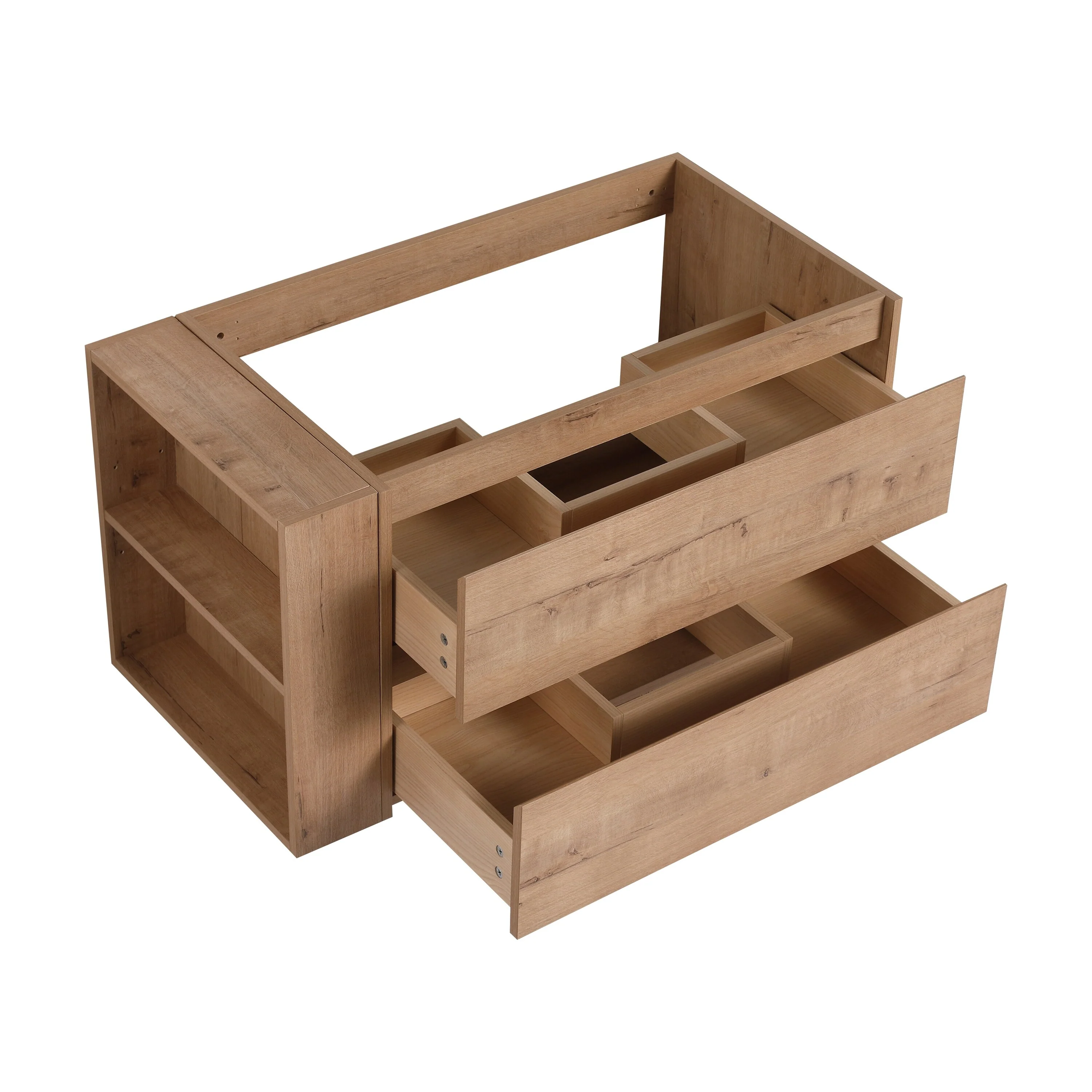 This modern and ergonomic vanity comes with soft-close drawers, providing ample storage space for all your bathroom essentials. The side adjustable shelves allow for free customization of space.