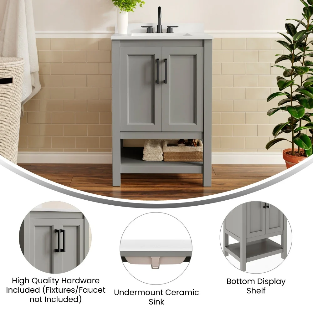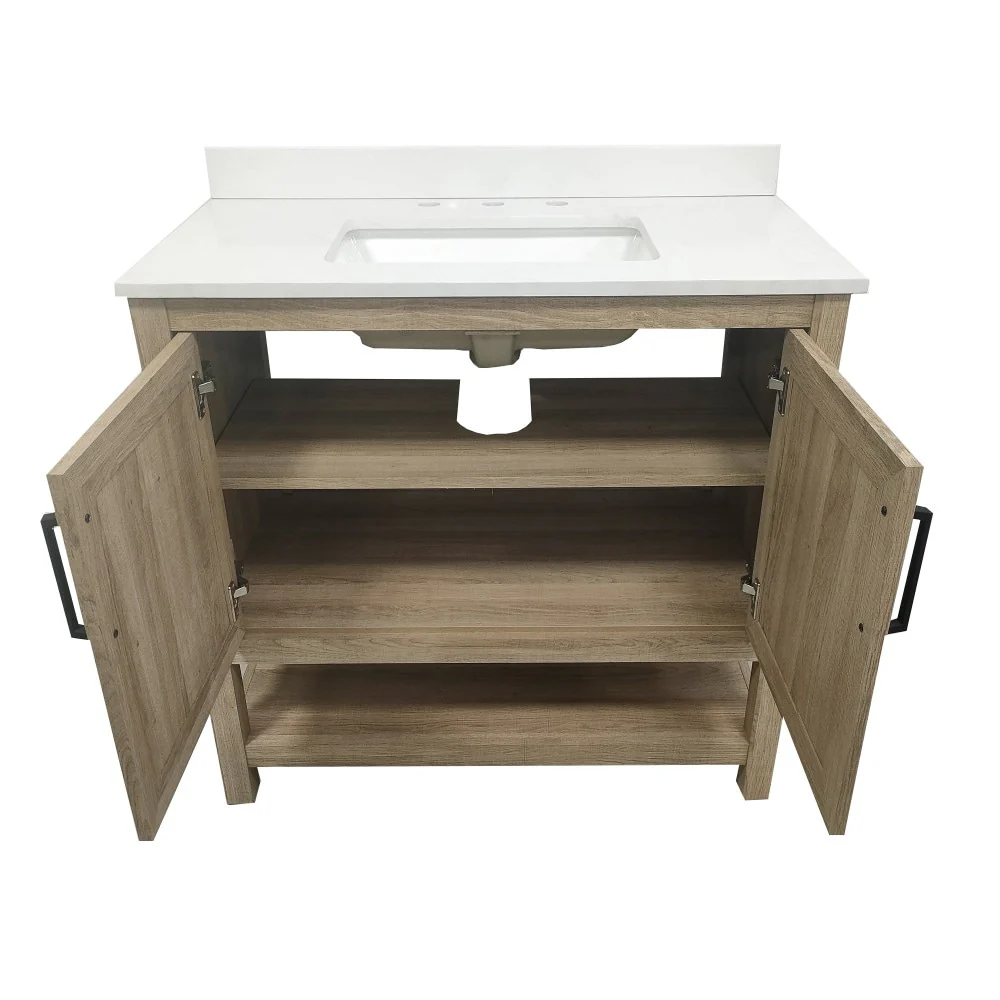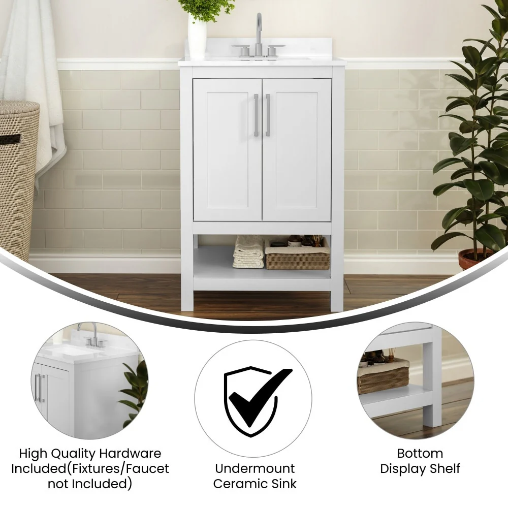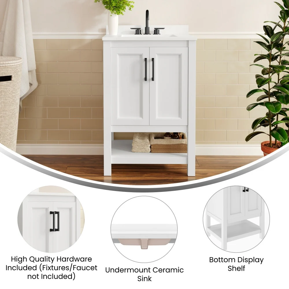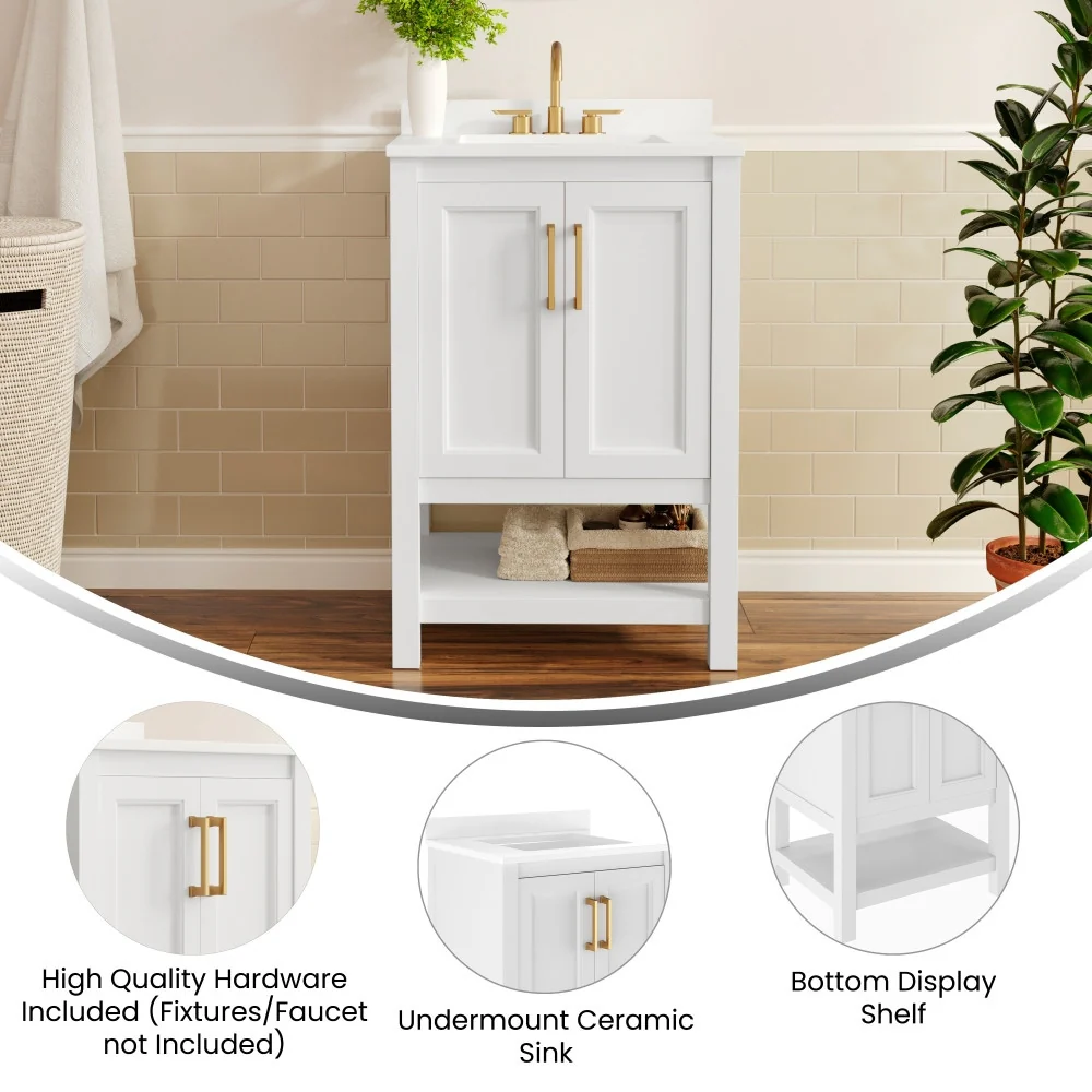 - Includes Cabinet, Countertop, Backsplash, and Ceramic Sink (Faucet and Drain Not Included)