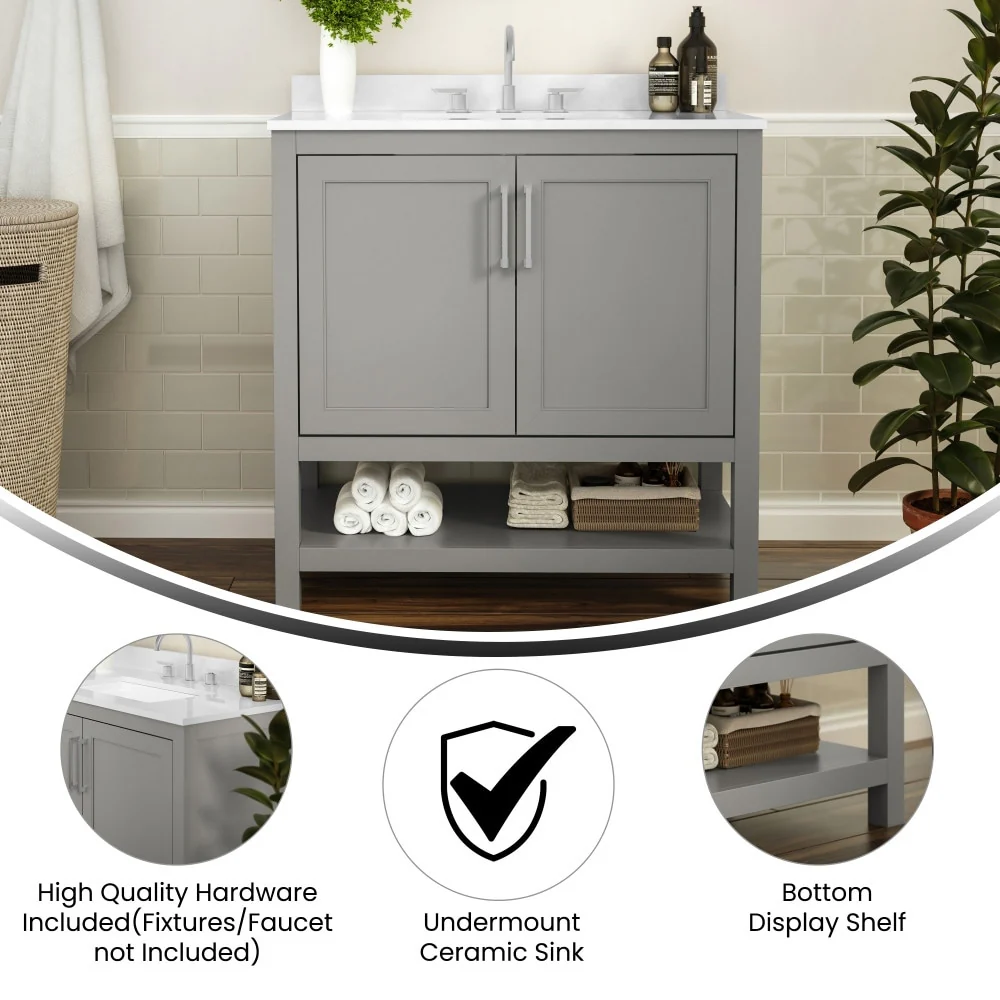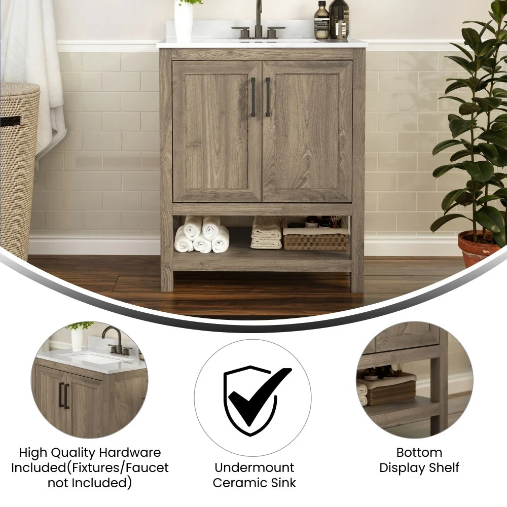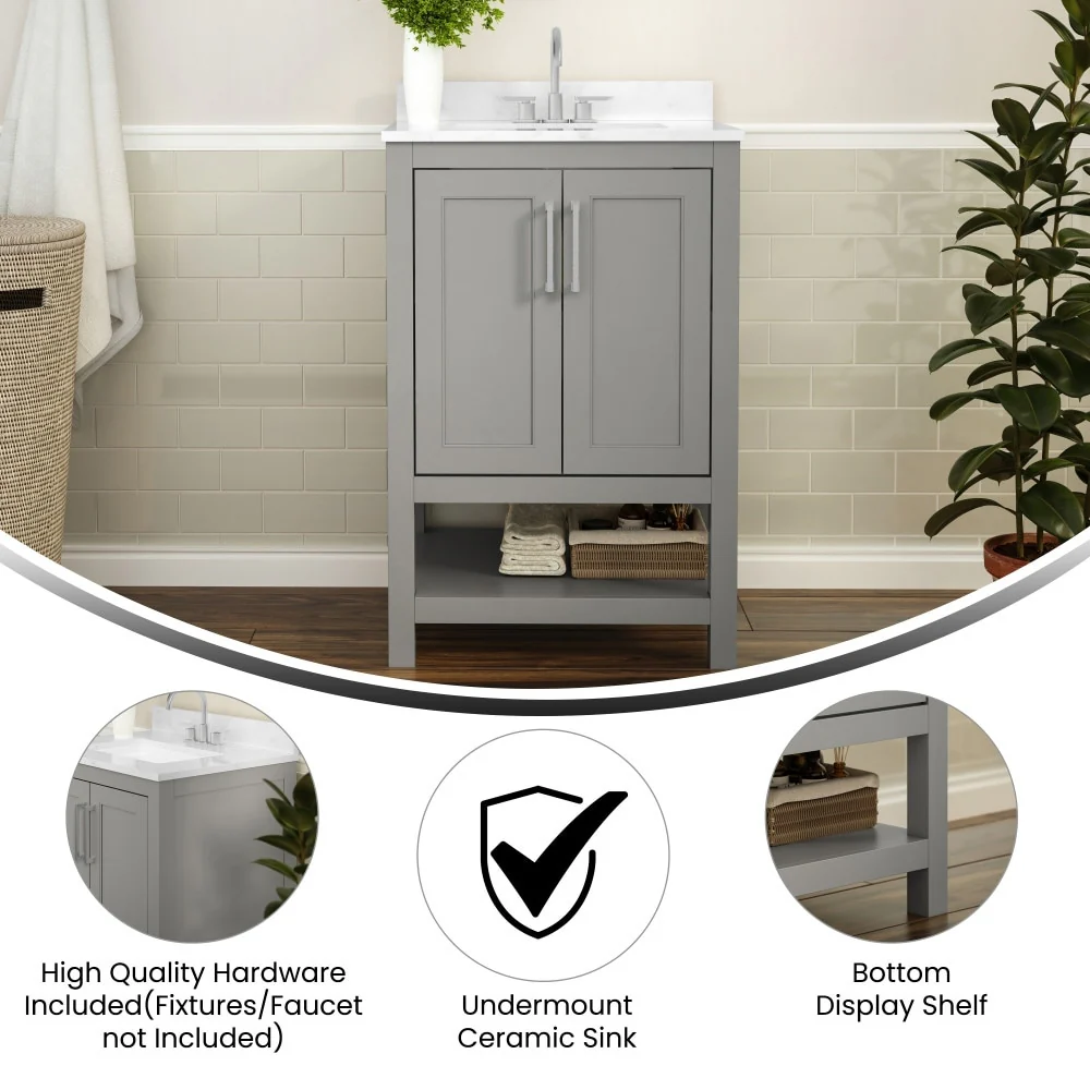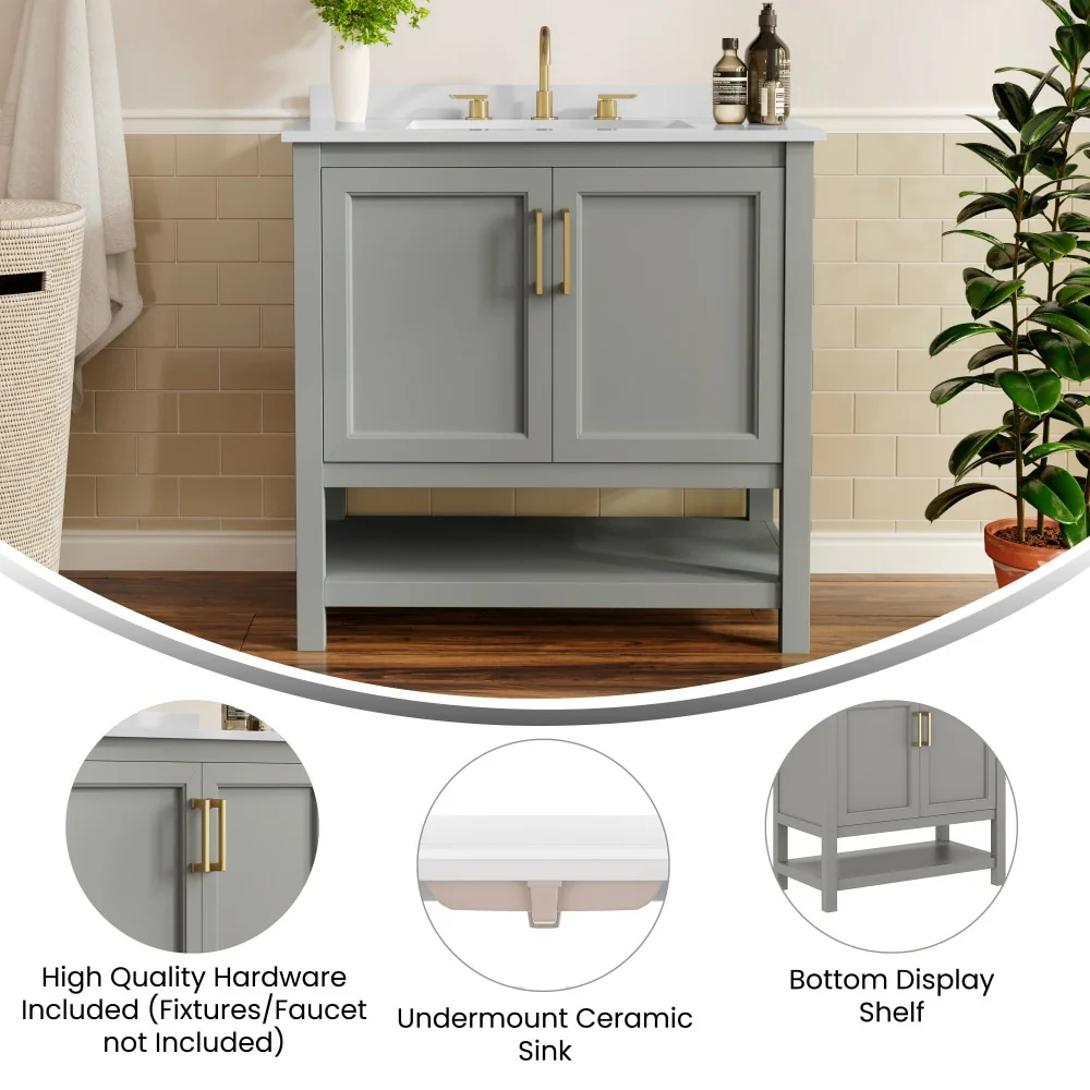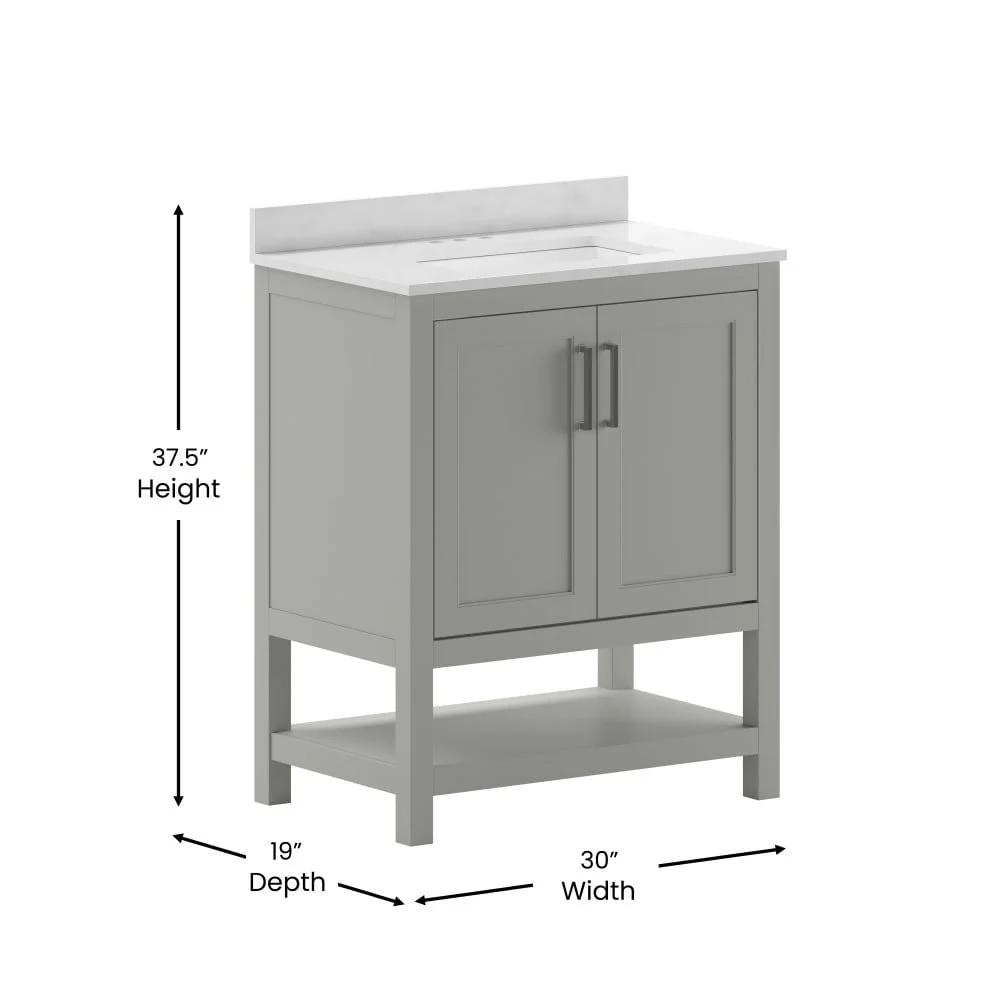 - Includes Cabinet, Countertop, Backsplash, and Ceramic Sink (Faucet and Drain Not Included)