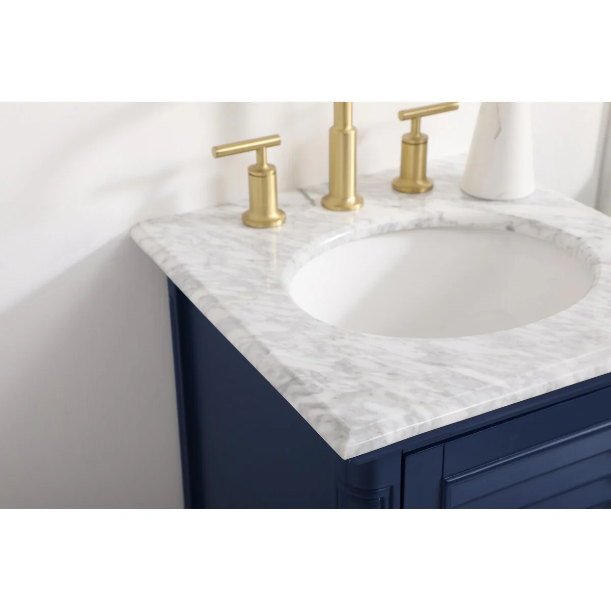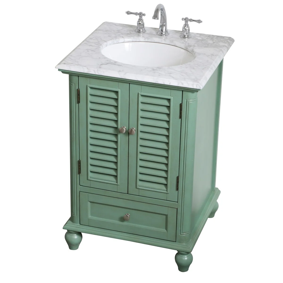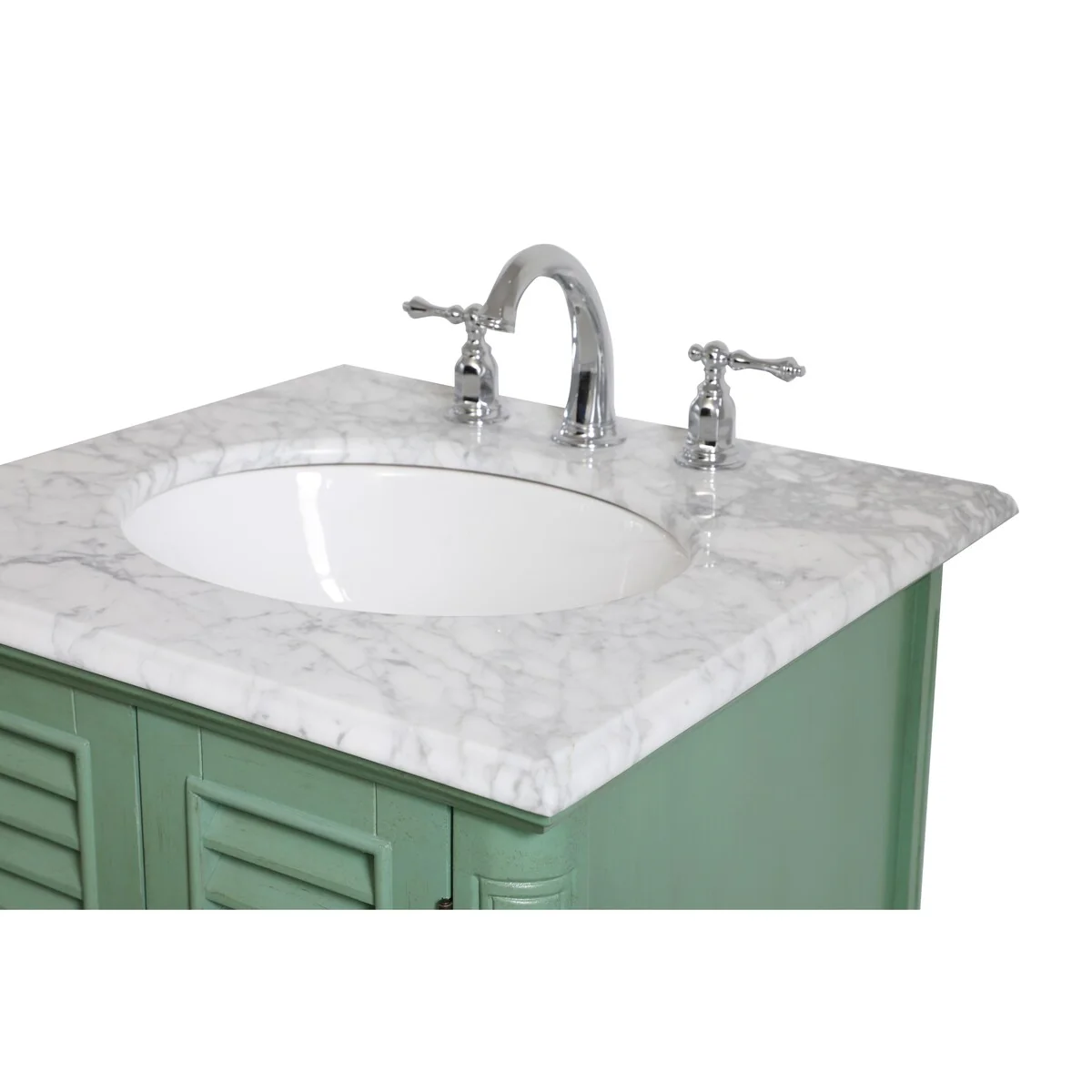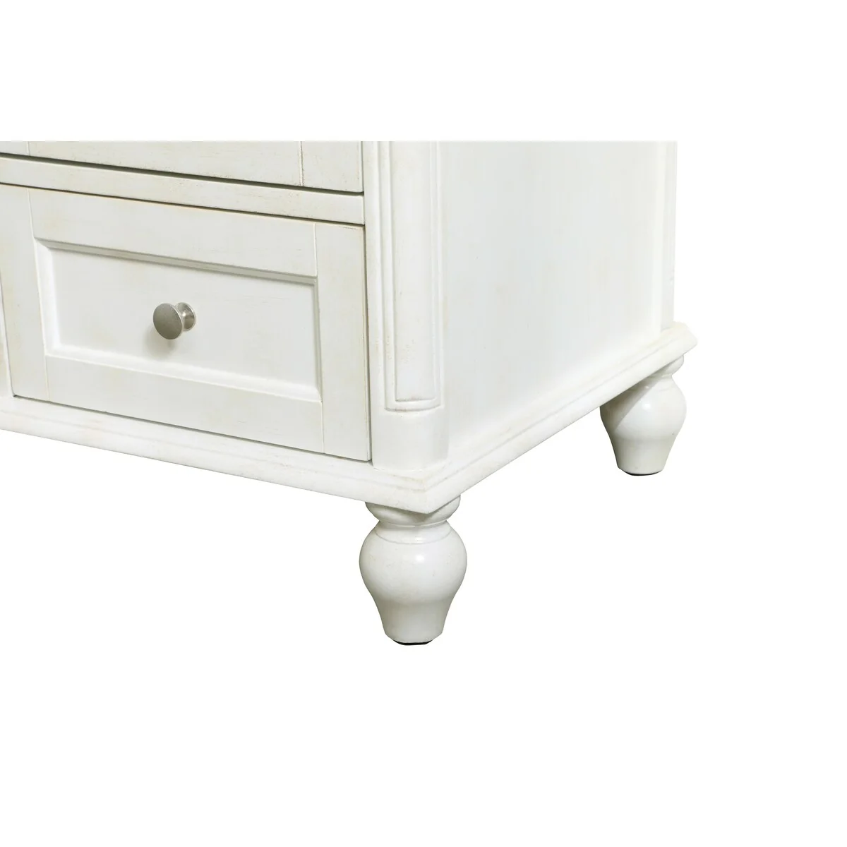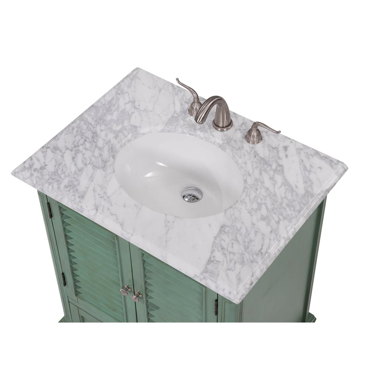 - Distressed antique finish with a luxurious Carrara White marble countertop