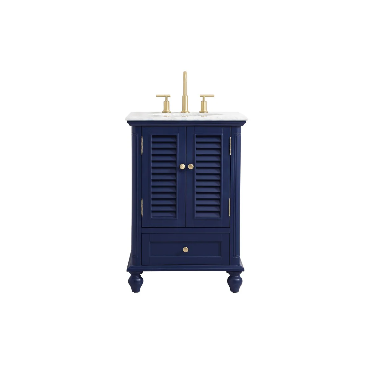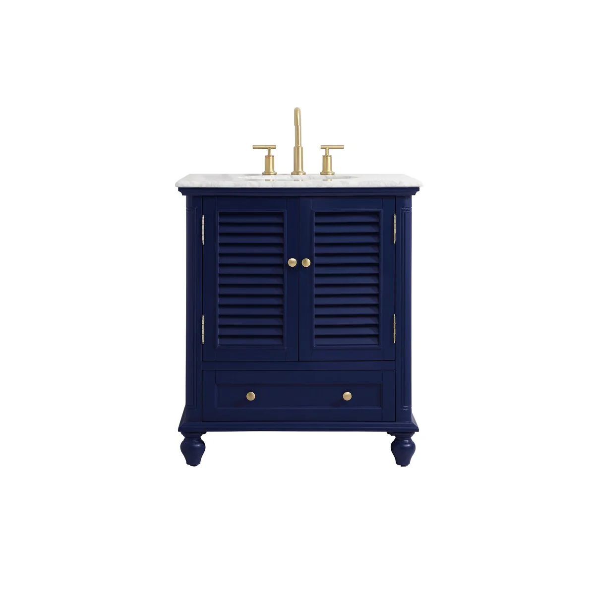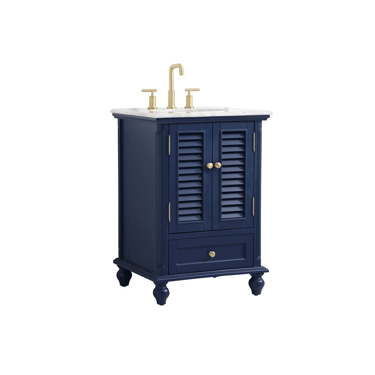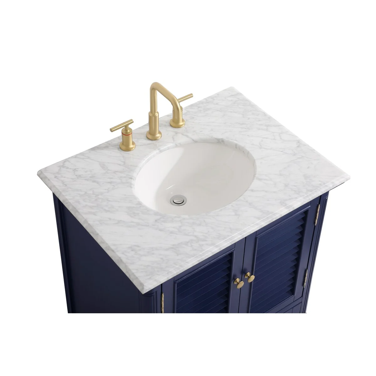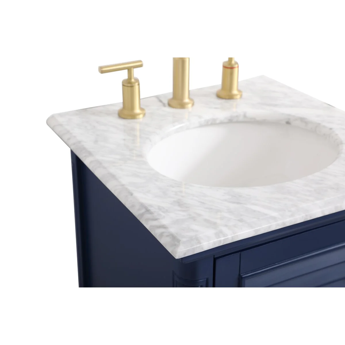 - Distressed antique finish with a luxurious Carrara White marble countertop