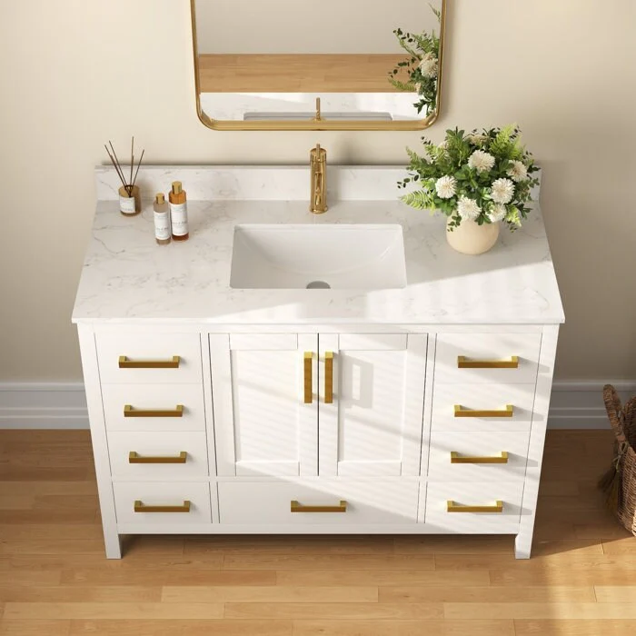 - No assembly required: our bathroom vanities come pre-assembled, saving you the time and effort of assembling them yourself and avoiding the problem of missing parts. Drawers are removable for easy cleaning and organization.