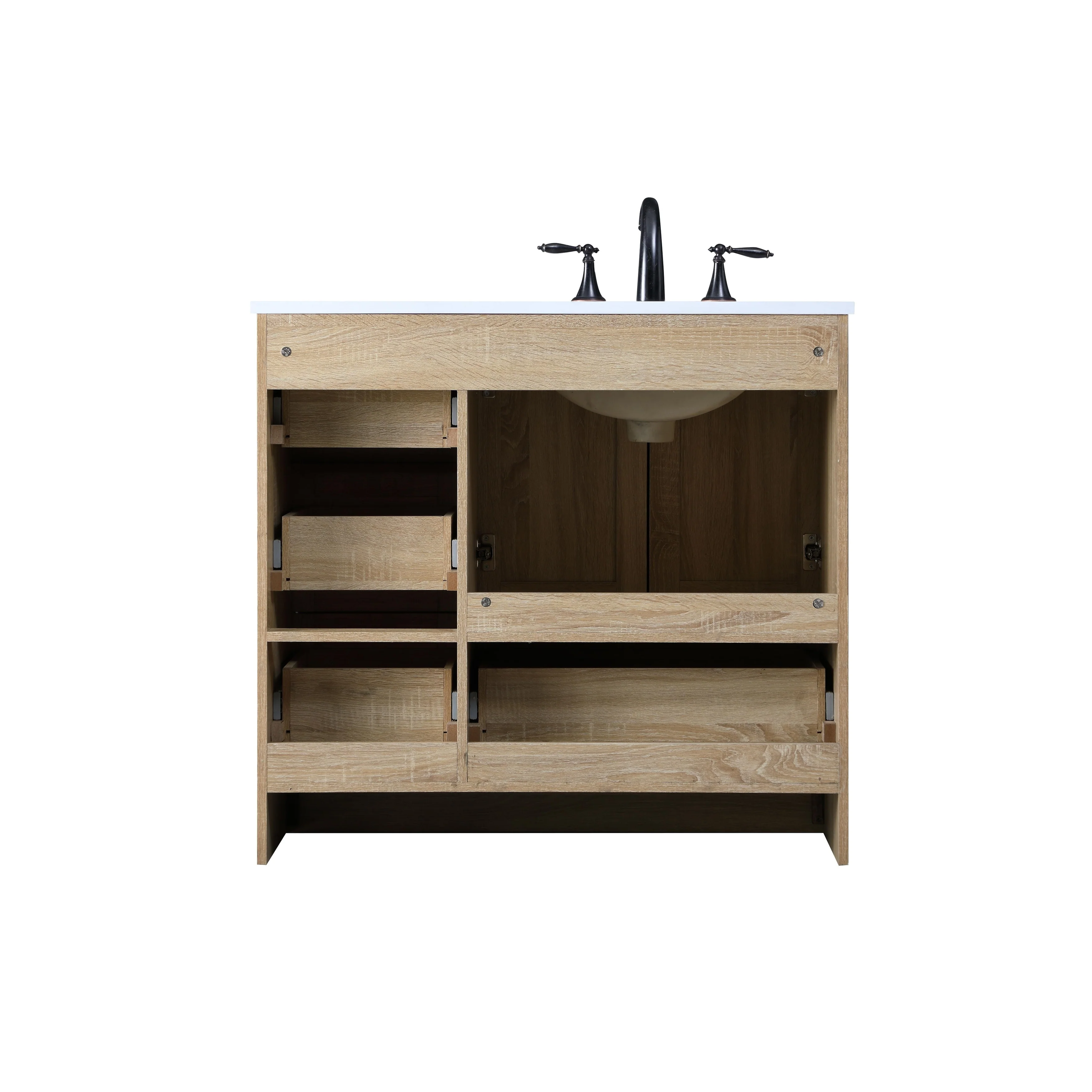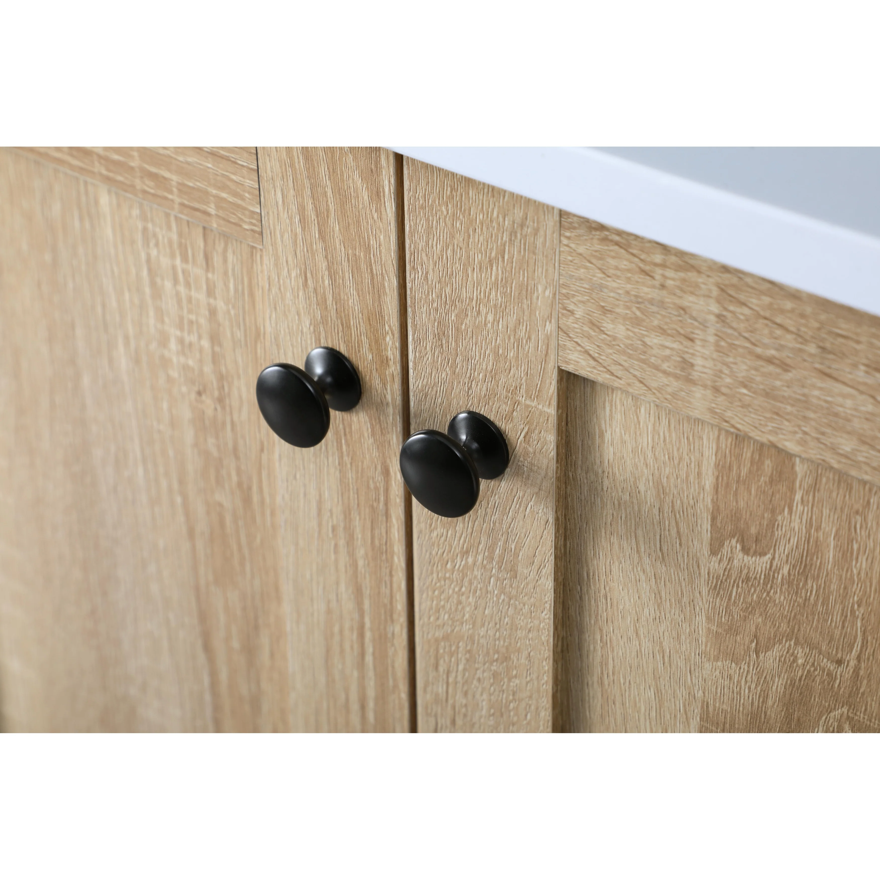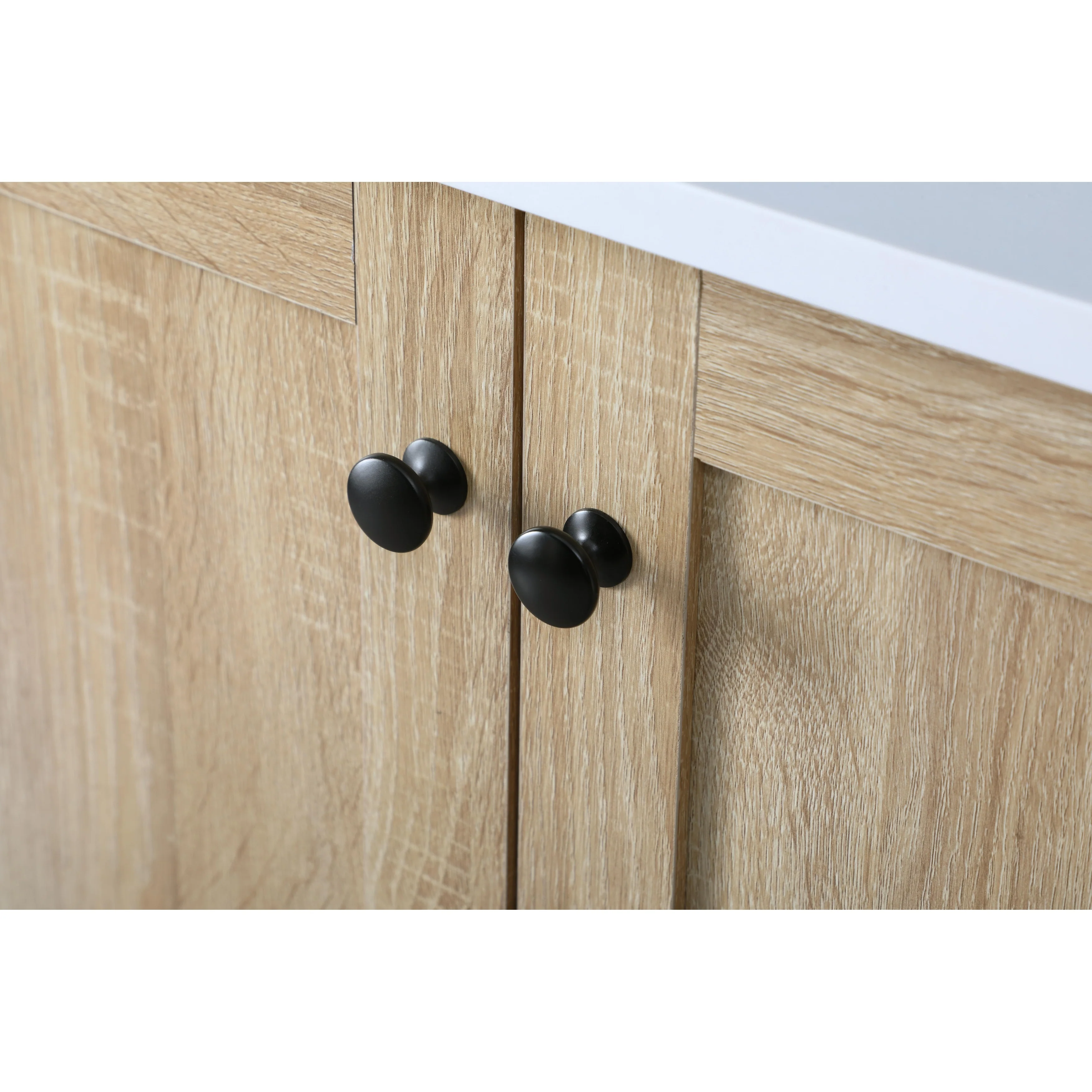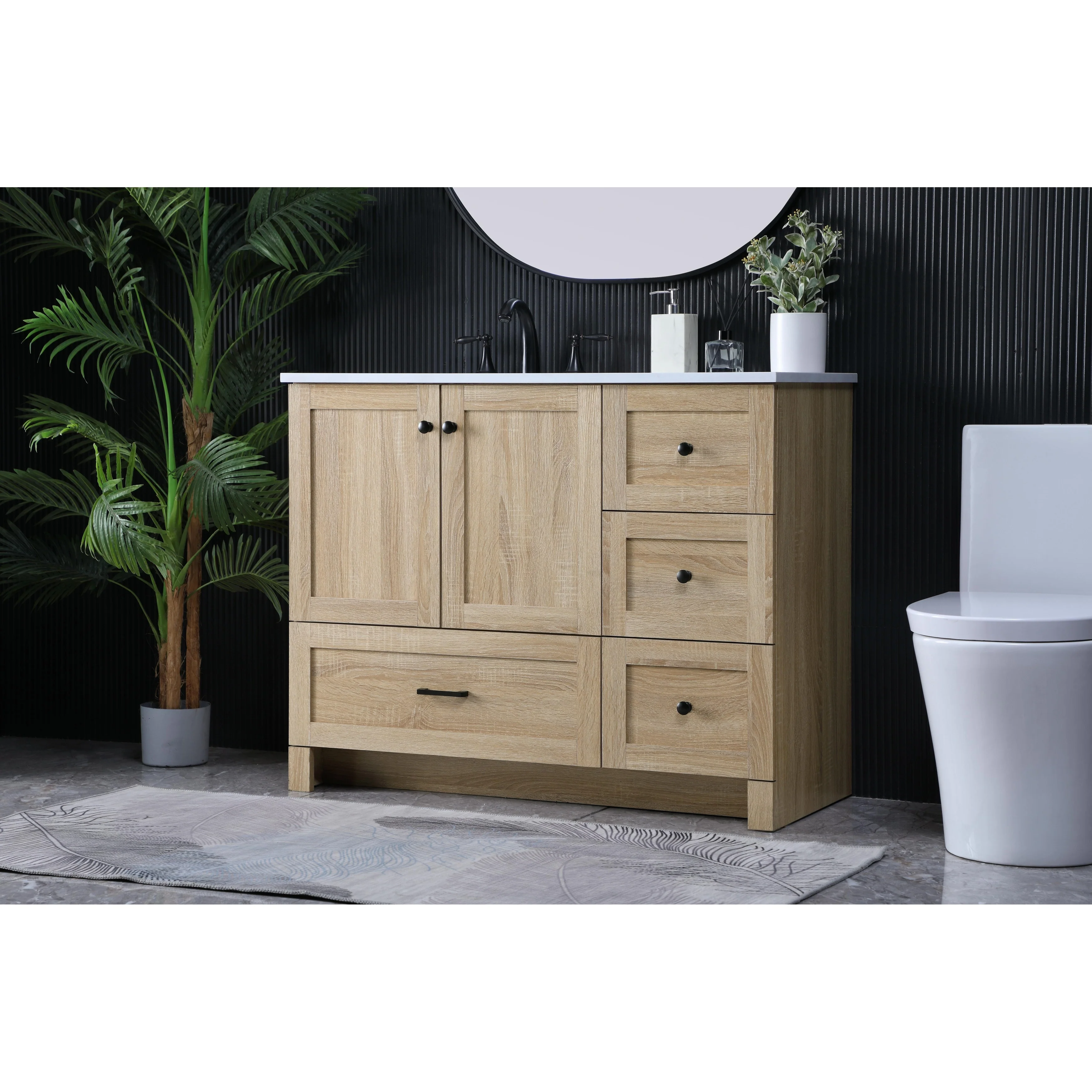 Delve into a world of minimalistic fashion and contemporary styling with this farmhouse vanity. The clean faux lines anchor the weathered design. A black handle adorns the door, hiding the base of the integrated porcelain sink, while the bottom drawer allows you to store your bathroom necessities and toiletries. The compact size makes it the perfect vanity for any bathroom or powder room, regardless of size. Crafted with a durable engineered marble top in an ivory white finish, this vanity is designed with soft-closing glides and soft-closing hinges, ensuring a quiet and smooth operation. The purposely distressed look with an MDF base adds a touch of rustic charm, making it a stylish addition to any modern home.
