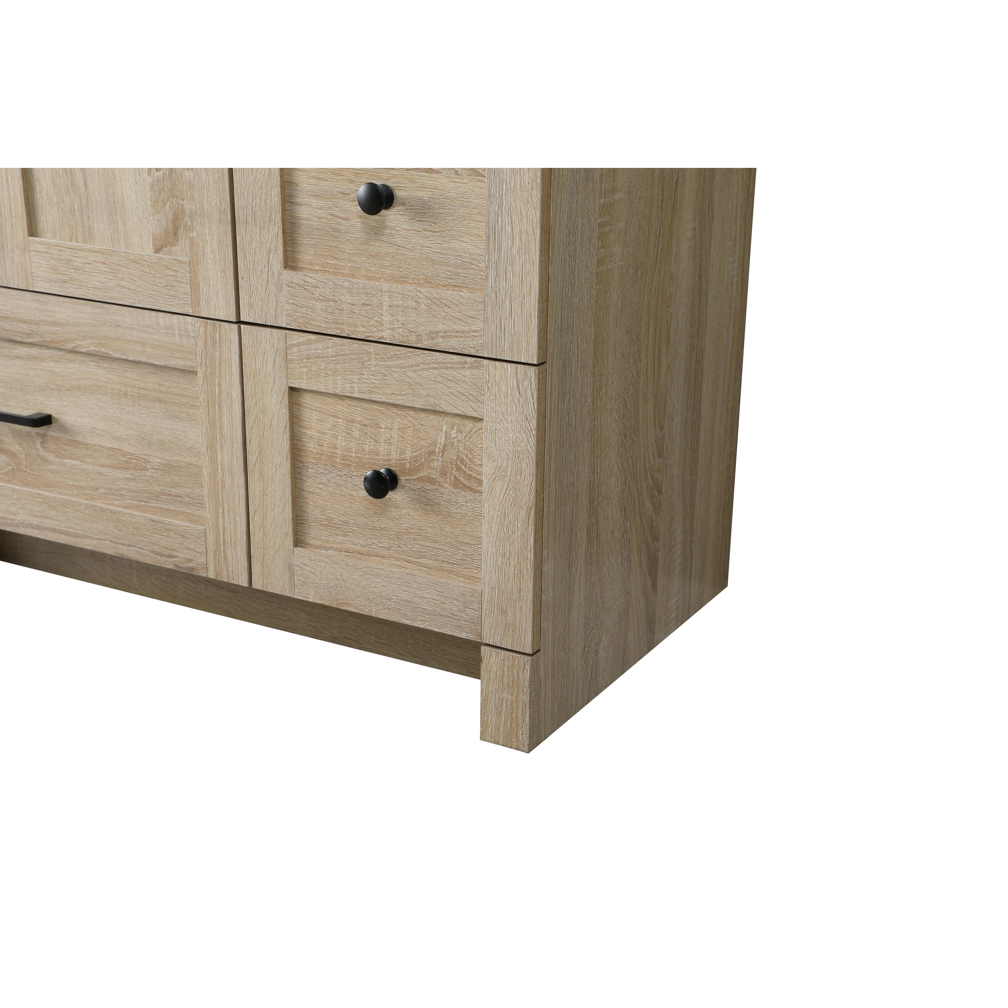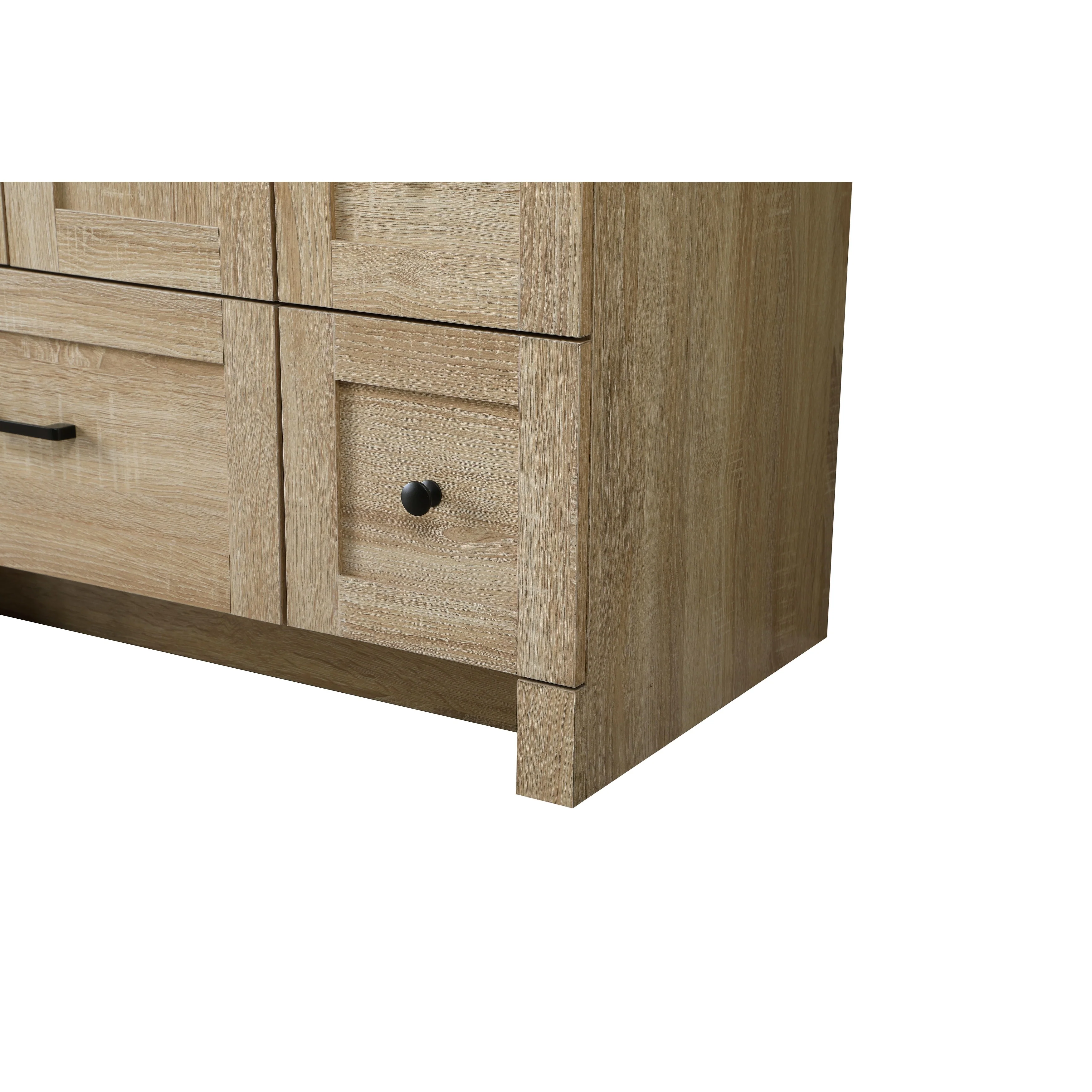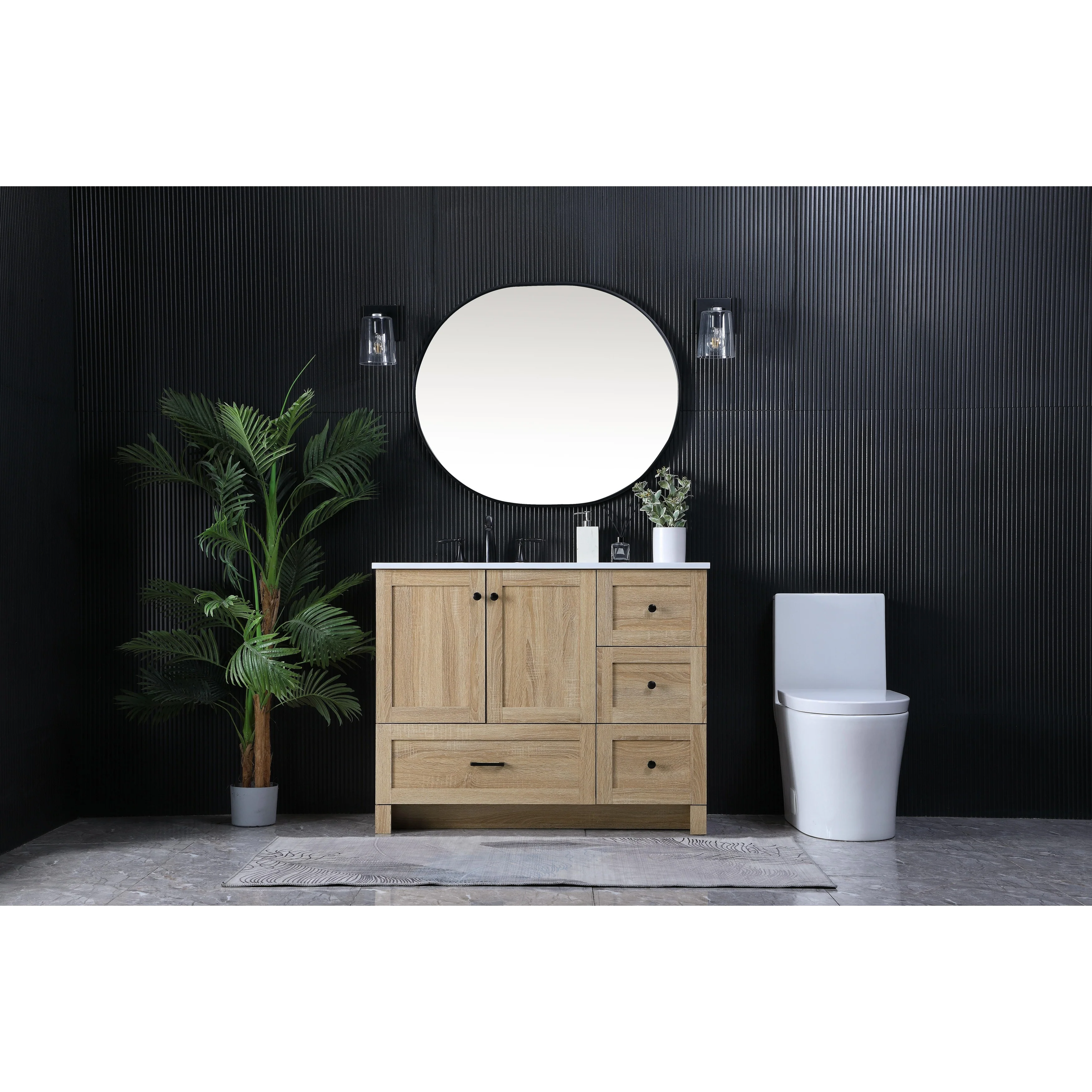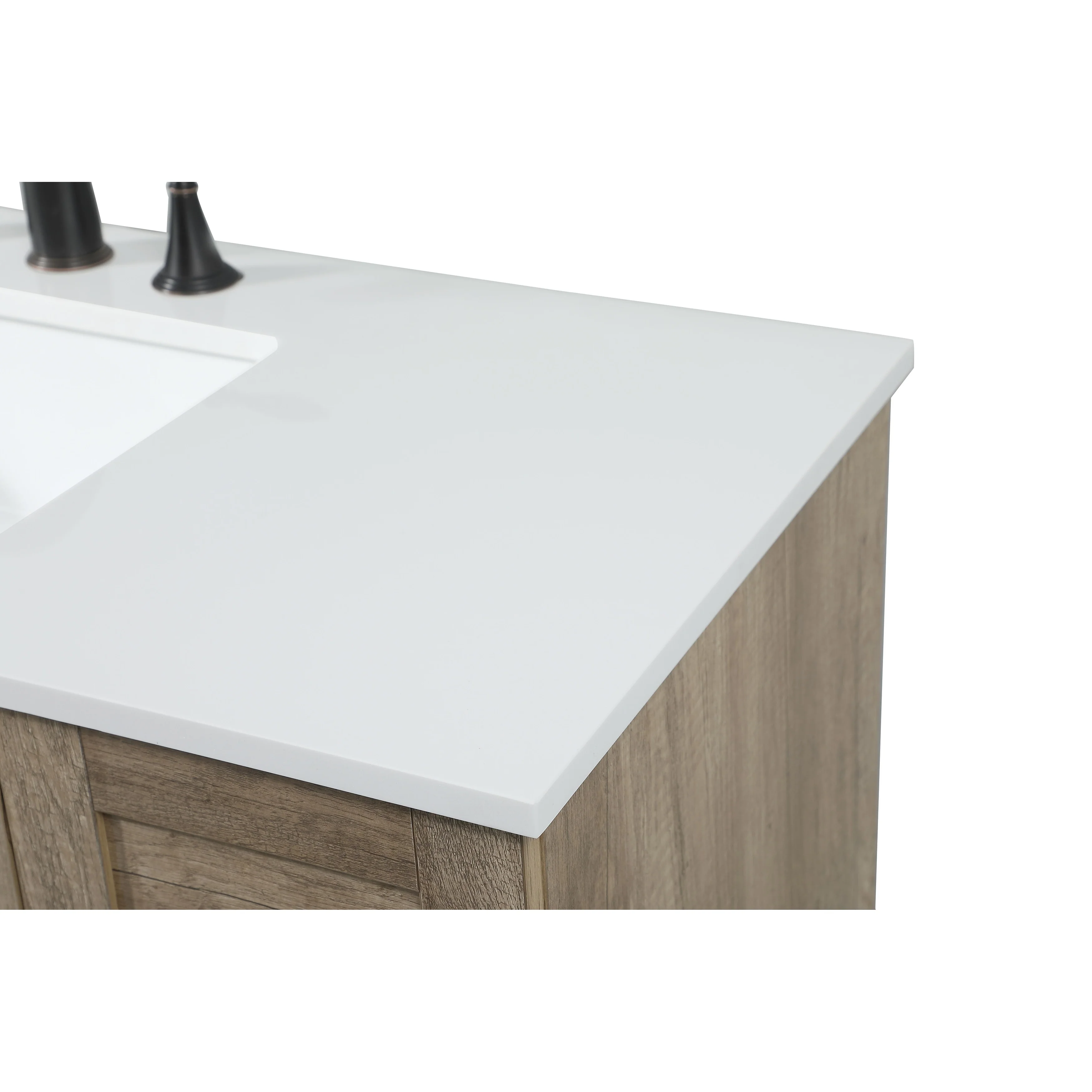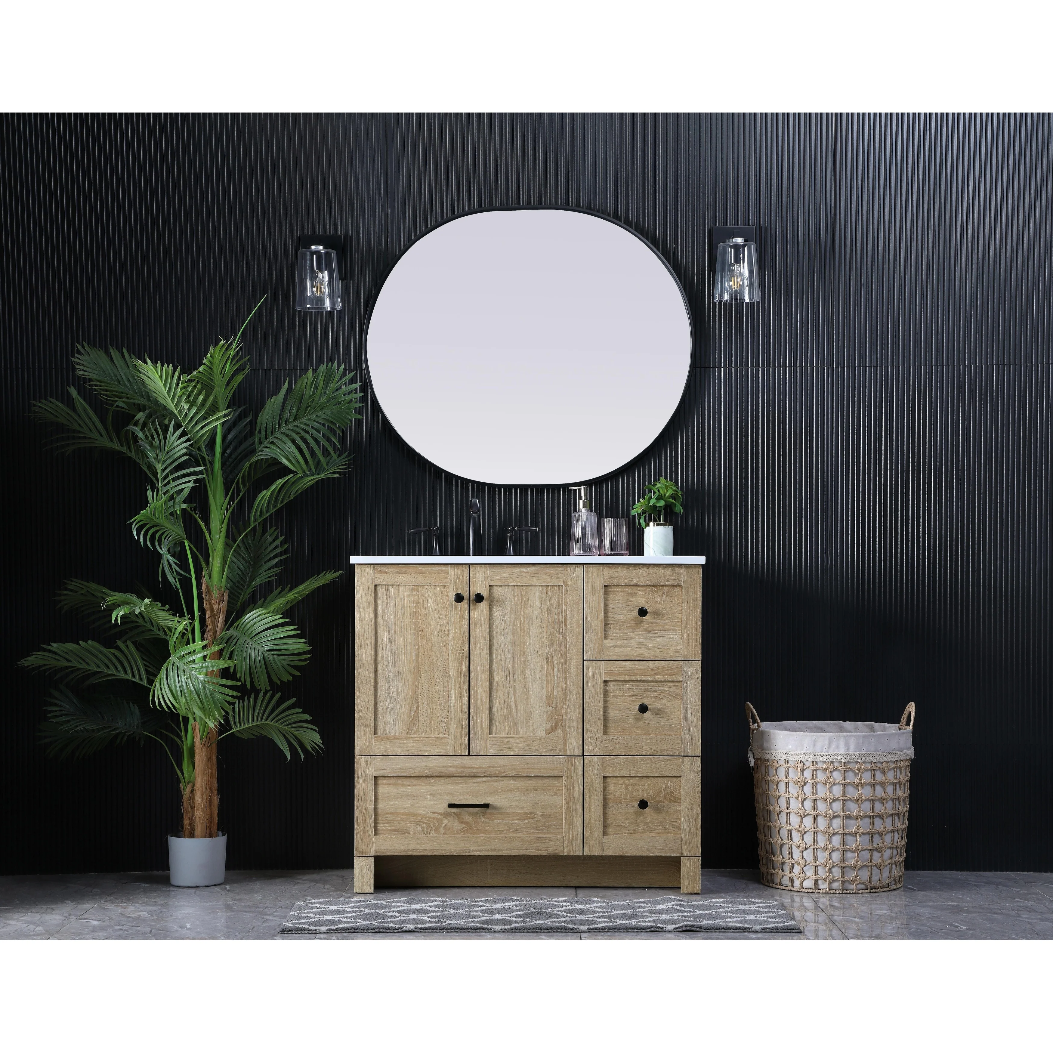 Delve into a world of minimalistic fashion and contemporary styling with this farmhouse vanity. The clean faux lines anchor the weathered design. A black handle adorns the door, hiding the base of the integrated porcelain sink, while the bottom drawer allows you to store your bathroom necessities and toiletries. The compact size makes it the perfect vanity for any bathroom or powder room, regardless of size. Crafted with a durable engineered marble top in an ivory white finish, this vanity is designed with soft-closing glides and soft-closing hinges, ensuring a quiet and smooth operation. The purposely distressed look with an MDF base adds a touch of rustic charm, making it a stylish addition to any modern home.