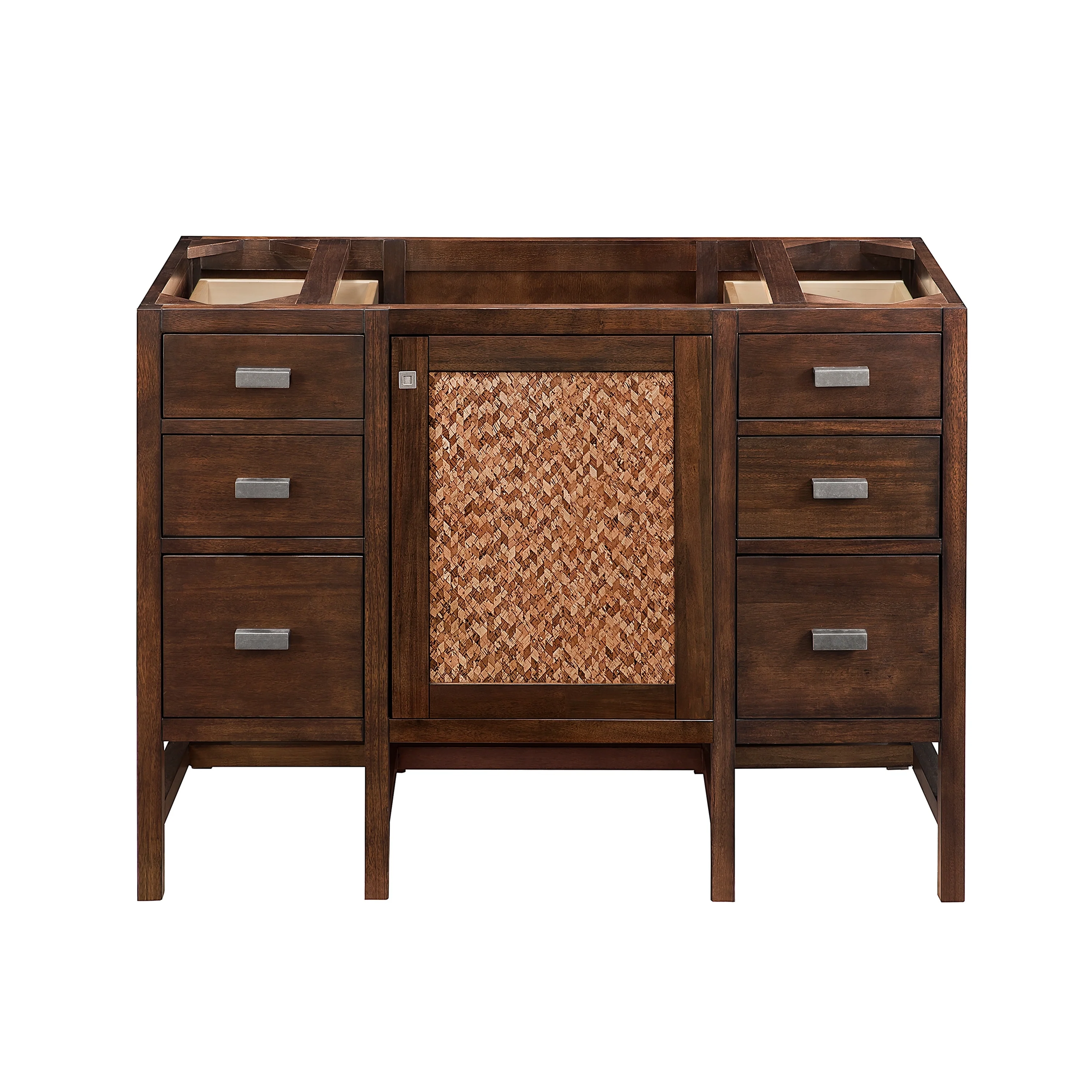 Upgrade your bathroom with the James Martin Vanities Addison 48' Single Vanity, featuring a mid-century acacia finish on parawood. This handcrafted, gender-neutral vanity is designed with a touch of luxury and Shaker-inspired details, making it a perfect fit for modern or transitional rooms. The full-extension drawers and soft-close door, both with brushed aluminum finished laminate for easy clean up, provide ample storage space. The cabinet's body is made of solid hardwood and MDF panels, ensuring durability. Pair it with any James Martin Vanity top to create a statement piece that fits your style.
