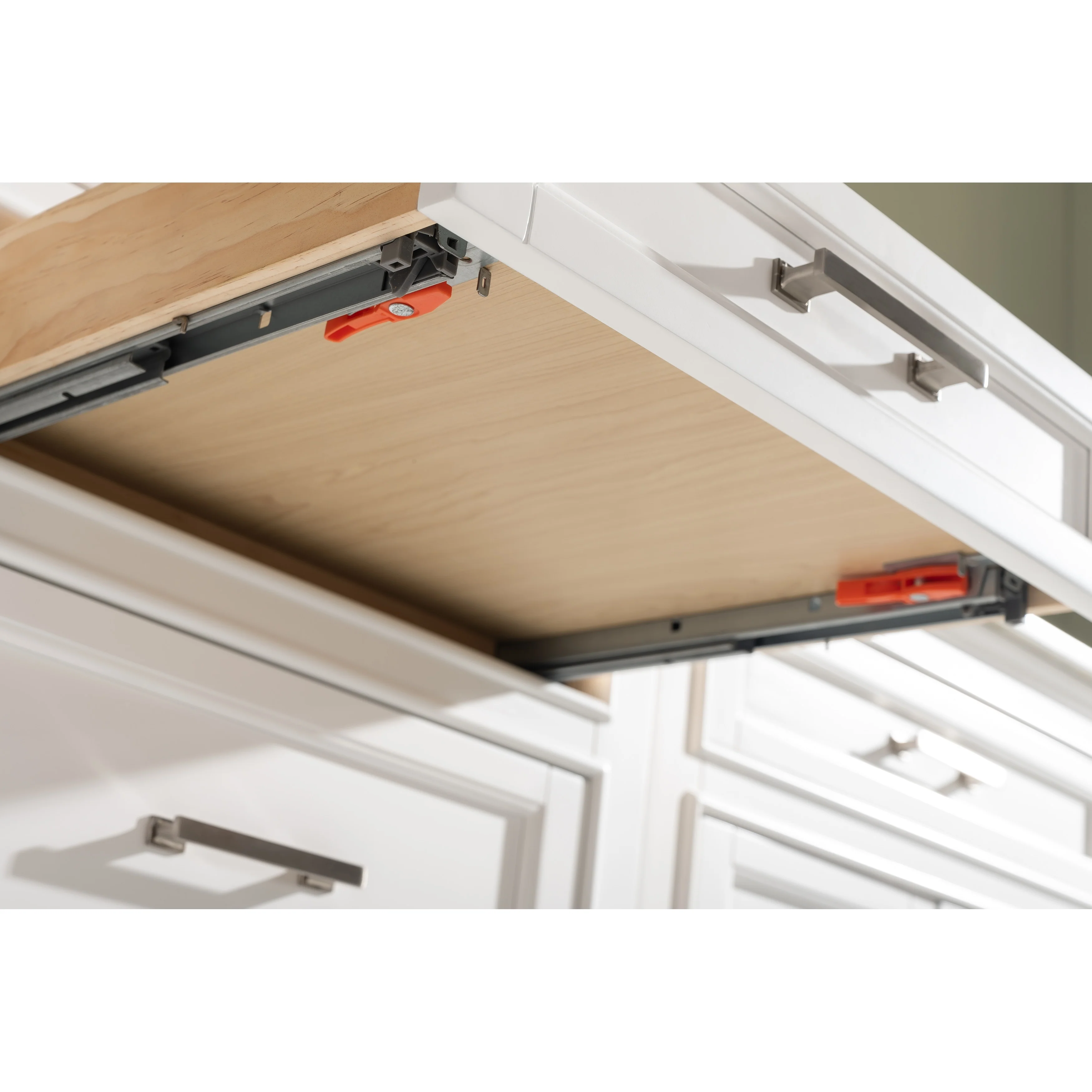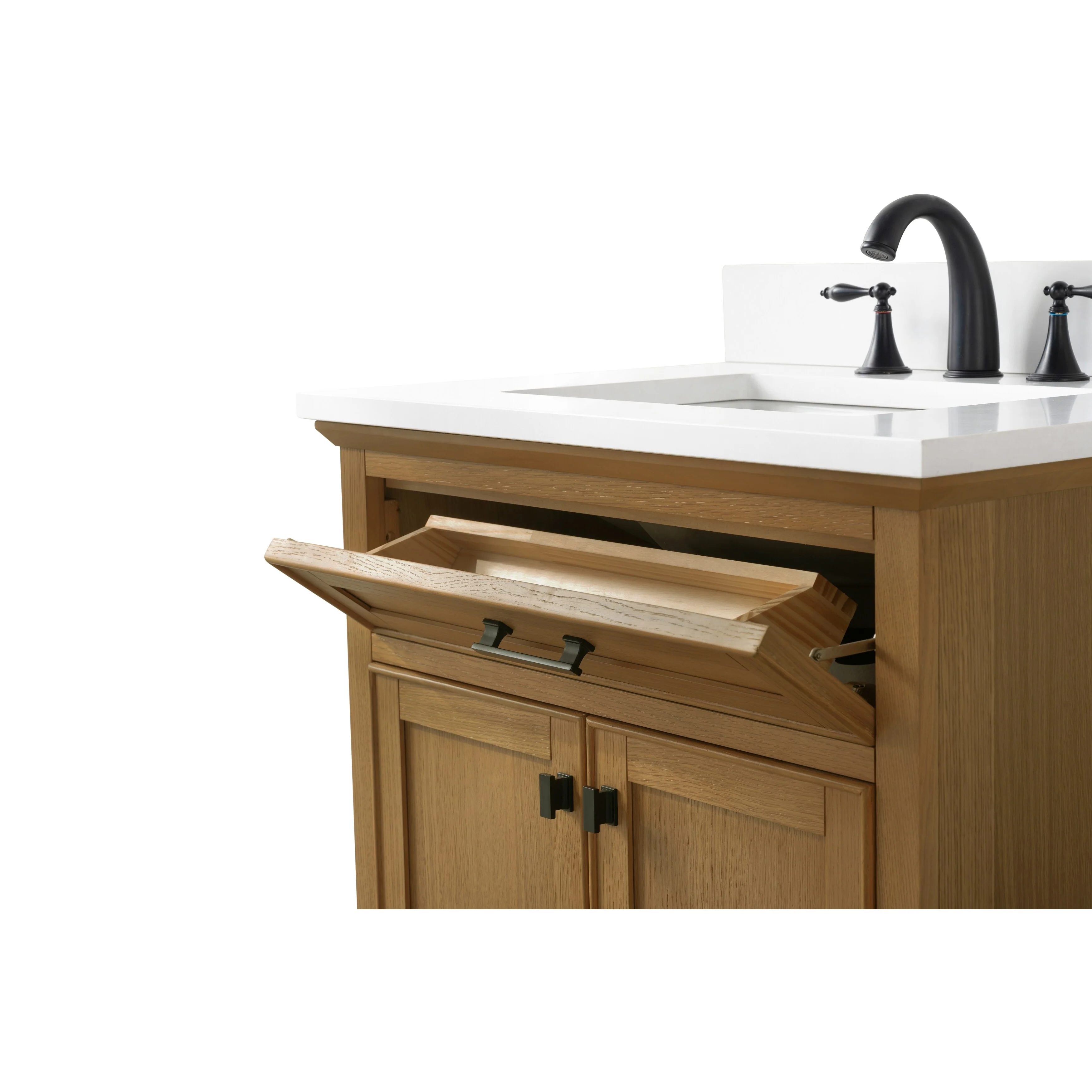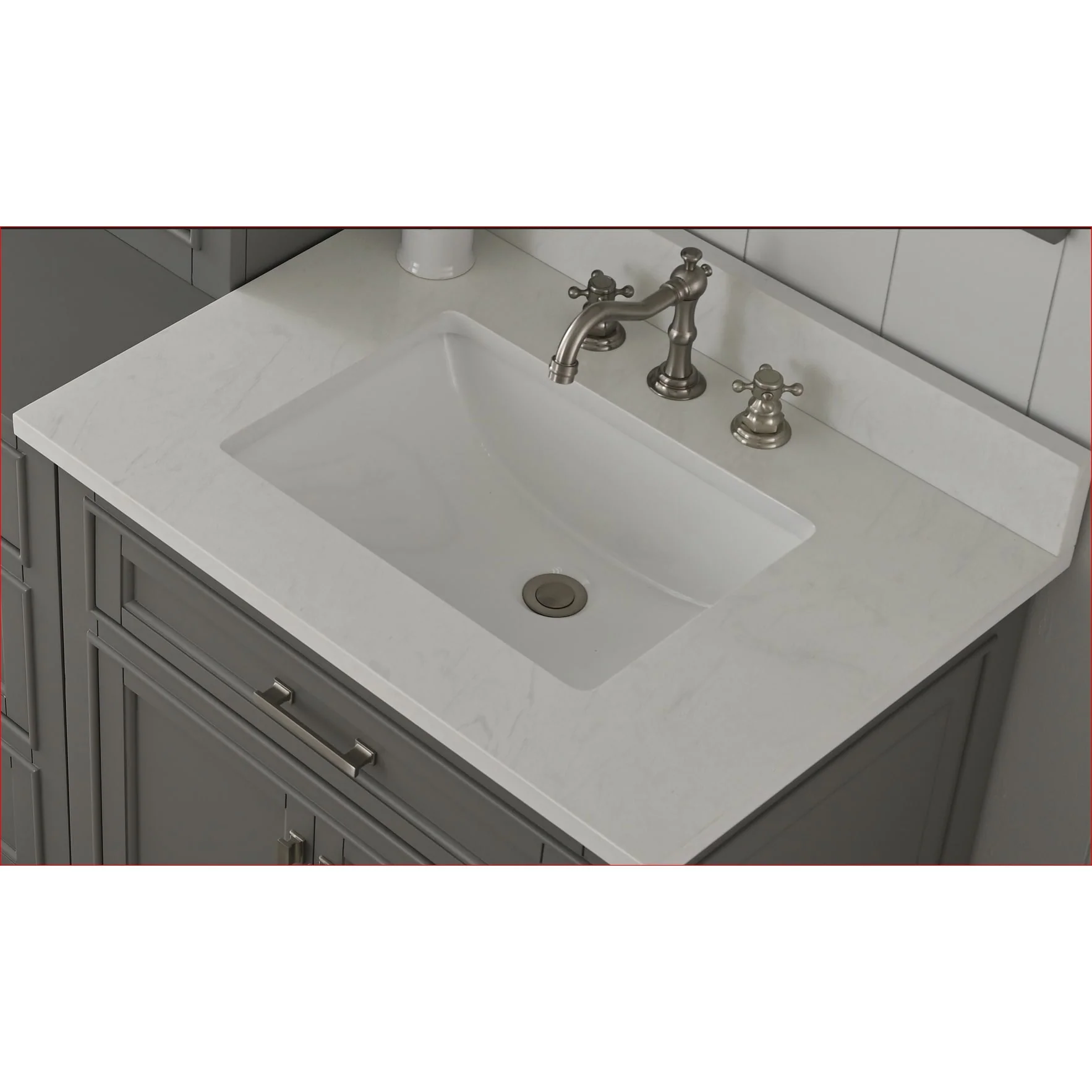 - 1' thick white quartz countertop with pre-drilled holes for 8' widespread faucets