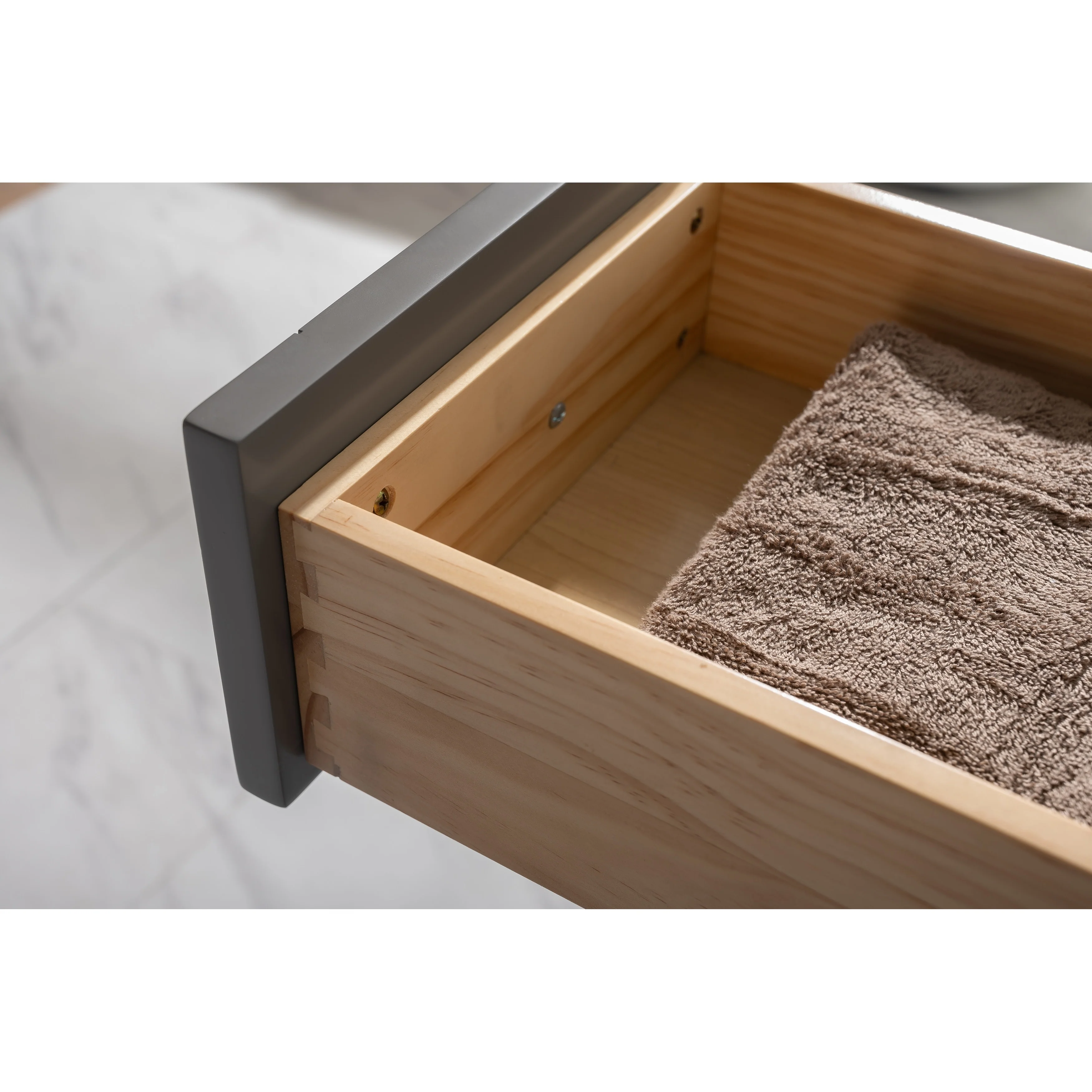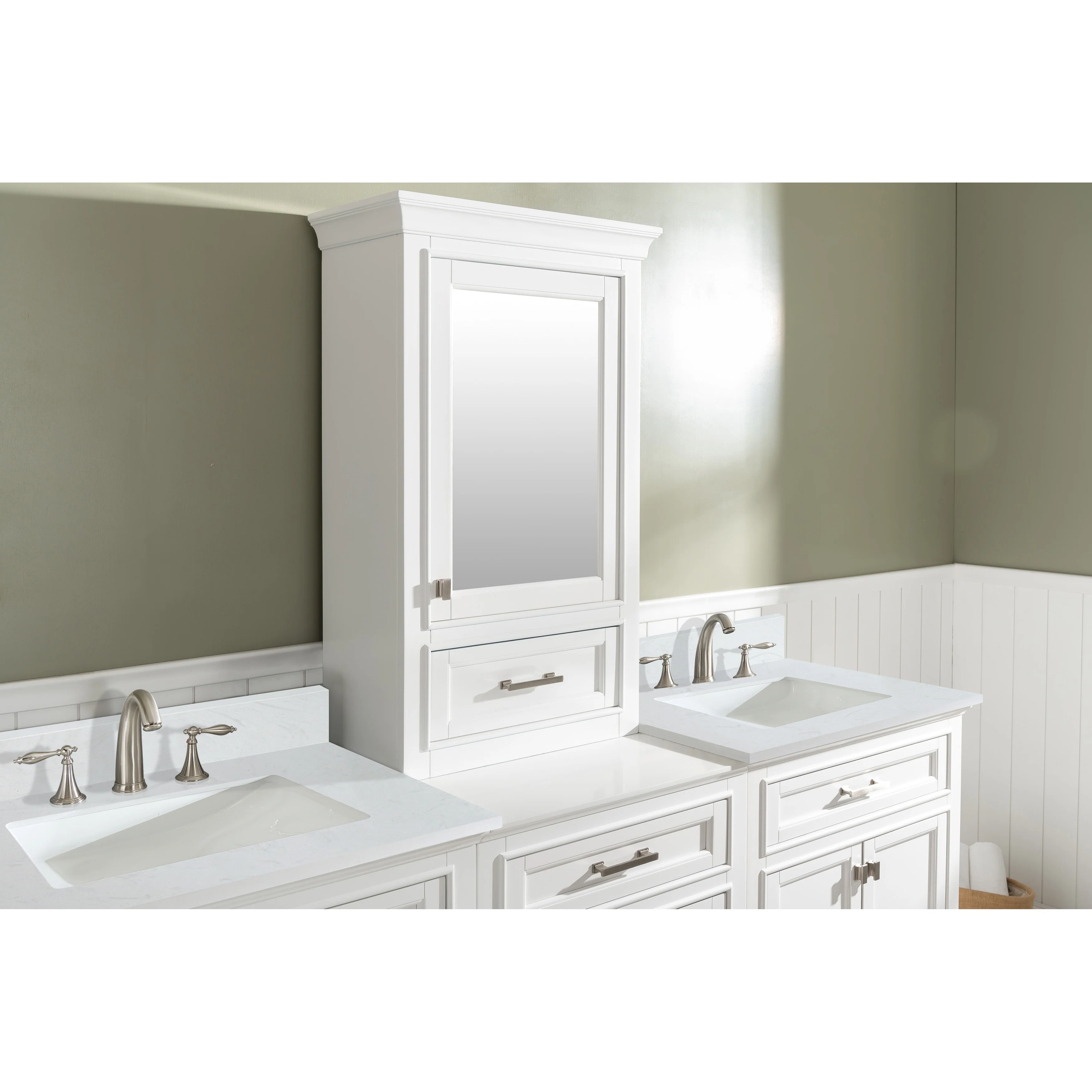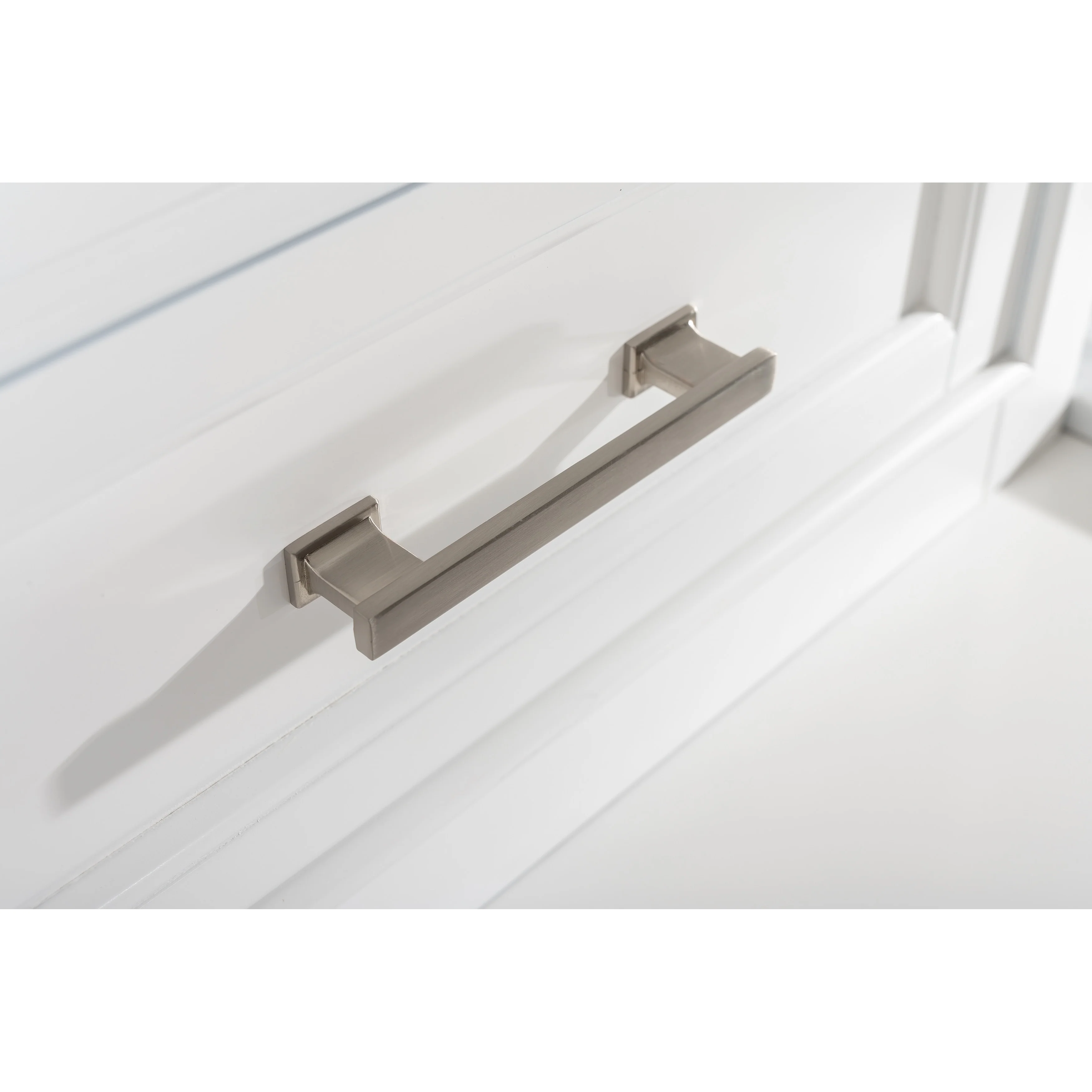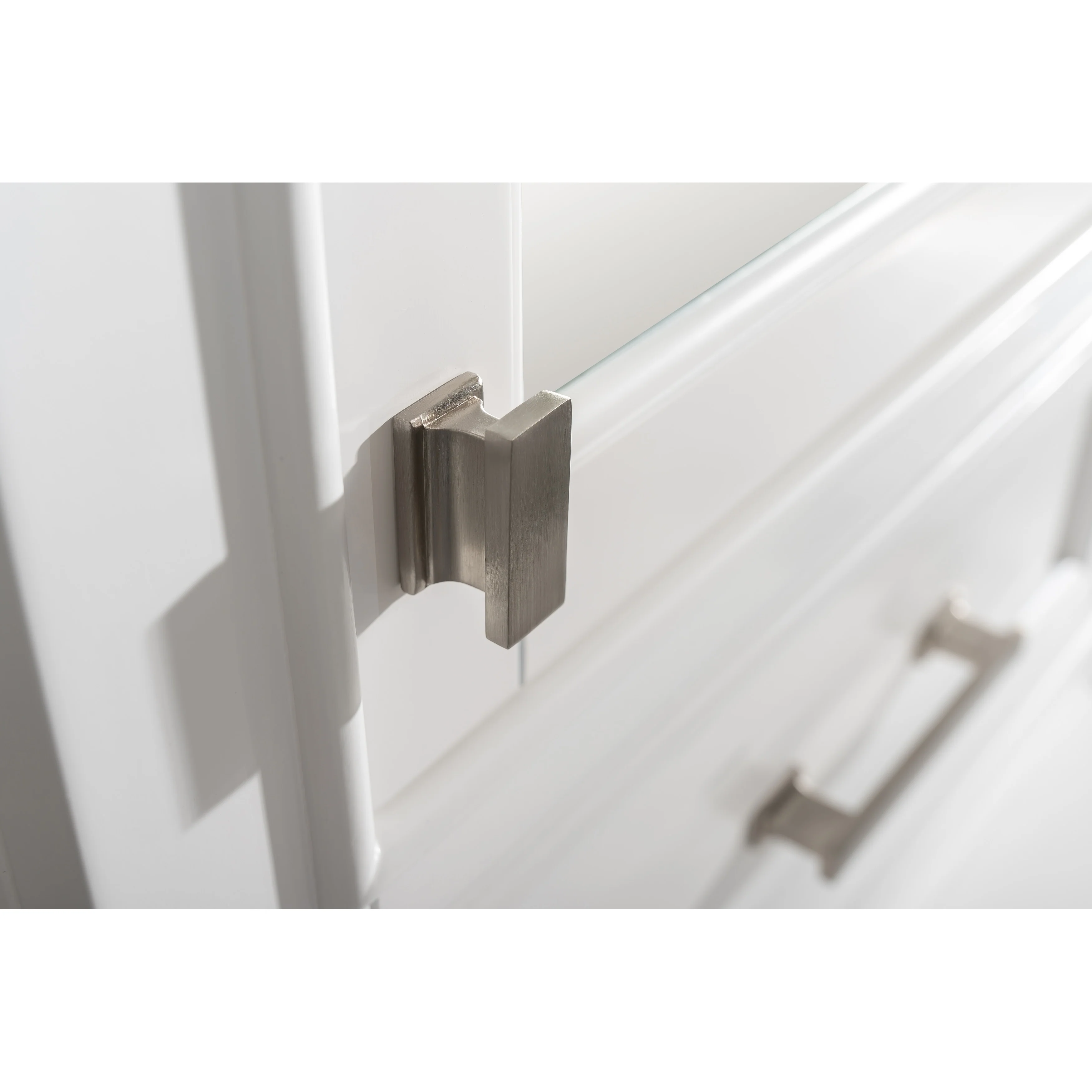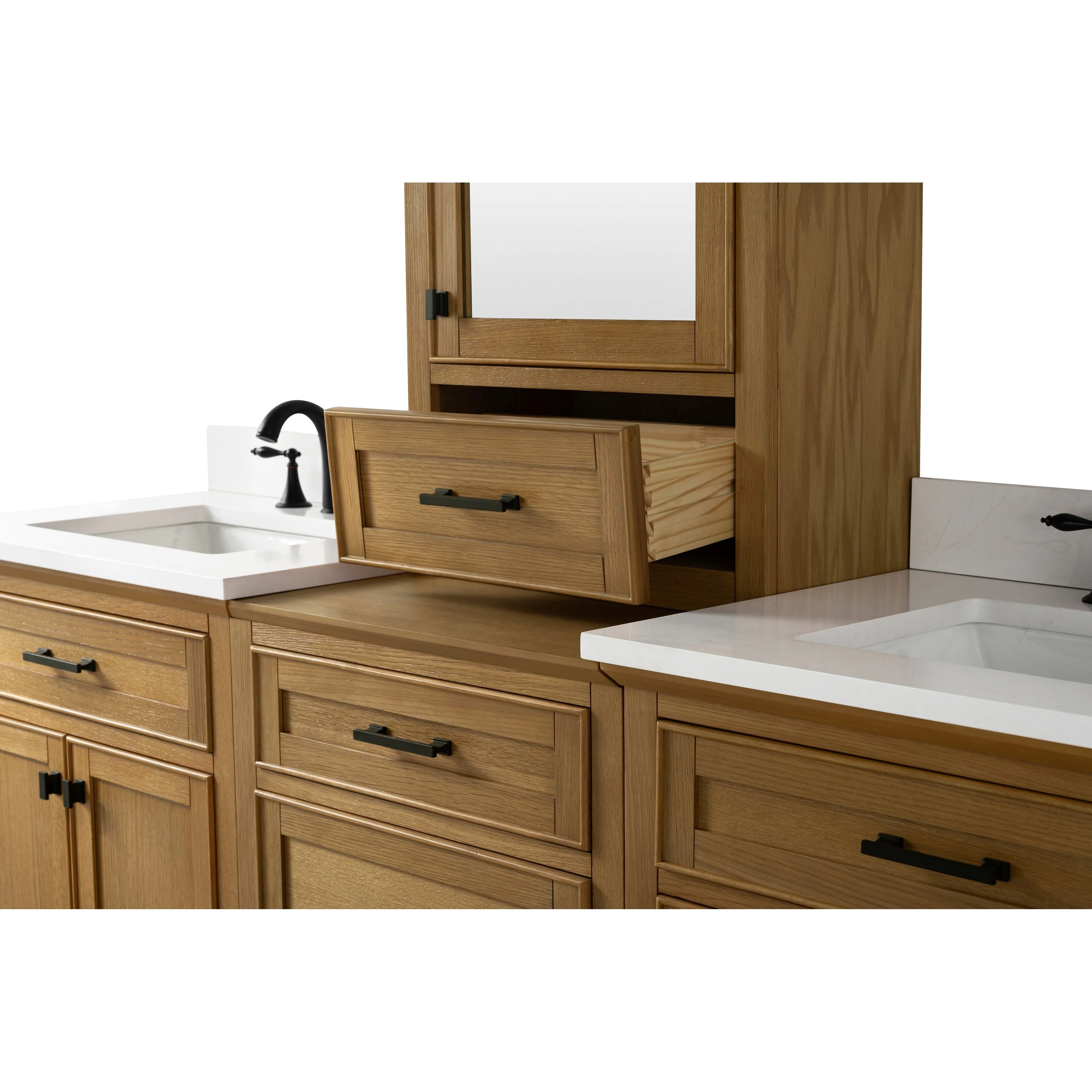 Elevate your bathroom decor with the Milano 84' Double Sink Bathroom Vanity Modular Set by Design Element. Crafted with solid birch hardwood, this elegant modular set features two single vanities, a draw unit, and a tower cabinet. The 1-inch thick white quartz countertop and backsplash provide ample space for your toiletries while the soft-closing drawers and doors ensure quiet operation. The brushed nickel finish hardware adds a touch of sophistication, and the porcelain undermount sinks come with an overflow. With dovetail joint drawer construction and a multi-layer paint finish, this vanity set is both beautiful and durable. Faucets, mirrors, and drains are not included.