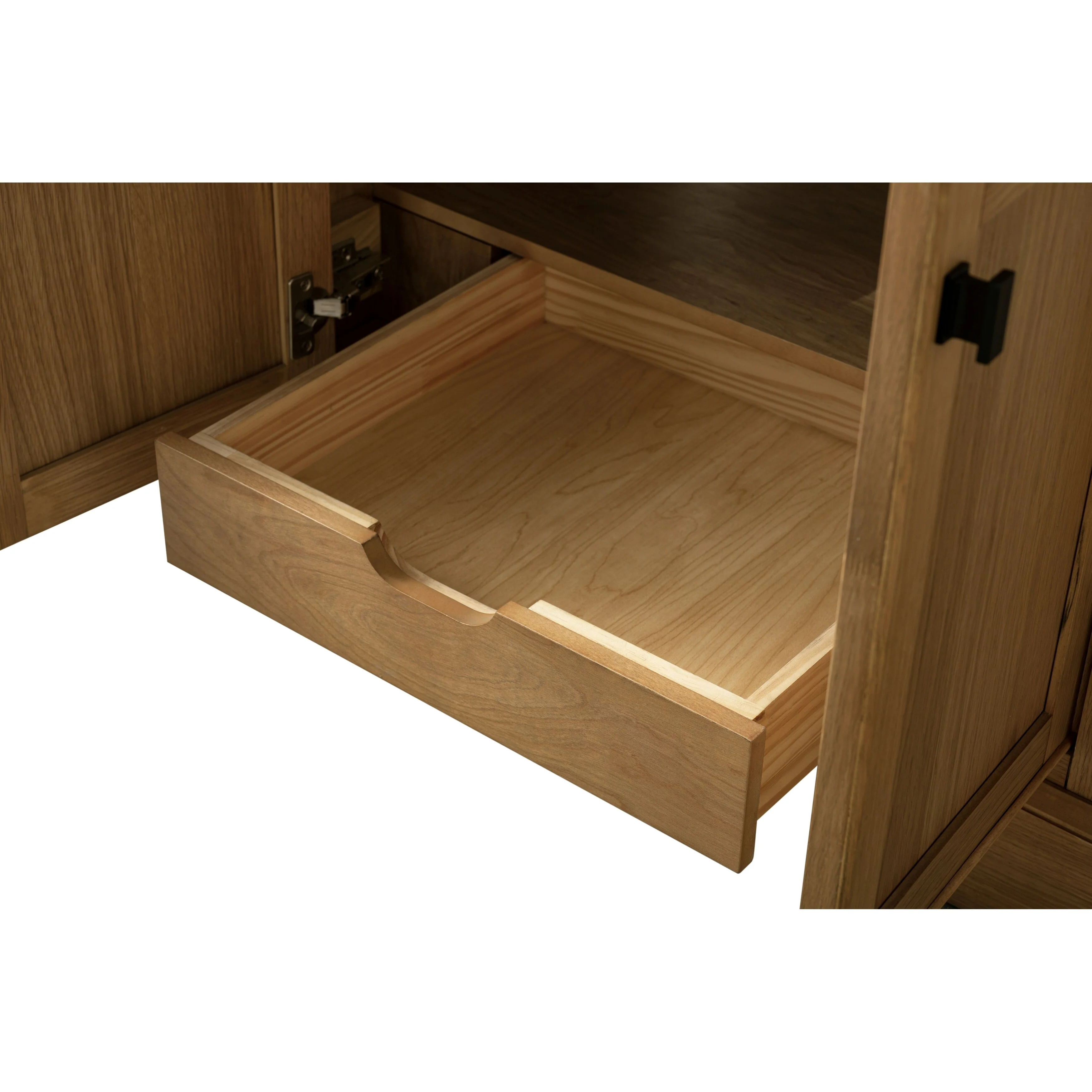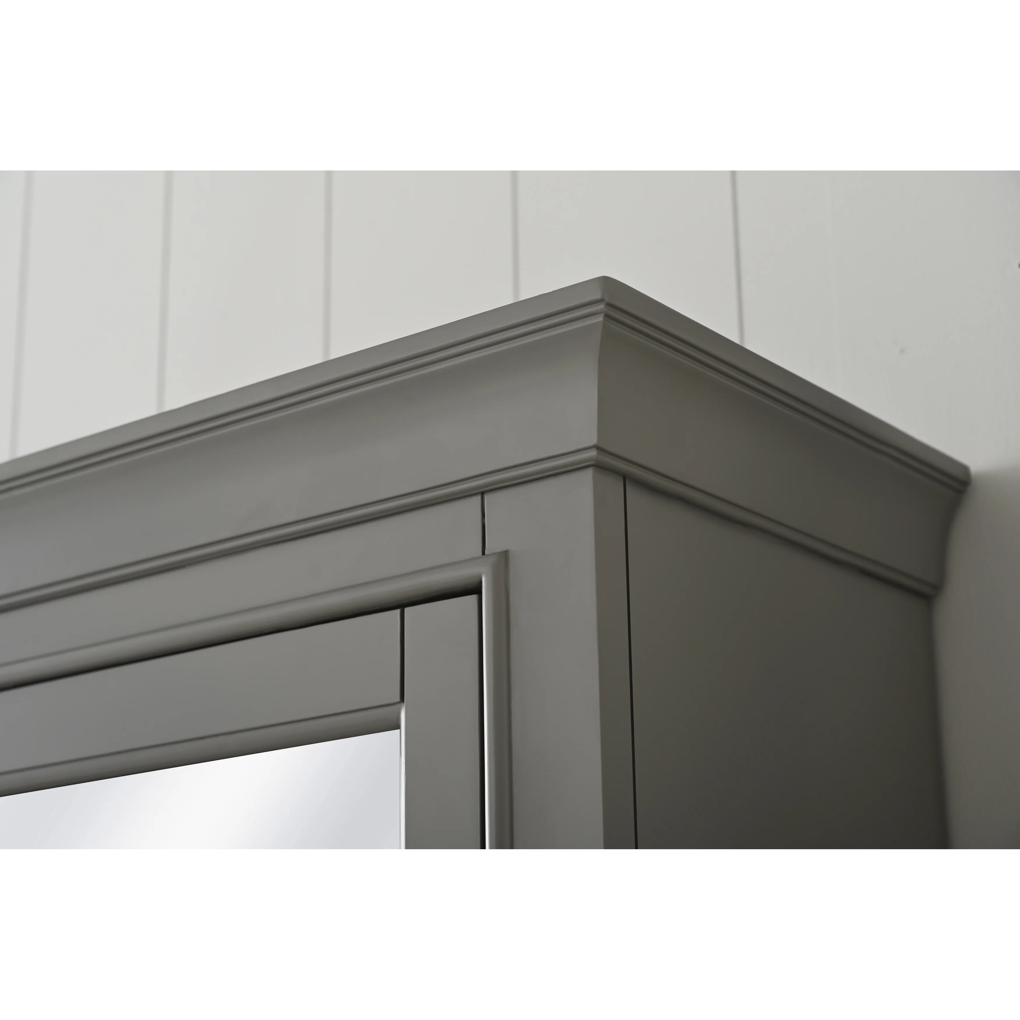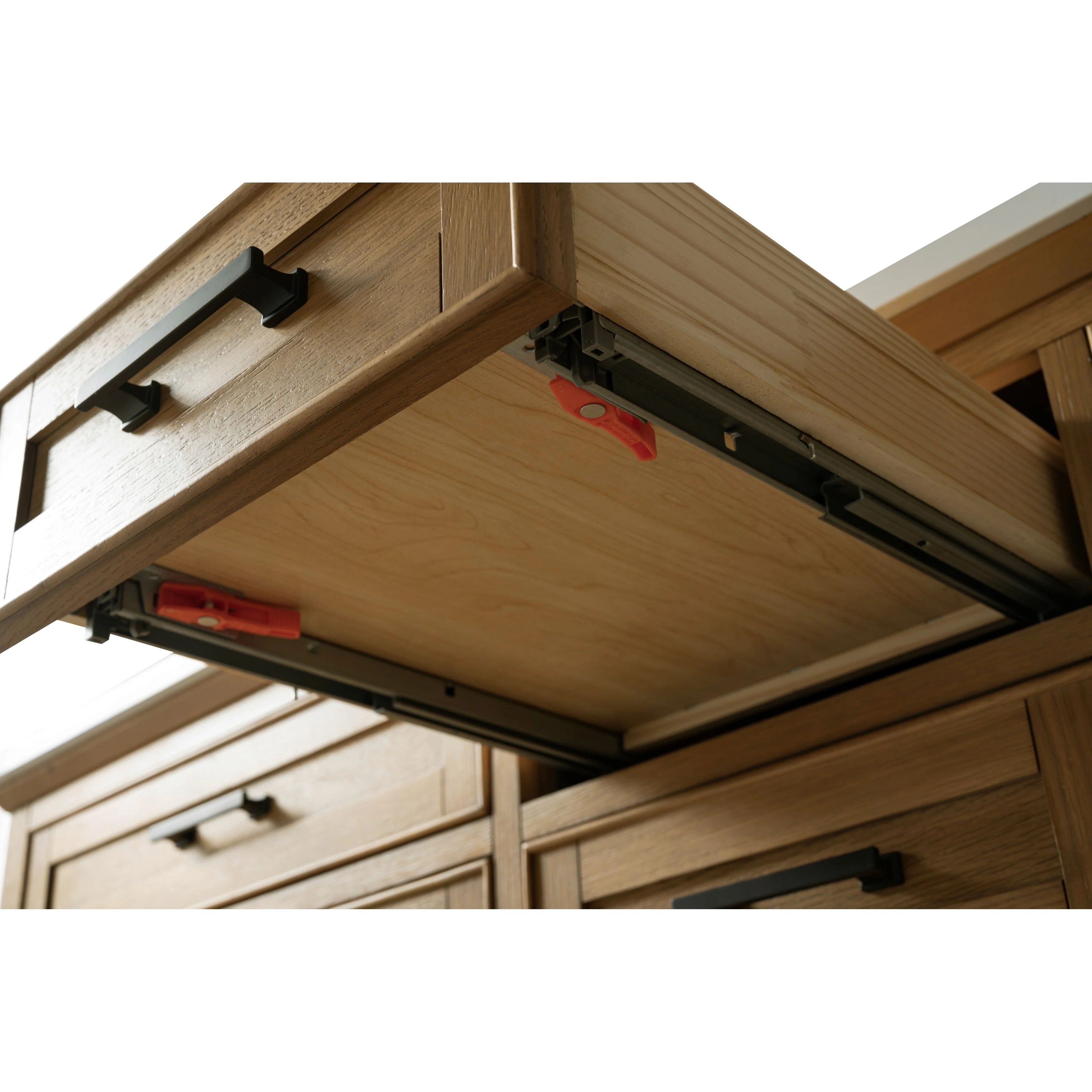 - Soft-close doors with concealed adjustable hinges; tempered glass tower door