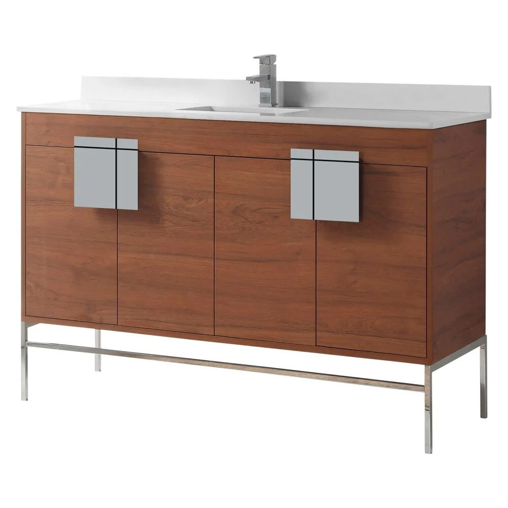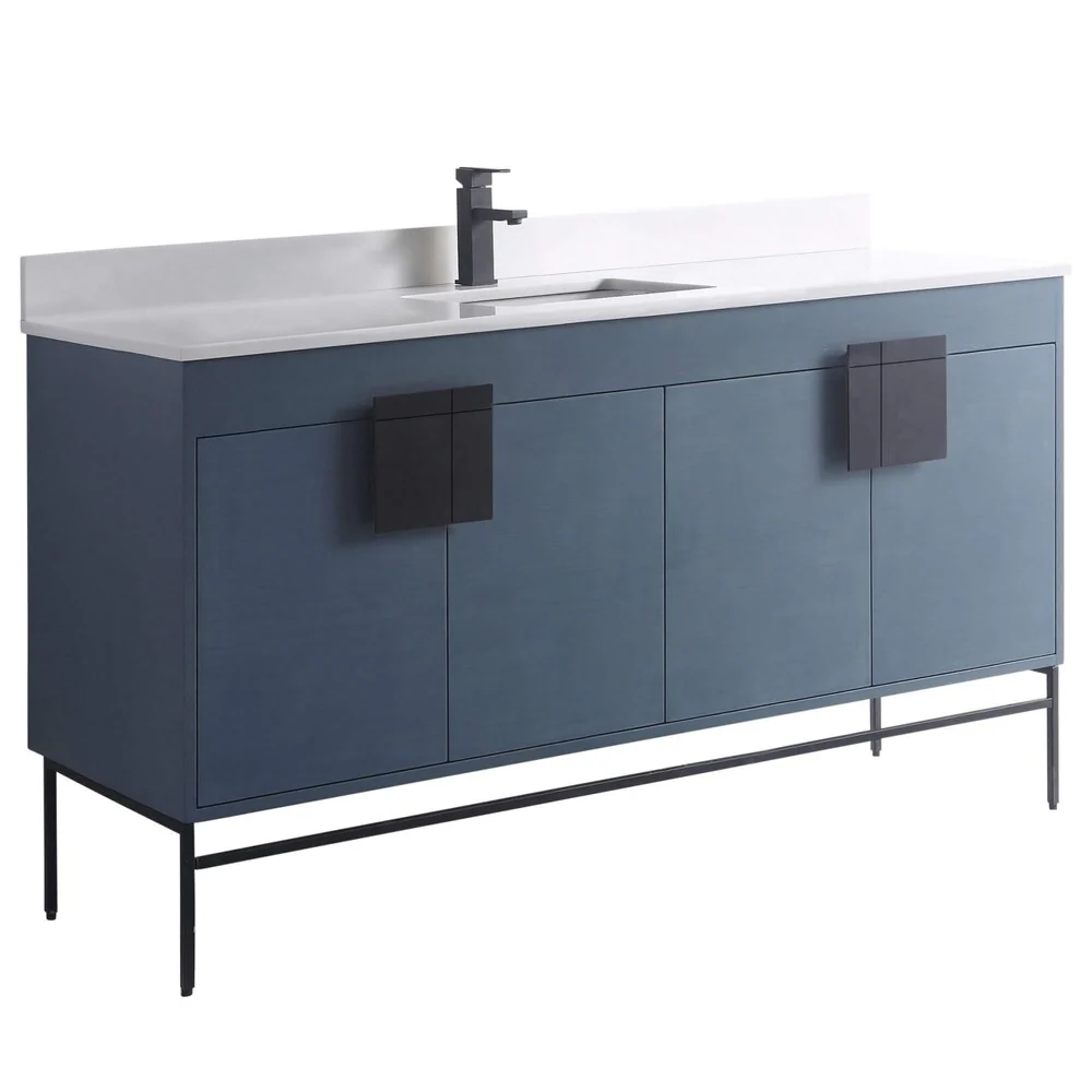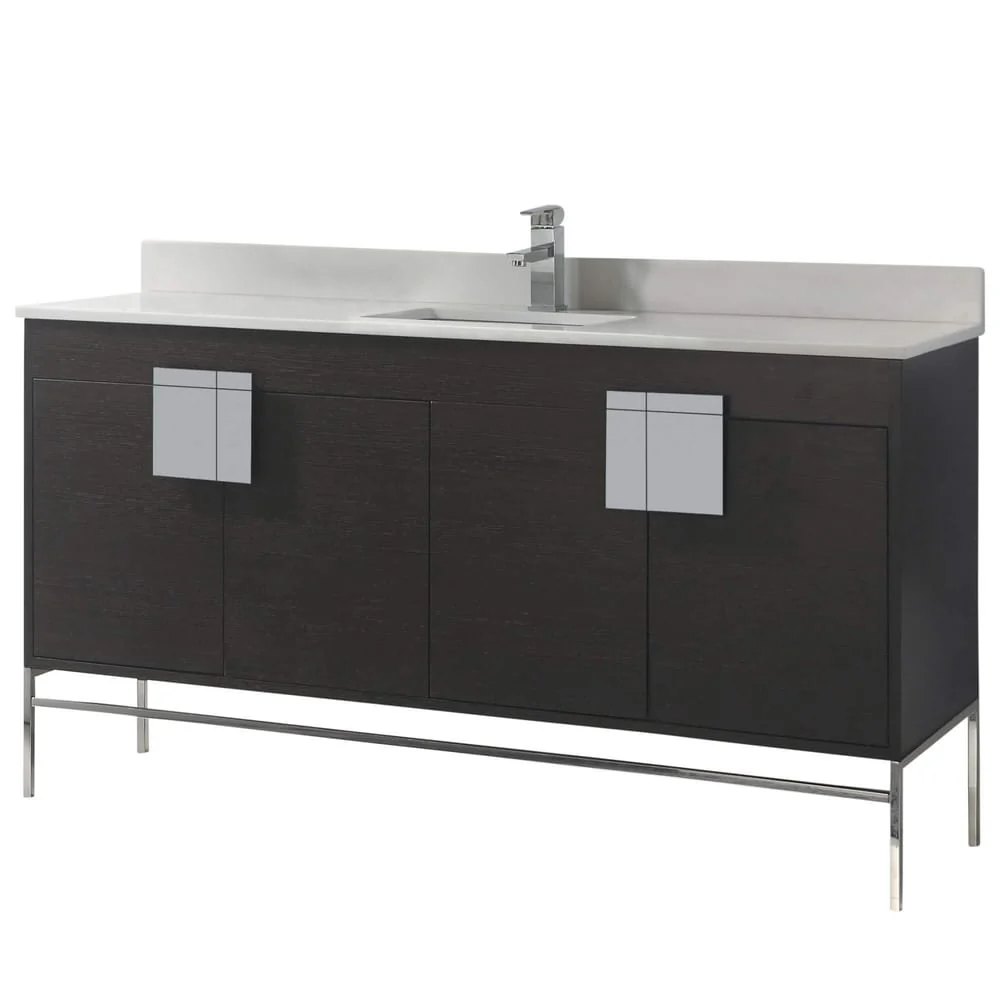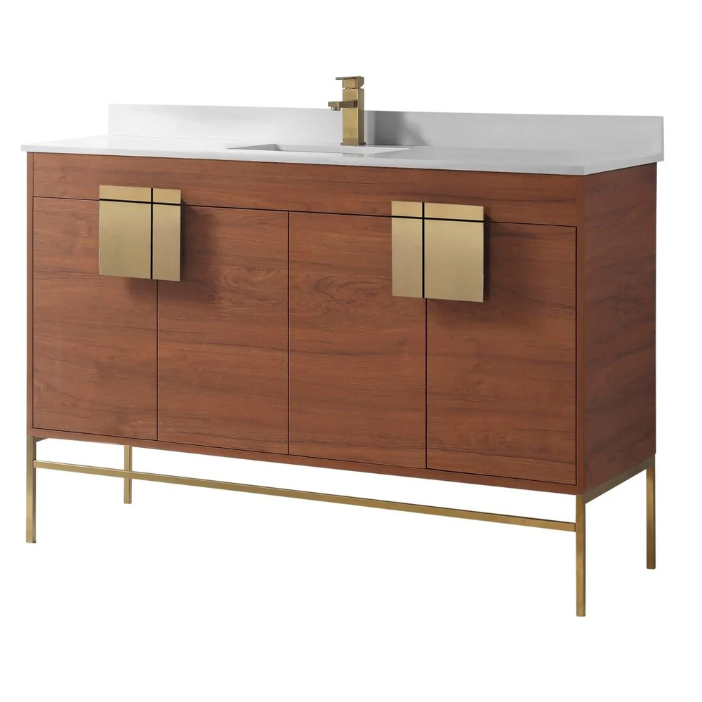 Introducing our newest collection, inspired by postmodernism and featuring smoked oak and smooth metals. This Modern Bathroom Vanity Set boasts a thick wood frame and upgraded finishes, giving it a bespoke quality. The cube-like structure is enhanced by a clever fold-over illusion and designed square metal that blends symmetry and functionality seamlessly. Recessed grooves in the hardware double as segmented openings, revealing roomy storage space, while soft-close doors and hand-cut hardware add to the overall durability. Available in an extra-large size with dual design and storage, this vanity set is a perfect blend of natural wood grains and modern sleekness.