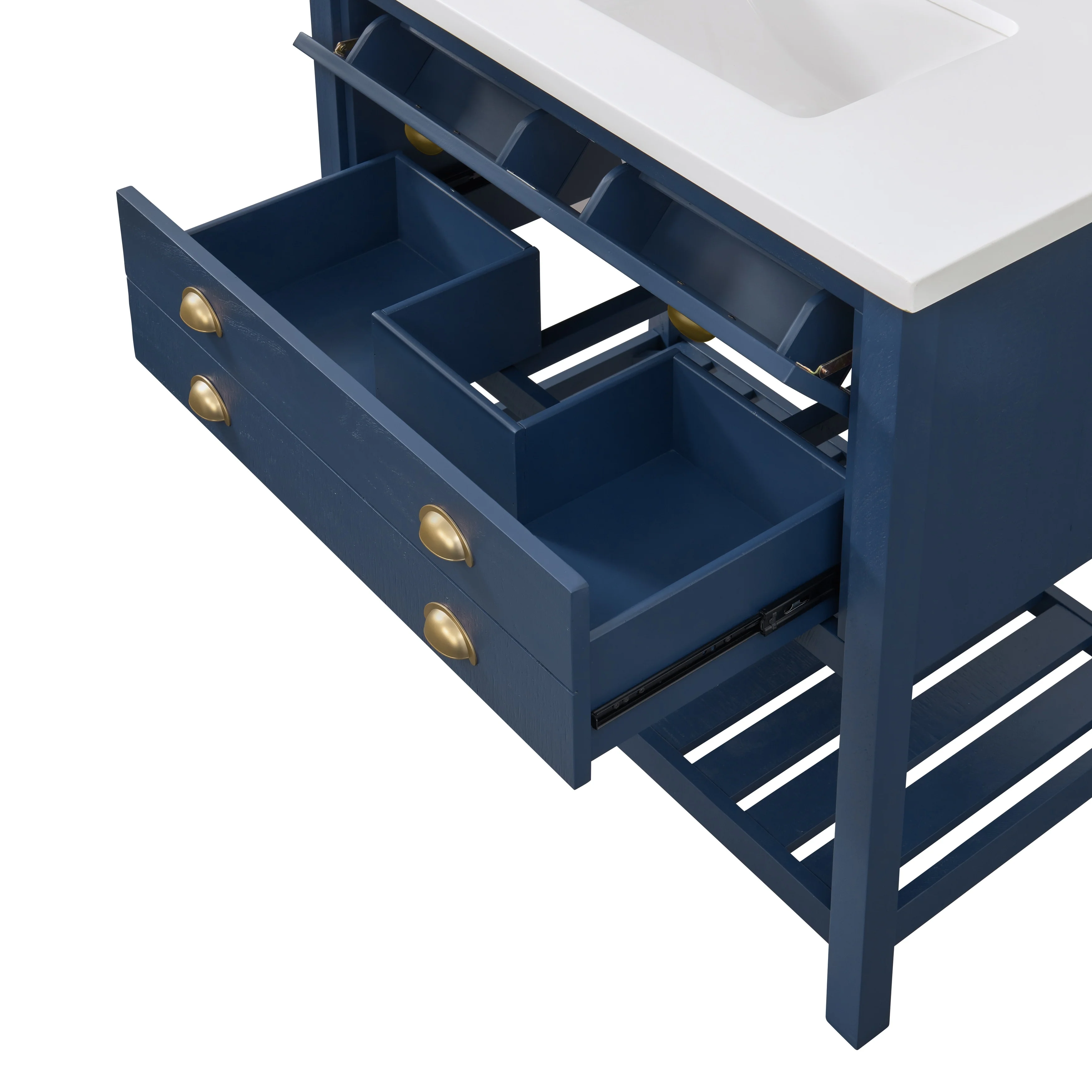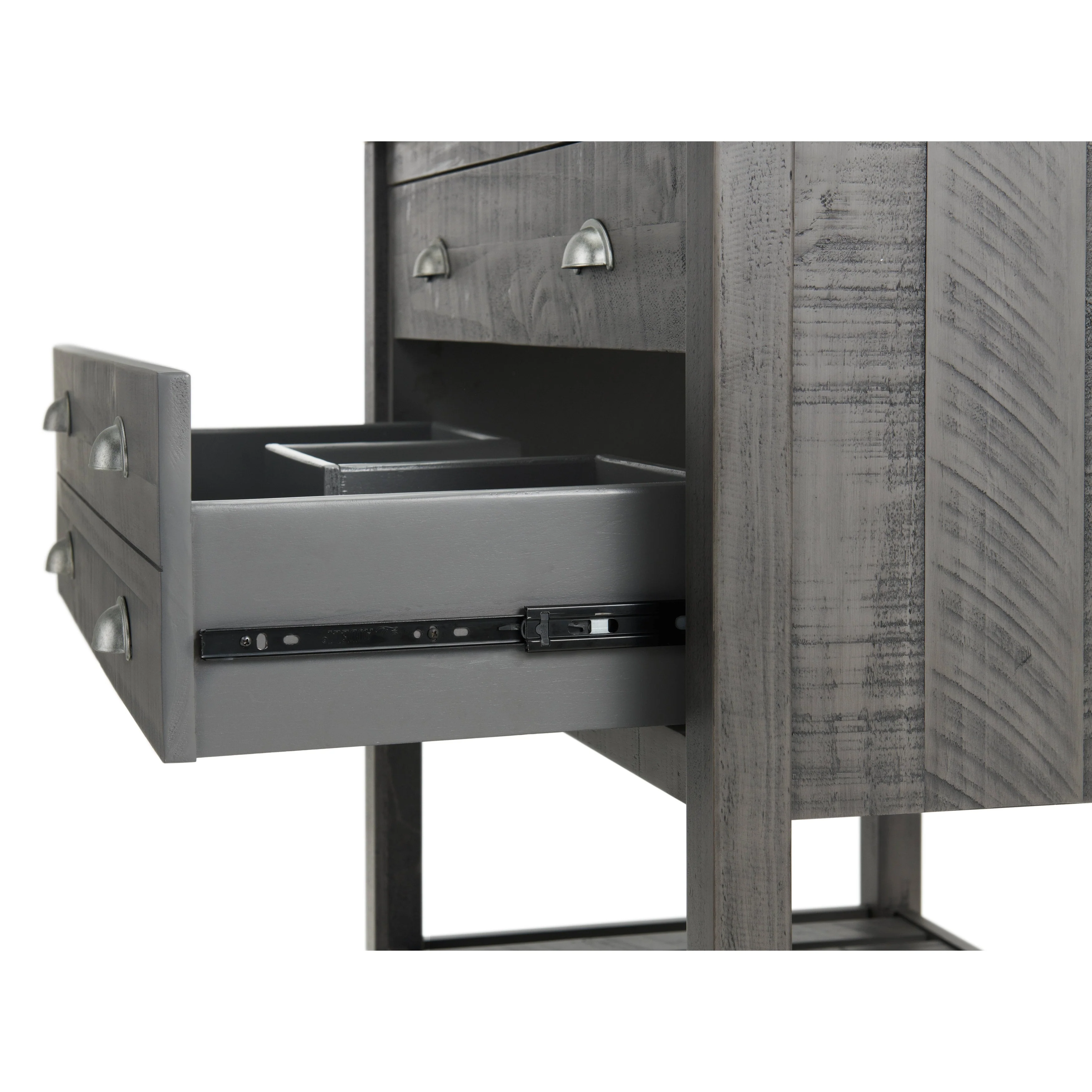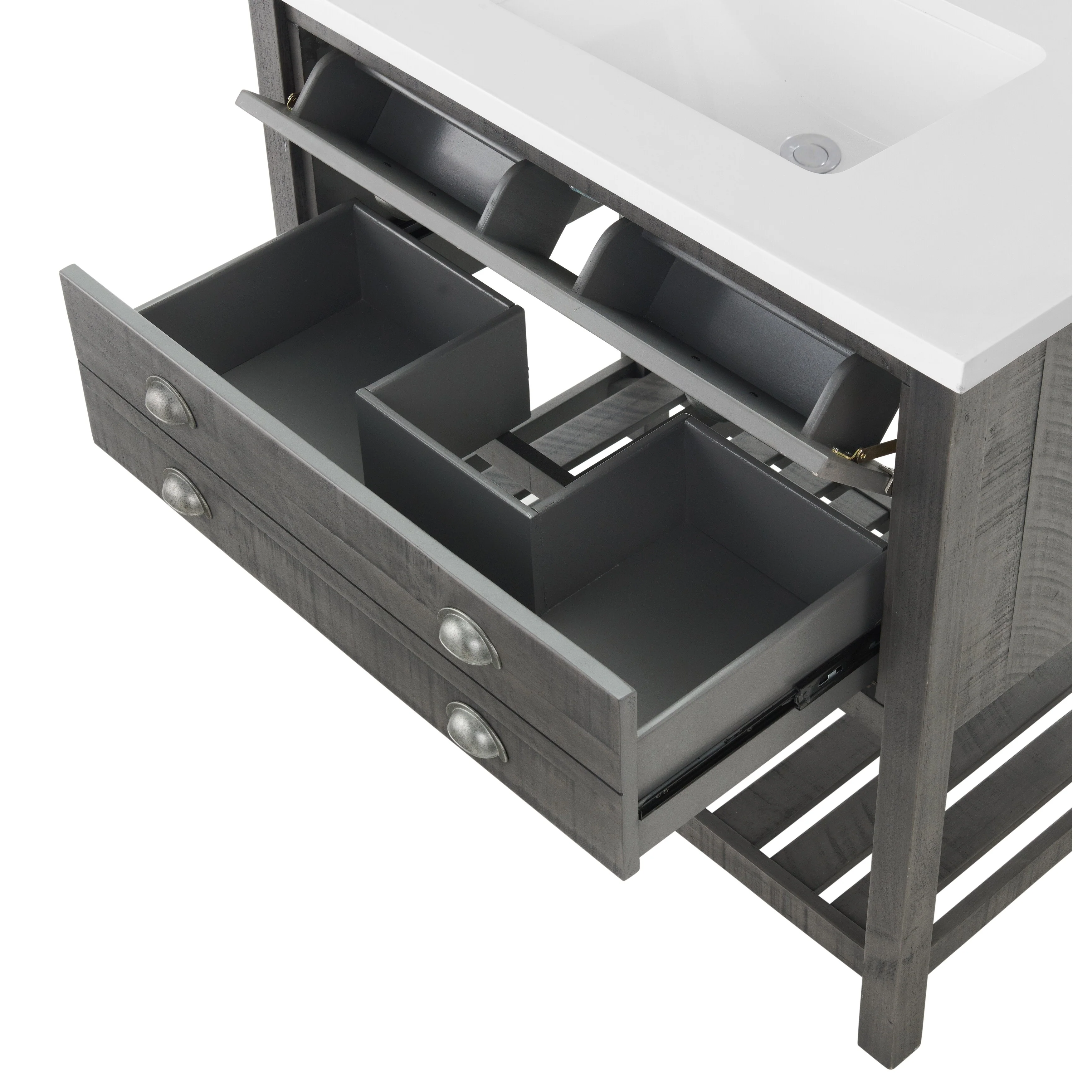 - One large split drawer with a top tilt down drawer