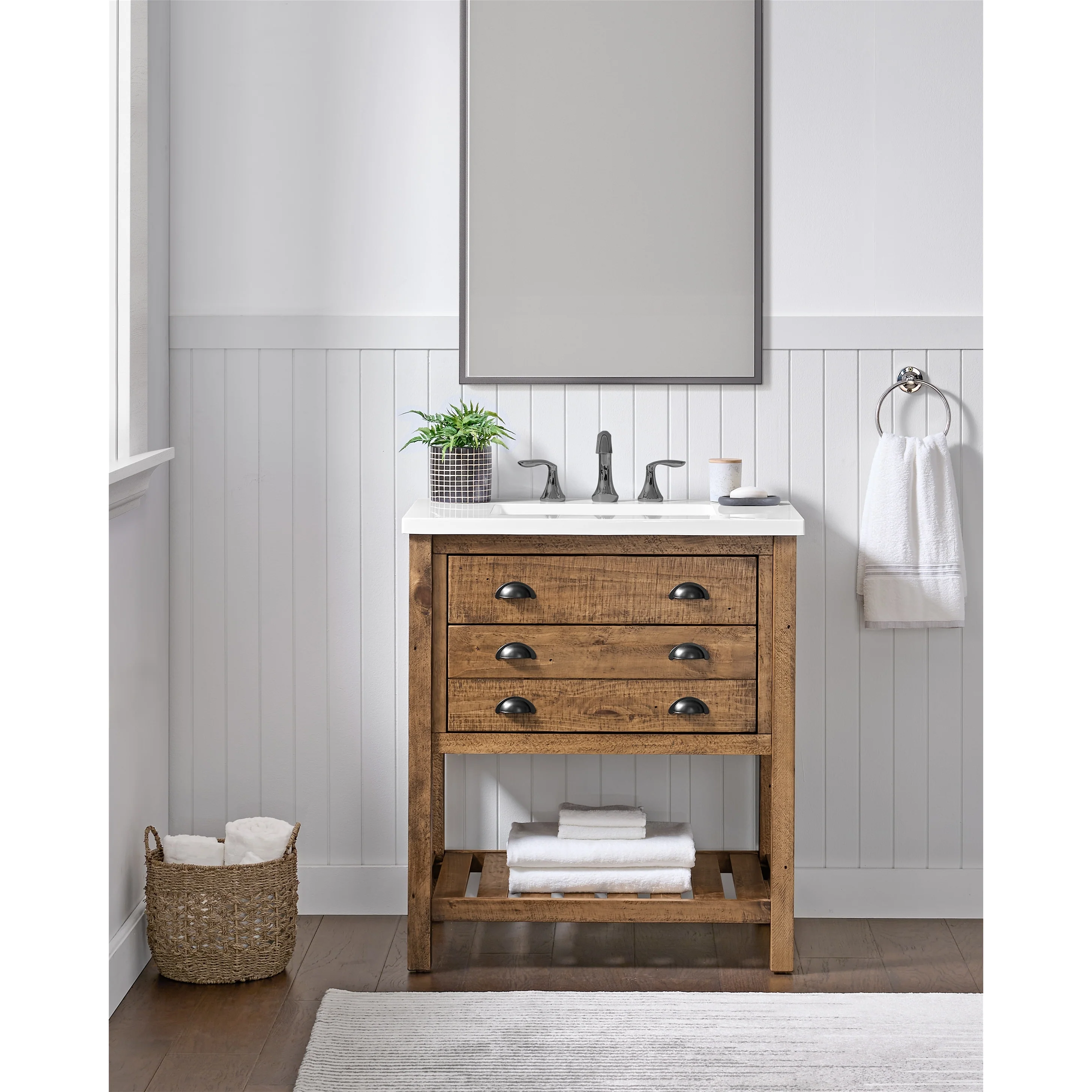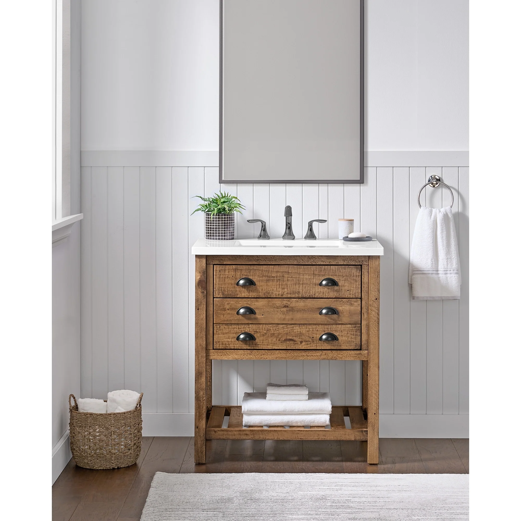 - Ideal for a single vanity, or double up for a rustic coastal look in your bathroom