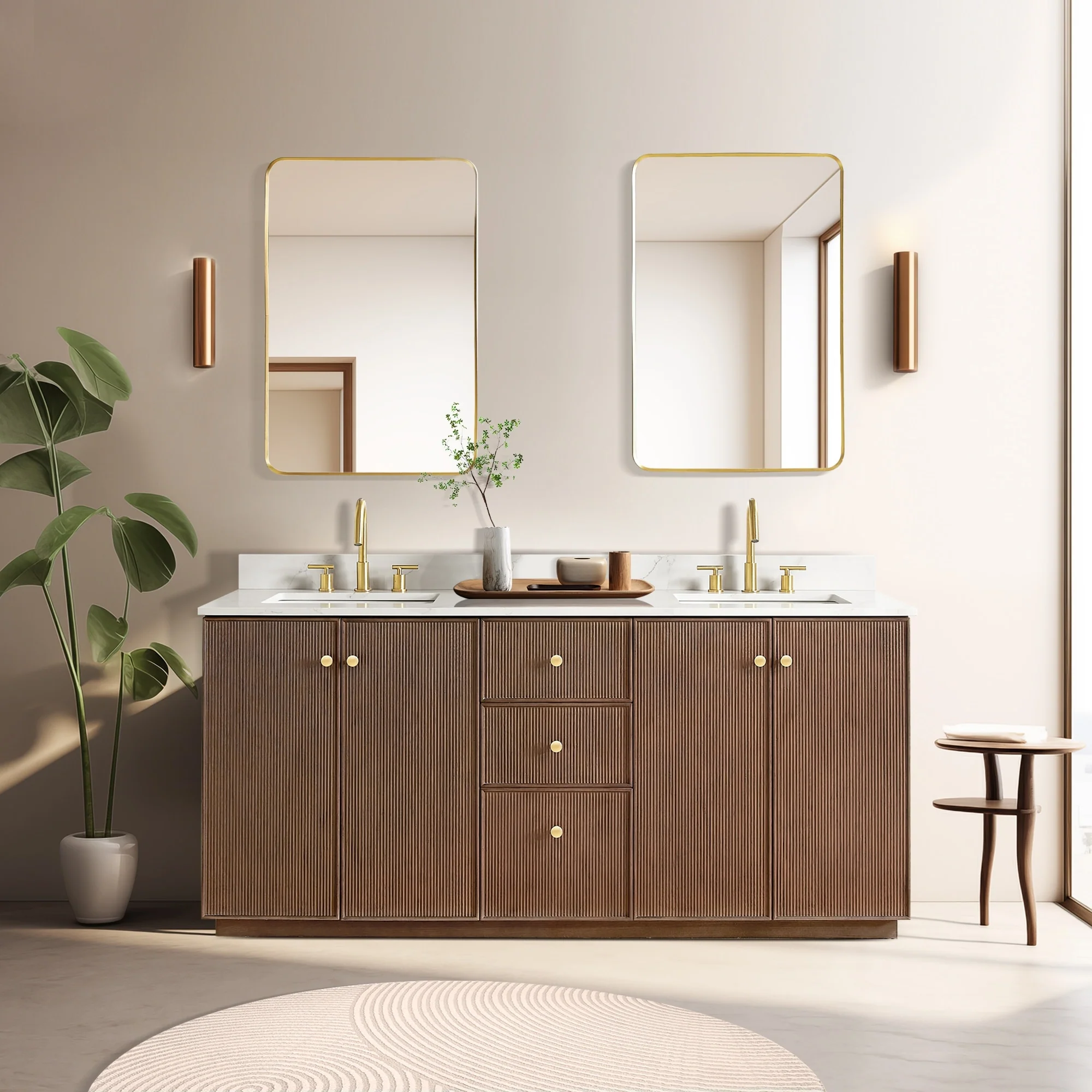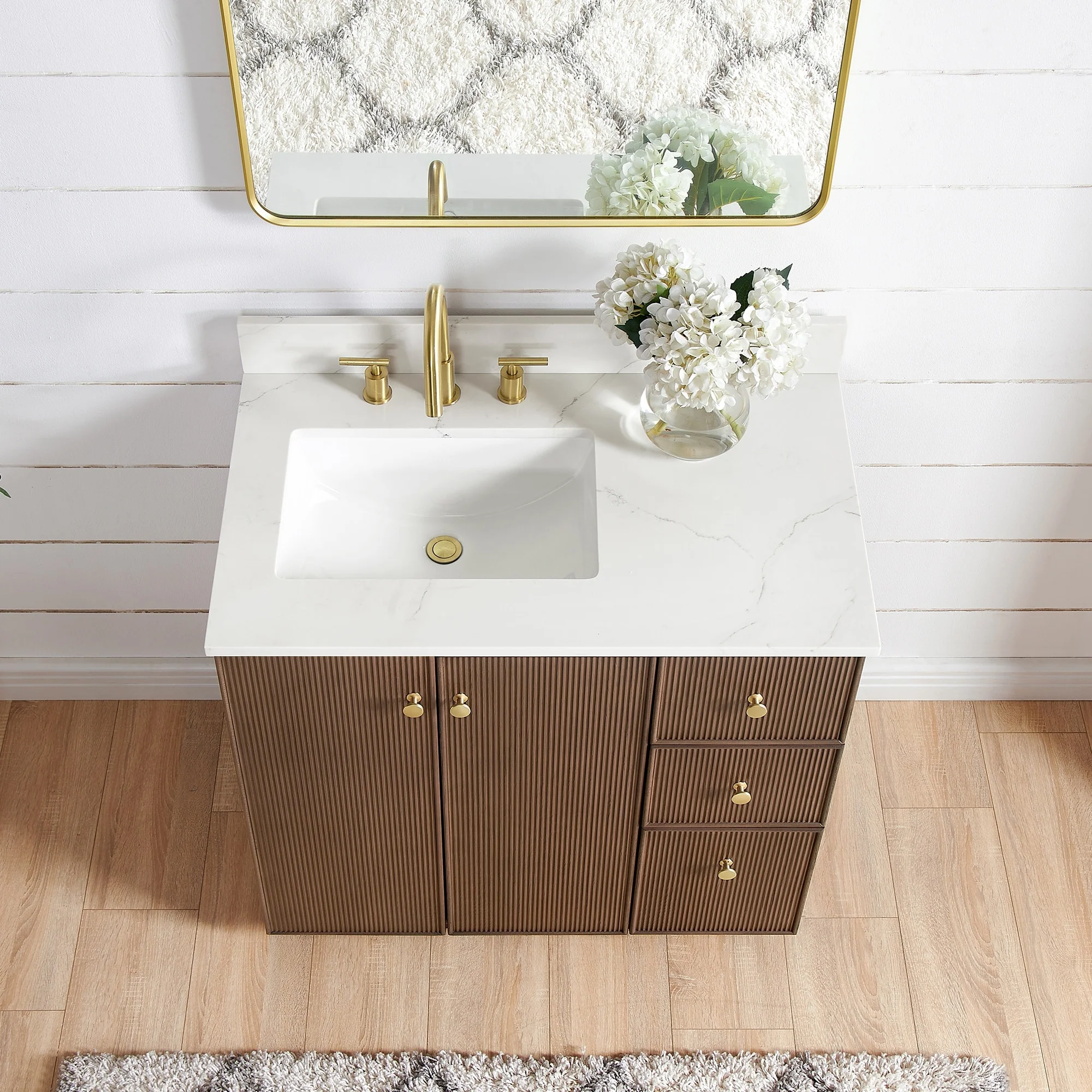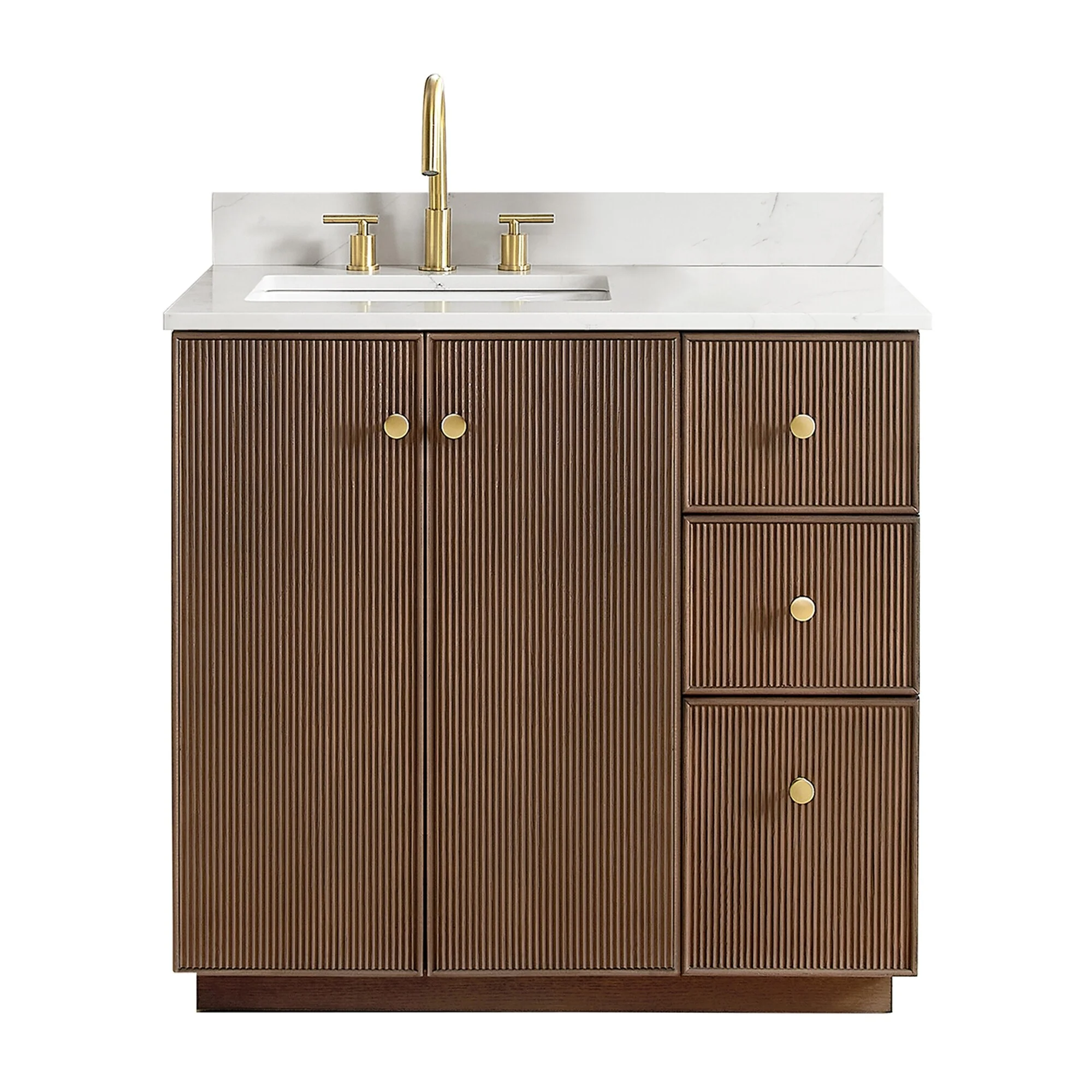Meticulously designed, our Oza Series Vanity adds a layer of intrigue and artistry to your bathroom, creating a visual centerpiece that sparks compliments and conversation. It boasts a distinctive textured facade contrasted with a crisp, contemporary quartz countertop. Solid wood construction ensures your investment not only looks stunning, but also stands the test of time, gaining more character and charm as the years go by.