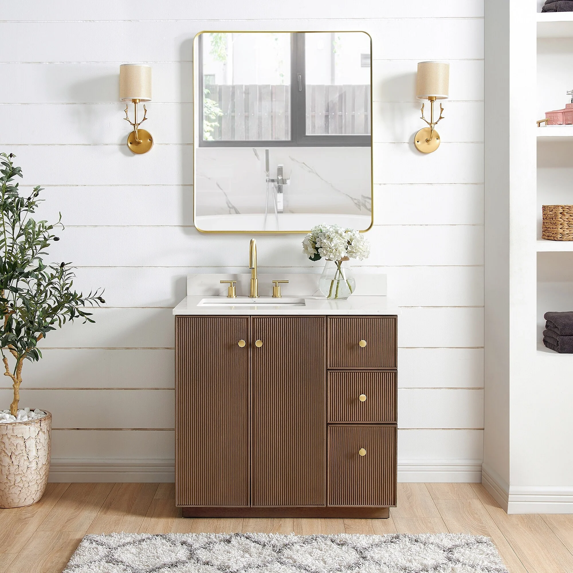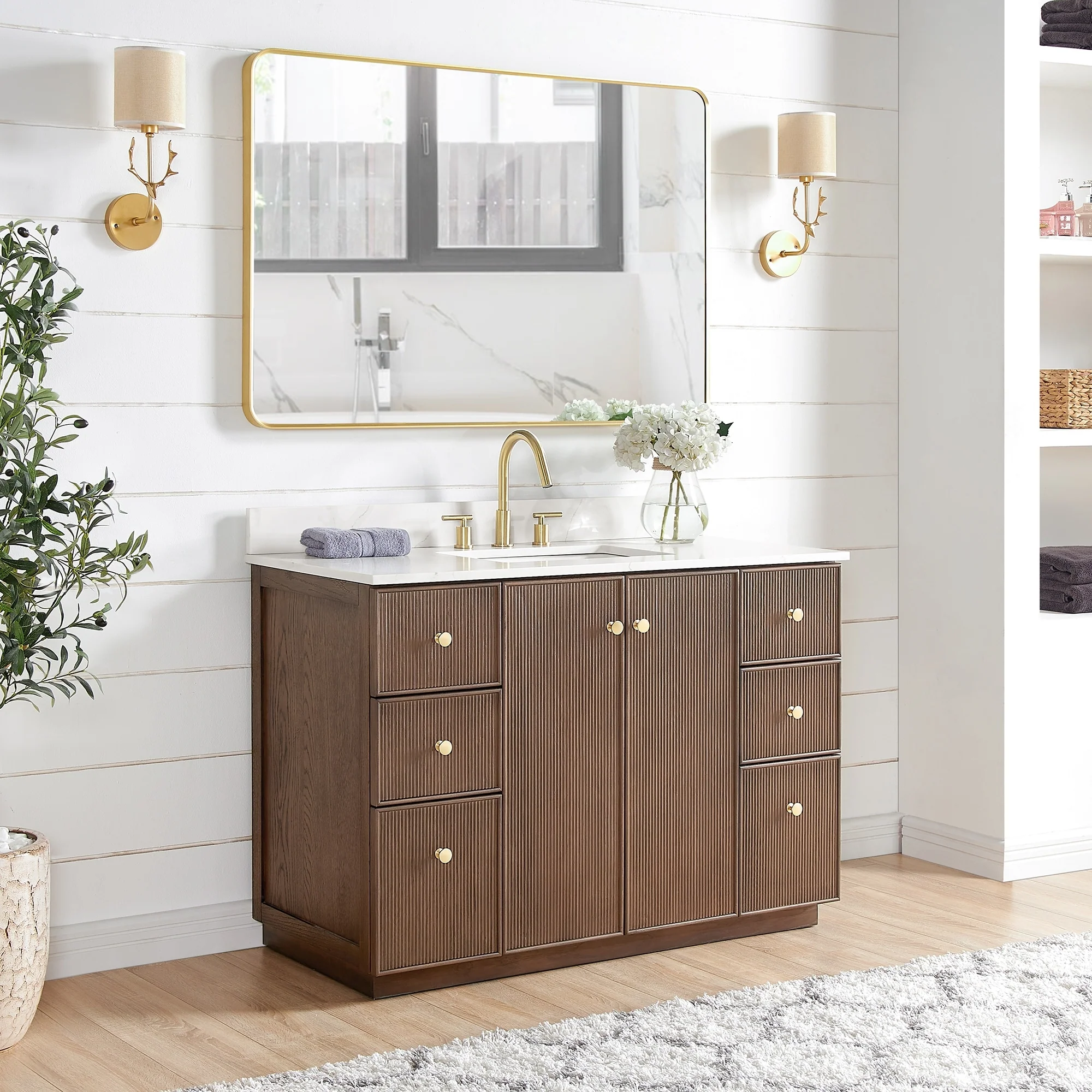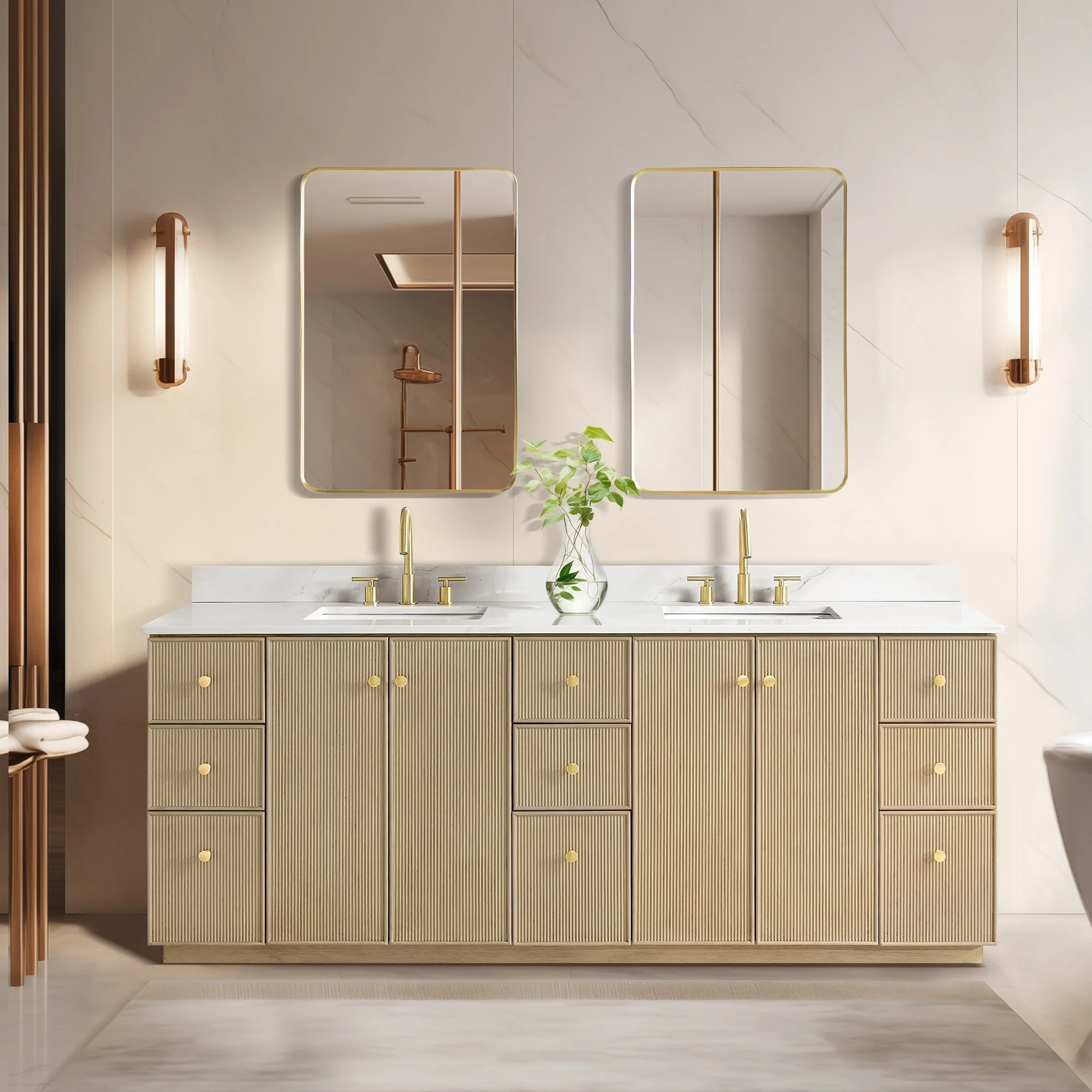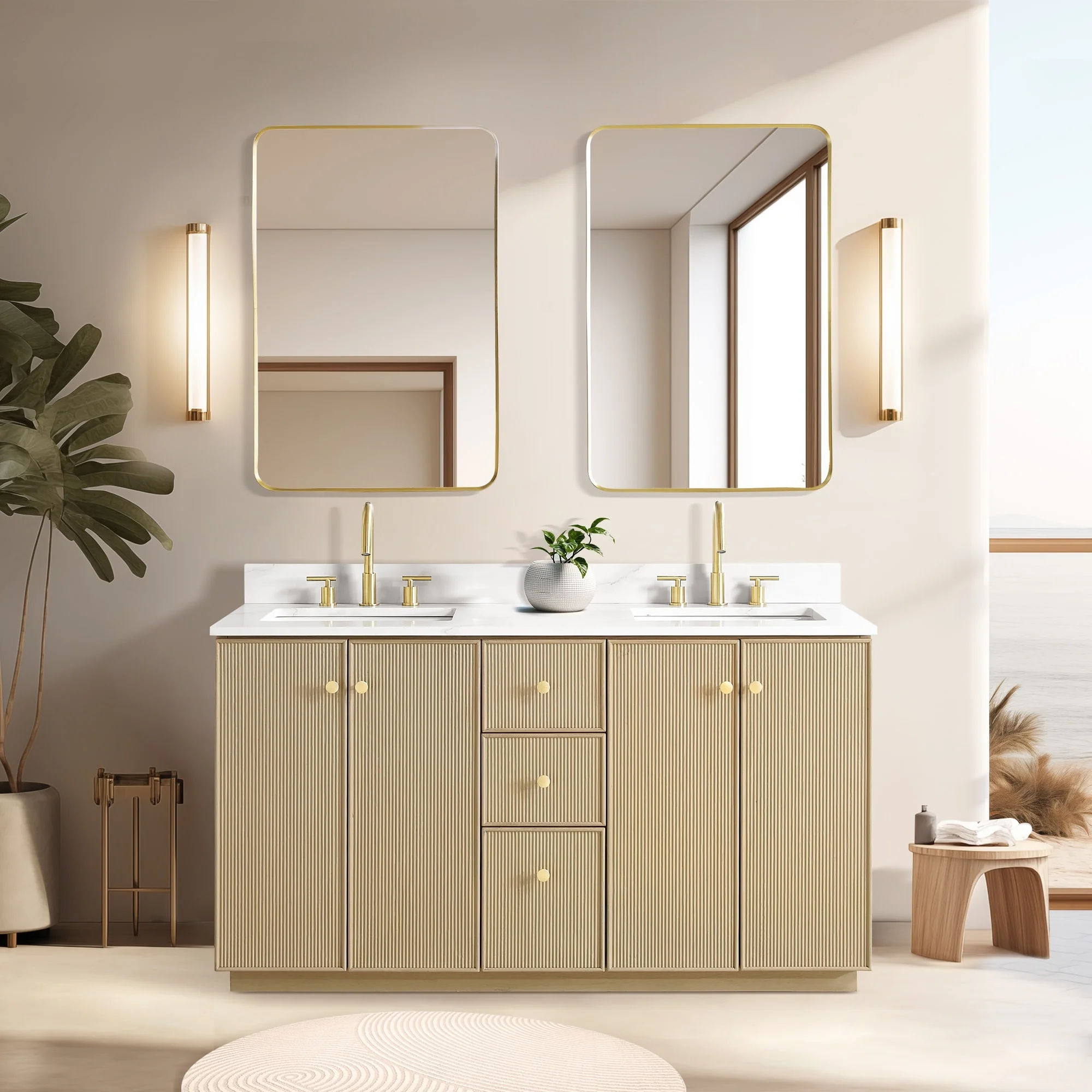 Meticulously designed, our Oza Series Vanity adds a layer of intrigue and artistry to your bathroom, creating a visual centerpiece that sparks compliments and conversation. It boasts a distinctive textured facade contrasted with a crisp, contemporary quartz countertop. Solid wood construction ensures your investment not only looks stunning, but also stands the test of time, gaining more character and charm as the years go by.