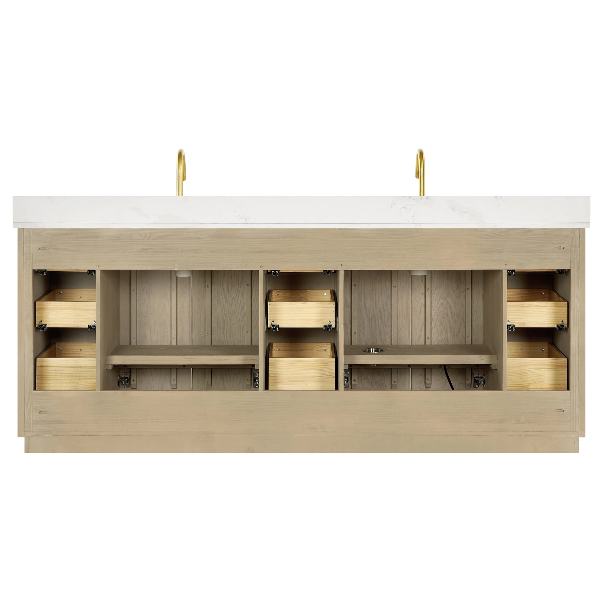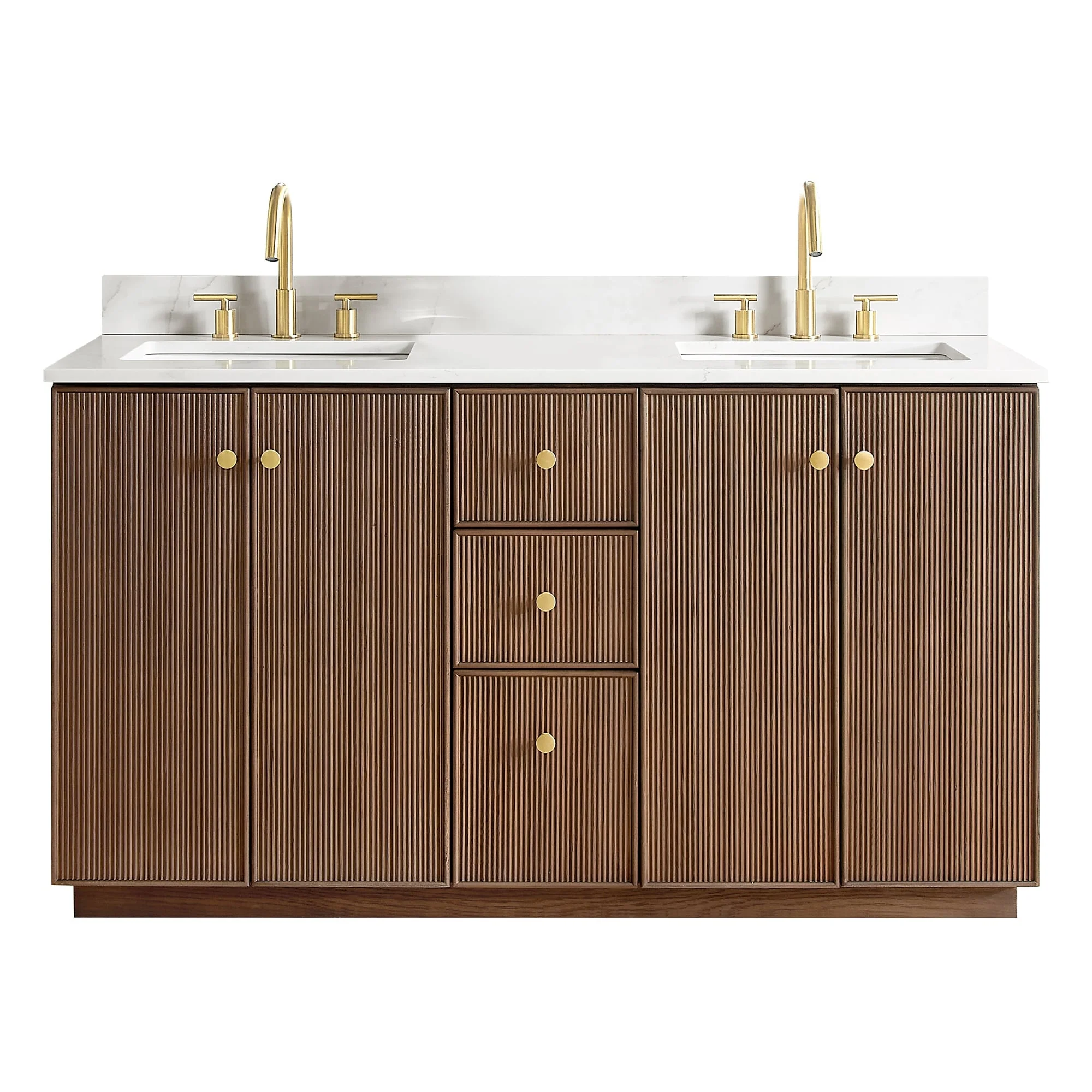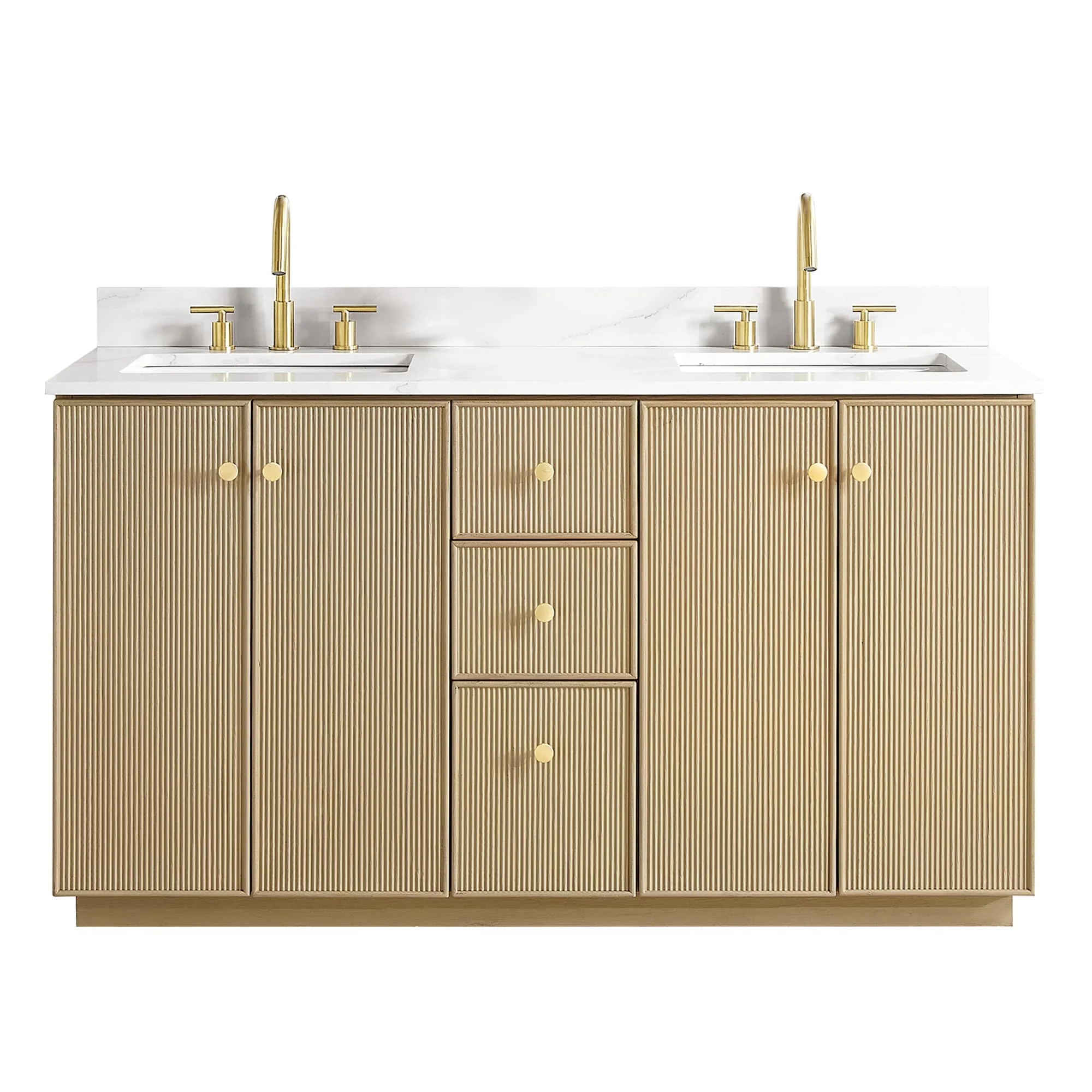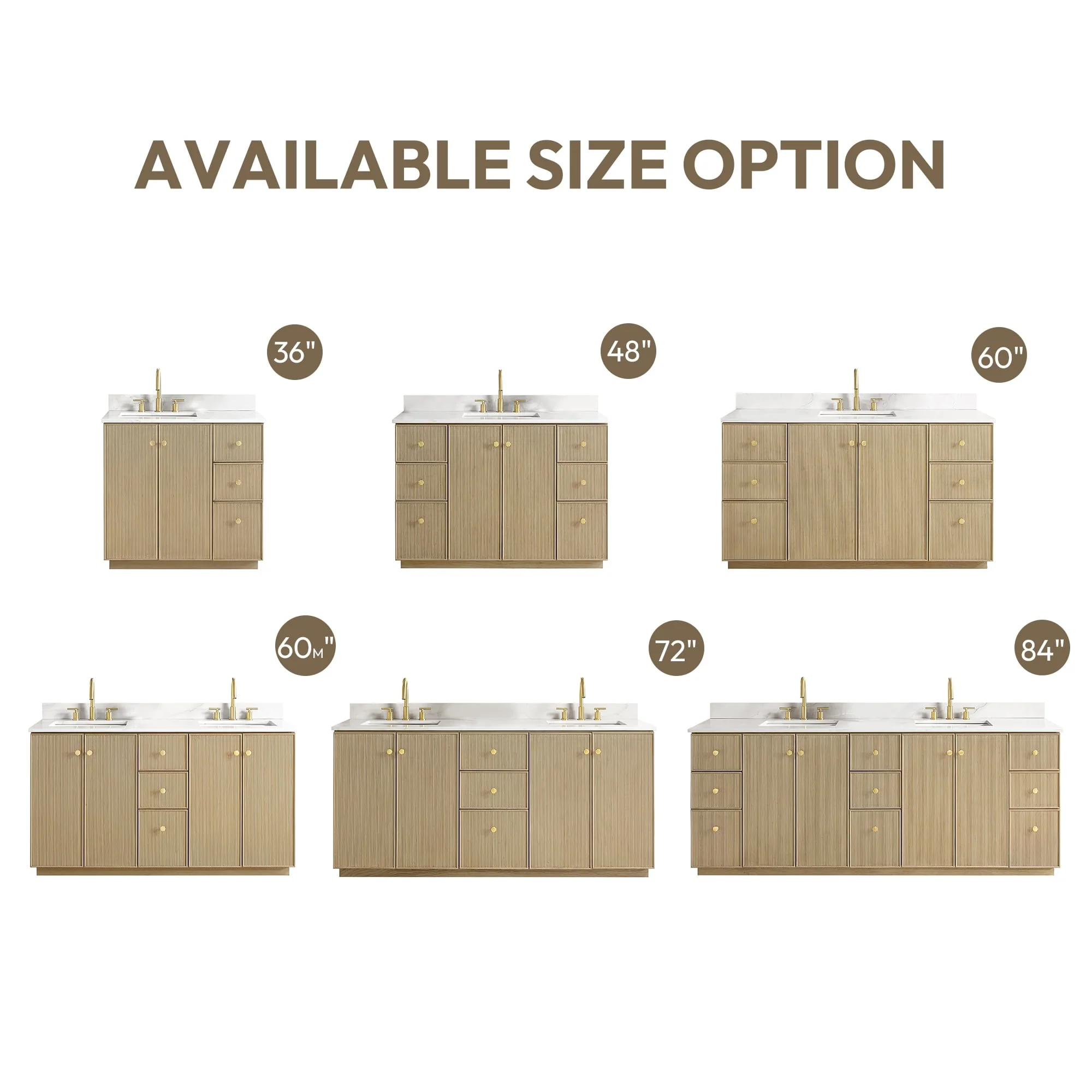 60 inch(Double sink) - 4 soft-closing doors and 3 sturdy, soft-closing dovetail drawers.