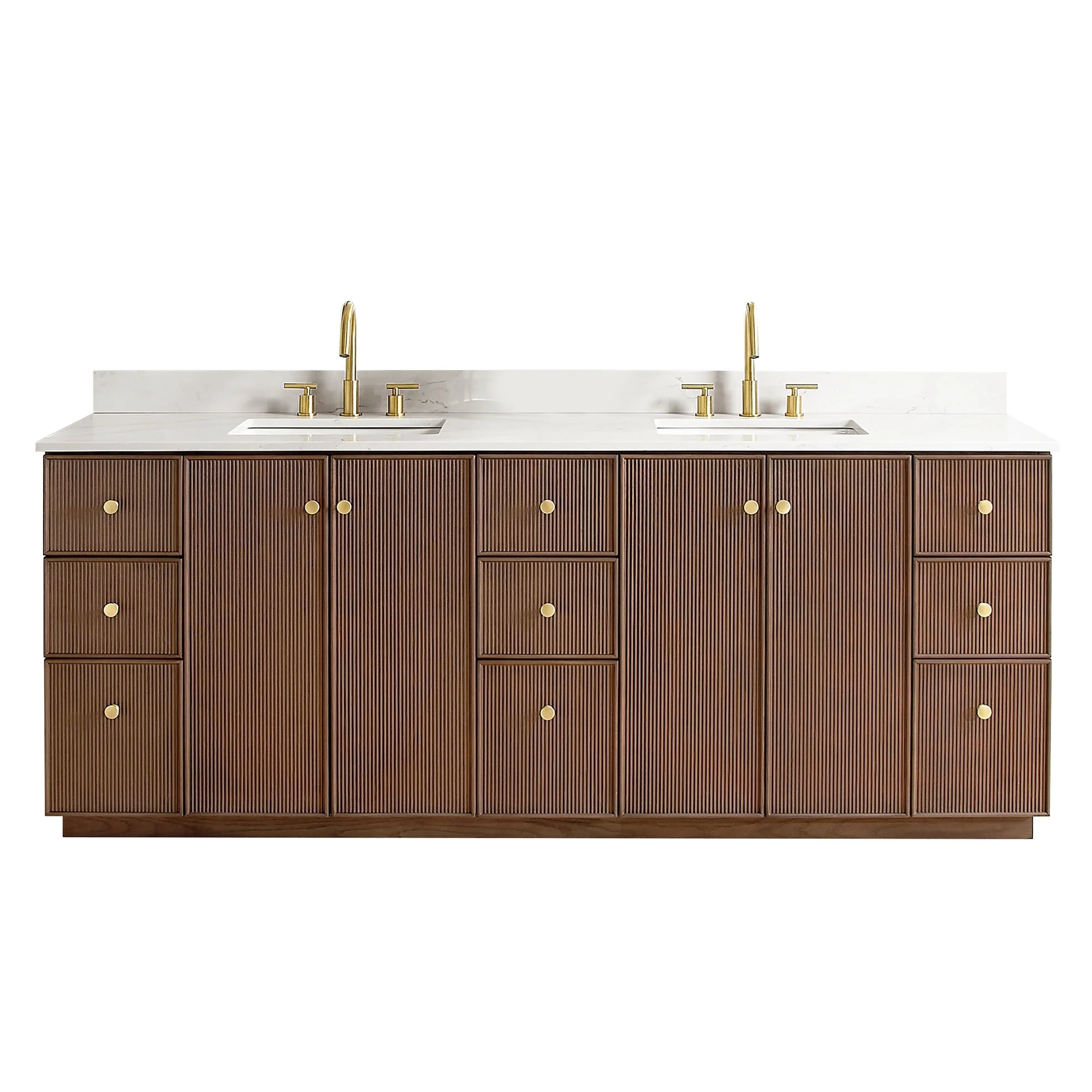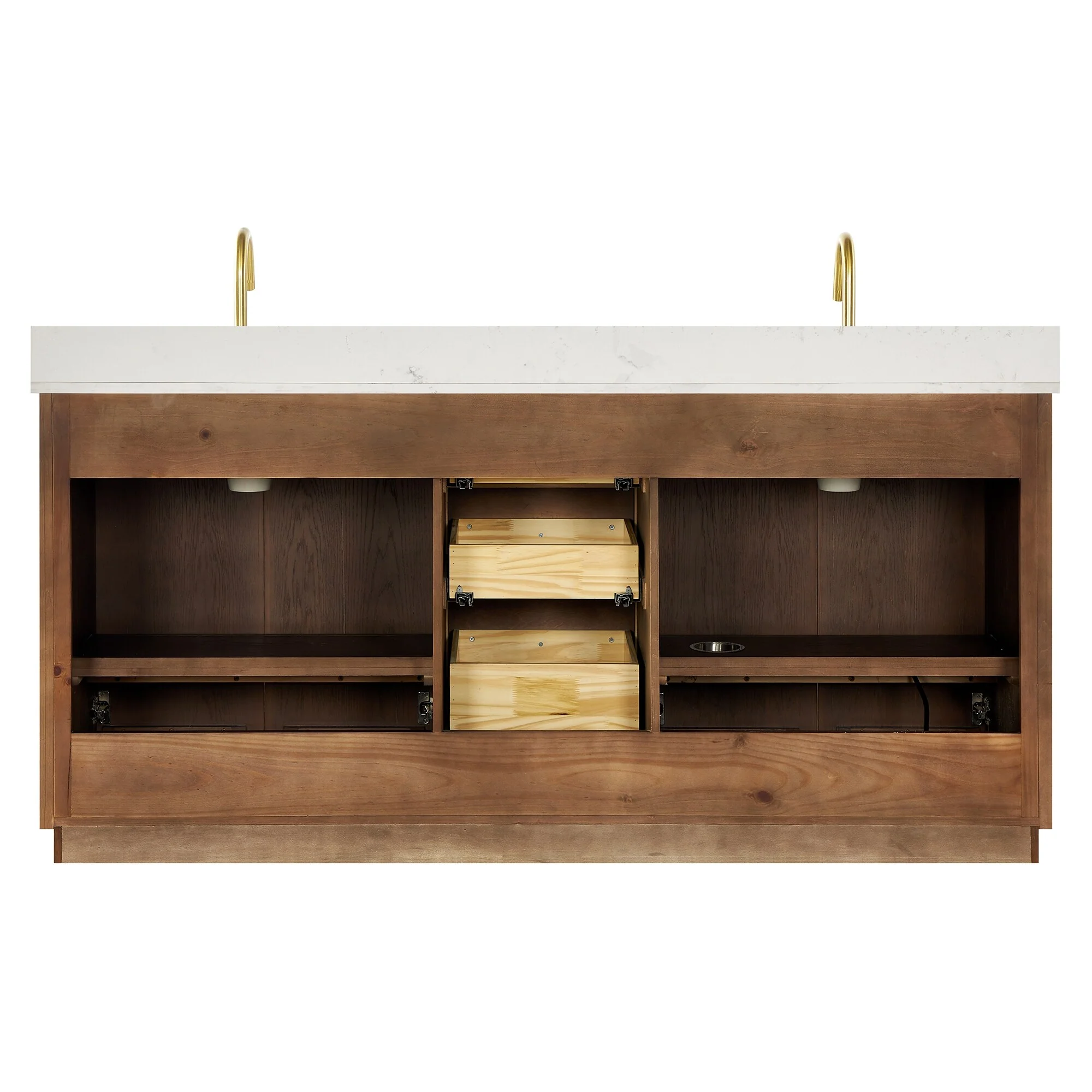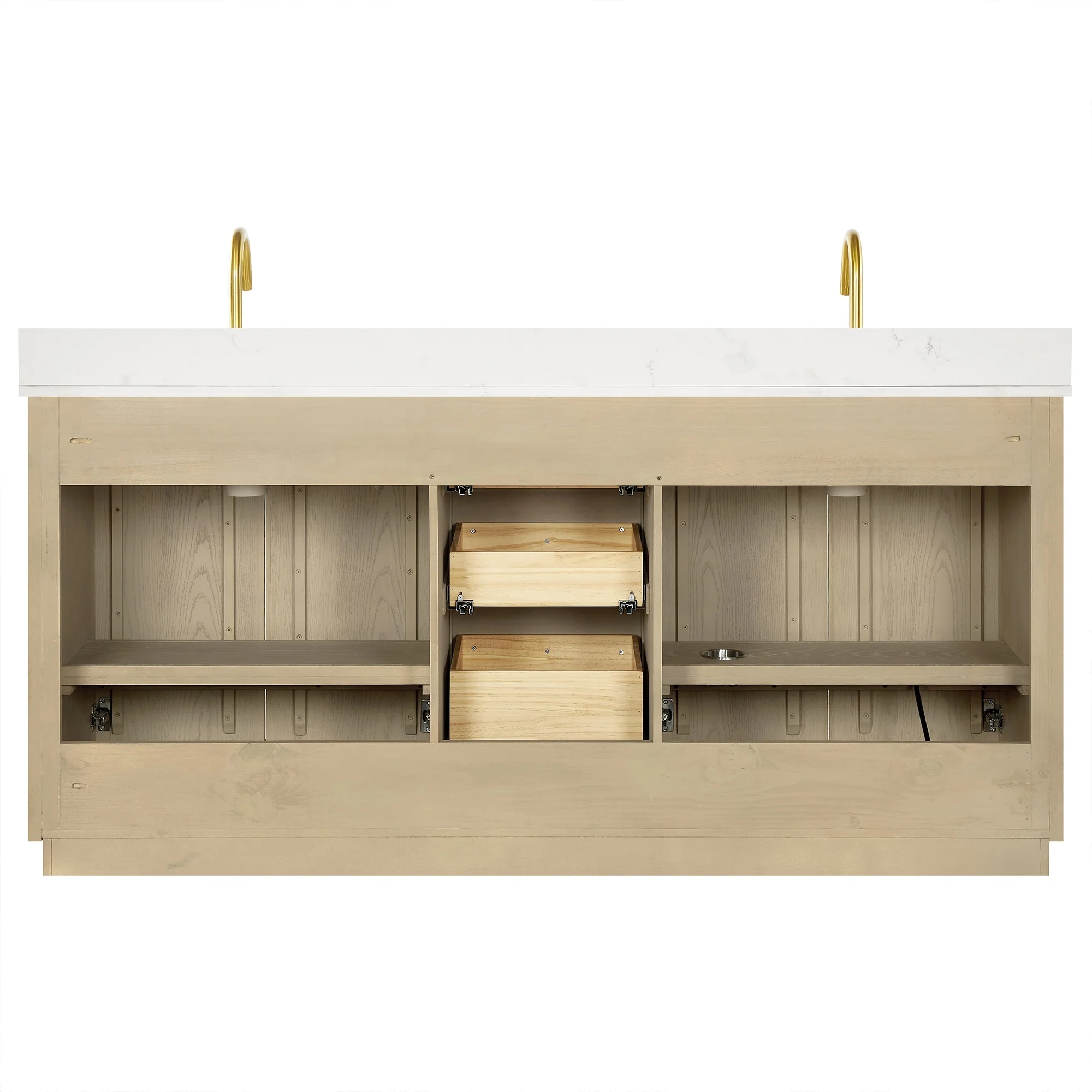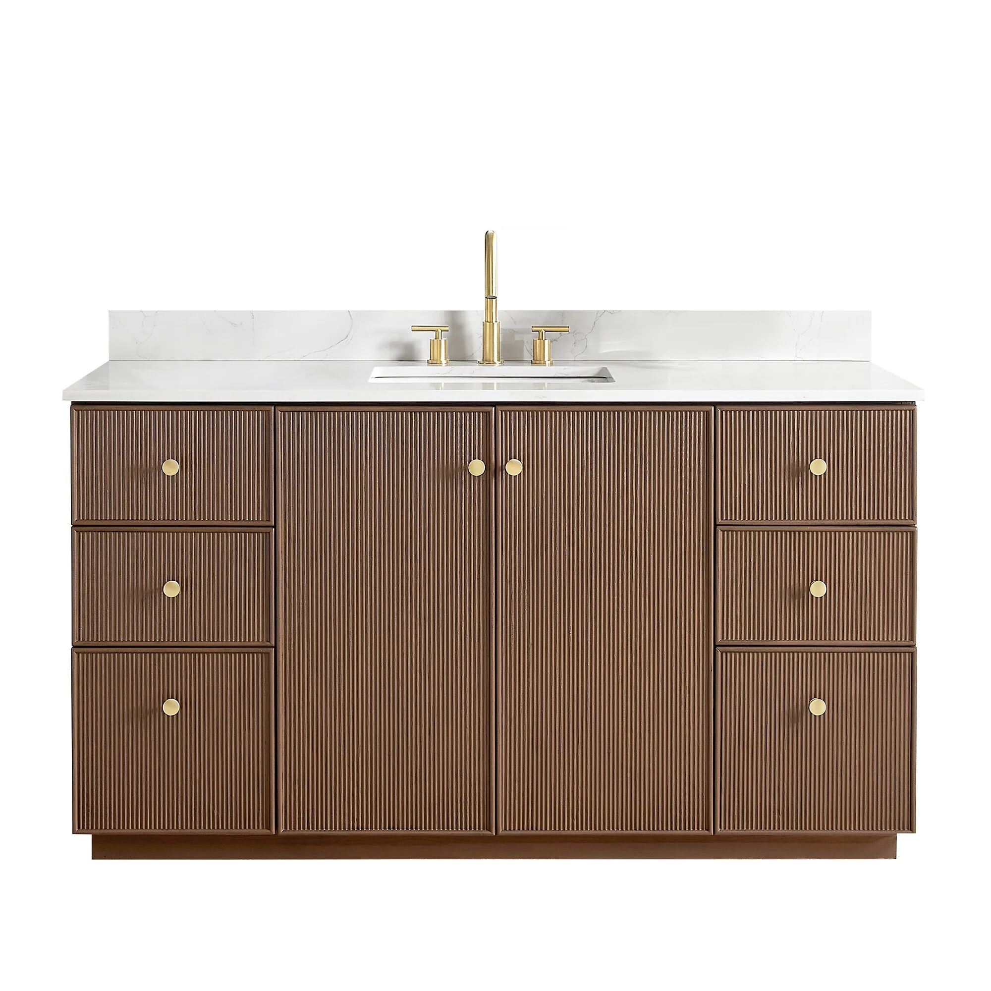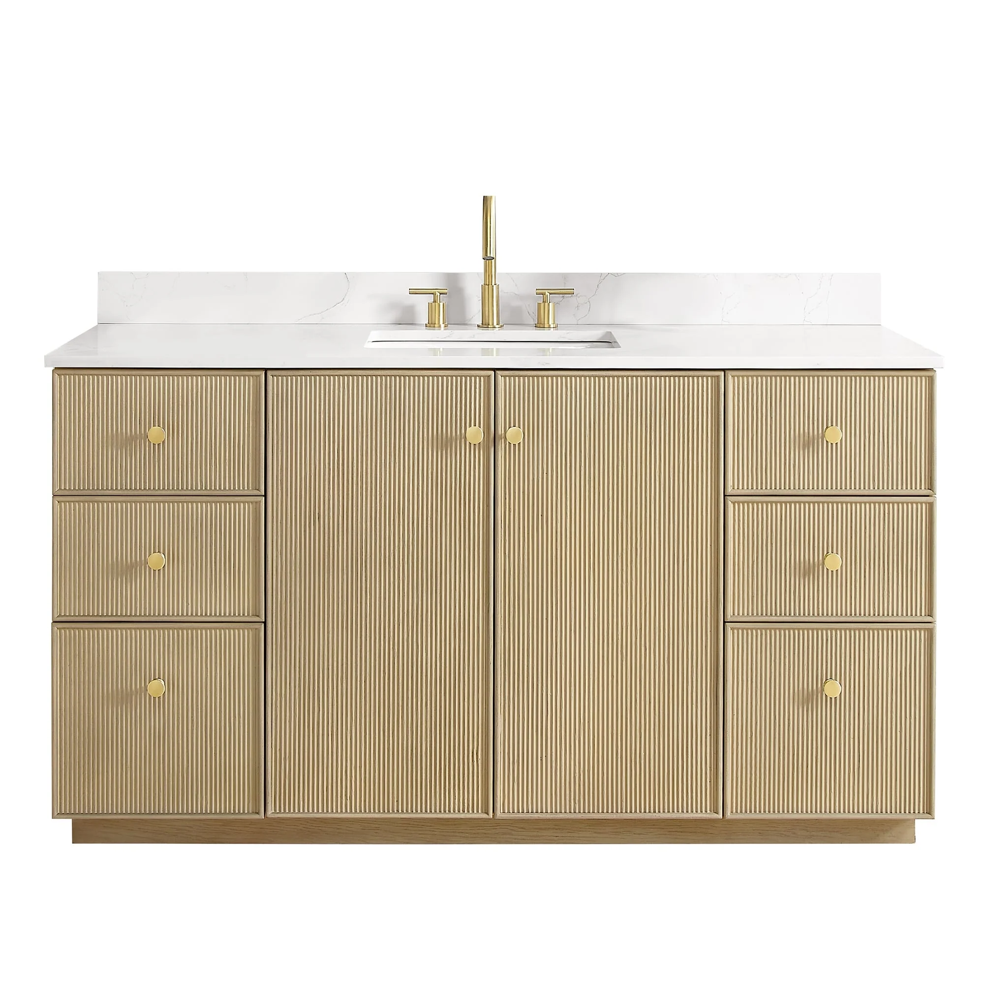 60 inch(Double sink) - 4 soft-closing doors and 3 sturdy, soft-closing dovetail drawers.