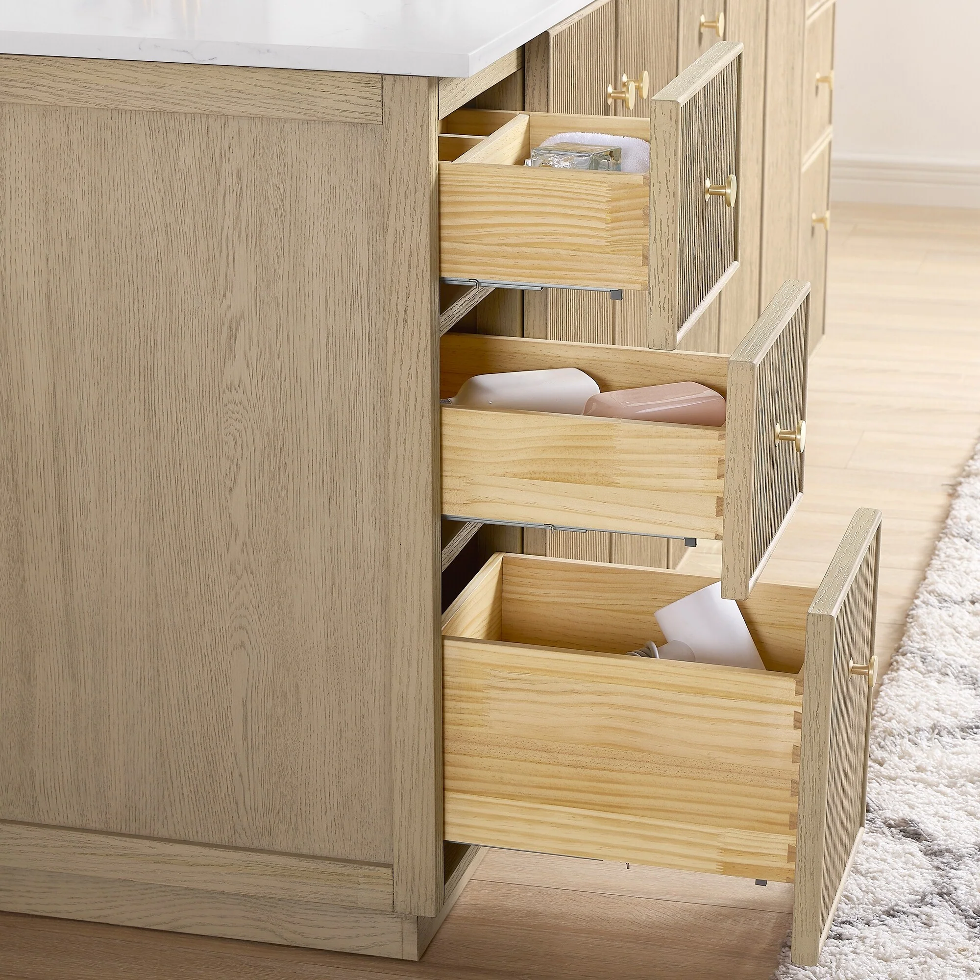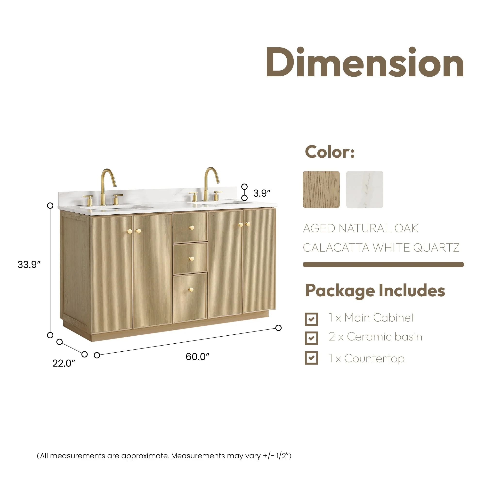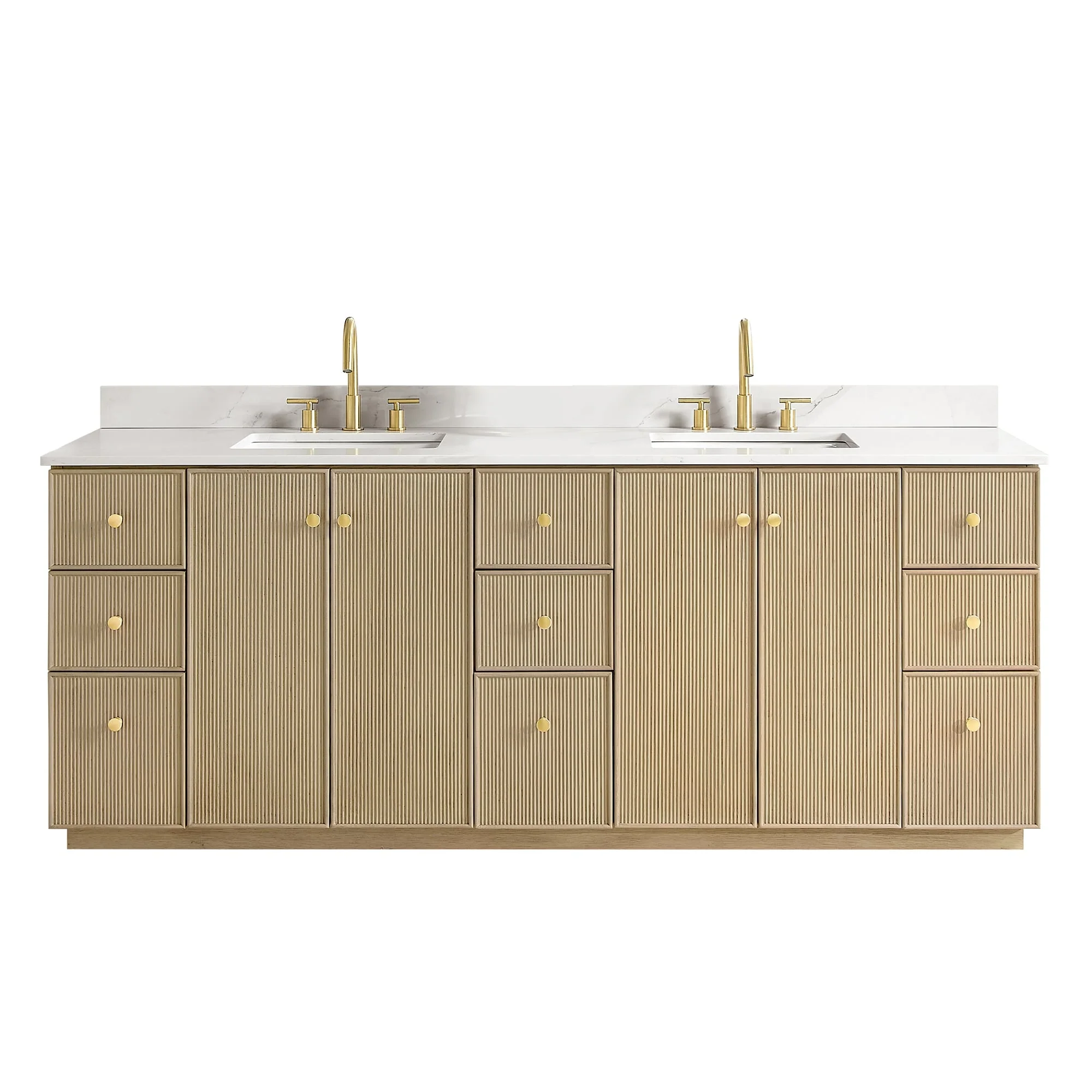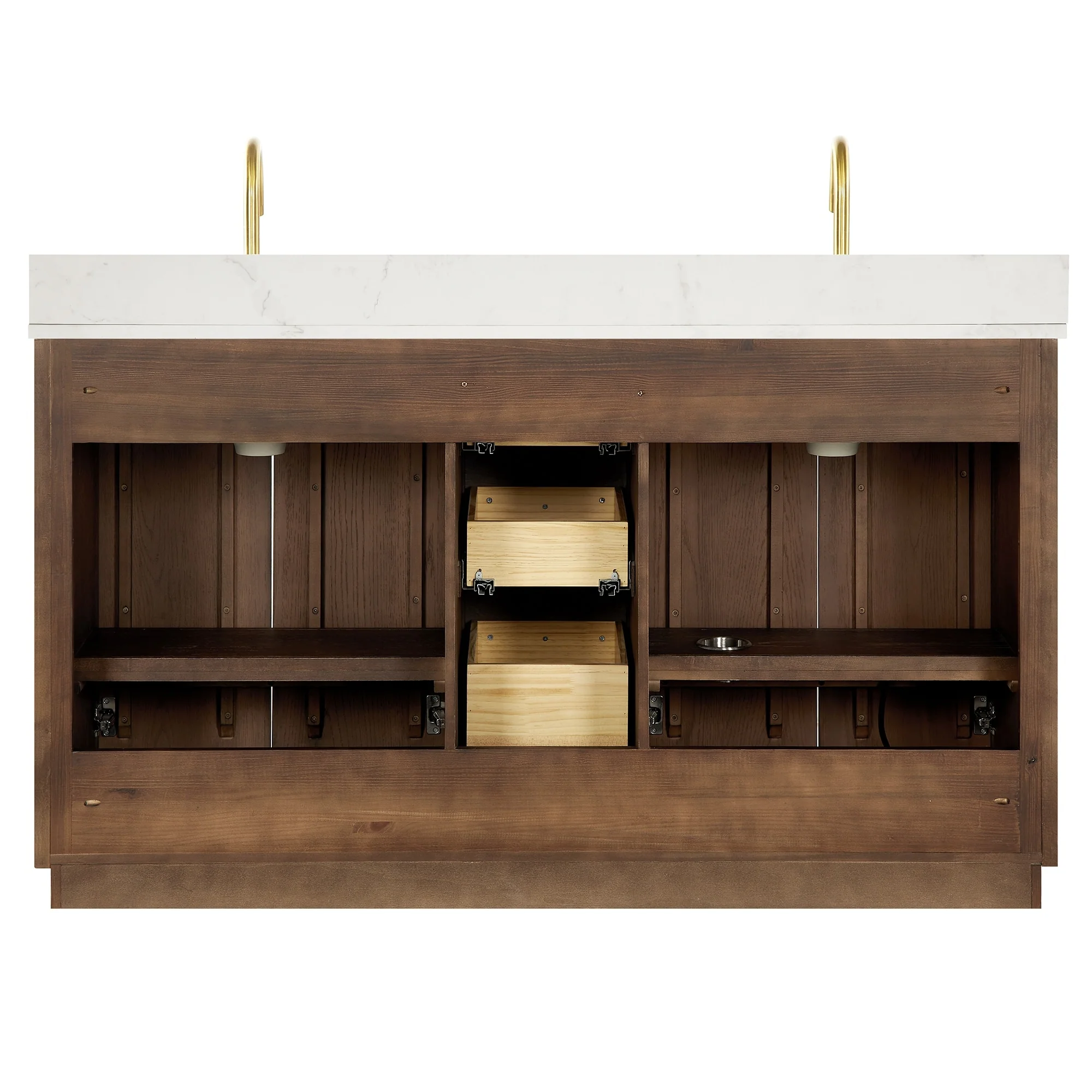 60 inch(Double sink) - 4 soft-closing doors and 3 sturdy, soft-closing dovetail drawers.
