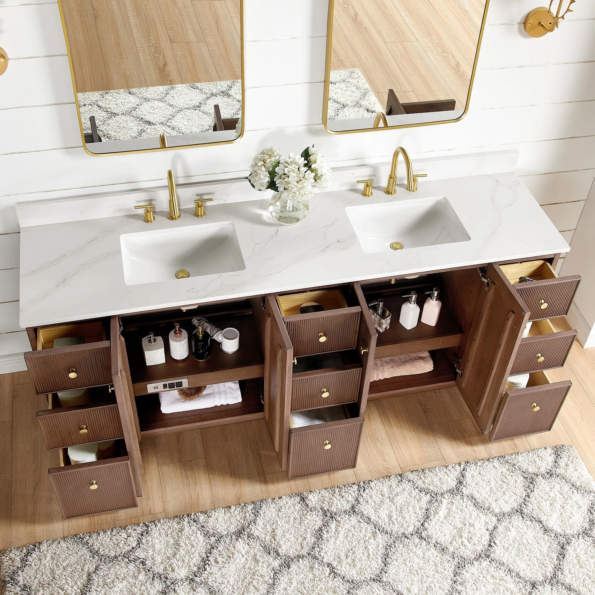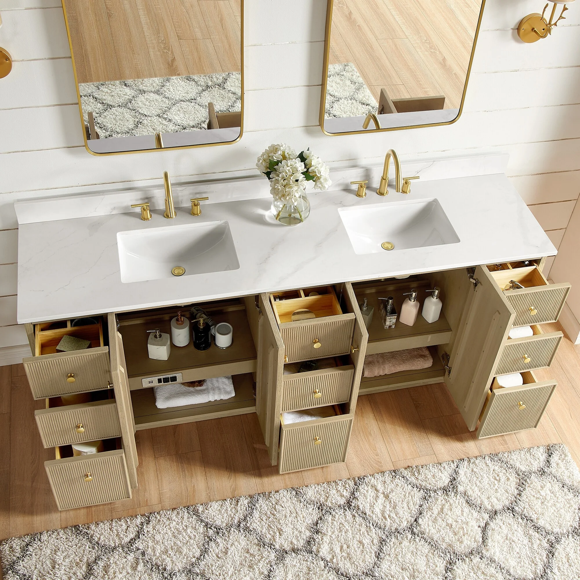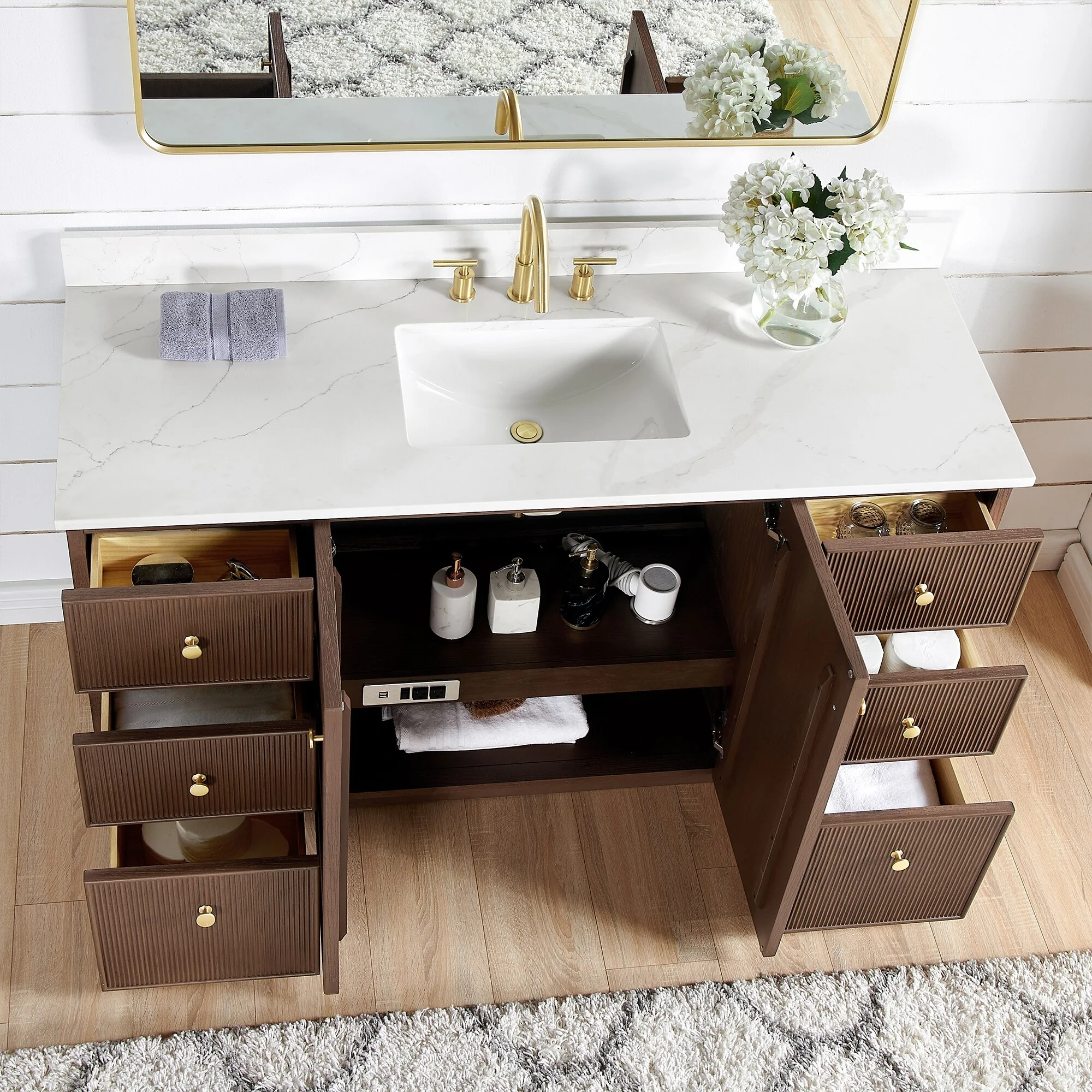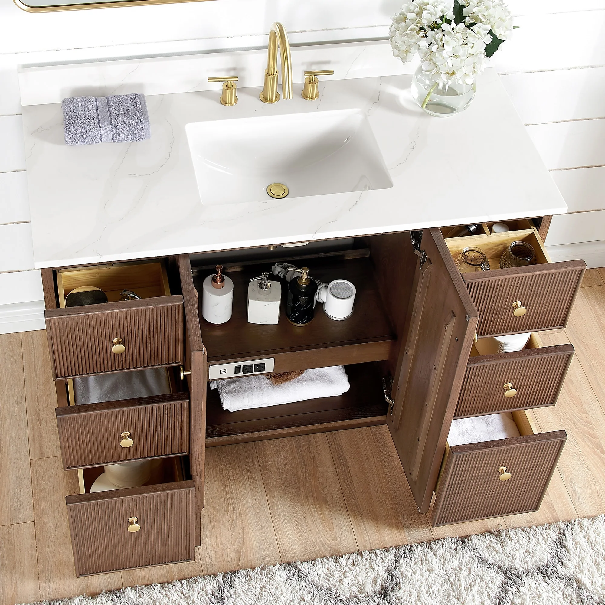 · Practical Functionality: Built-in UL-listed power and USB outlets.Includes convenient hair dryer organizer.