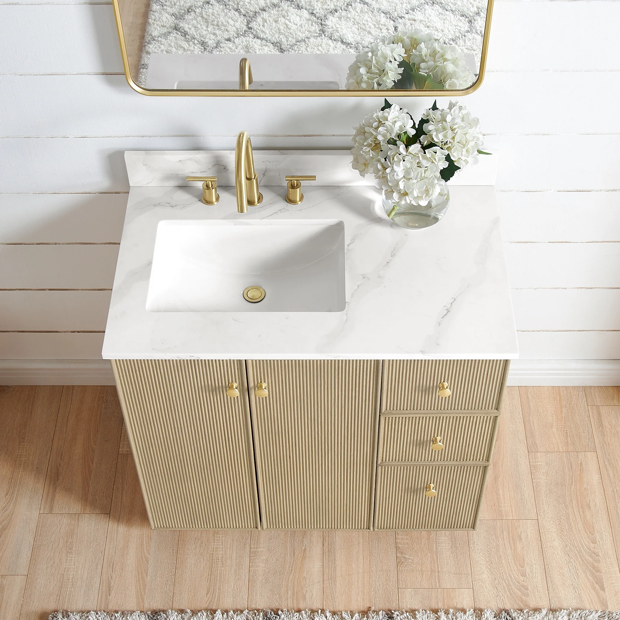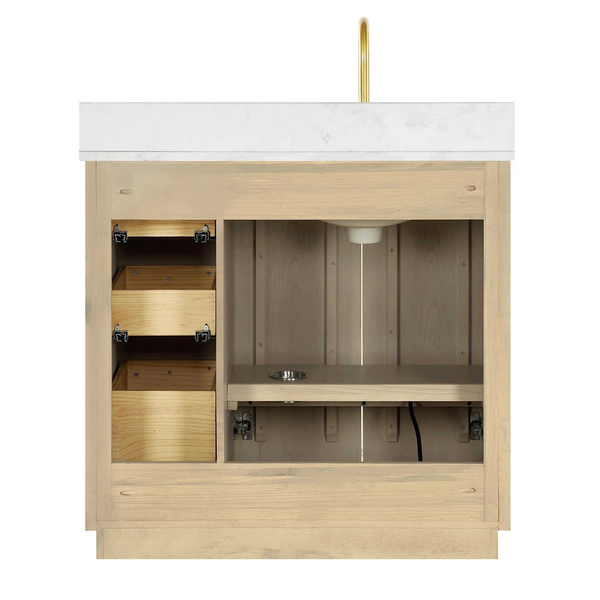 · No Installation Required: Freestanding bathroom vanity (without back panel) comes fully assembled for your convenience.