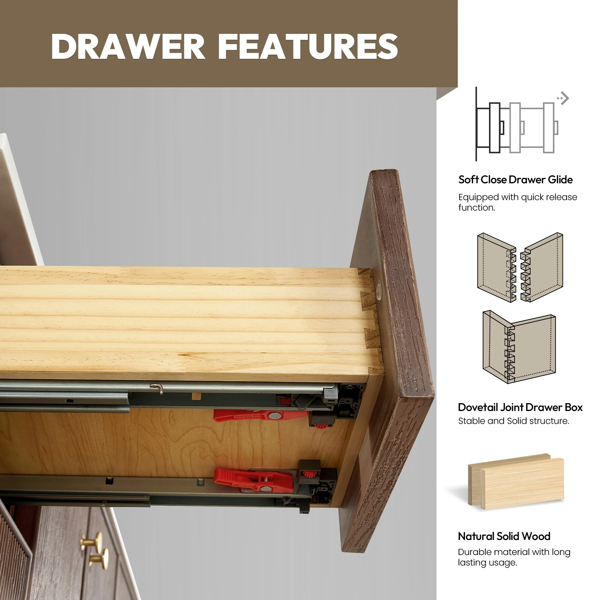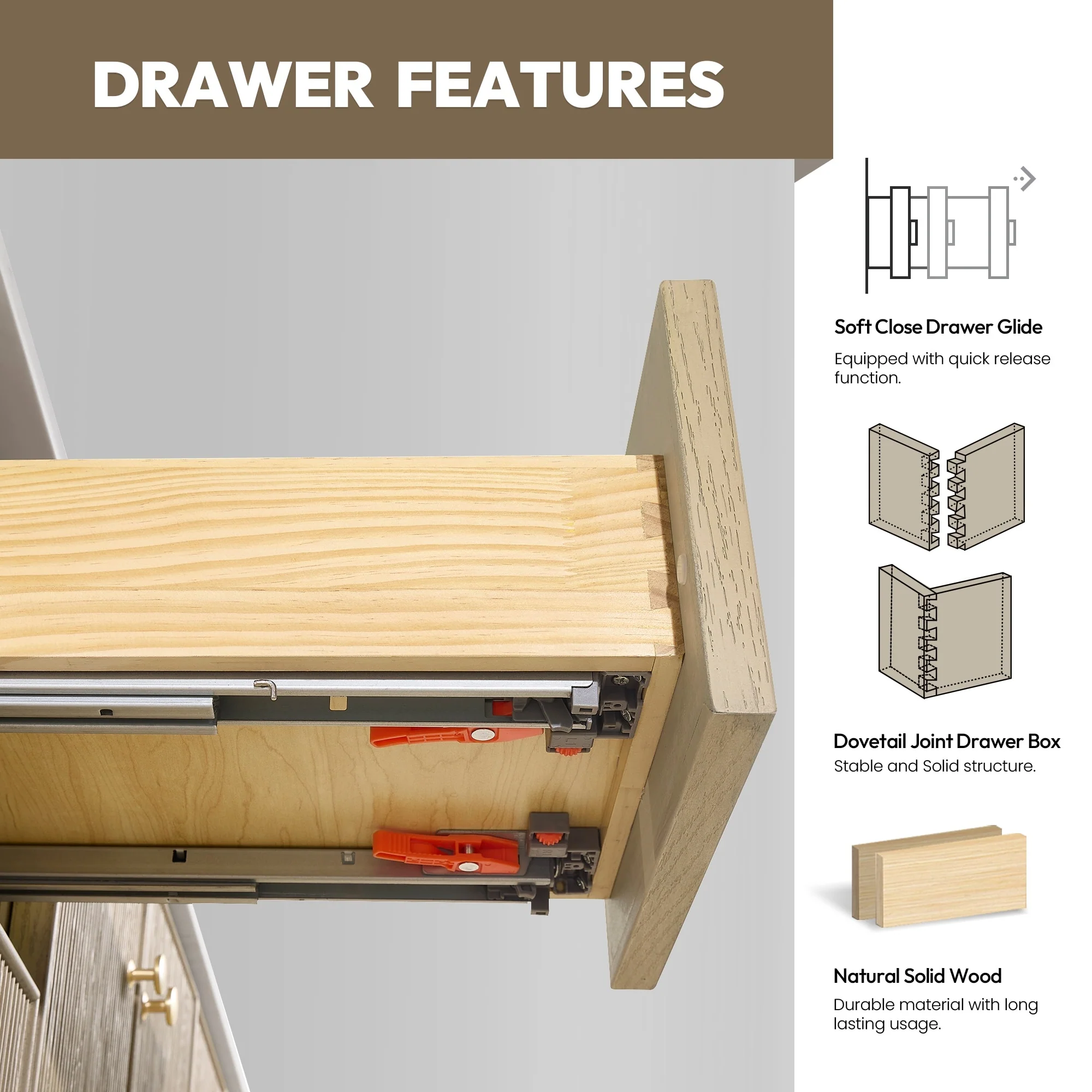 72 inch - 4 soft-closing doors and 3 sturdy, soft-closing dovetail drawers.