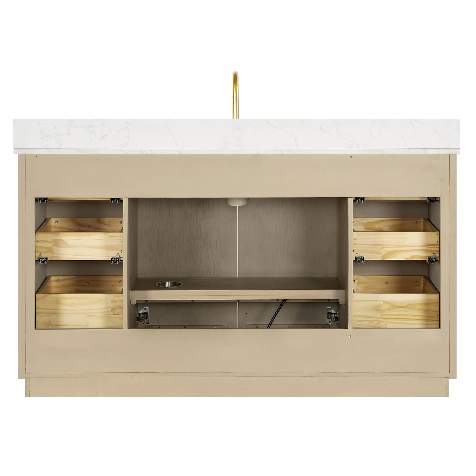 60 inch(Single sink) - 2 soft-closing doors and 6 sturdy, soft-closing dovetail drawers.