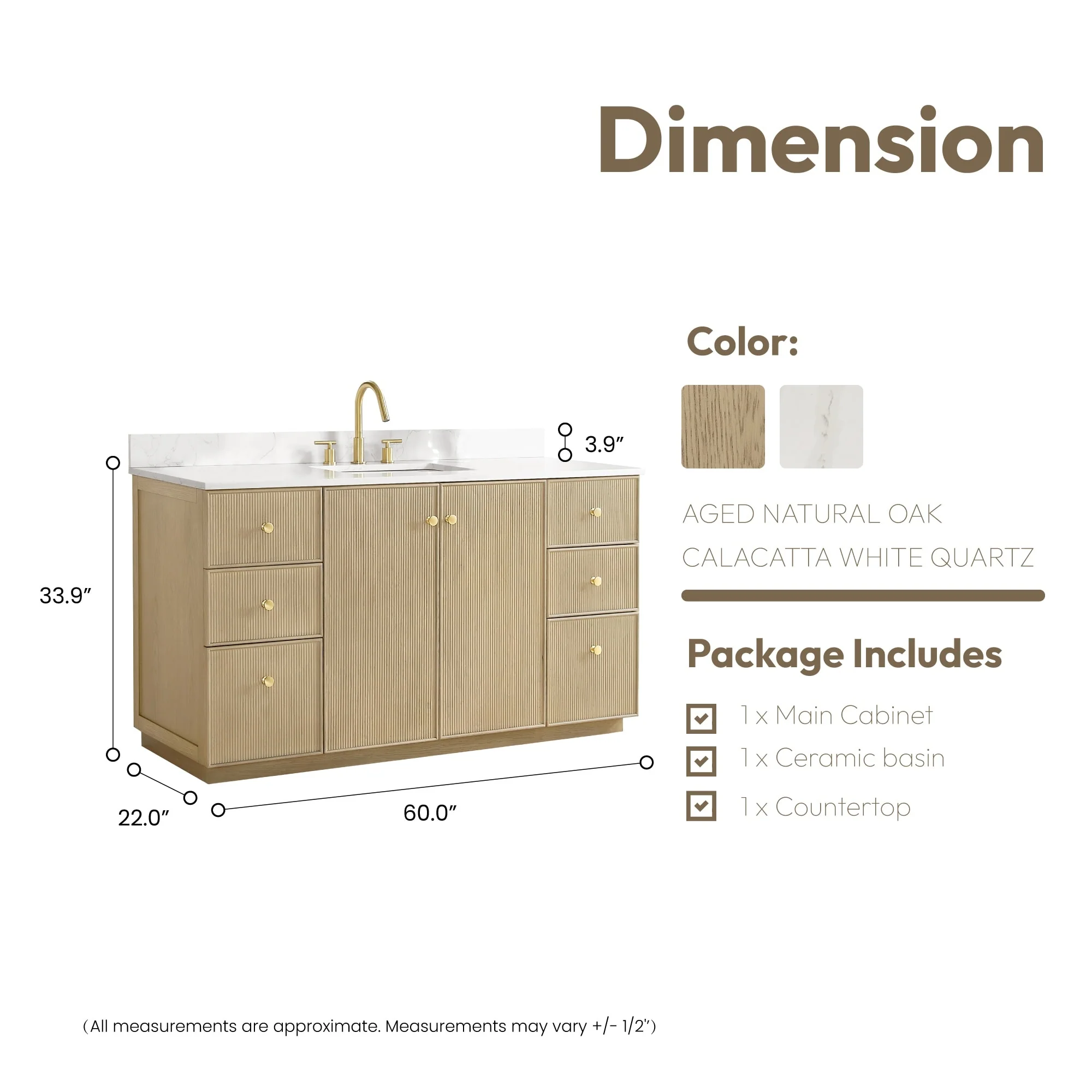 · Accessories: Does not include faucet, drain assembly or P-trap,Storage Cabinet.