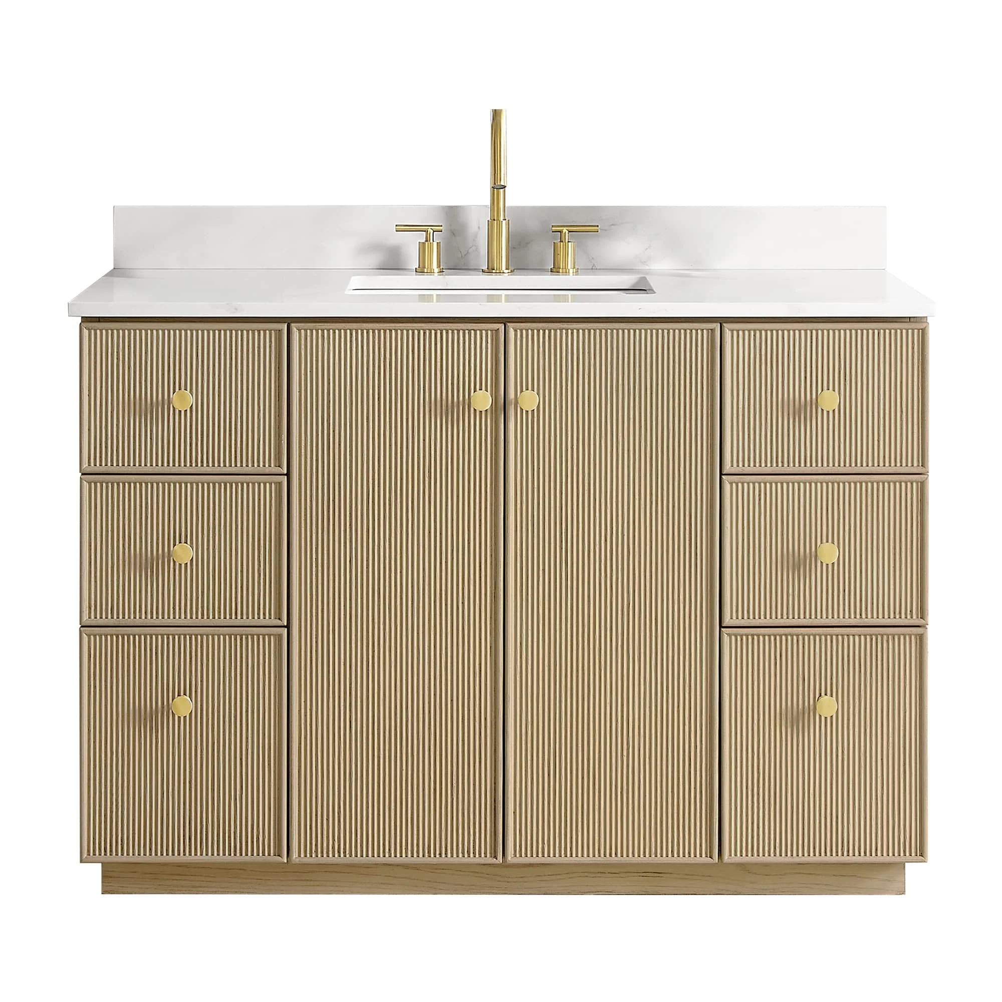 48 inch - 2 soft-closing doors and 6 sturdy, soft-closing dovetail drawers.