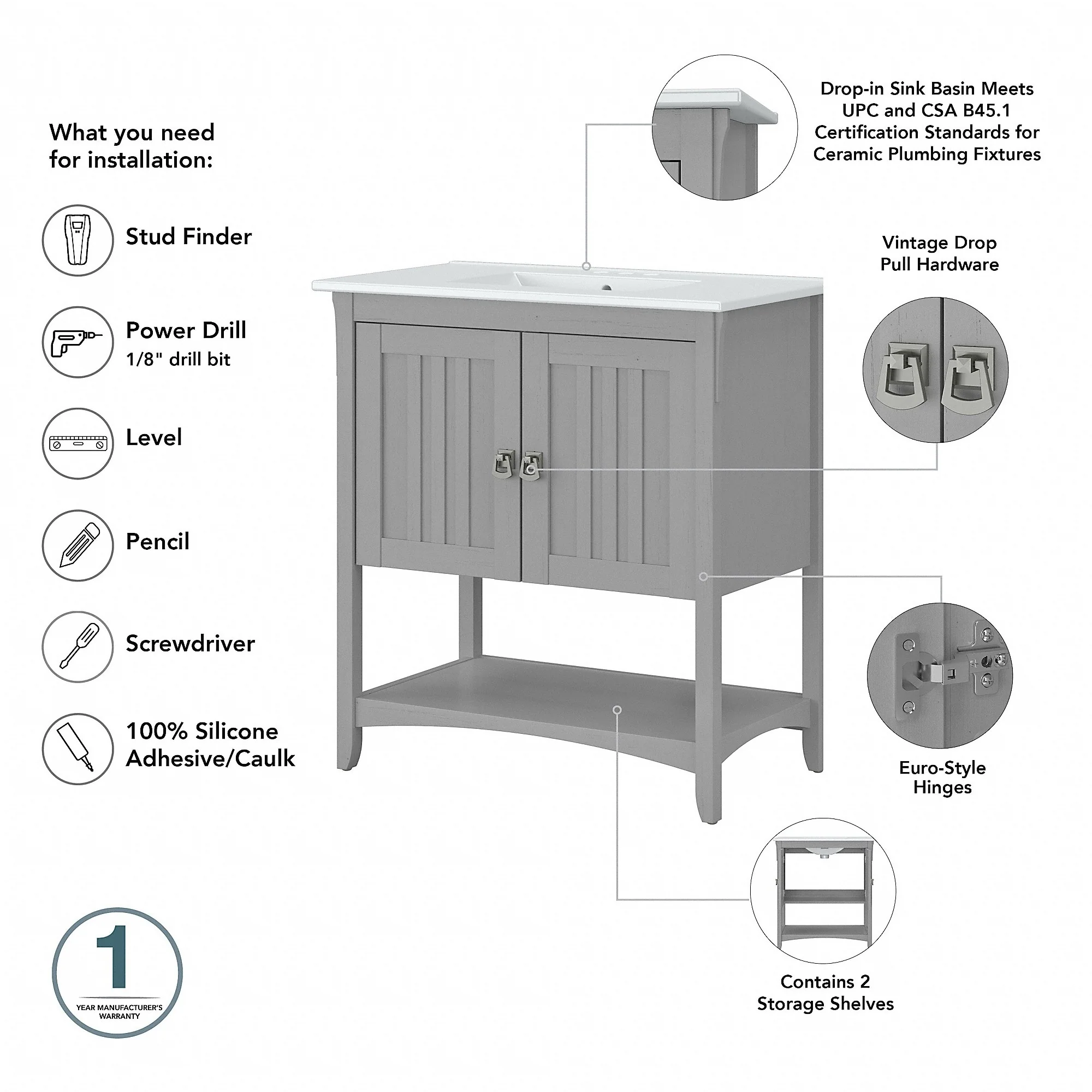 - Bundle includes: 32W Bathroom Vanity Cabinet, 32W Drop-in Bathroom Sink Basin