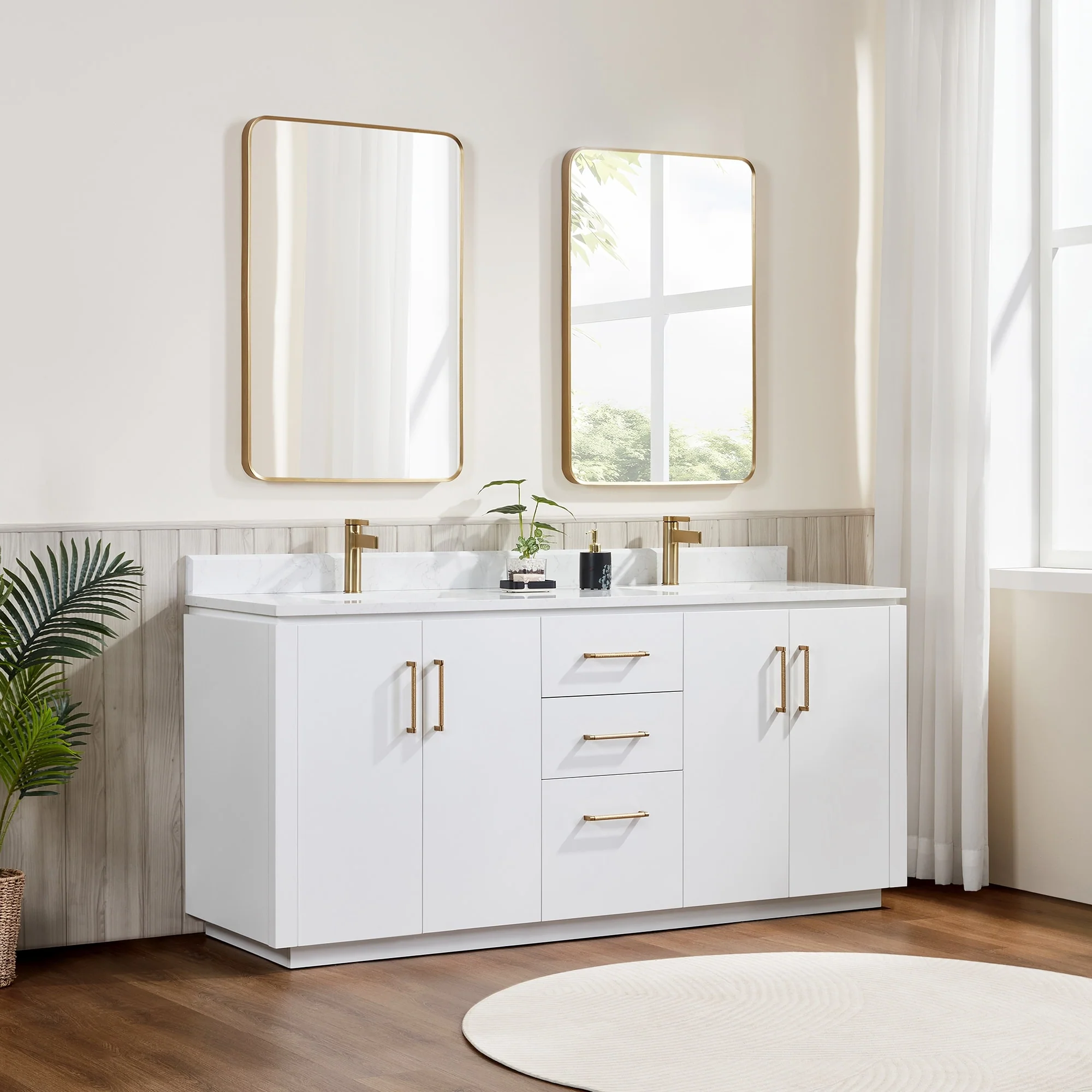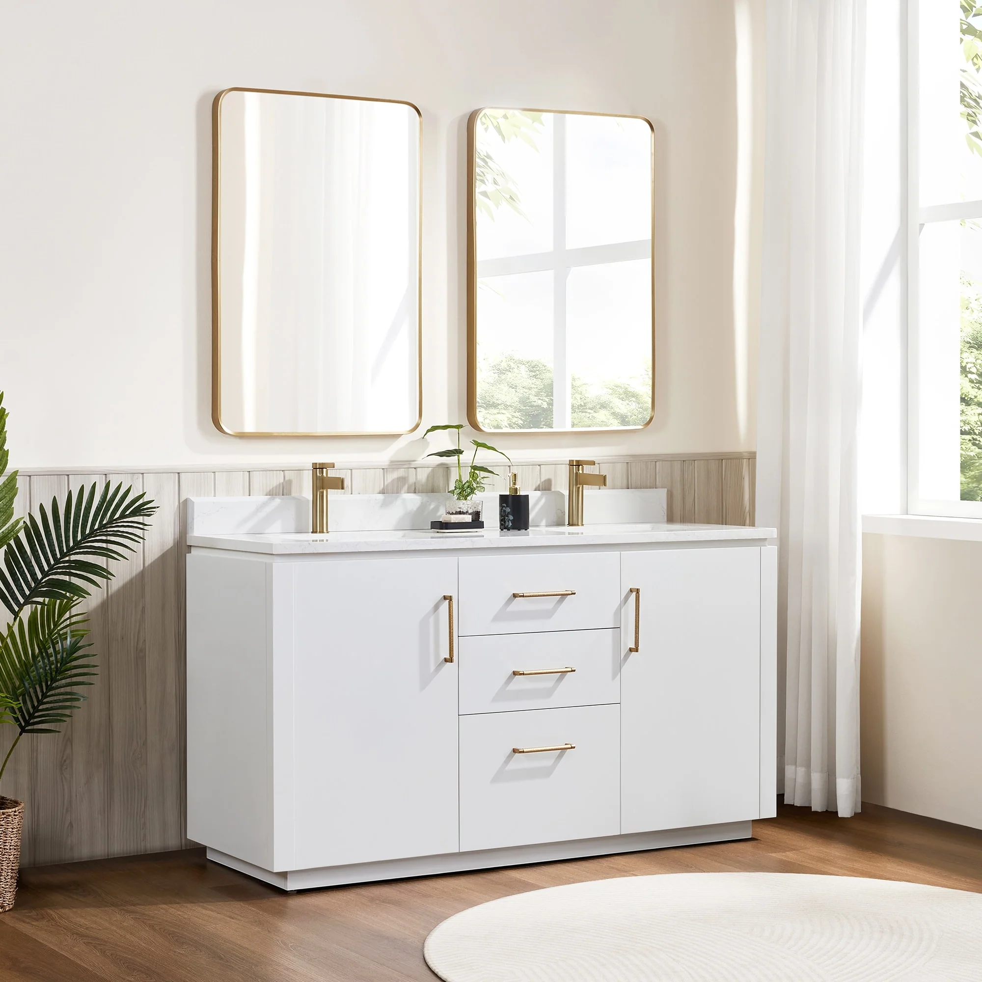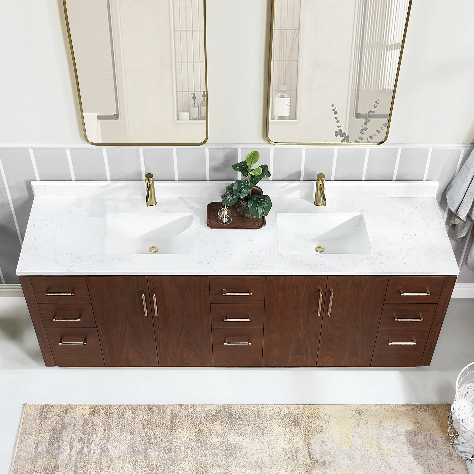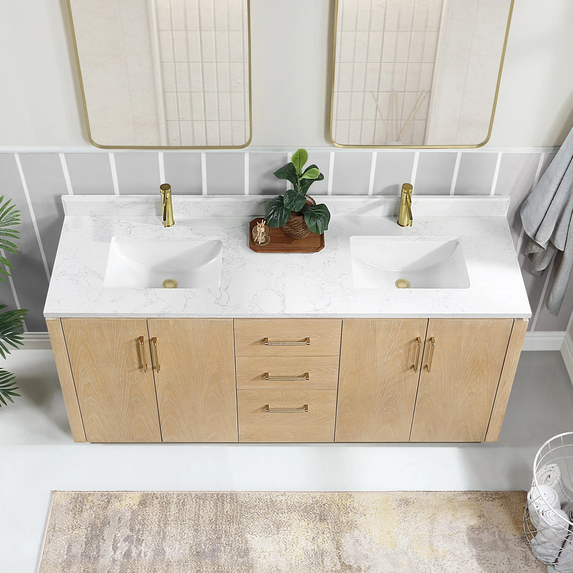 Our exquisite San Series Vanity is expertly crafted from premium hardwood, ensuring exceptional durability and a timeless aesthetic that never goes out of style. The natural grain of the wood adds warmth, texture, and character to your bathroom space, creating a seamless fusion of modern and classic design elements. Soft-closing drawers and cabinets provide you with easy, organized access to all your essentials.