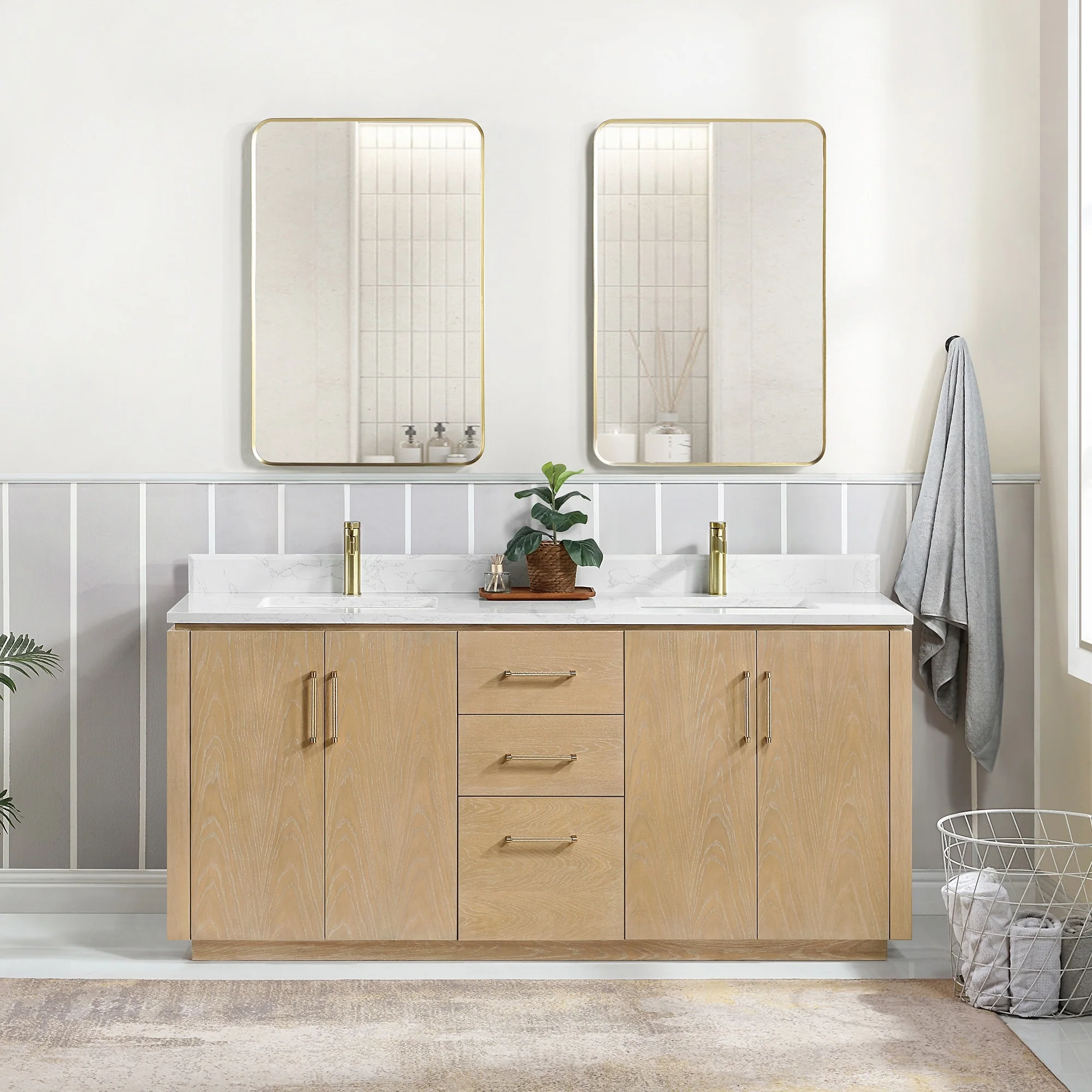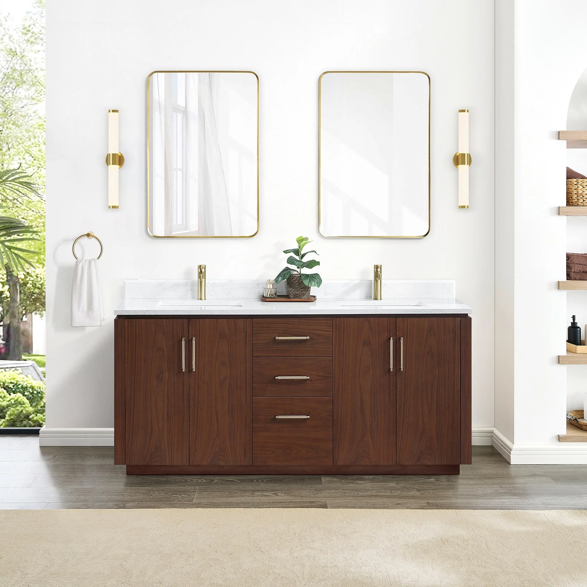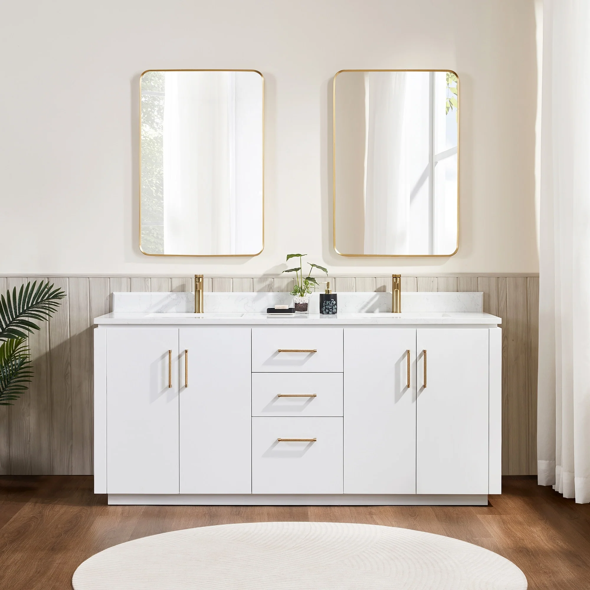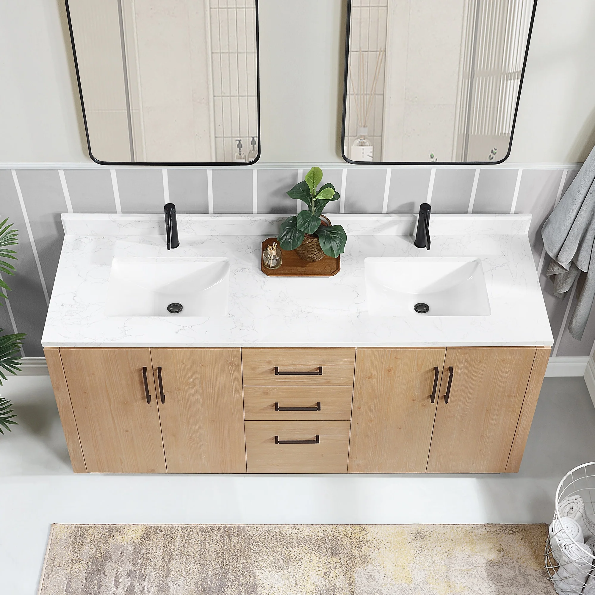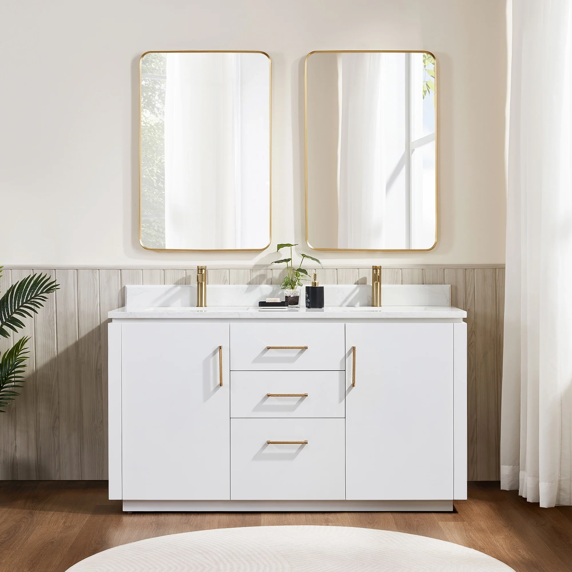 Our exquisite San Series Vanity is expertly crafted from premium hardwood, ensuring exceptional durability and a timeless aesthetic that never goes out of style. The natural grain of the wood adds warmth, texture, and character to your bathroom space, creating a seamless fusion of modern and classic design elements. Soft-closing drawers and cabinets provide you with easy, organized access to all your essentials.