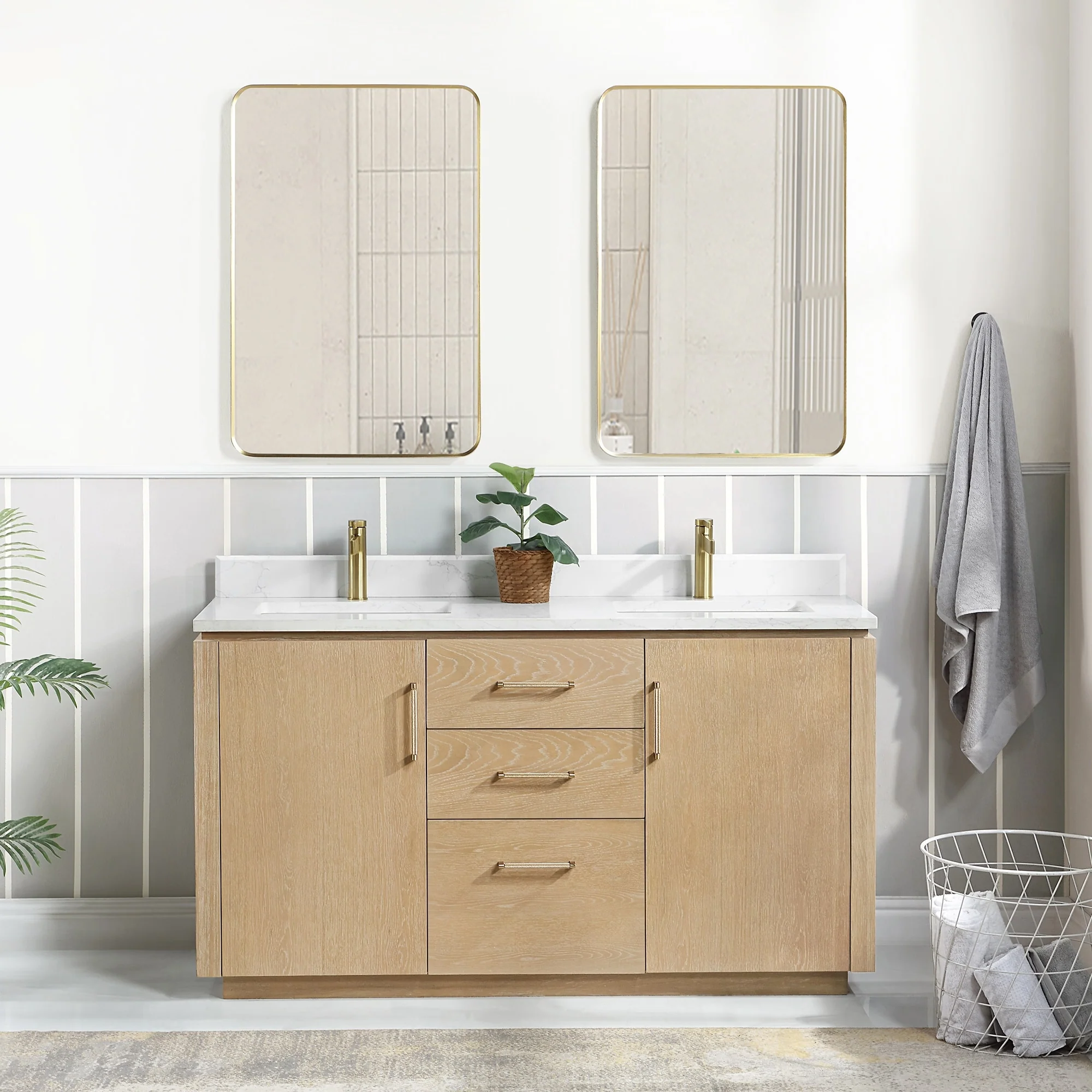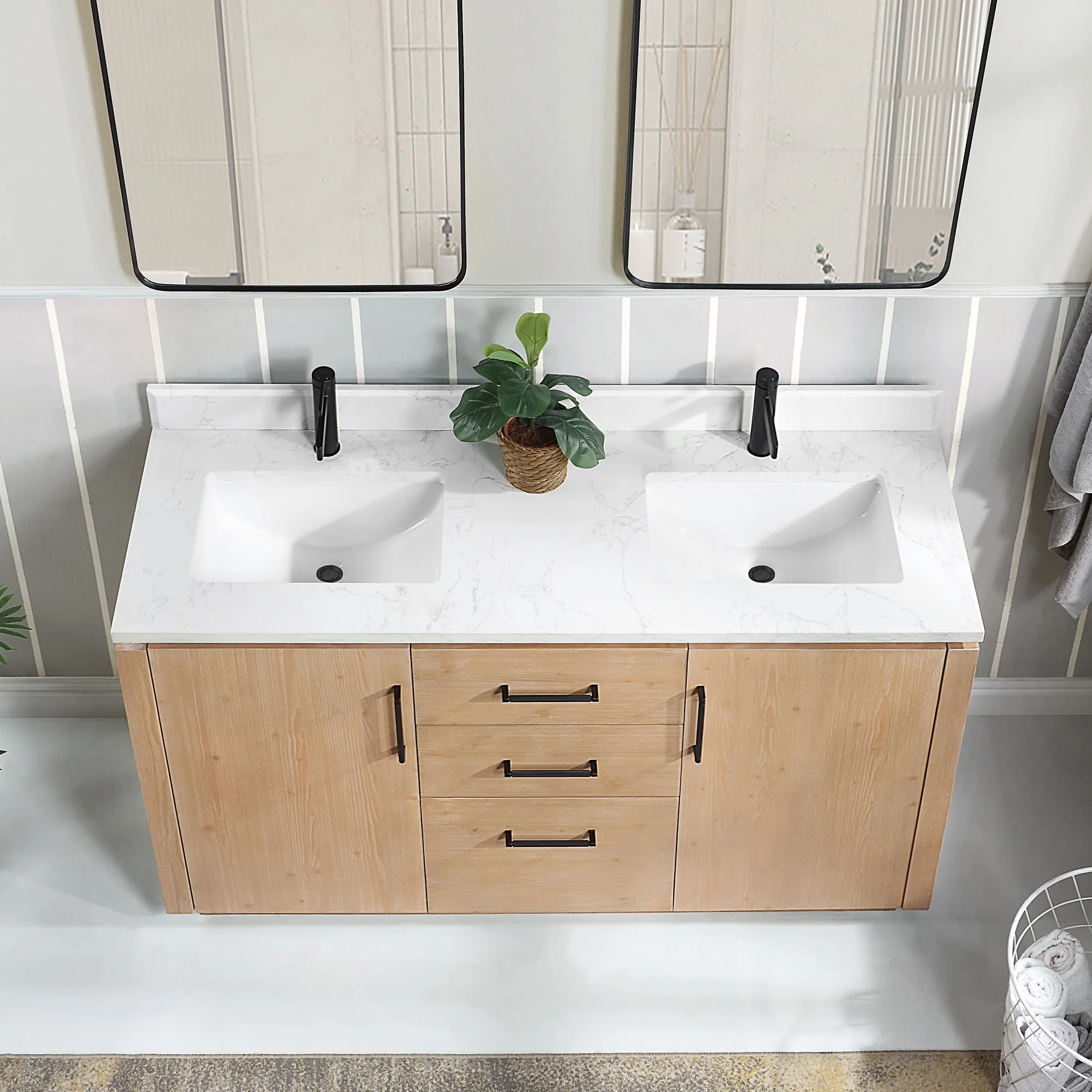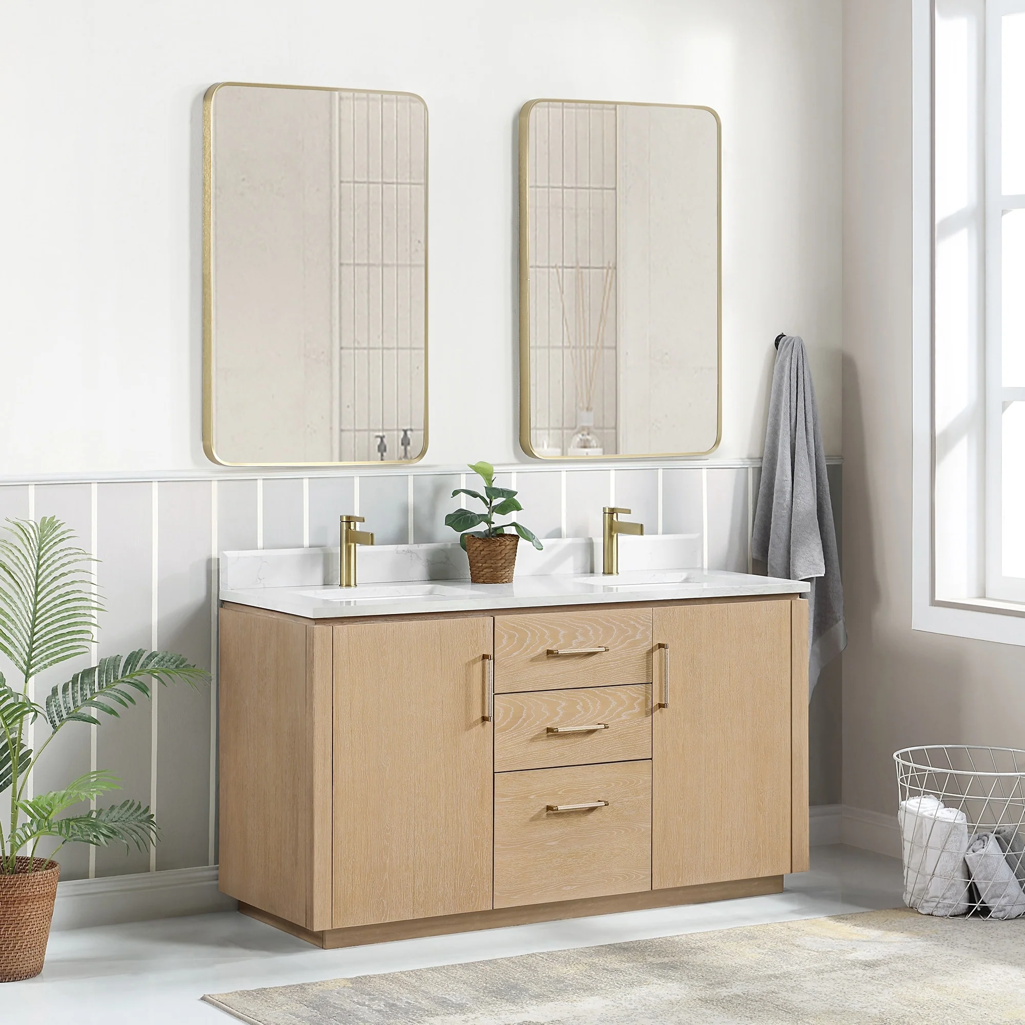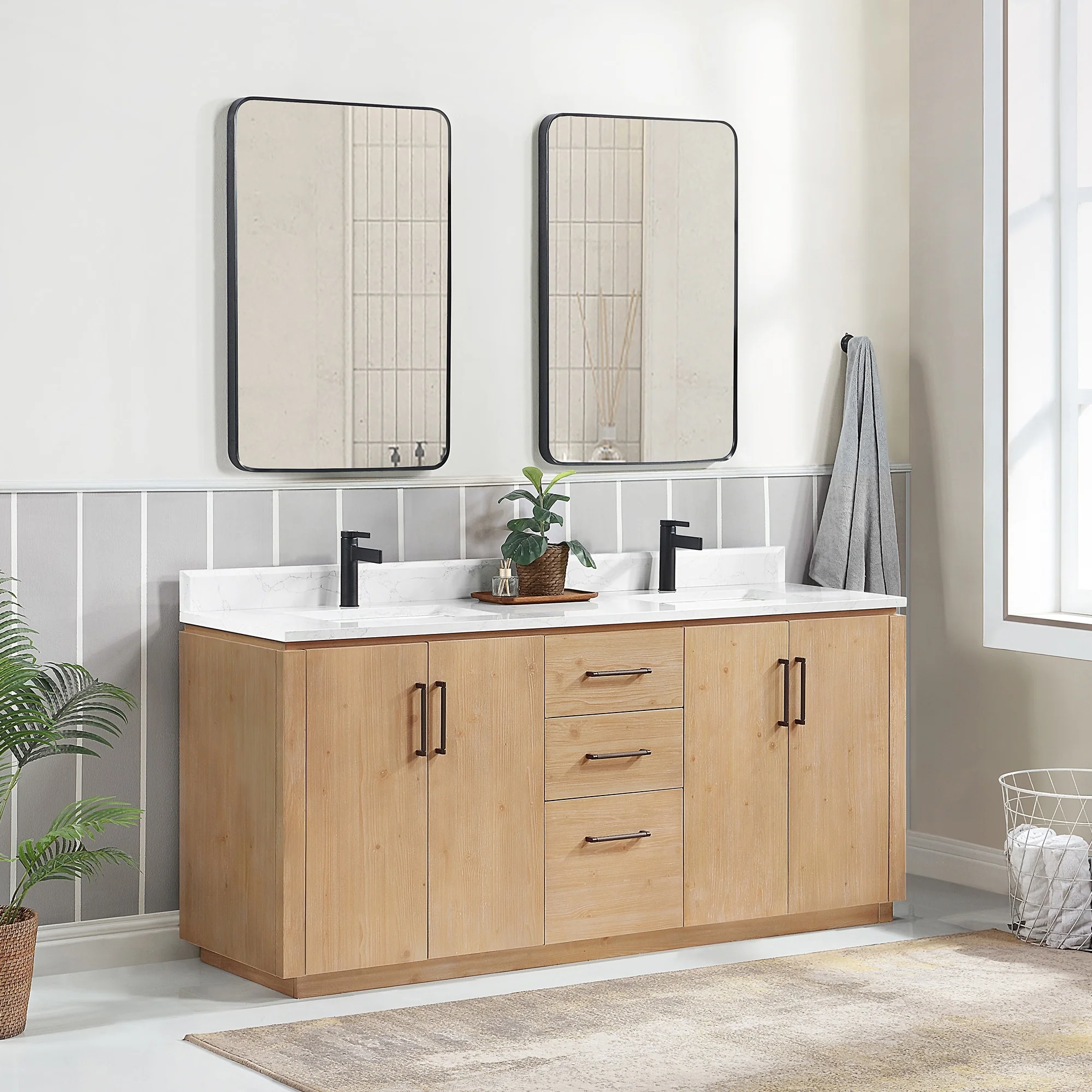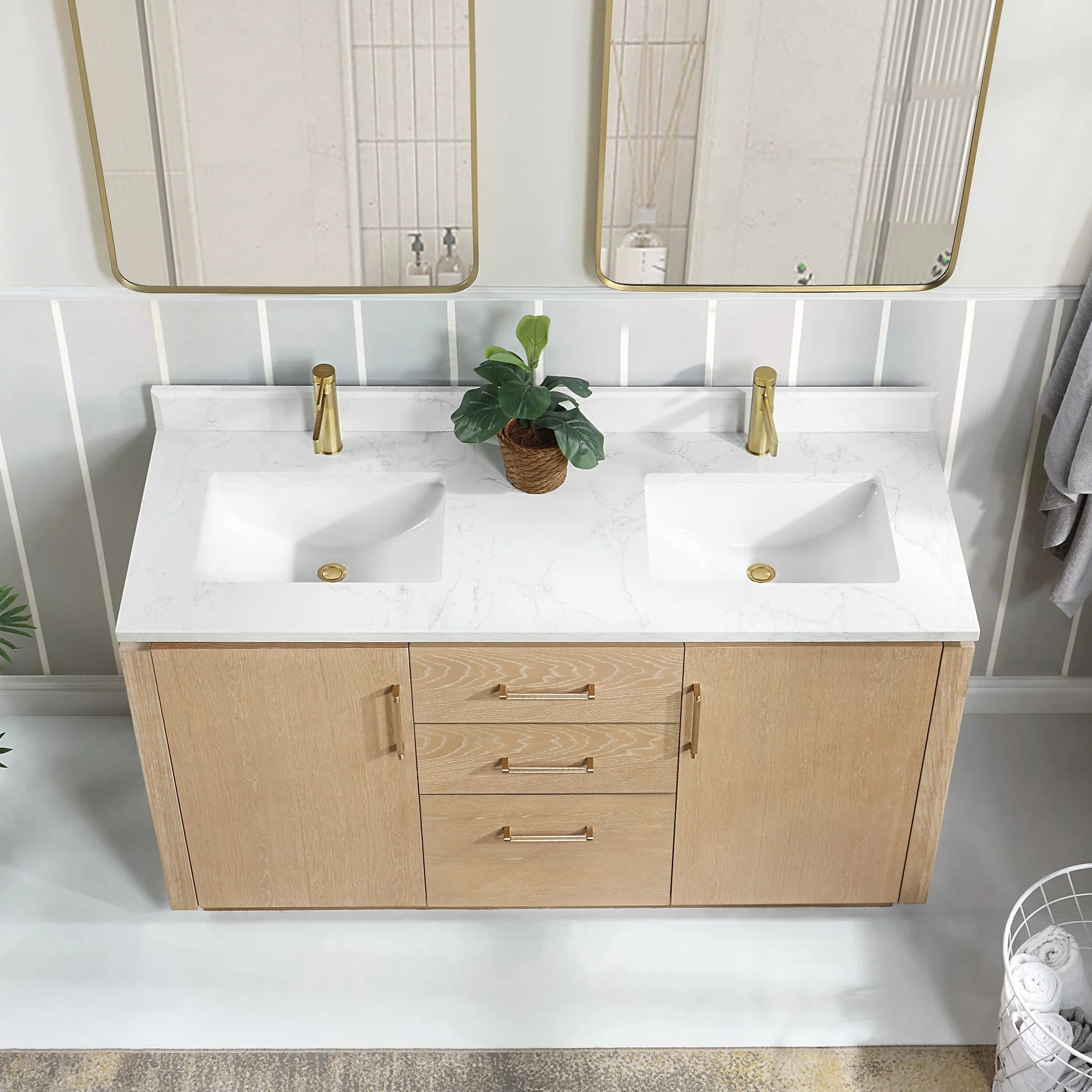 Our exquisite San Series Vanity is expertly crafted from premium hardwood, ensuring exceptional durability and a timeless aesthetic that never goes out of style. The natural grain of the wood adds warmth, texture, and character to your bathroom space, creating a seamless fusion of modern and classic design elements. Soft-closing drawers and cabinets provide you with easy, organized access to all your essentials.
