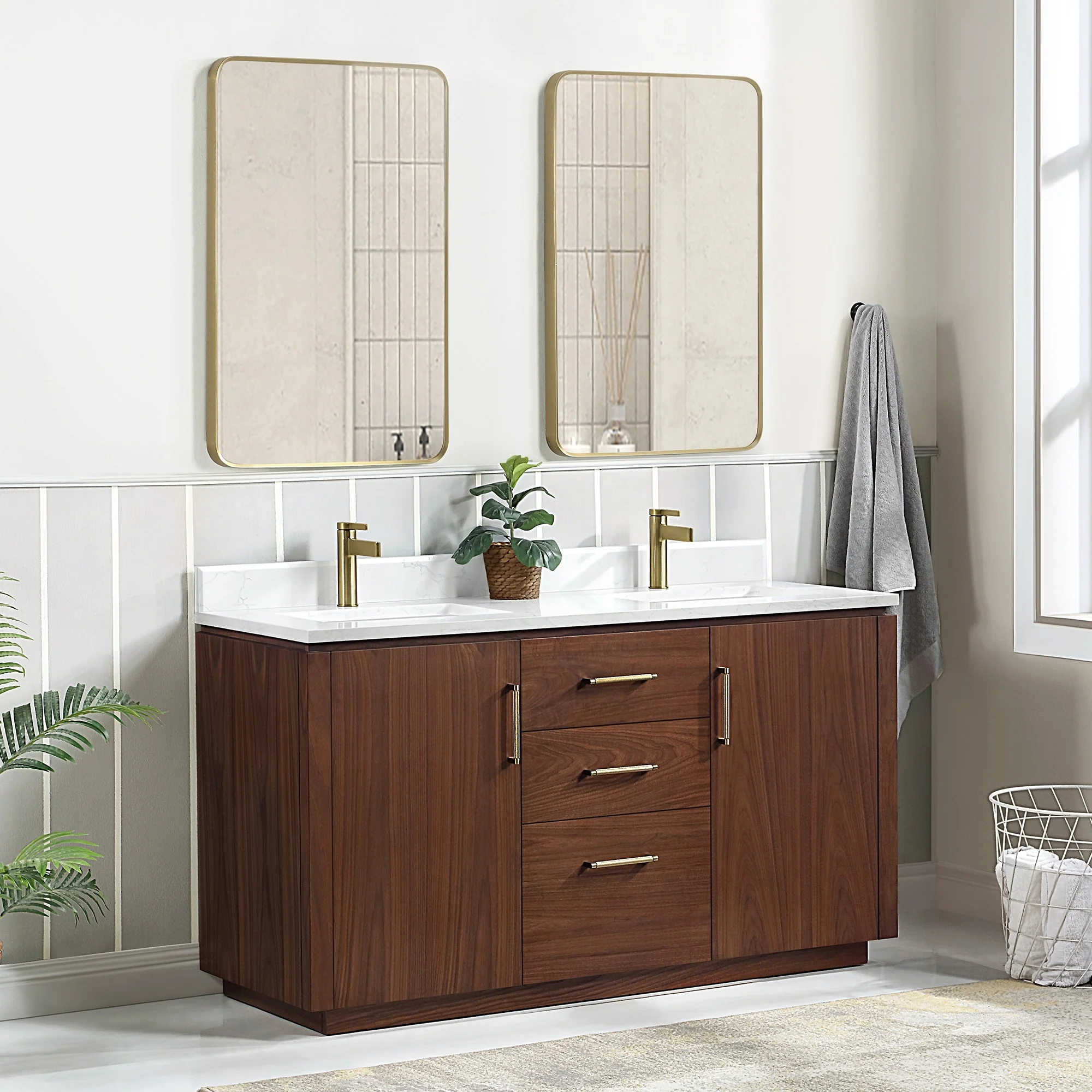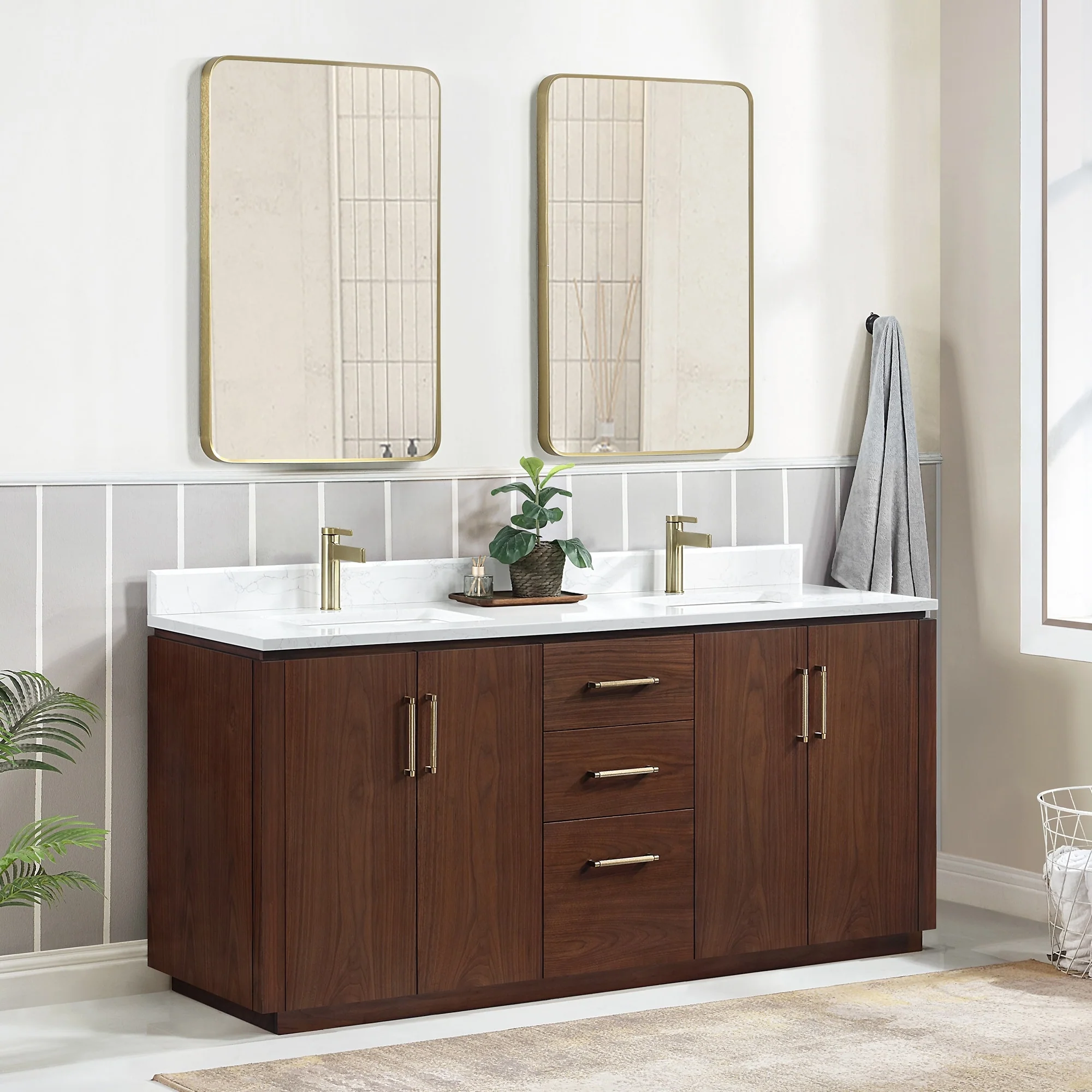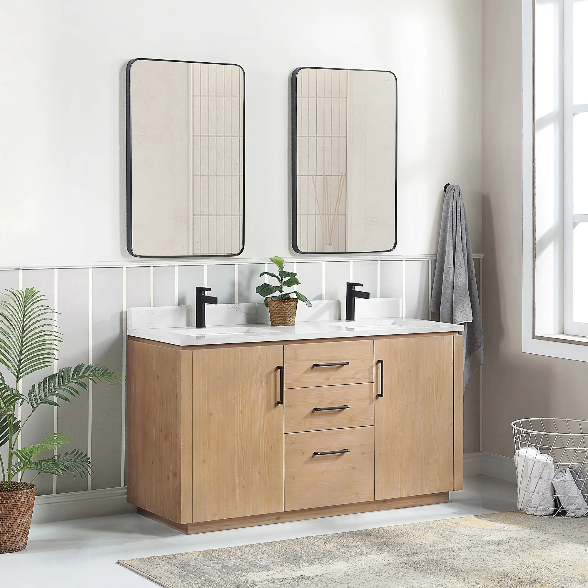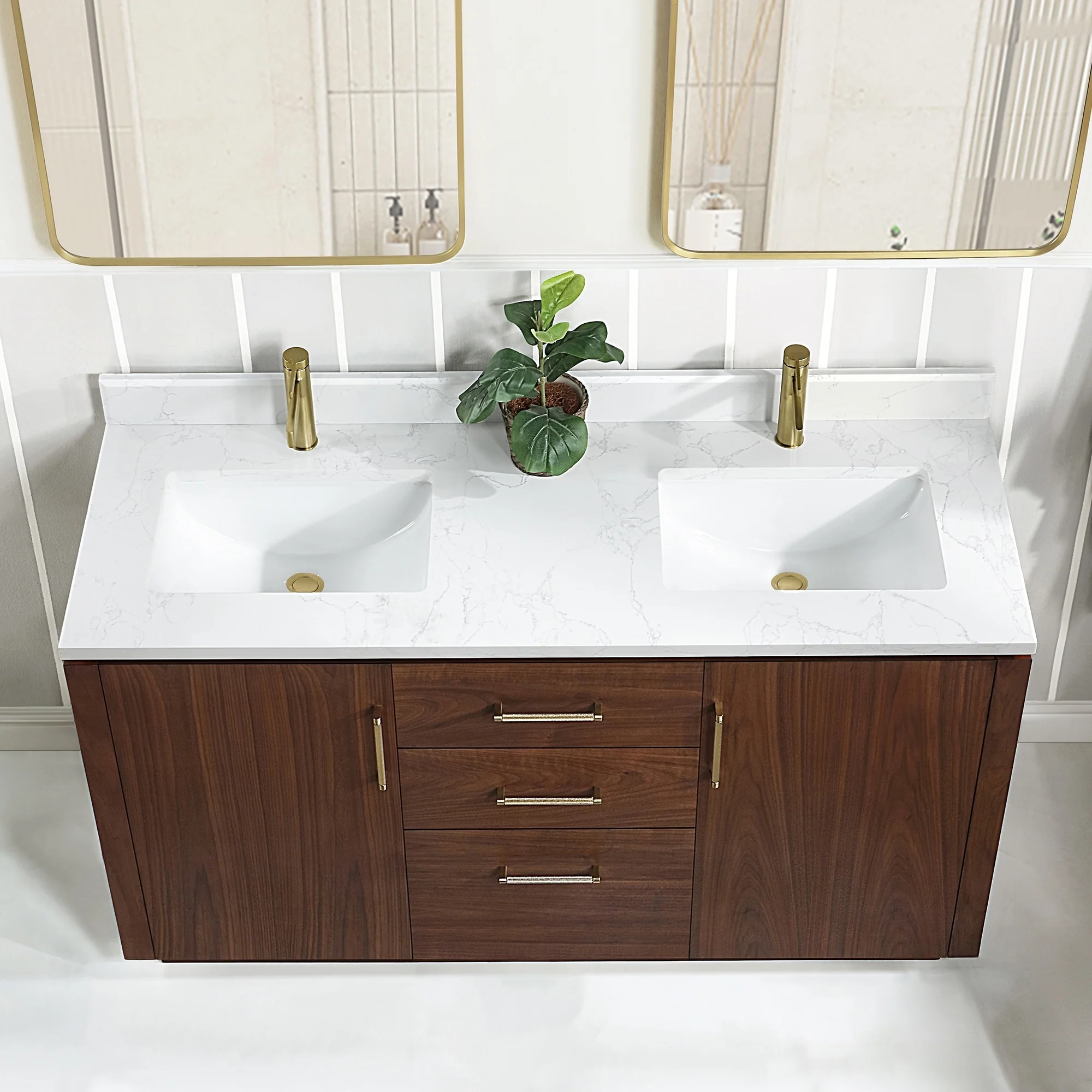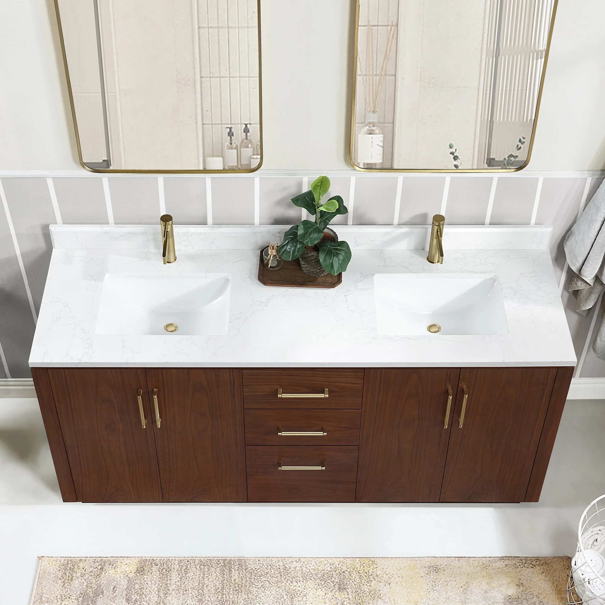 Our exquisite San Series Vanity is expertly crafted from premium hardwood, ensuring exceptional durability and a timeless aesthetic that never goes out of style. The natural grain of the wood adds warmth, texture, and character to your bathroom space, creating a seamless fusion of modern and classic design elements. Soft-closing drawers and cabinets provide you with easy, organized access to all your essentials.