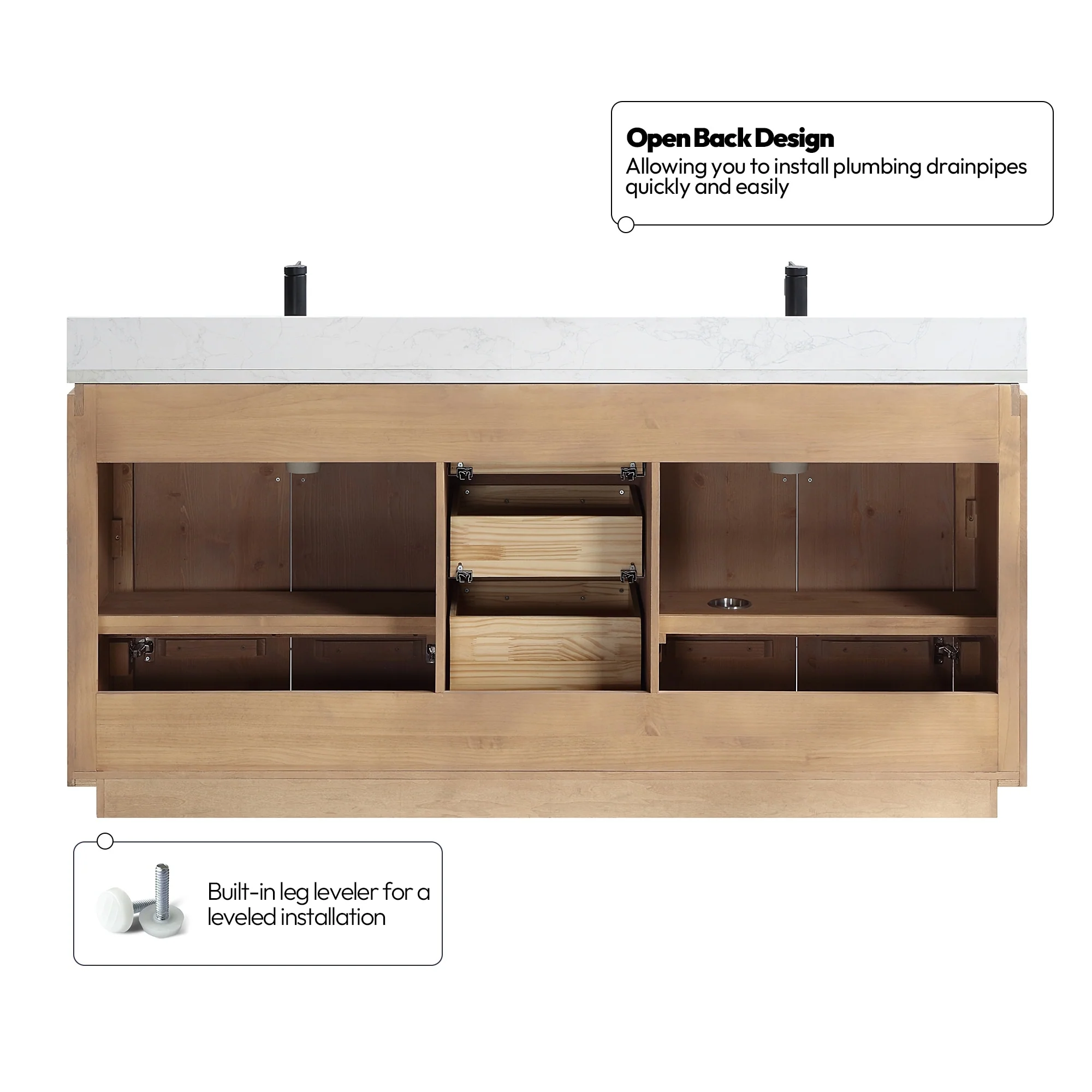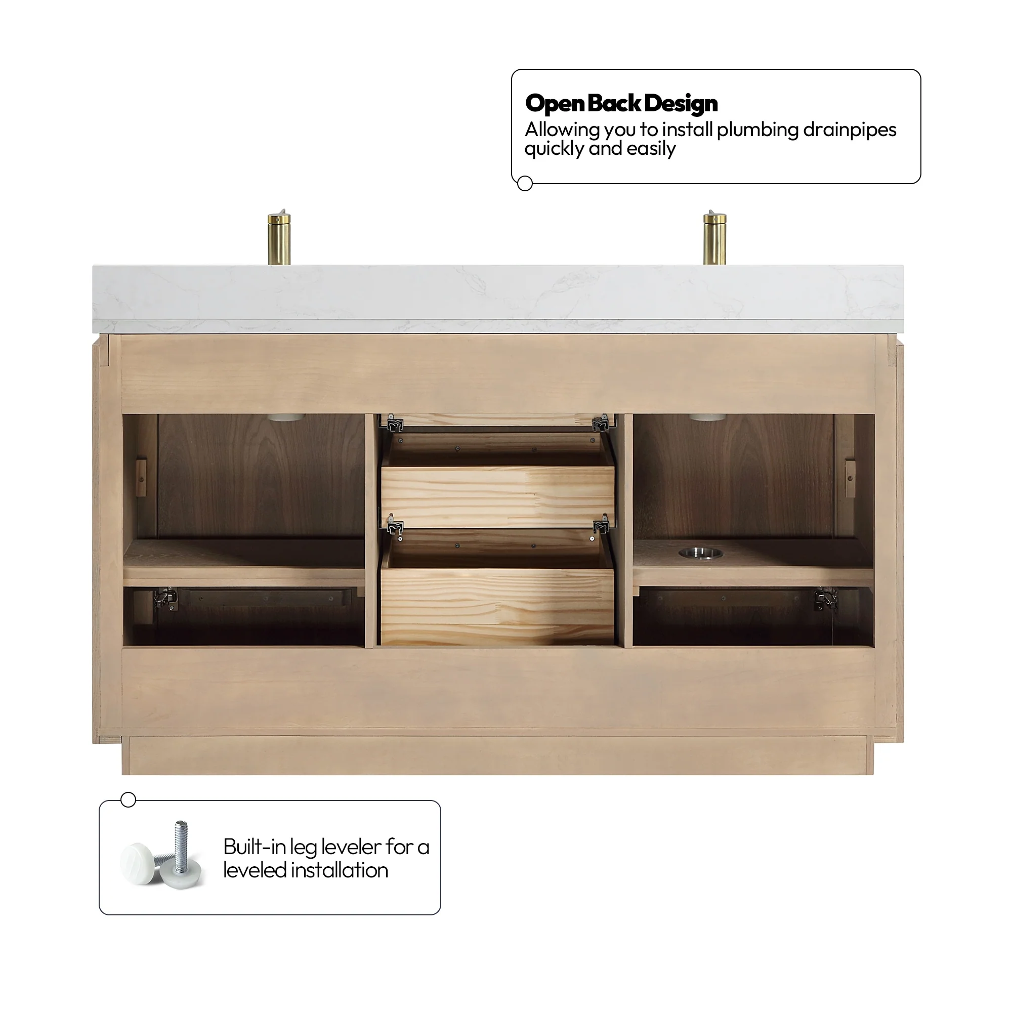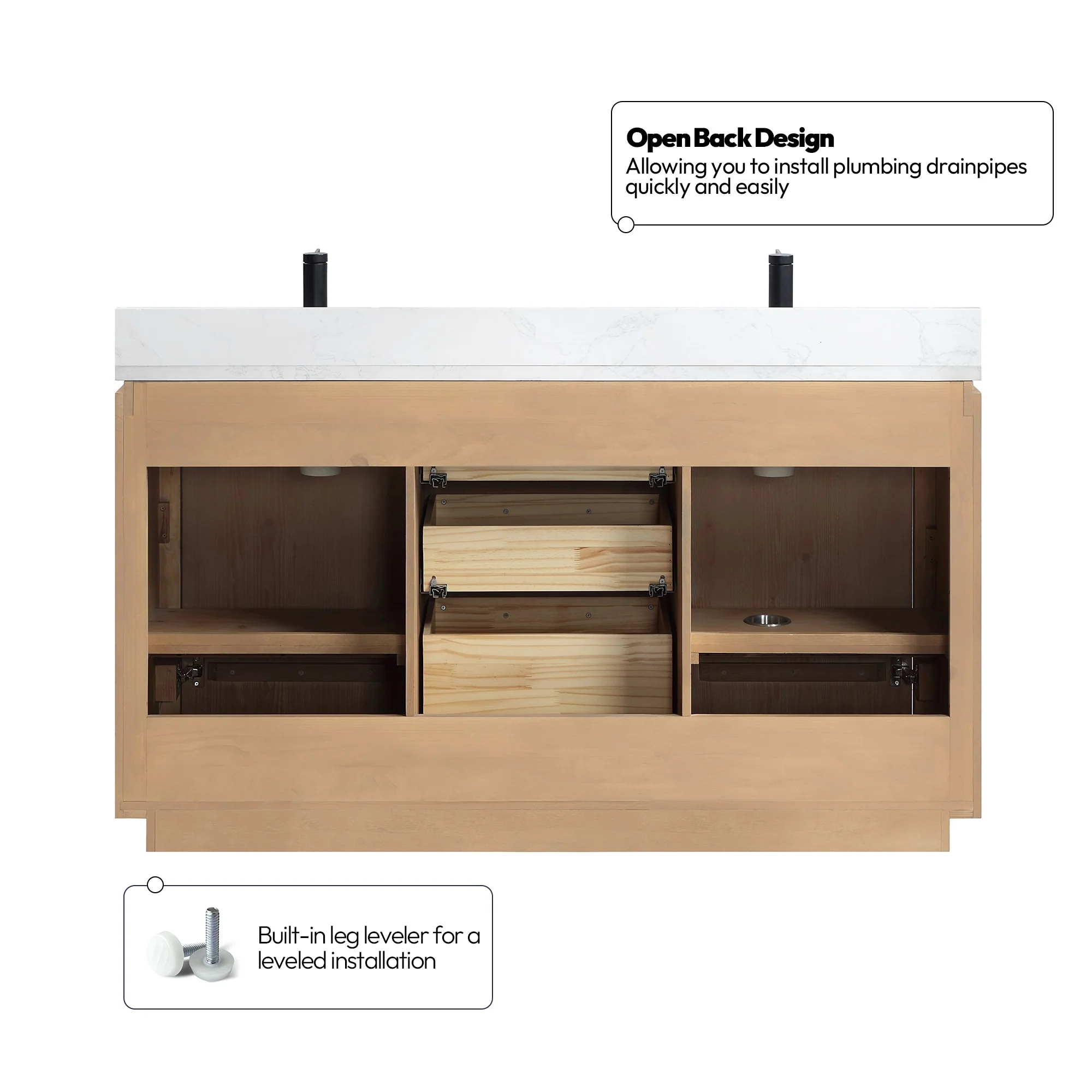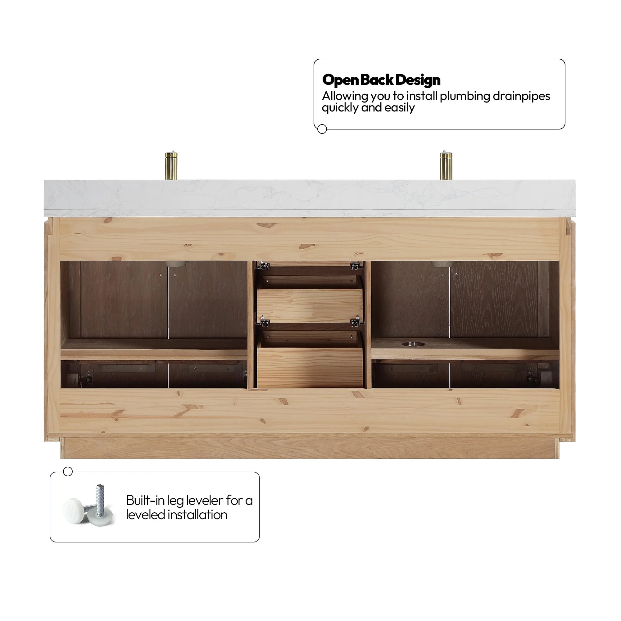 · No Installation Required: Freestanding bathroom vanity (without back panel) comes fully assembled for your convenience.Designed for easy, no-hassle plumbing and faucet installation.