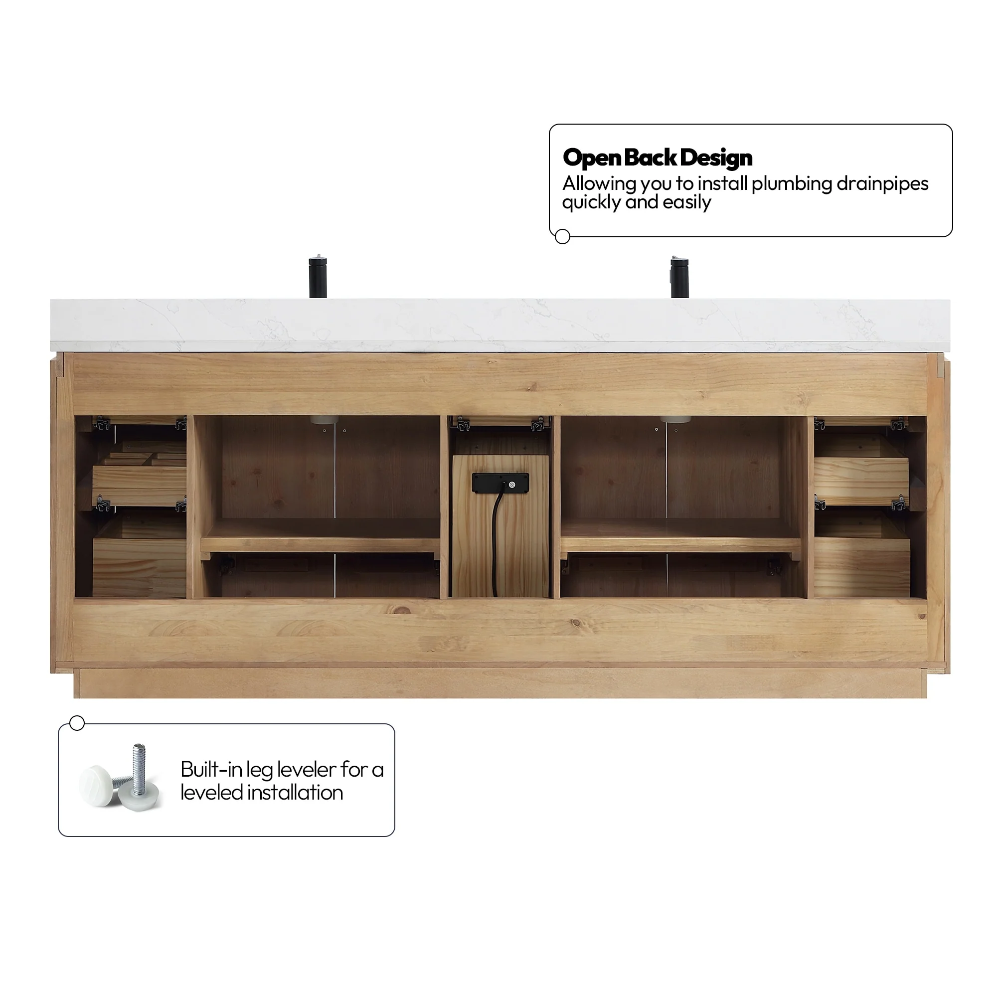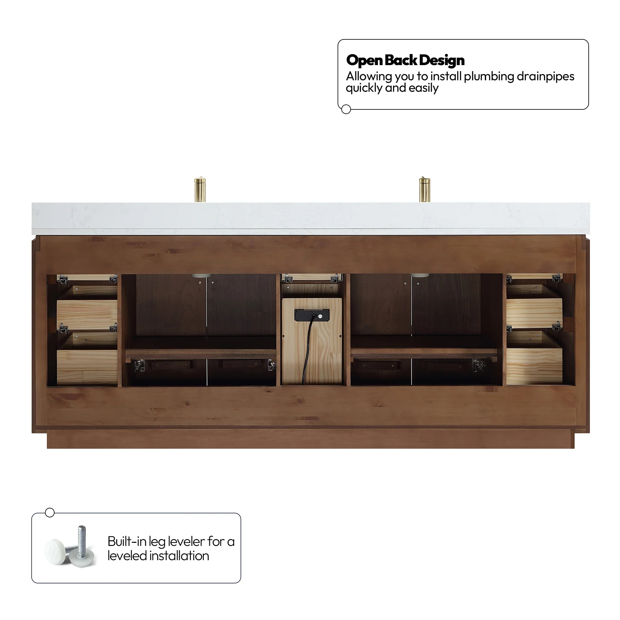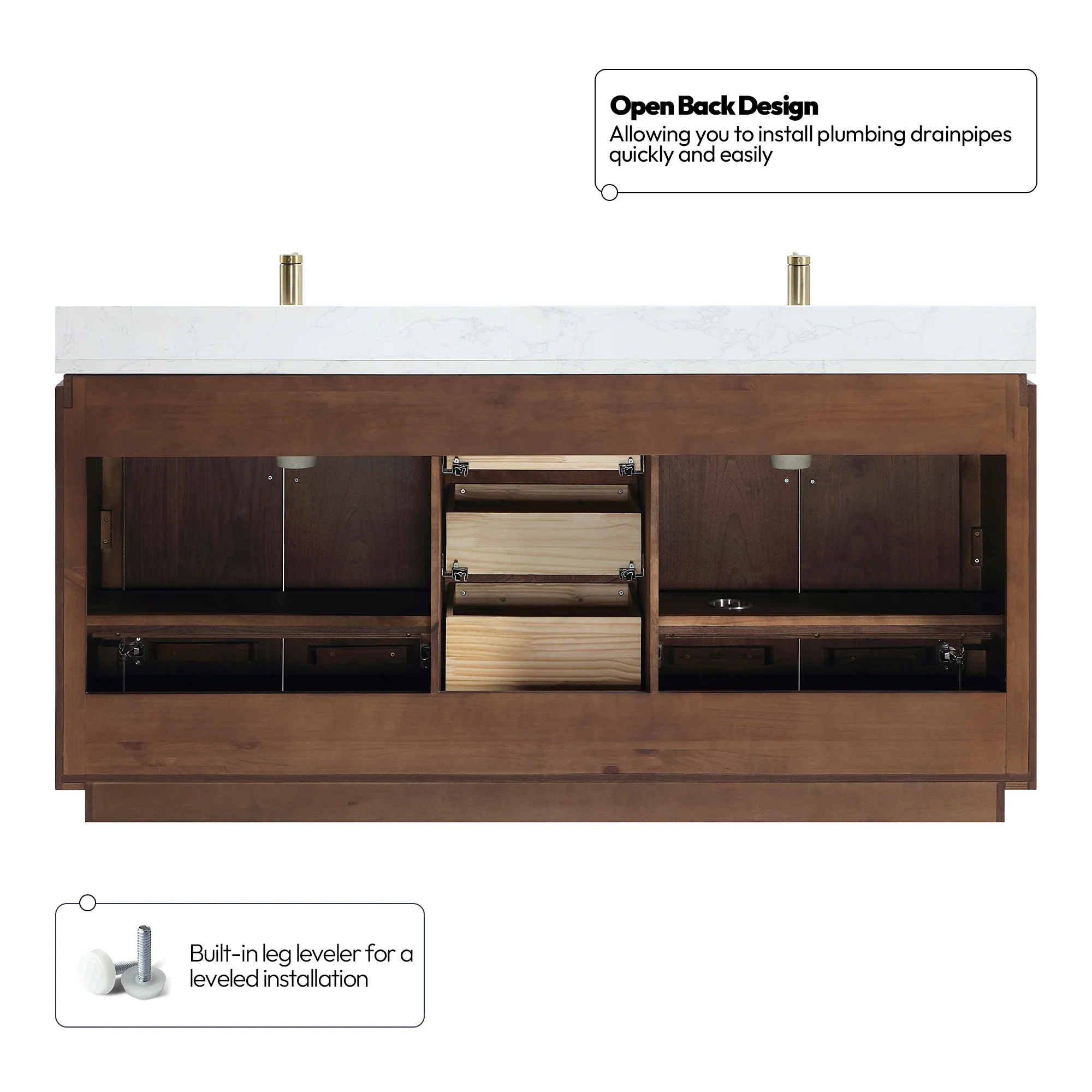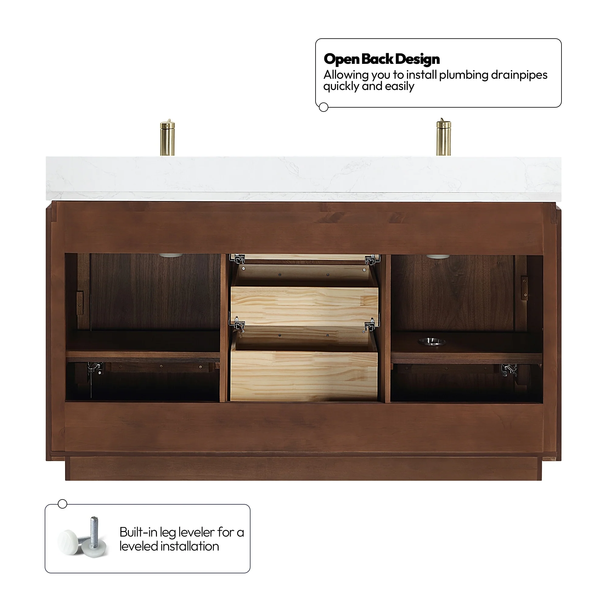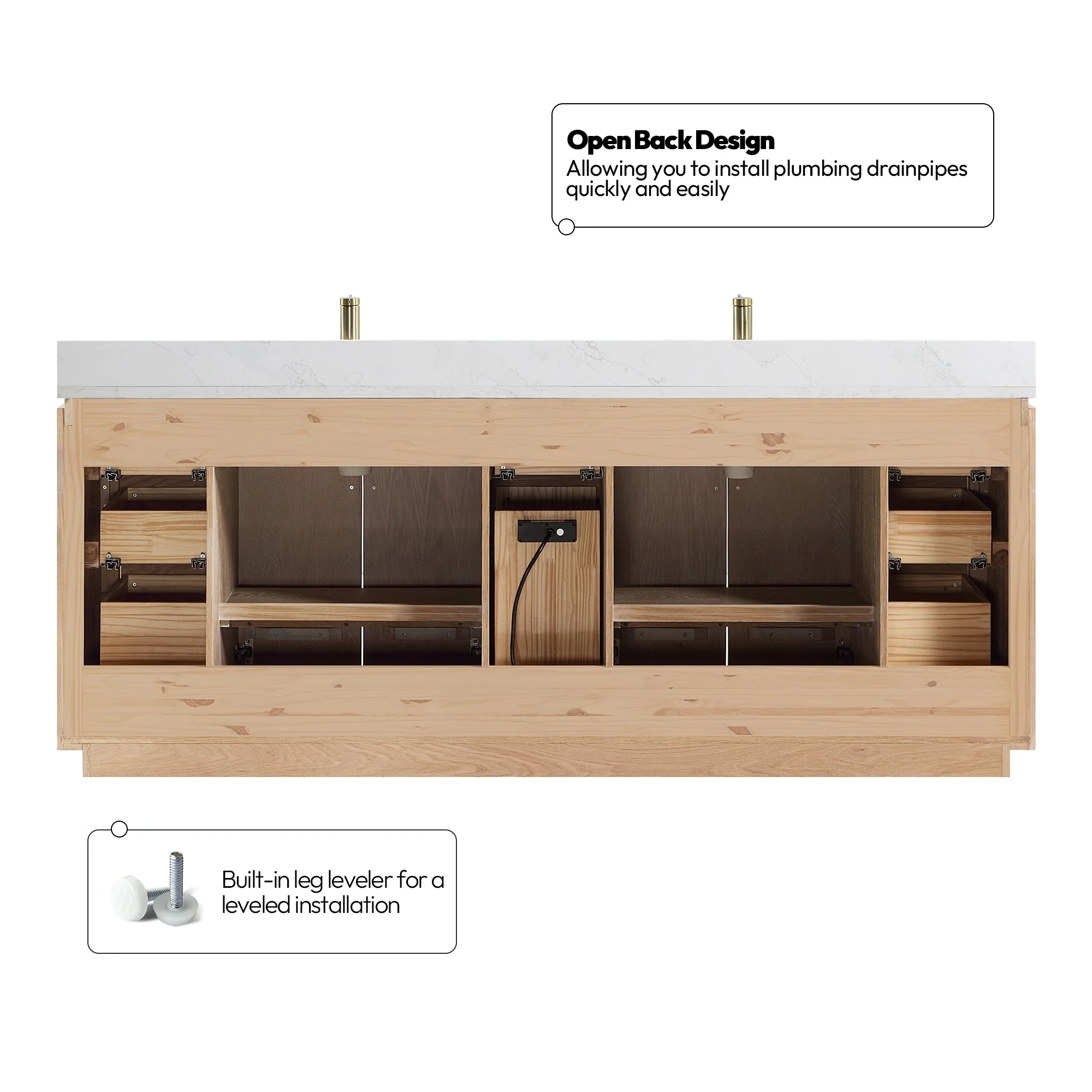 · No Installation Required: Freestanding bathroom vanity (without back panel) comes fully assembled for your convenience.Designed for easy, no-hassle plumbing and faucet installation.