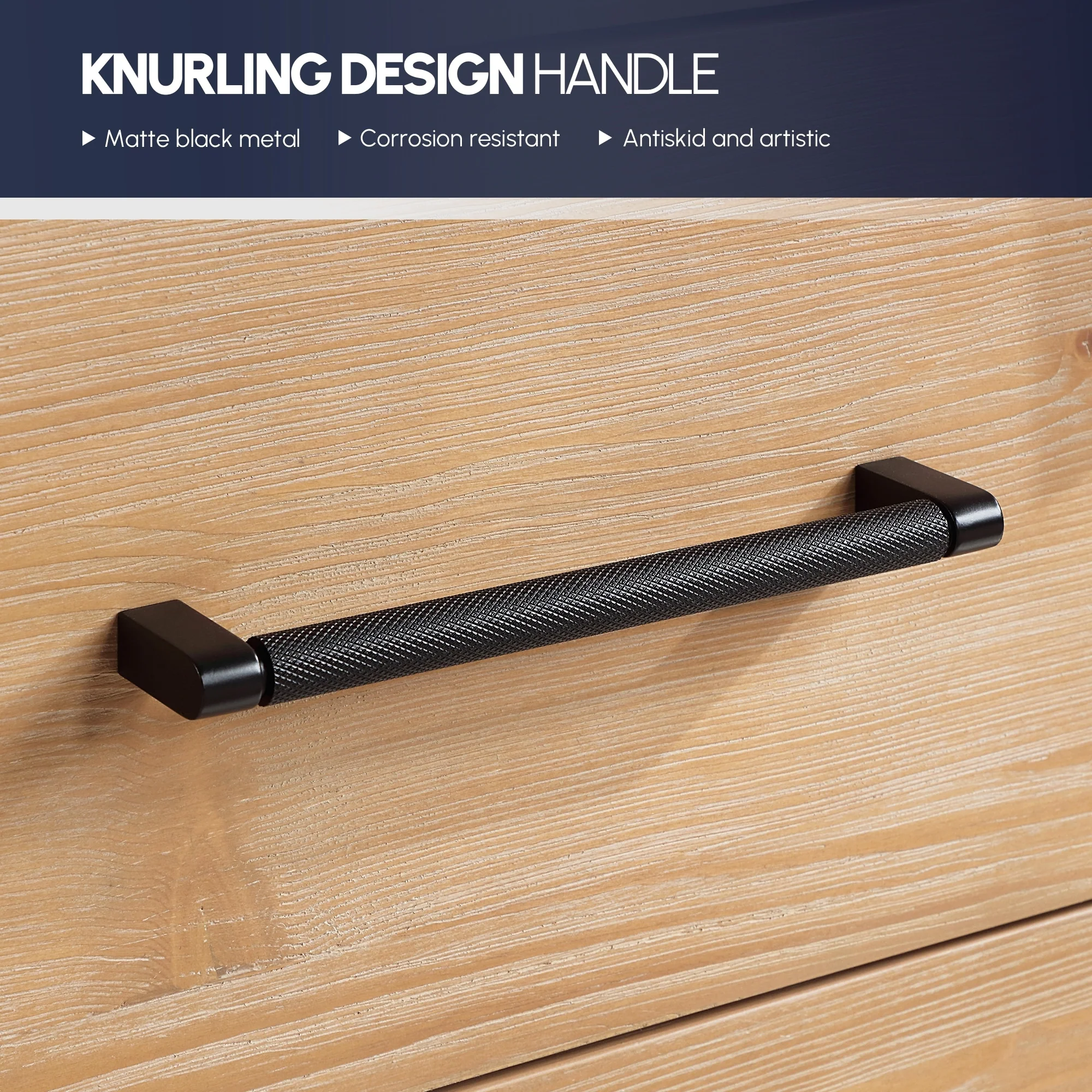 · High-Quality Hardware: Rugged zinc alloy knurled Matte Black or Brushed Gold handle adds a cool touch of style and contrast against the textured wood.