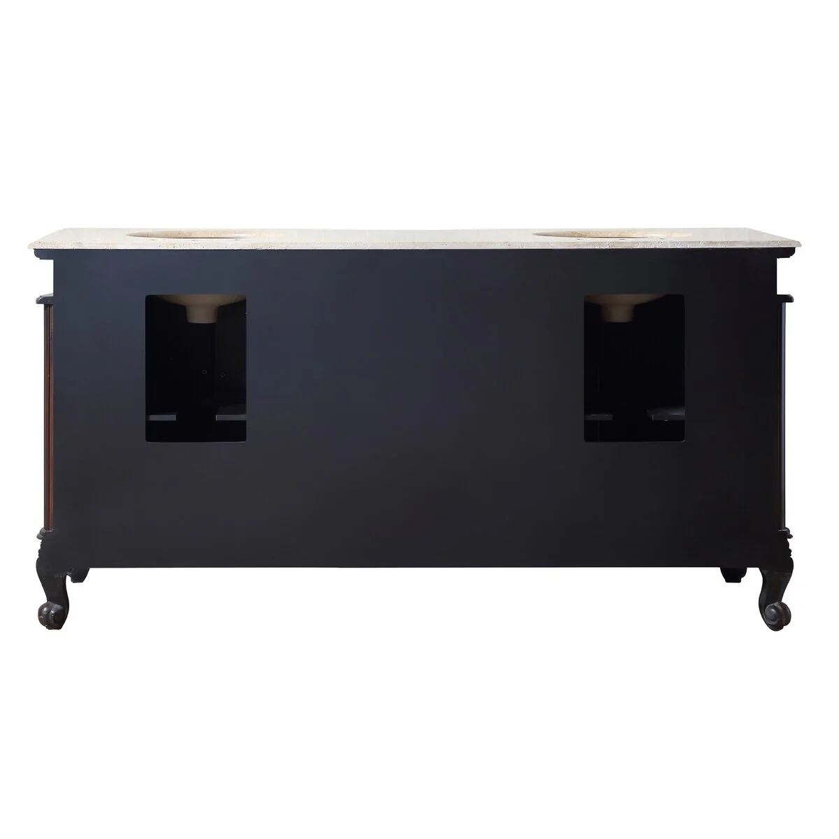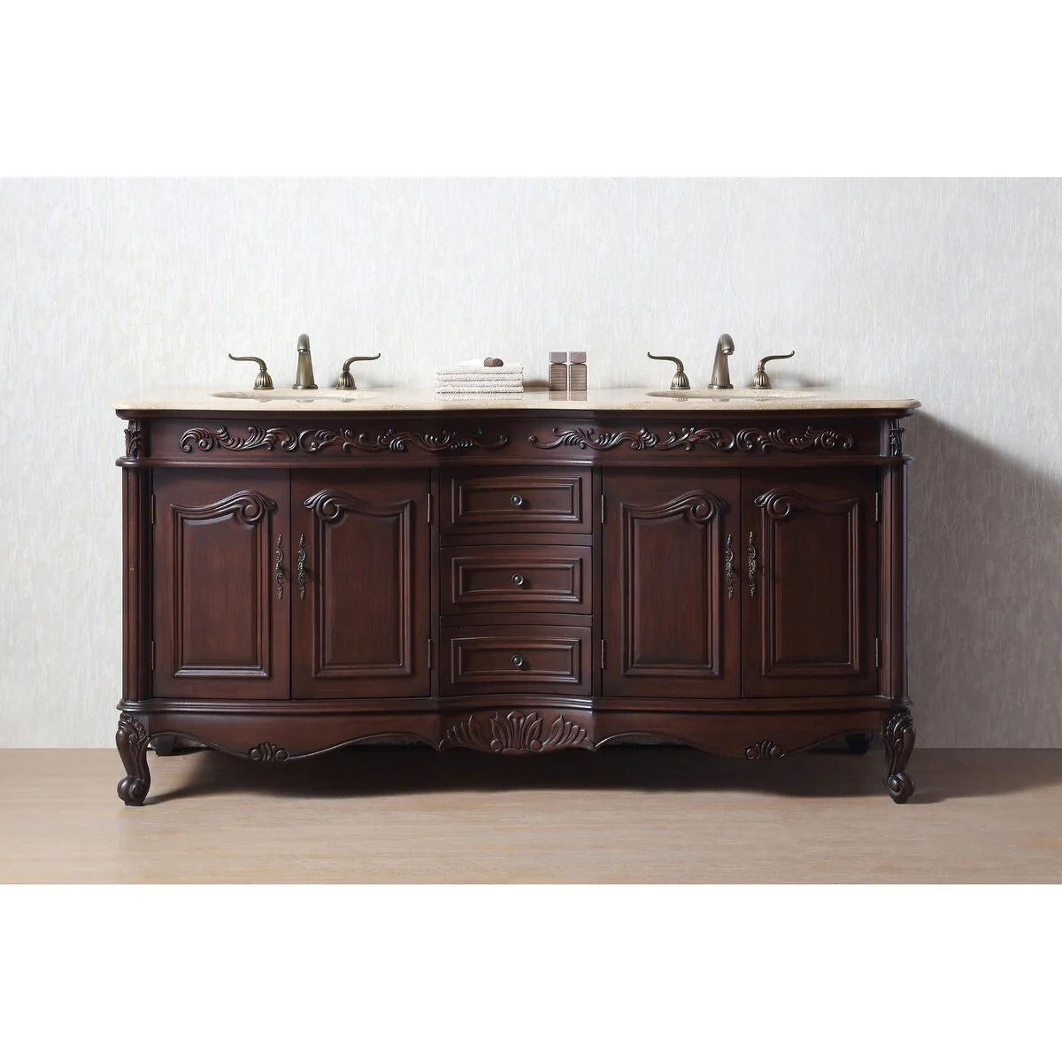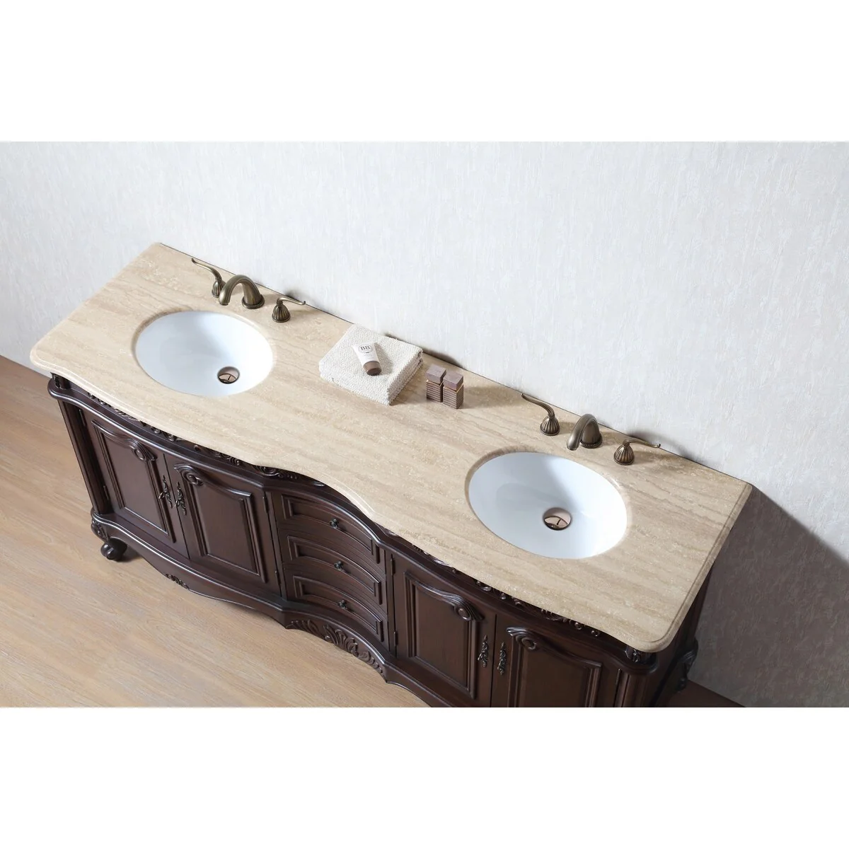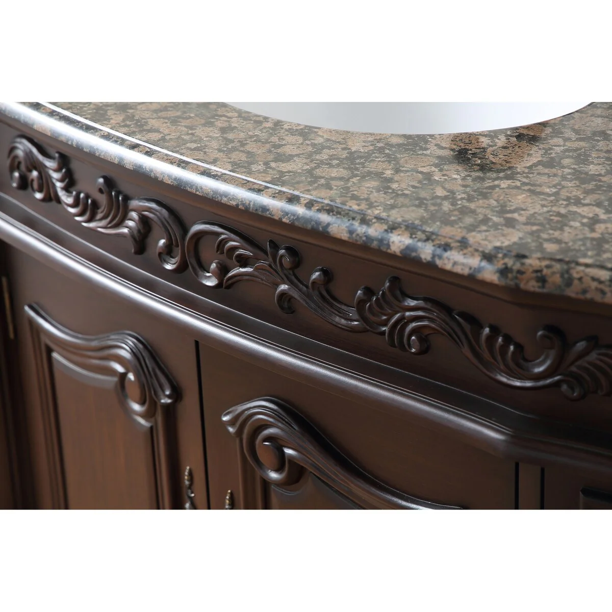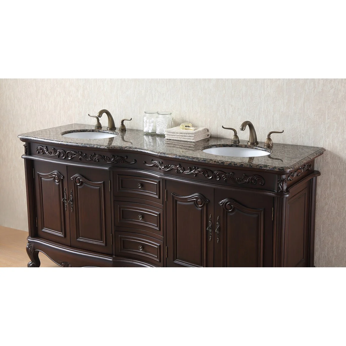 Upgrade your bathroom's style and function with the luxurious Cassandra Bathroom Vanity. This premium 72-inch double sink vanity boasts a stunning Dark Cherry finish and a spacious countertop that adds elegance to any bathroom. With pull-out drawers and cabinets, this all-in-one vanity provides ample storage space for all your essentials. Choose from Baltic Brown Granite or Travertine Marble countertop surface options to suit your unique style. Expertly crafted with heavy-duty MDF, this vanity is designed to withstand the rigors of everyday use. Faucets, drains, and backsplash not included.