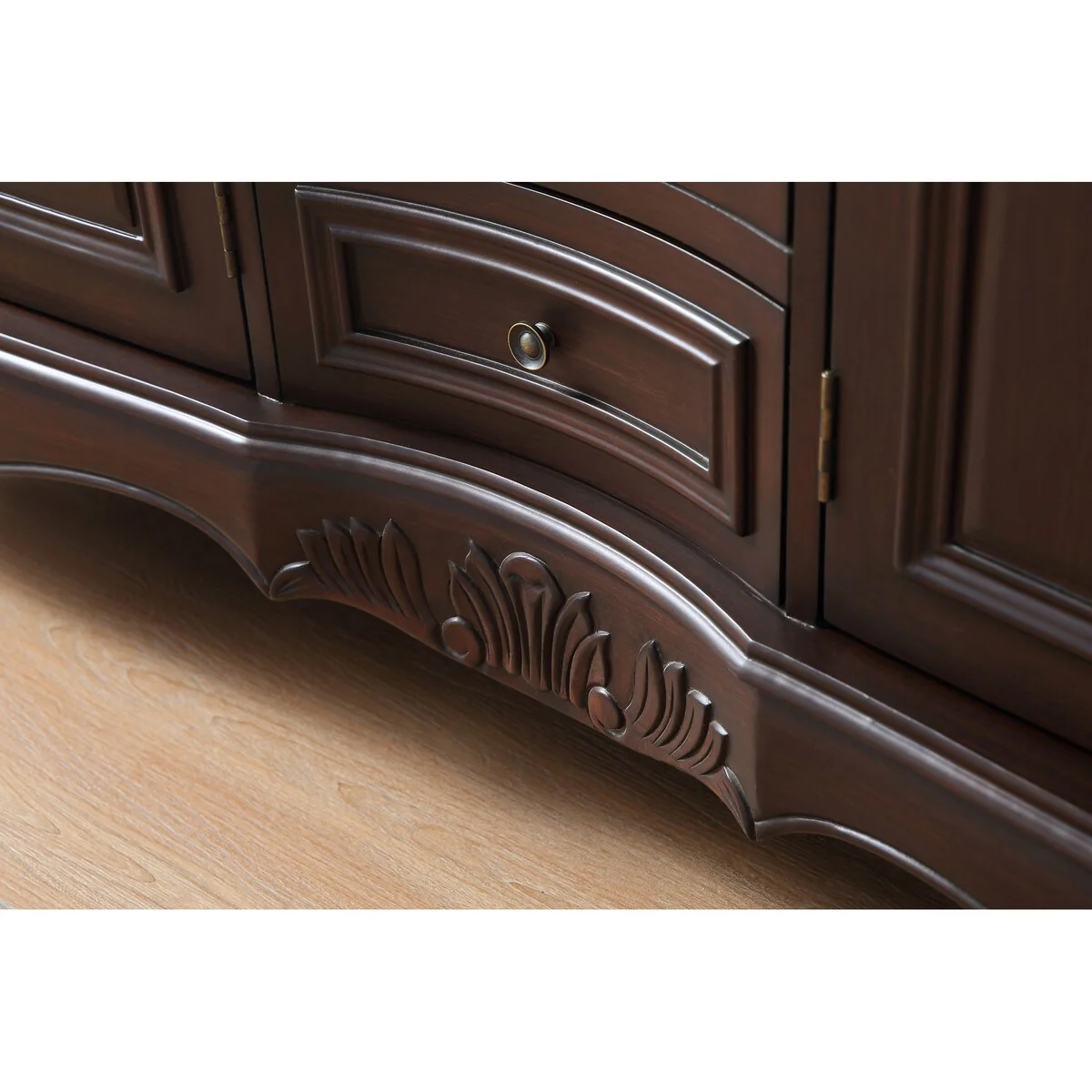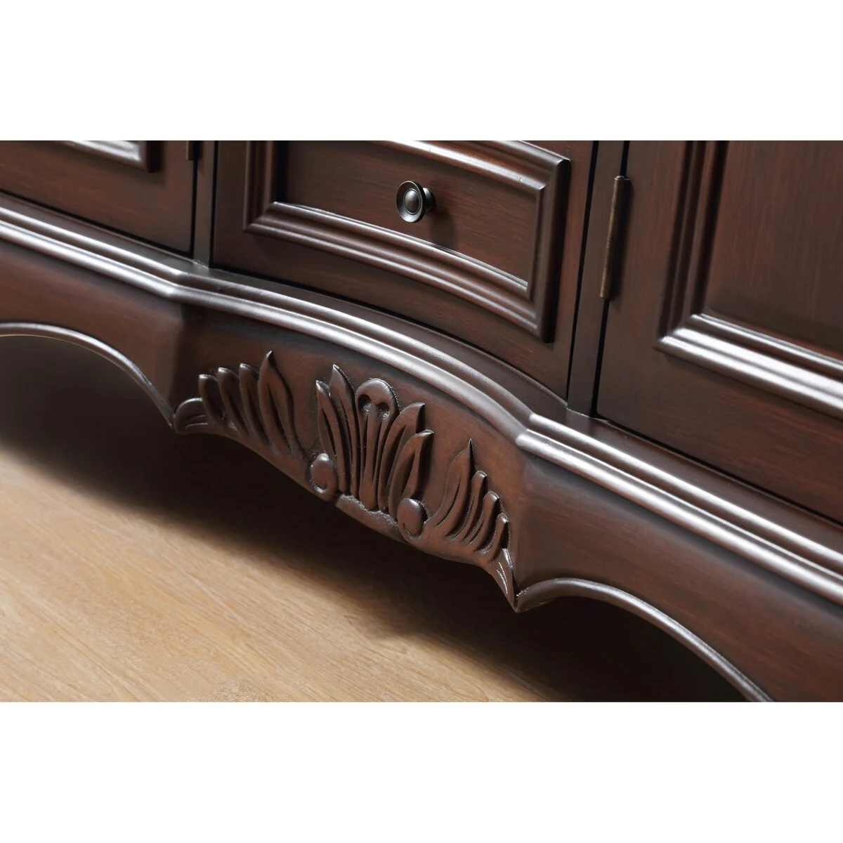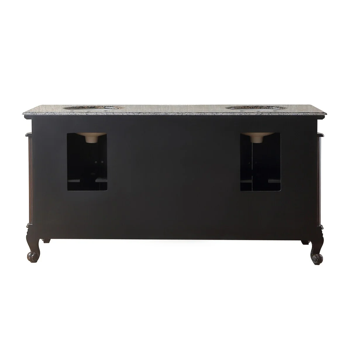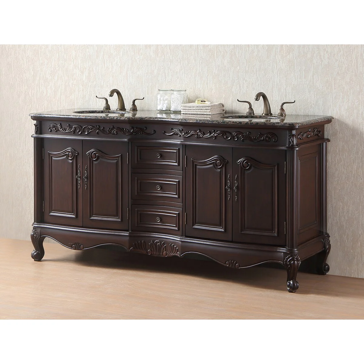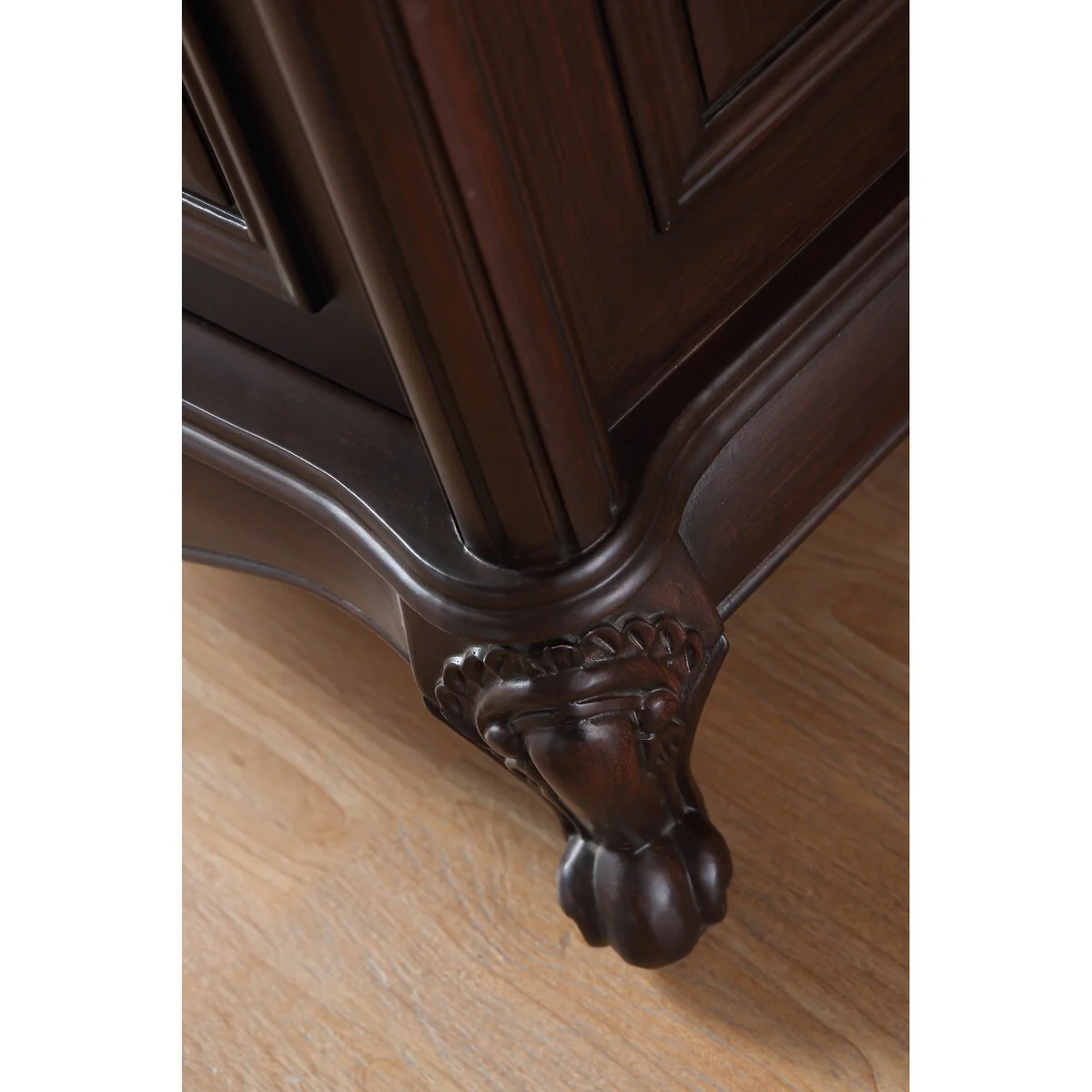 Upgrade your bathroom's style and function with the luxurious Cassandra Bathroom Vanity. This premium 72-inch double sink vanity boasts a stunning Dark Cherry finish and a spacious countertop that adds elegance to any bathroom. With pull-out drawers and cabinets, this all-in-one vanity provides ample storage space for all your essentials. Choose from Baltic Brown Granite or Travertine Marble countertop surface options to suit your unique style. Expertly crafted with heavy-duty MDF, this vanity is designed to withstand the rigors of everyday use. Faucets, drains, and backsplash not included.