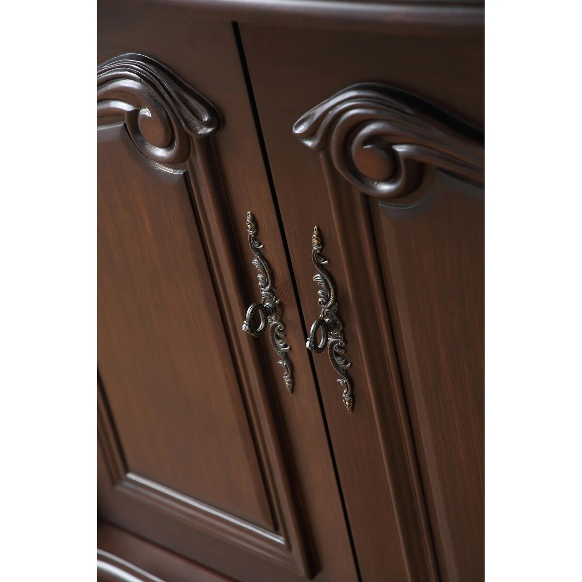 - Rustic Bronze-Finished Hardware adds an elegant touch to the Dark Cherry finish