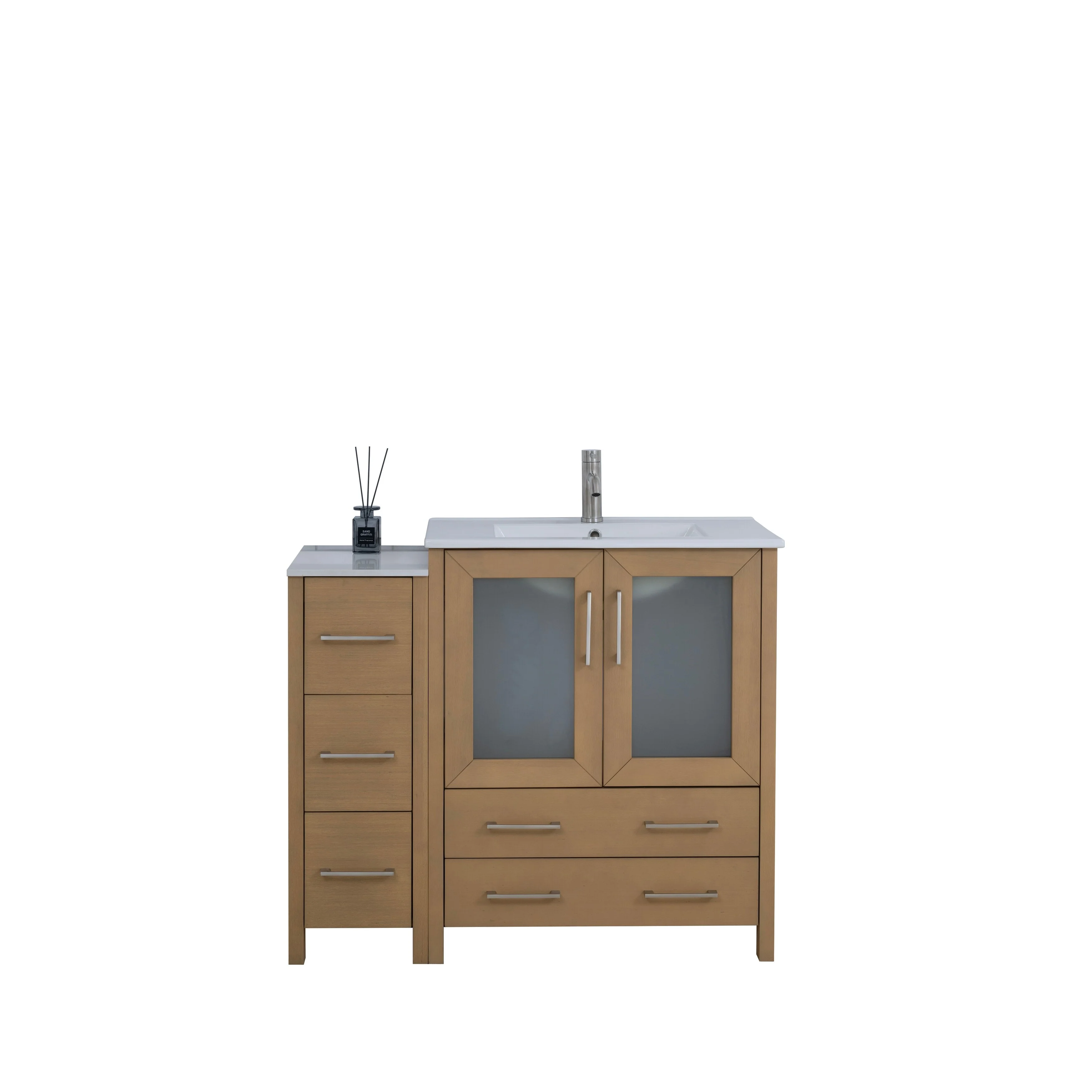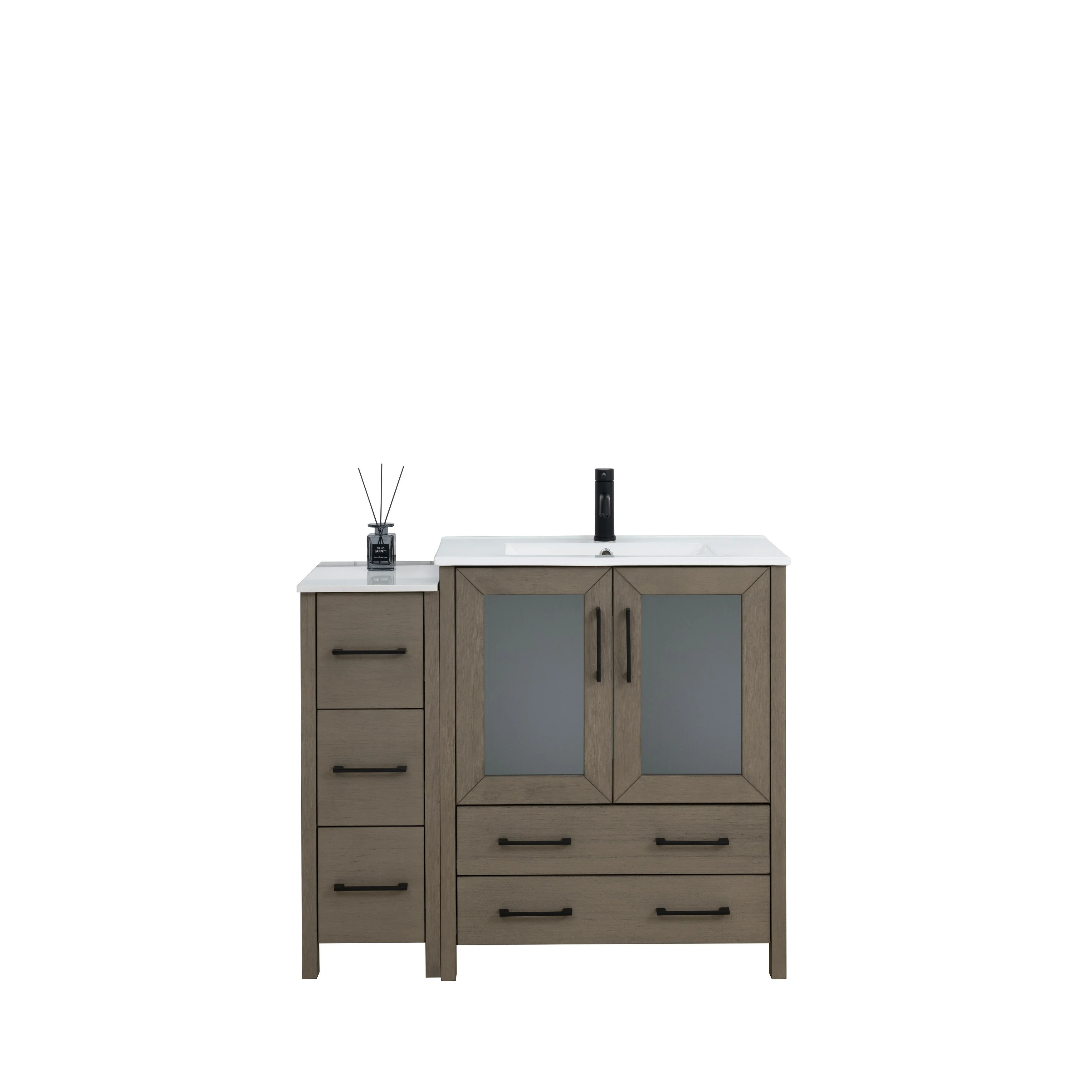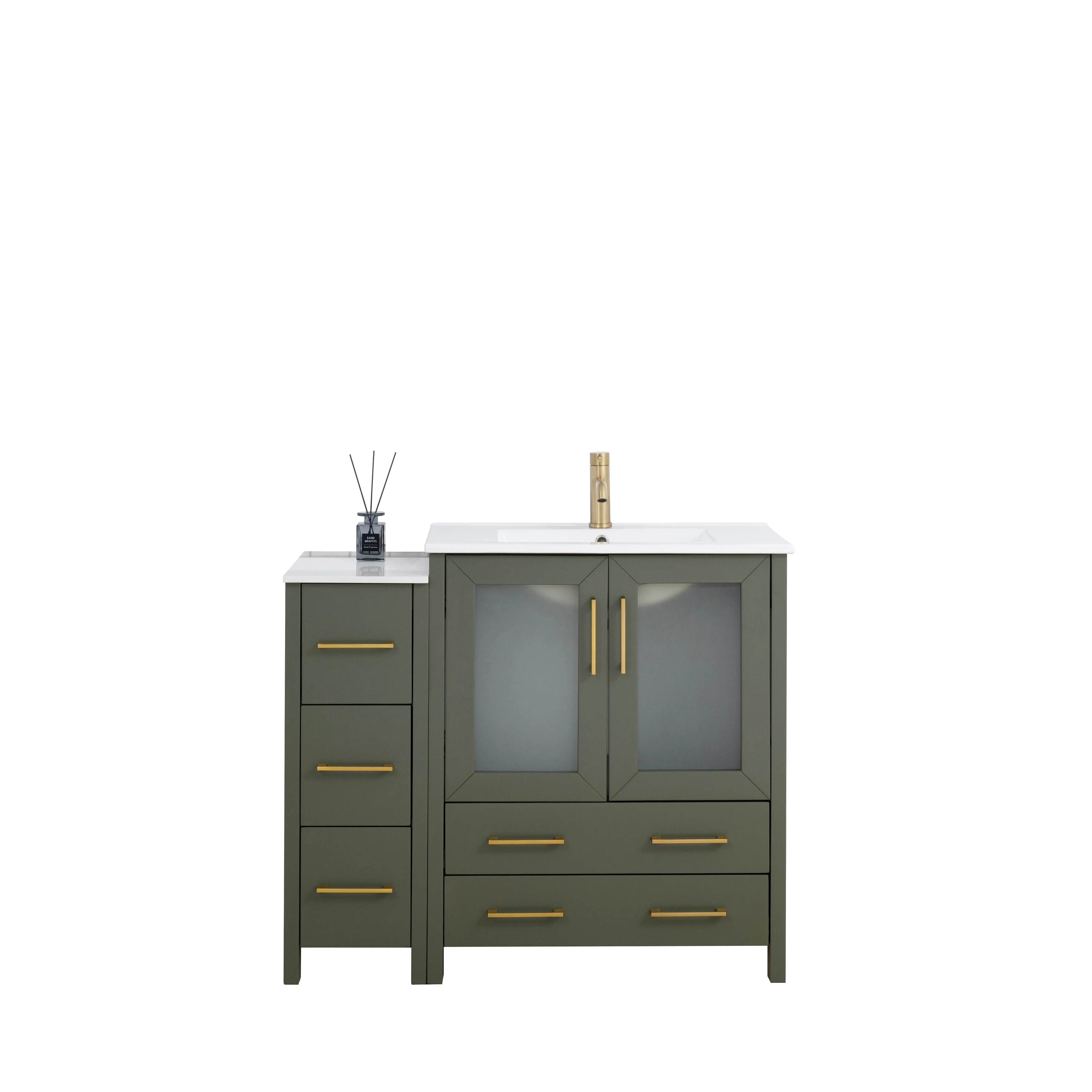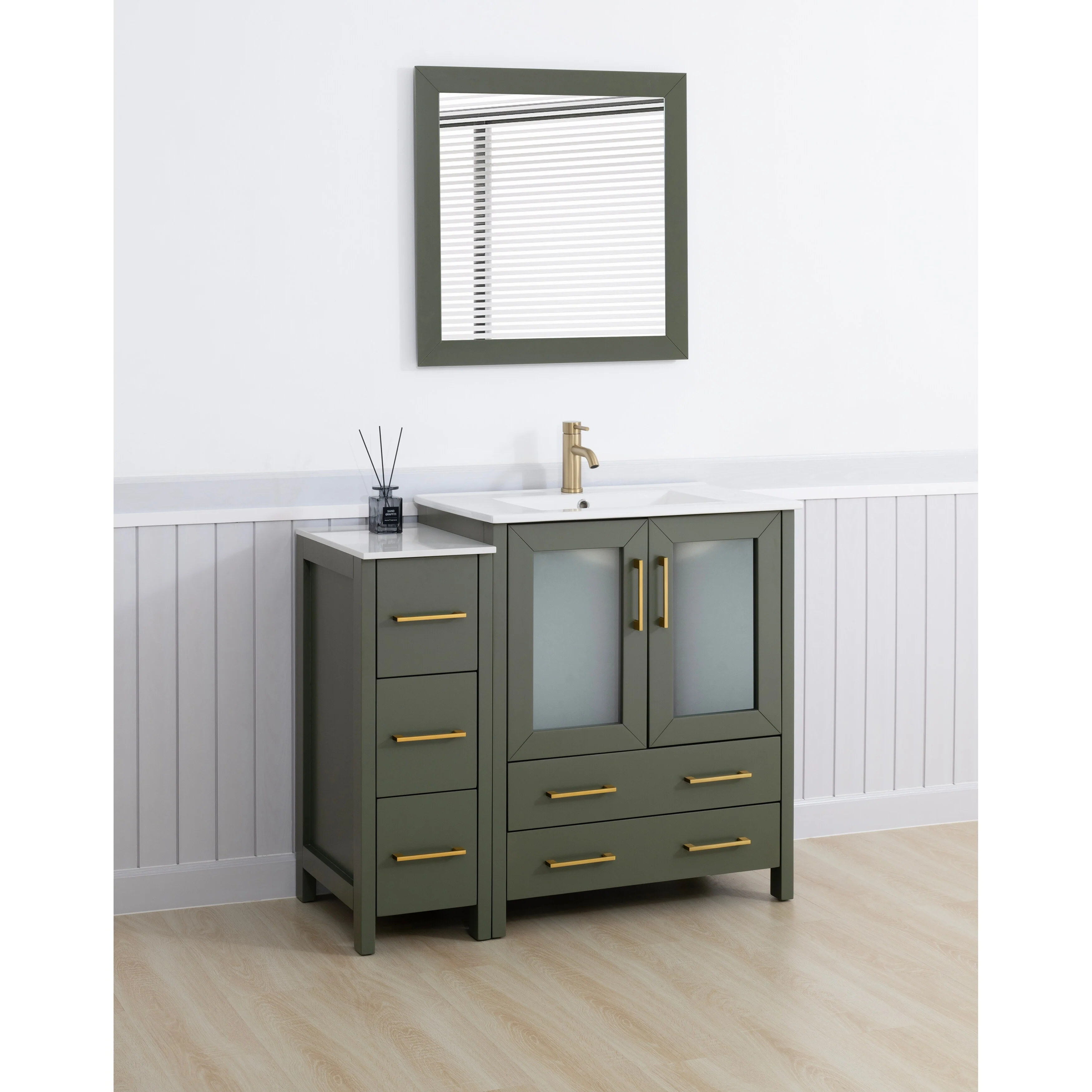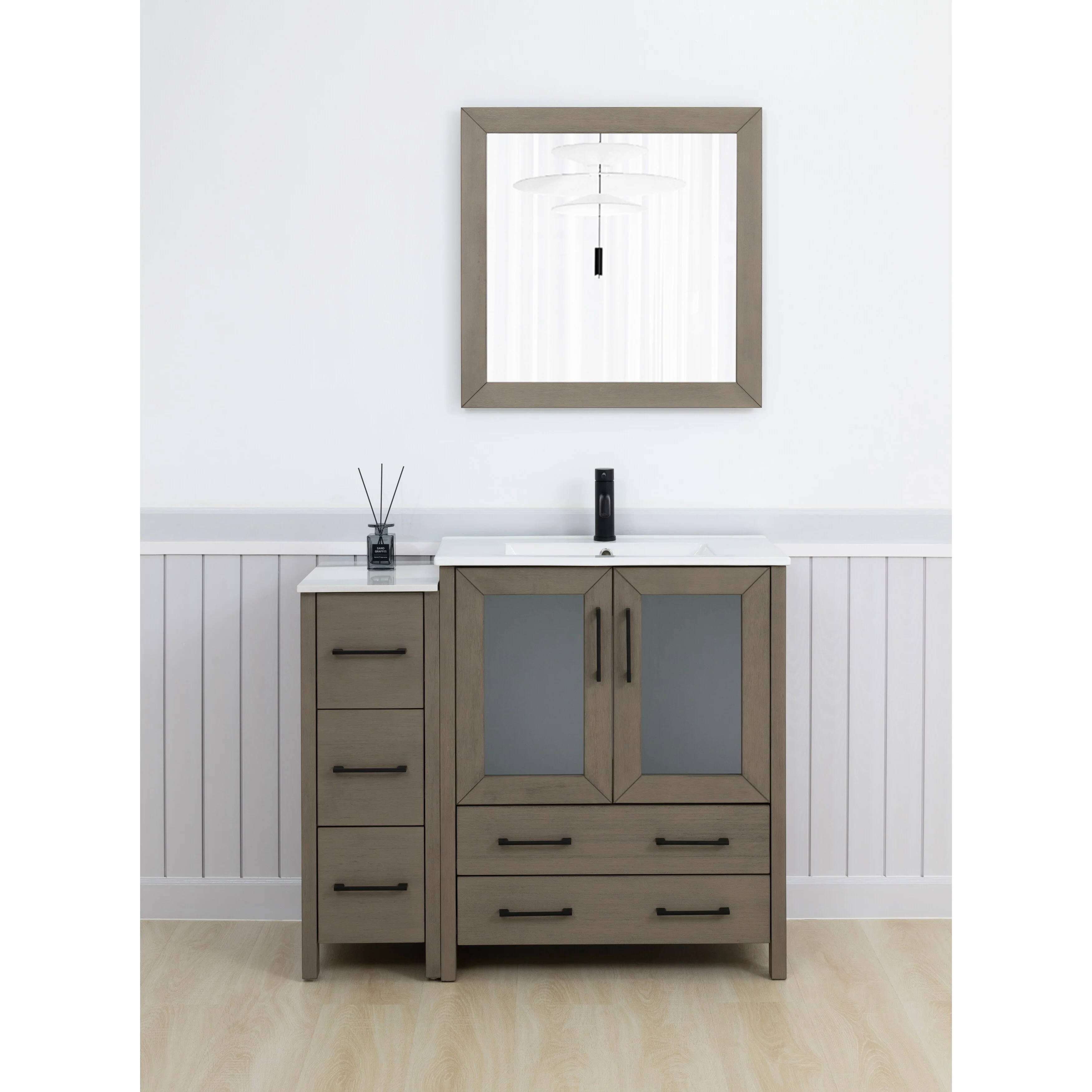 - Vanity Color: Espresso, Grey, White, Blue, Vintage Green, Natural Oak, Driftwood Gray