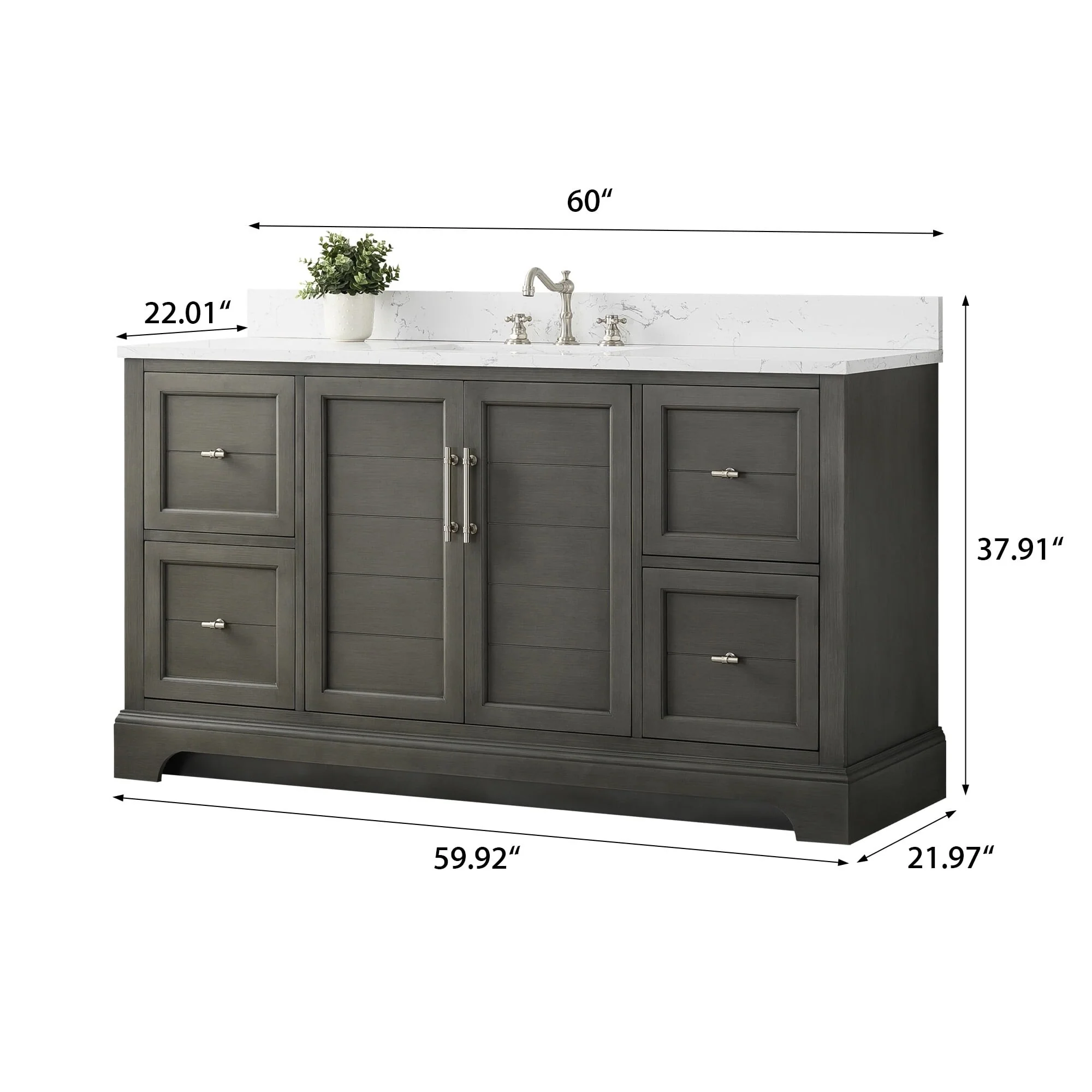 - Overall: Vanity 60 in. W x 22 in. D x 34 in. H