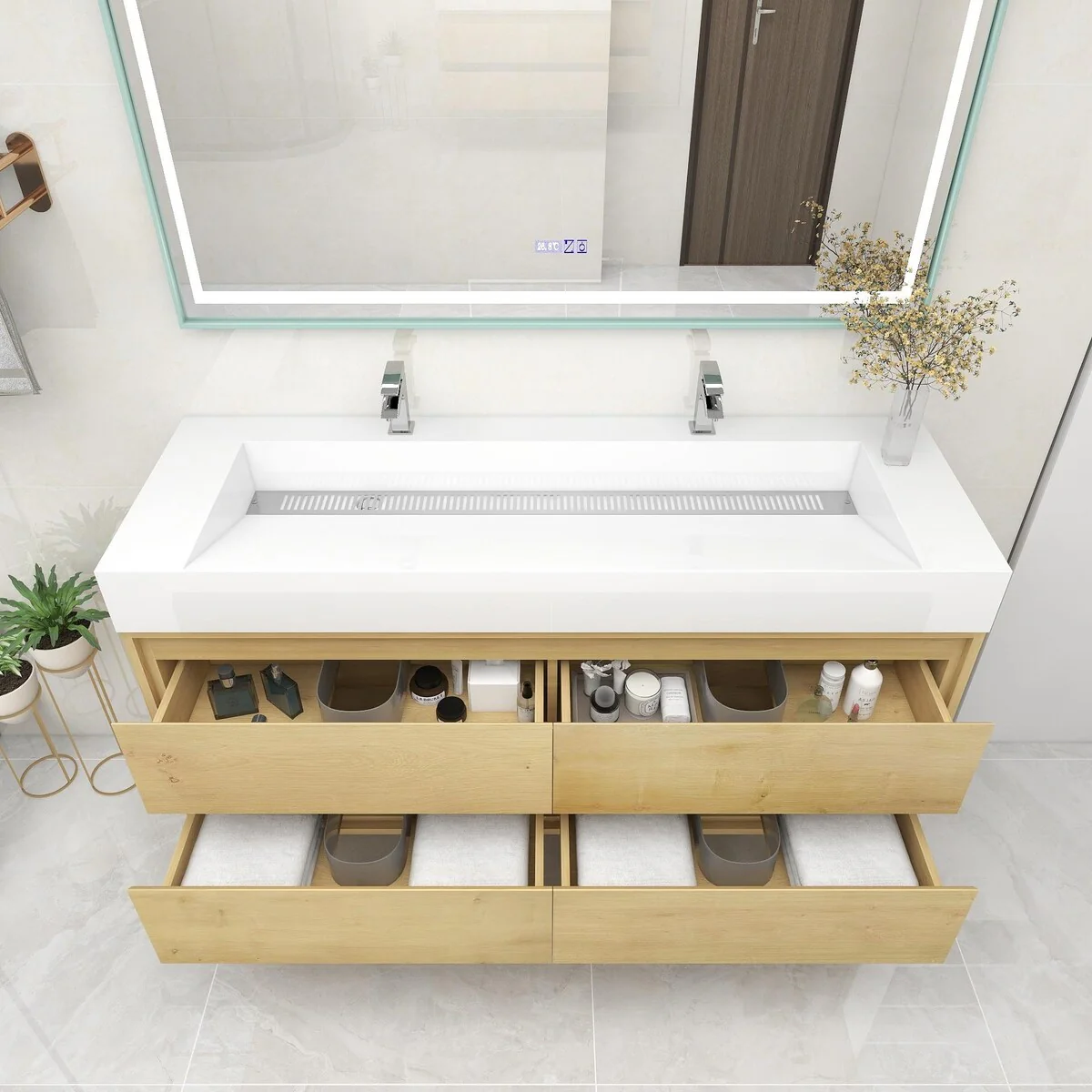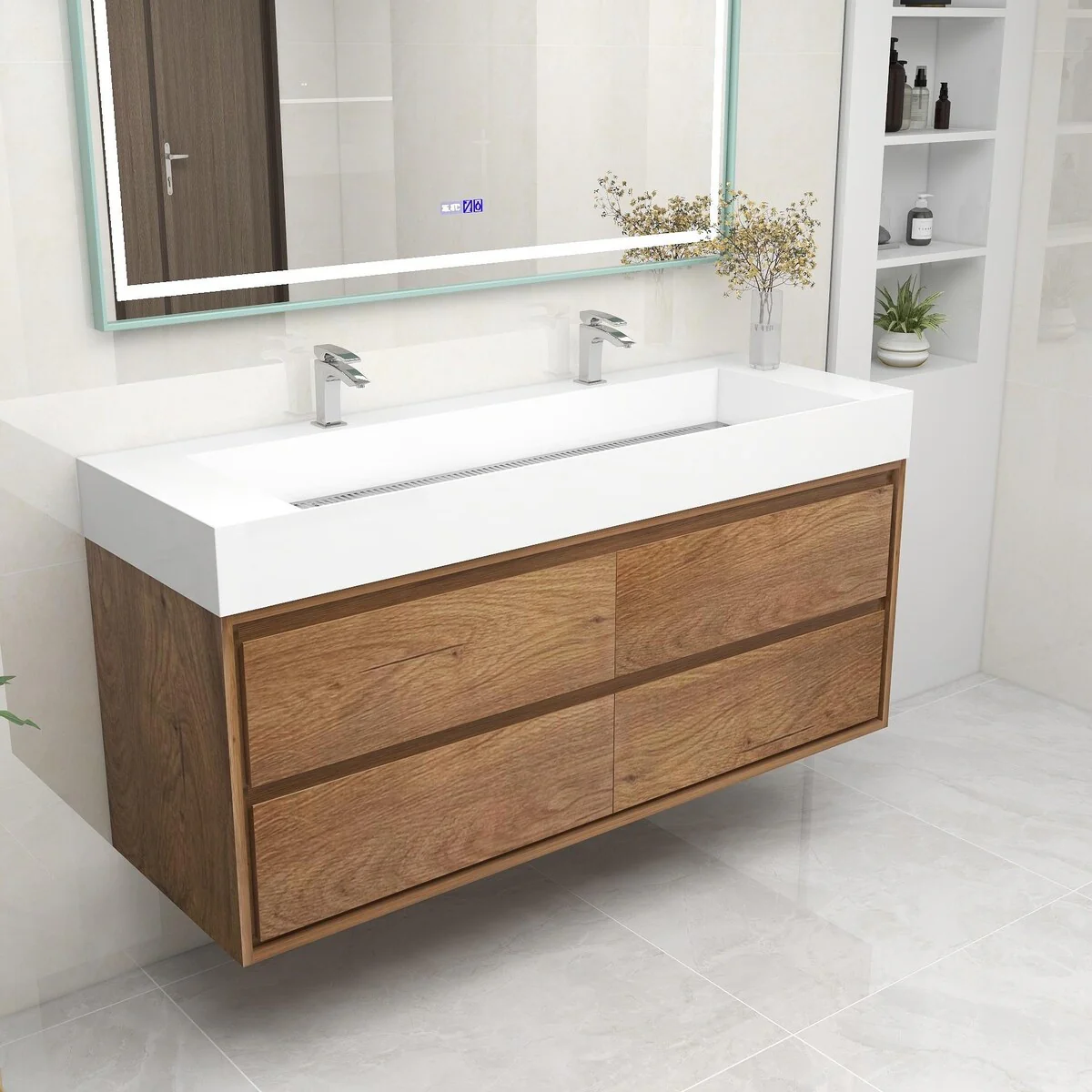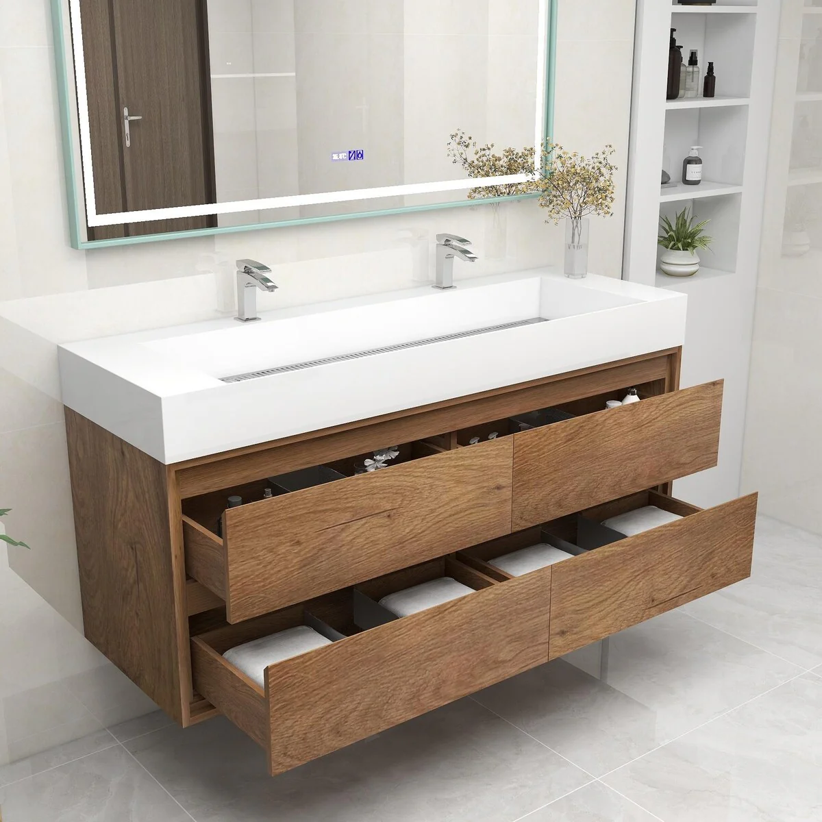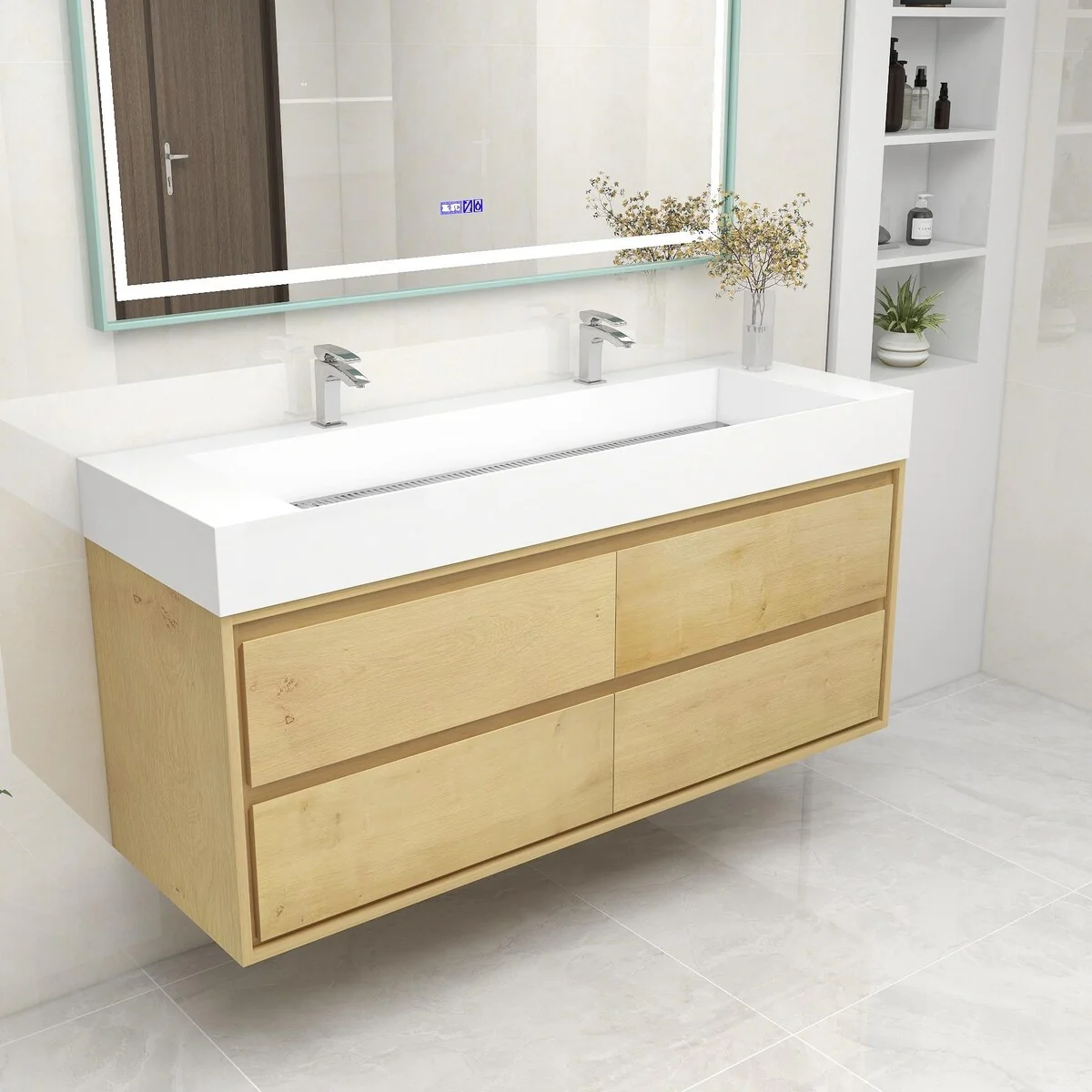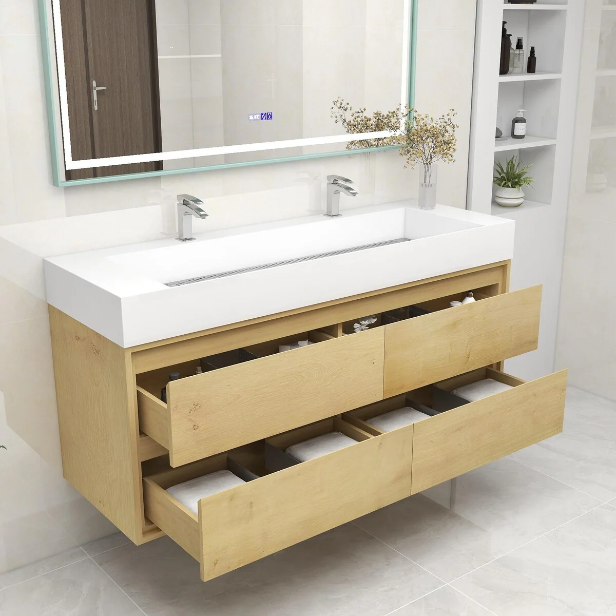 - Modern Farmhouse Floating Bathroom Vanity Set with Sink, Natural Wood Bathroom Vanity
