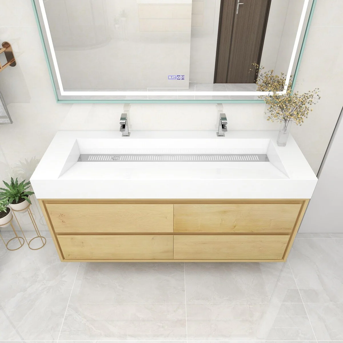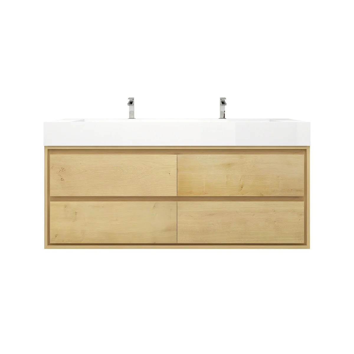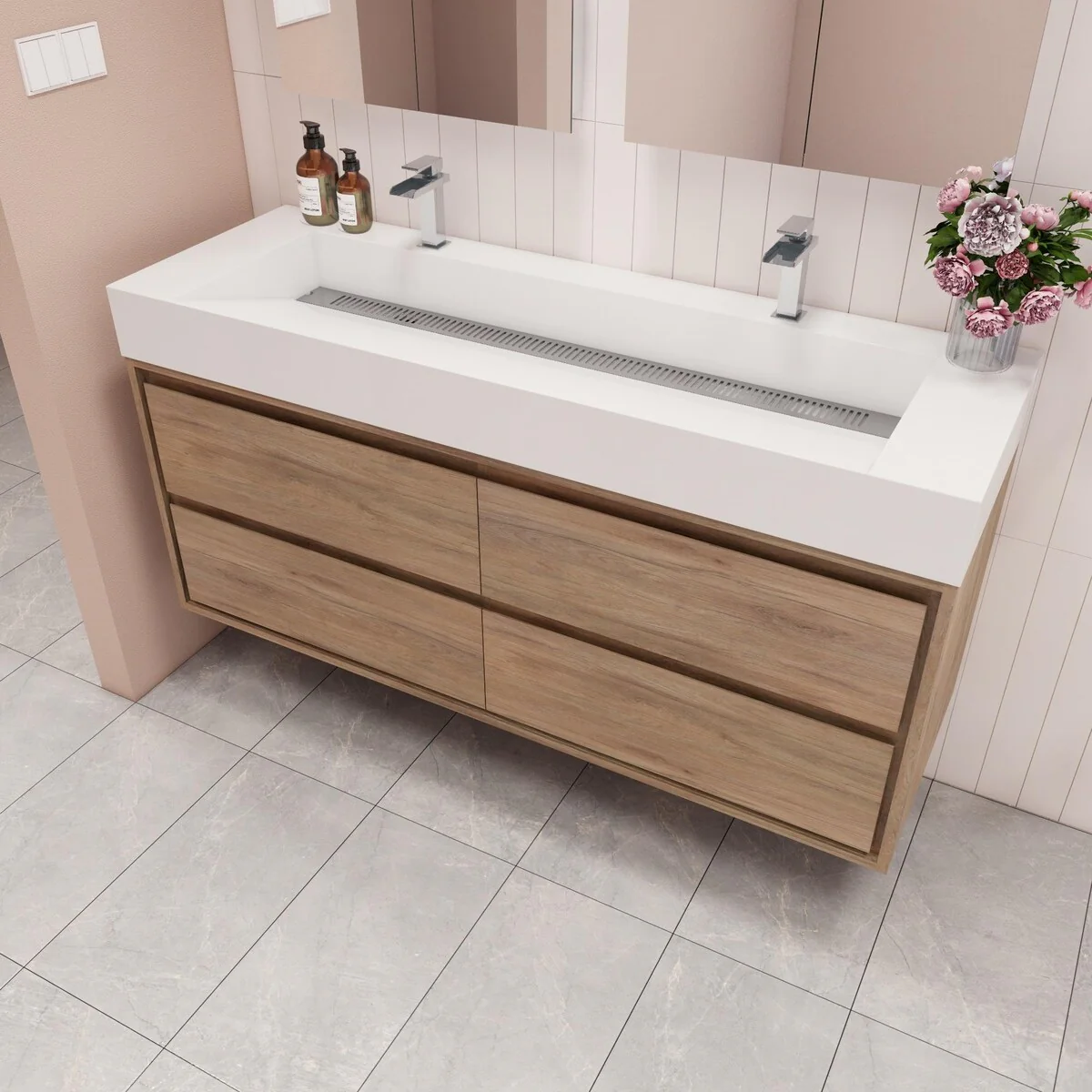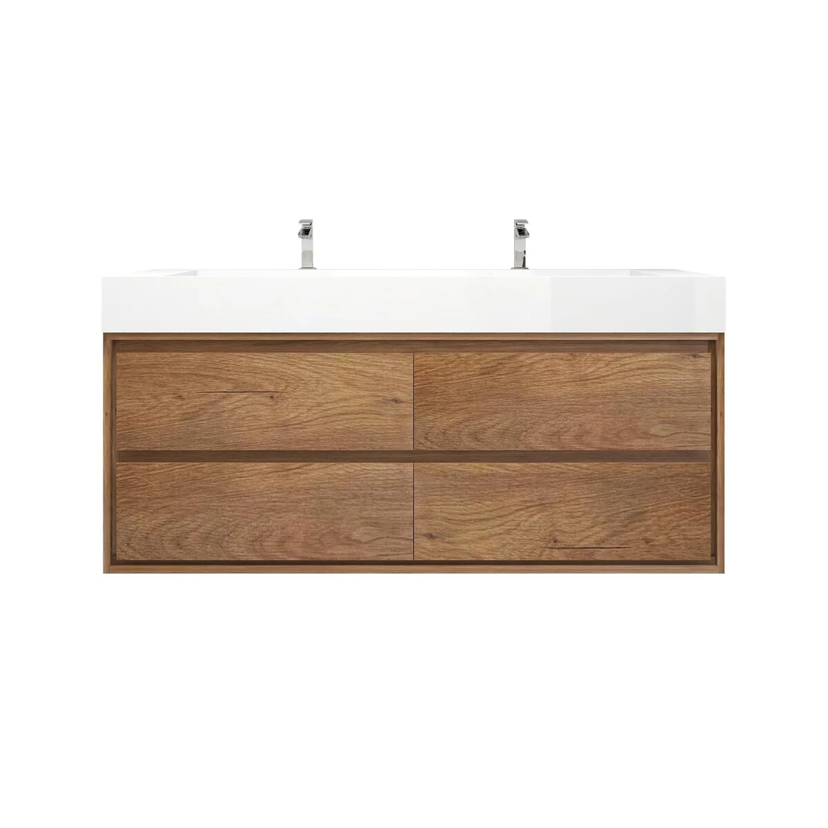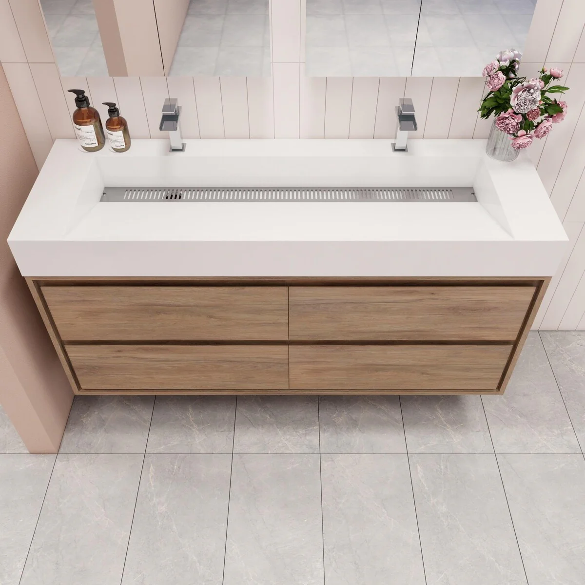- Modern Farmhouse Floating Bathroom Vanity Set with Sink, Natural Wood Bathroom Vanity