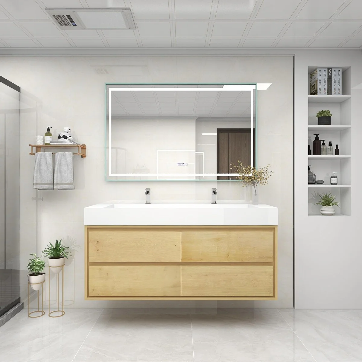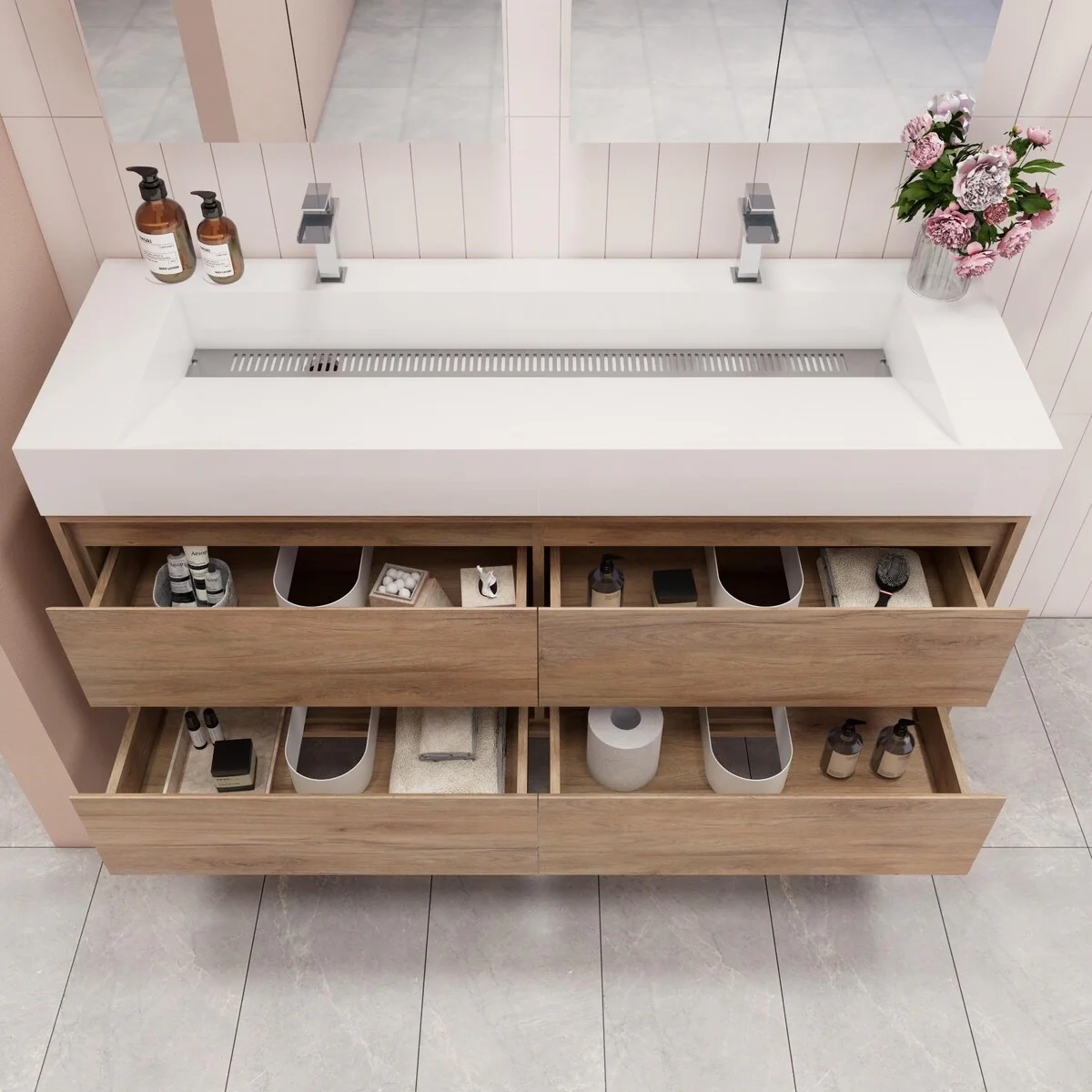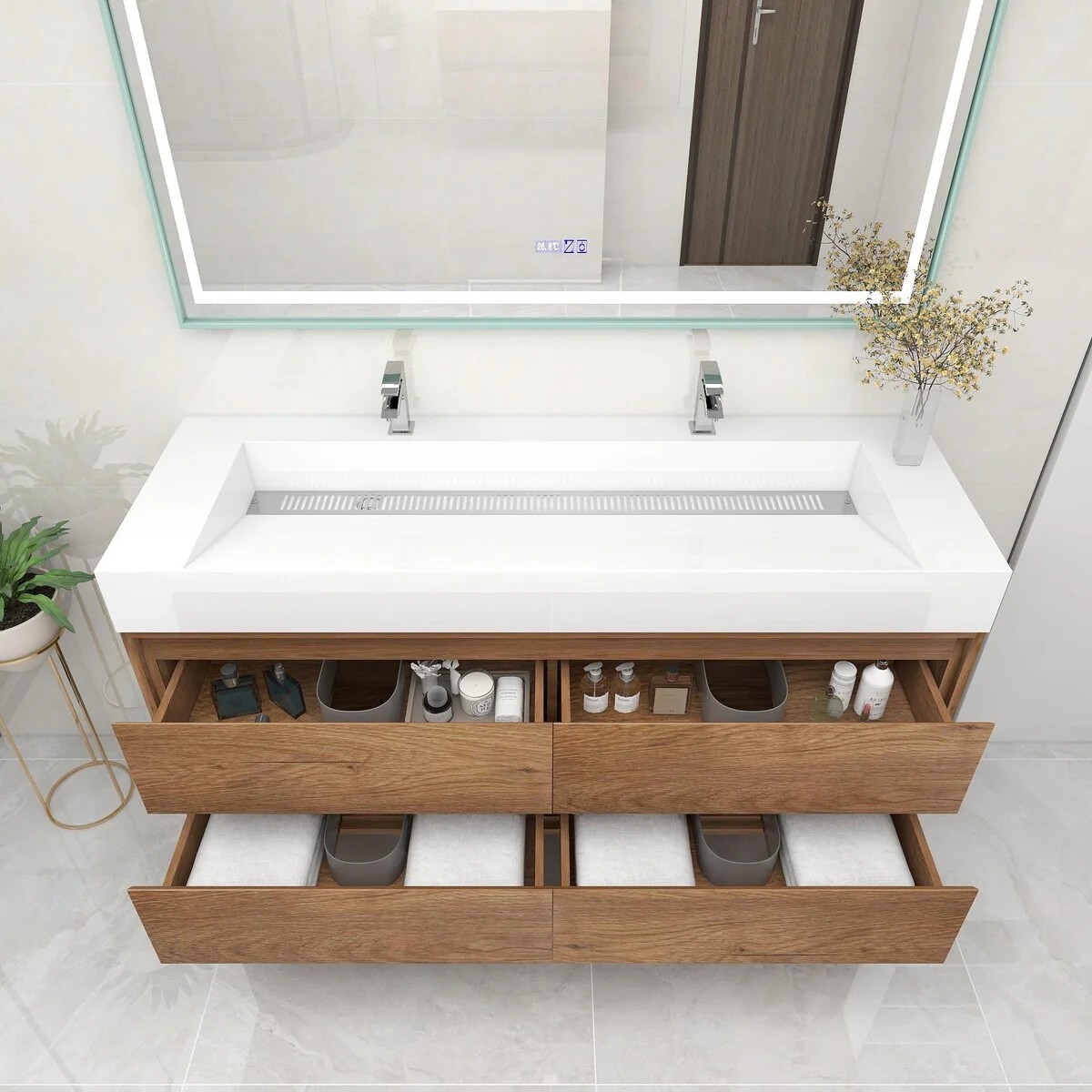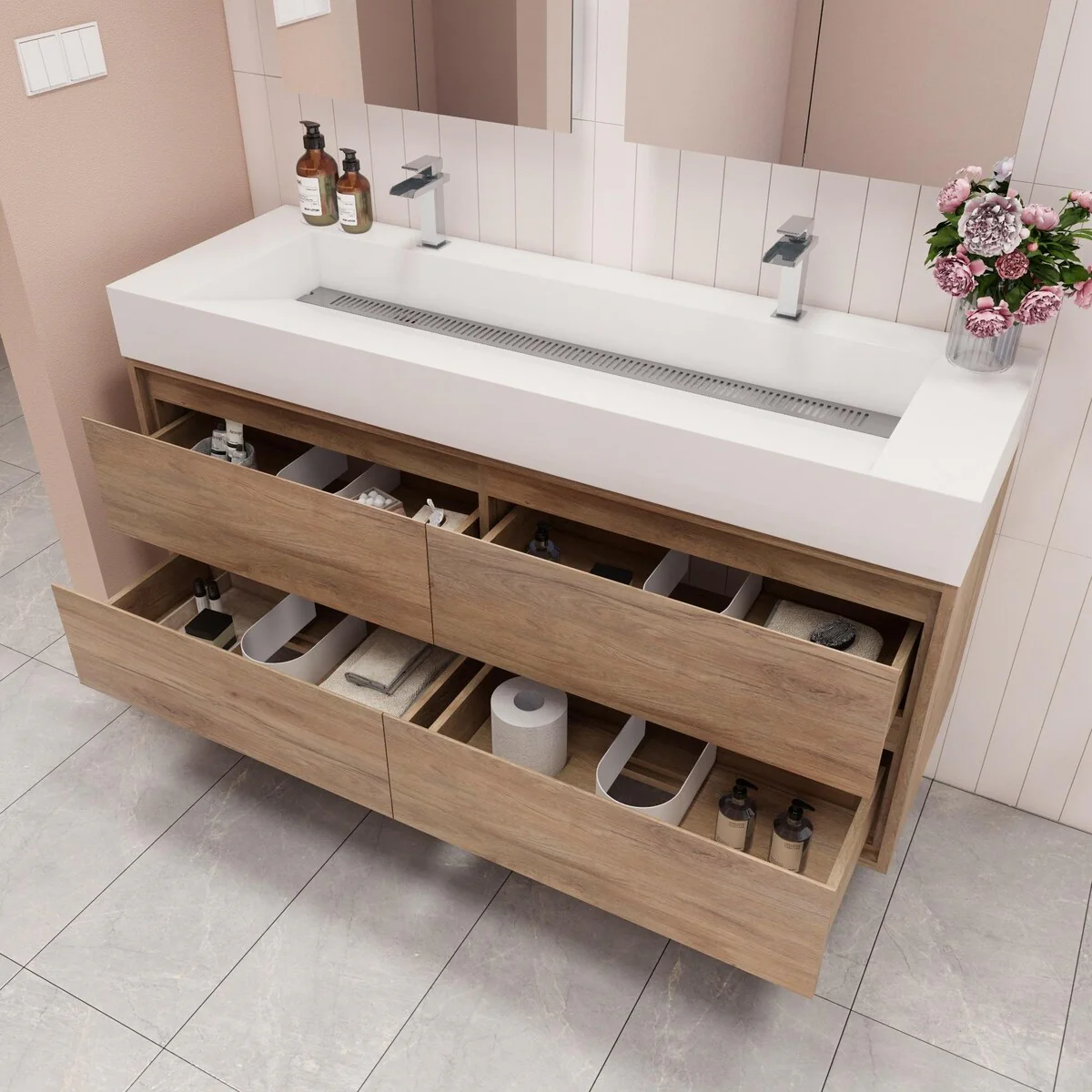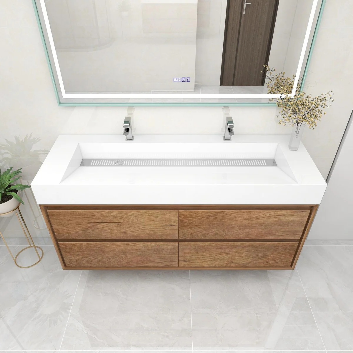 - Modern Farmhouse Floating Bathroom Vanity Set with Sink, Natural Wood Bathroom Vanity