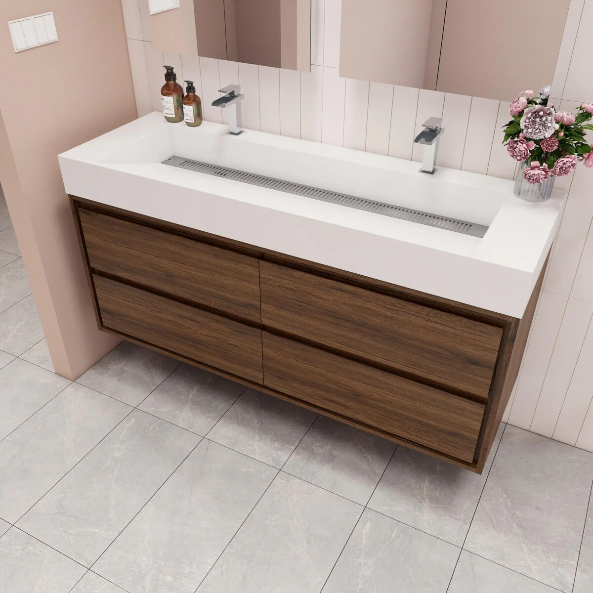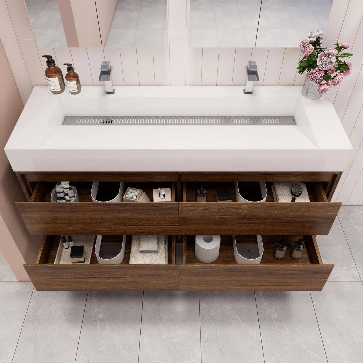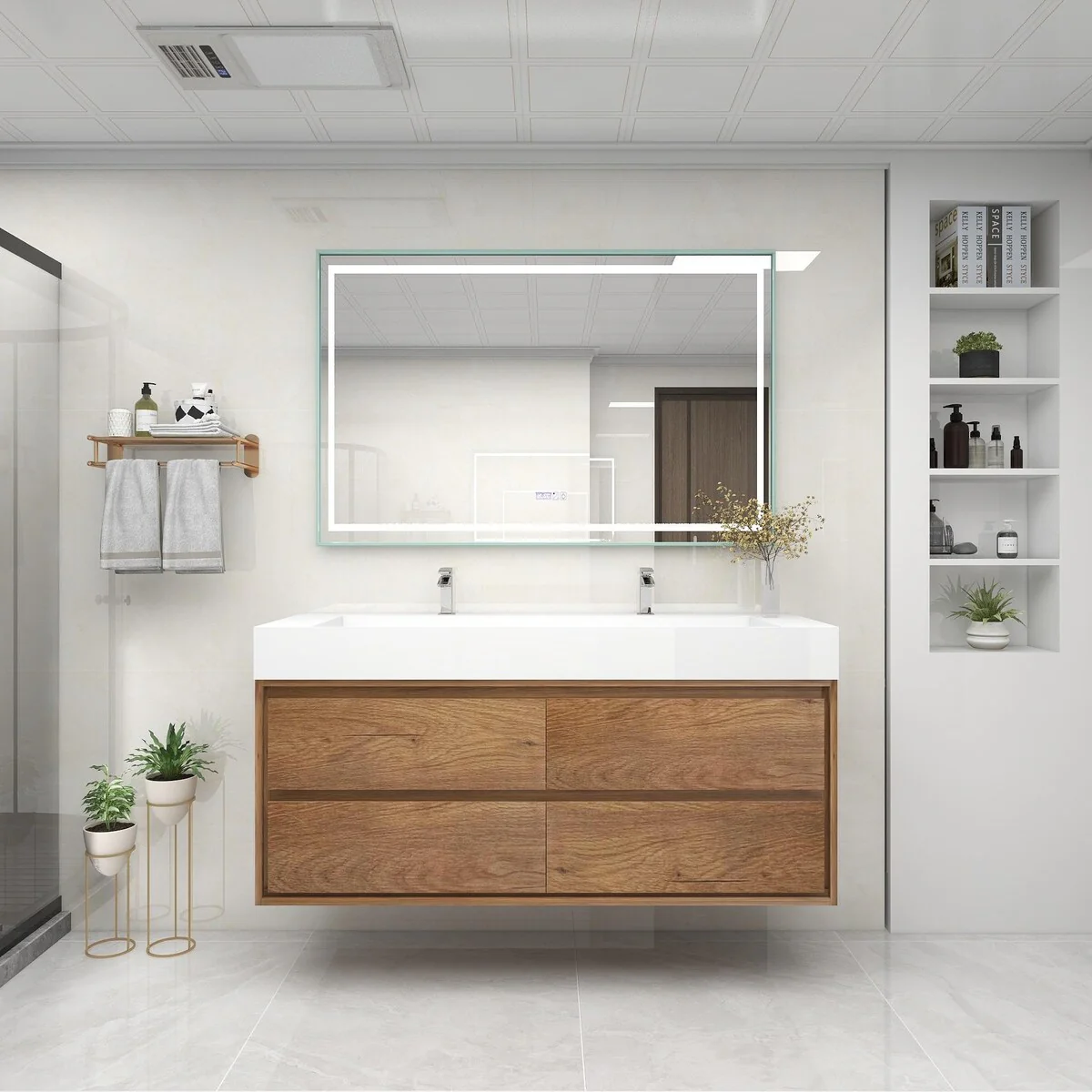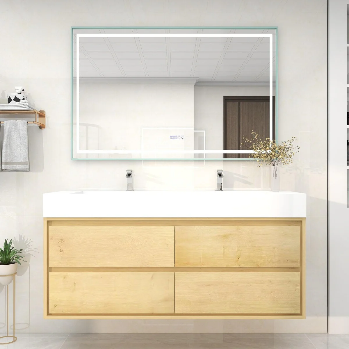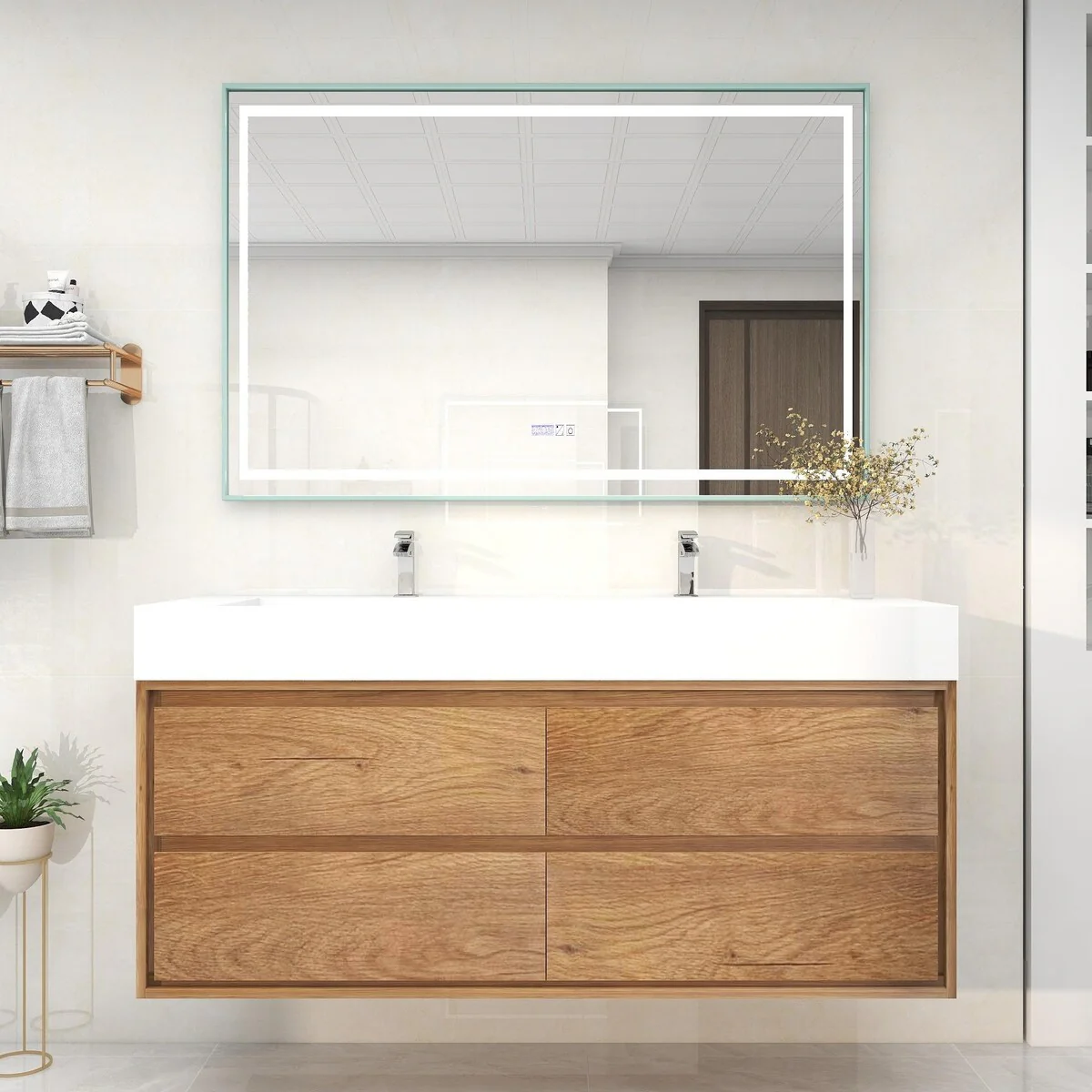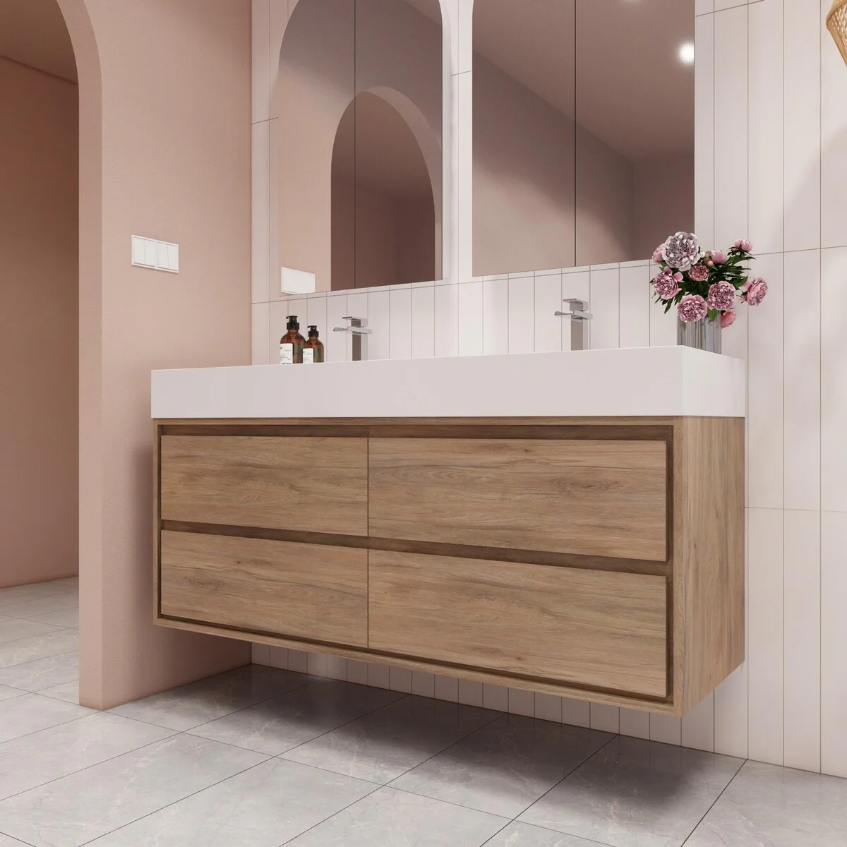 - Modern Farmhouse Floating Bathroom Vanity Set with Sink, Natural Wood Bathroom Vanity