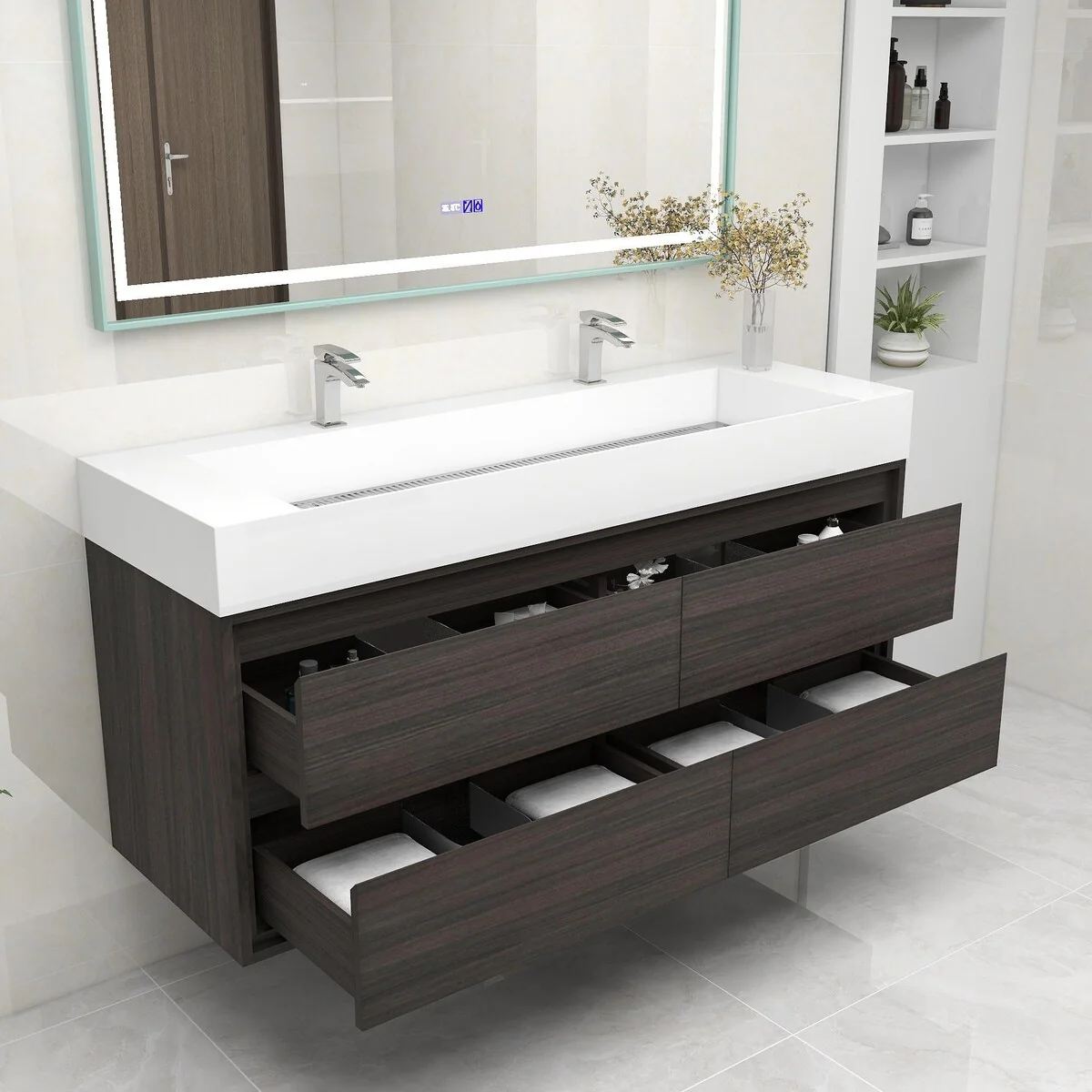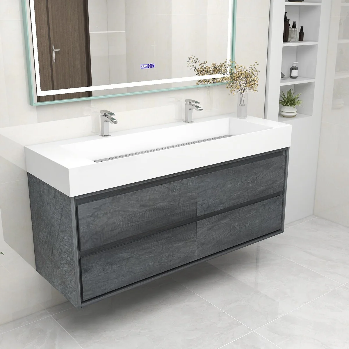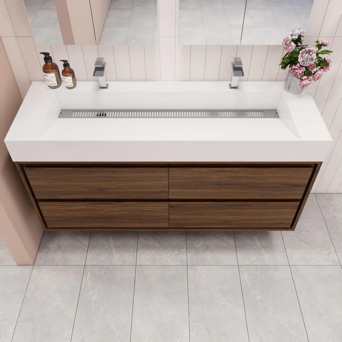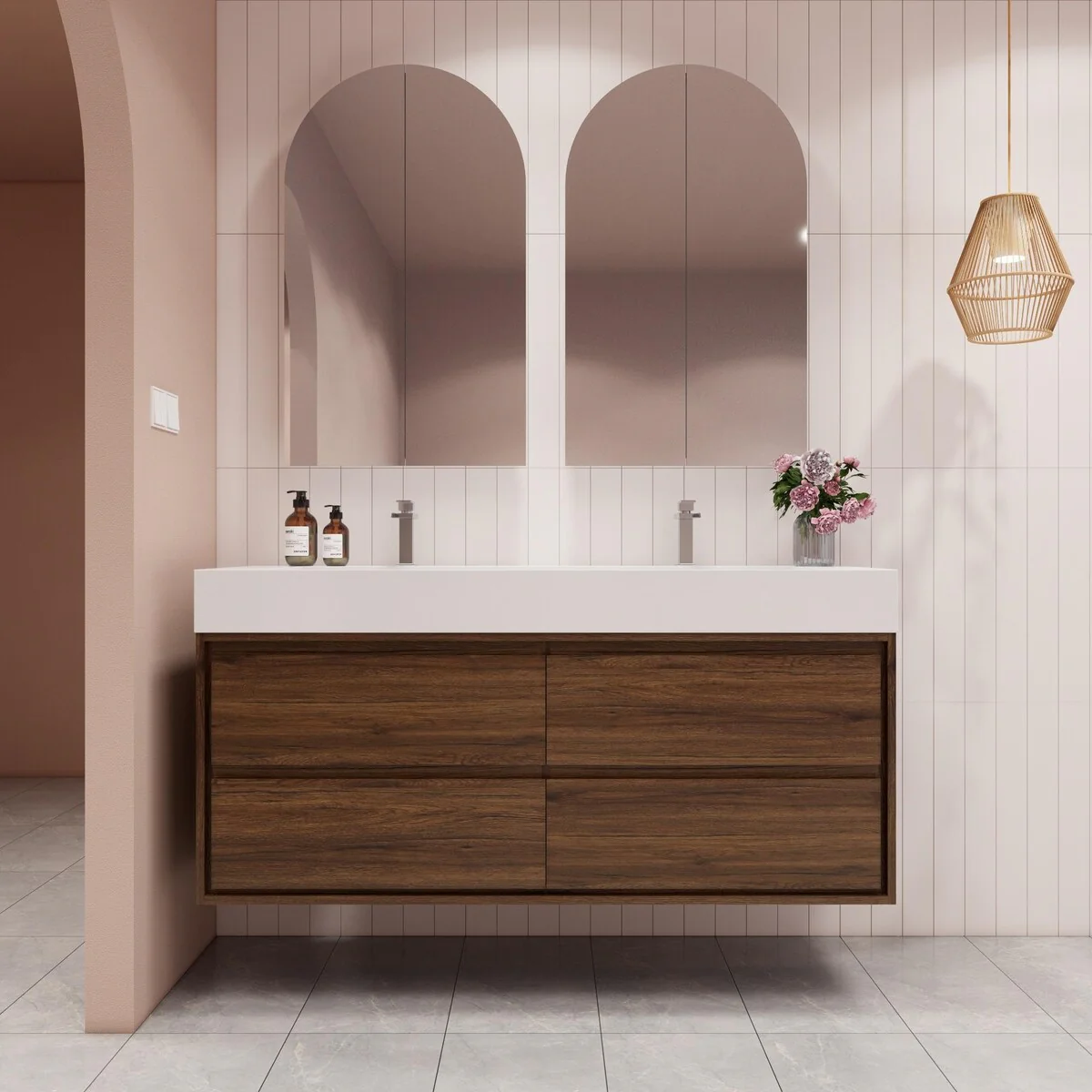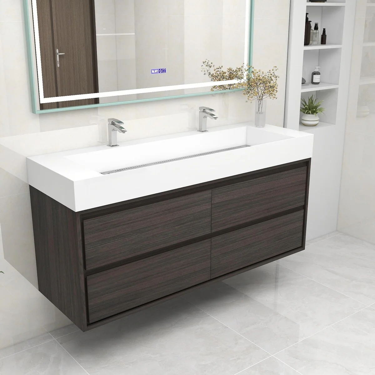 - Modern Farmhouse Floating Bathroom Vanity Set with Sink, Natural Wood Bathroom Vanity